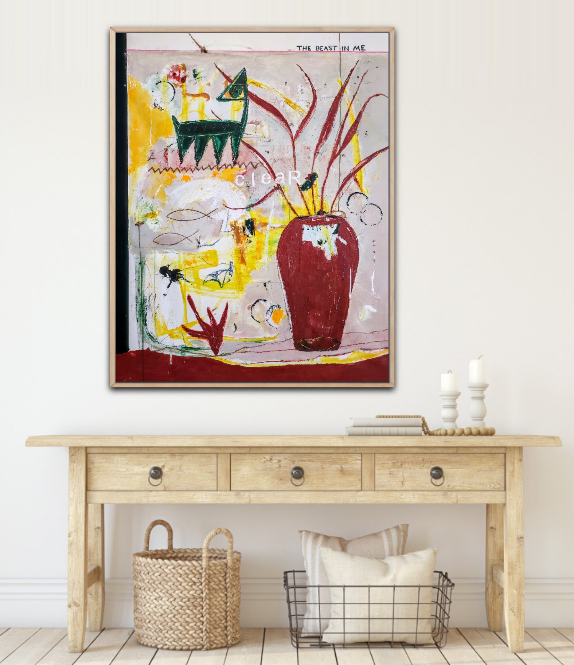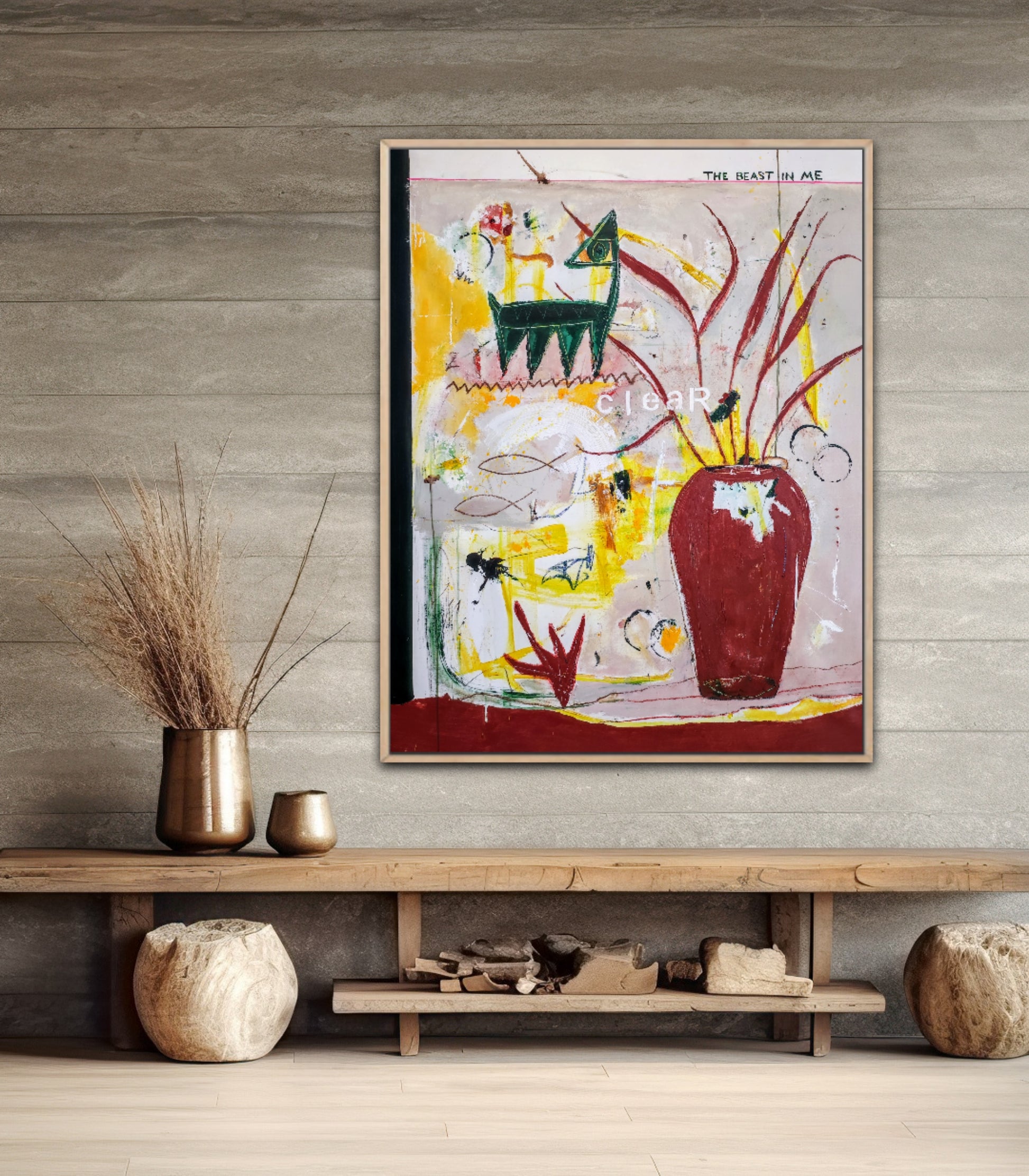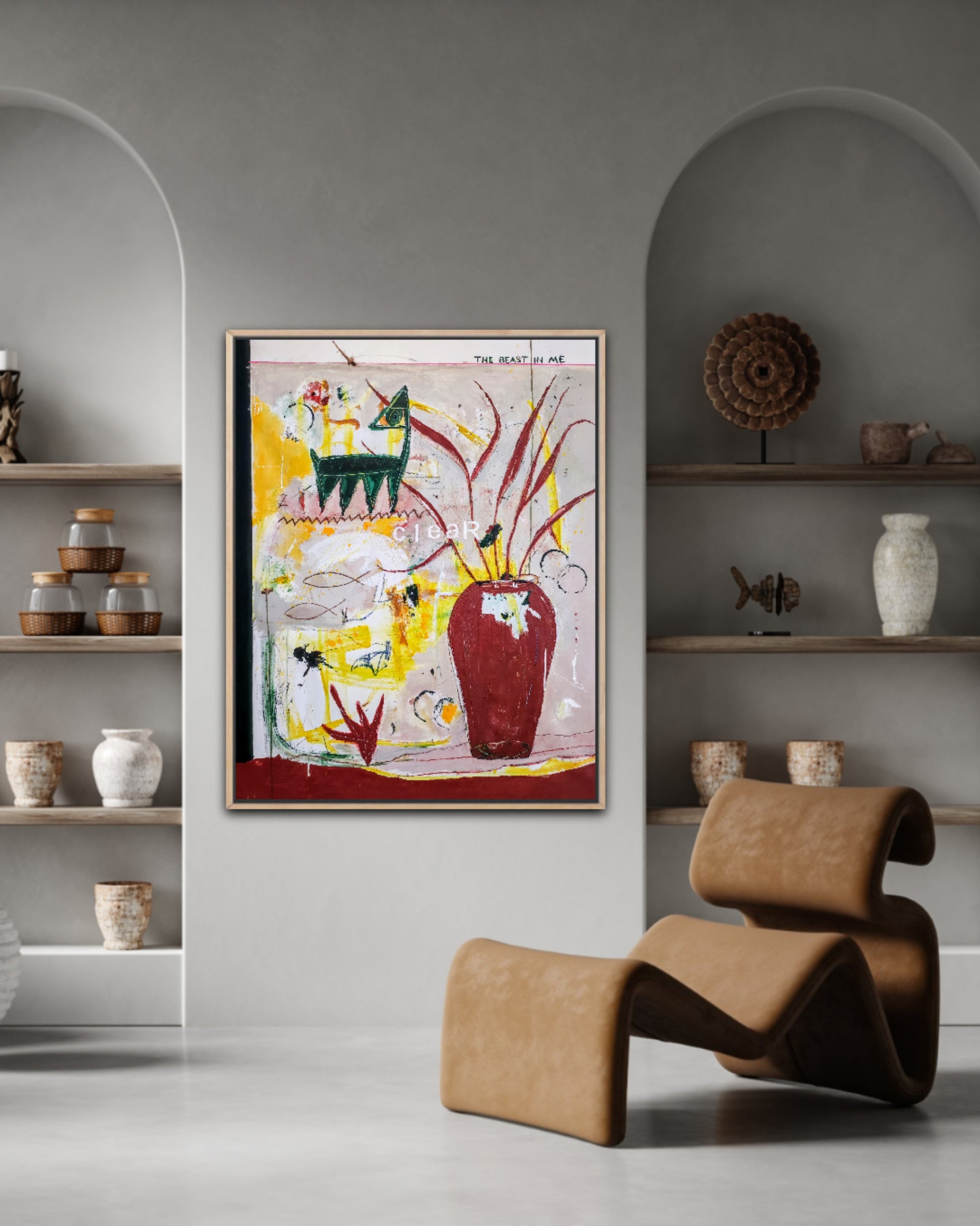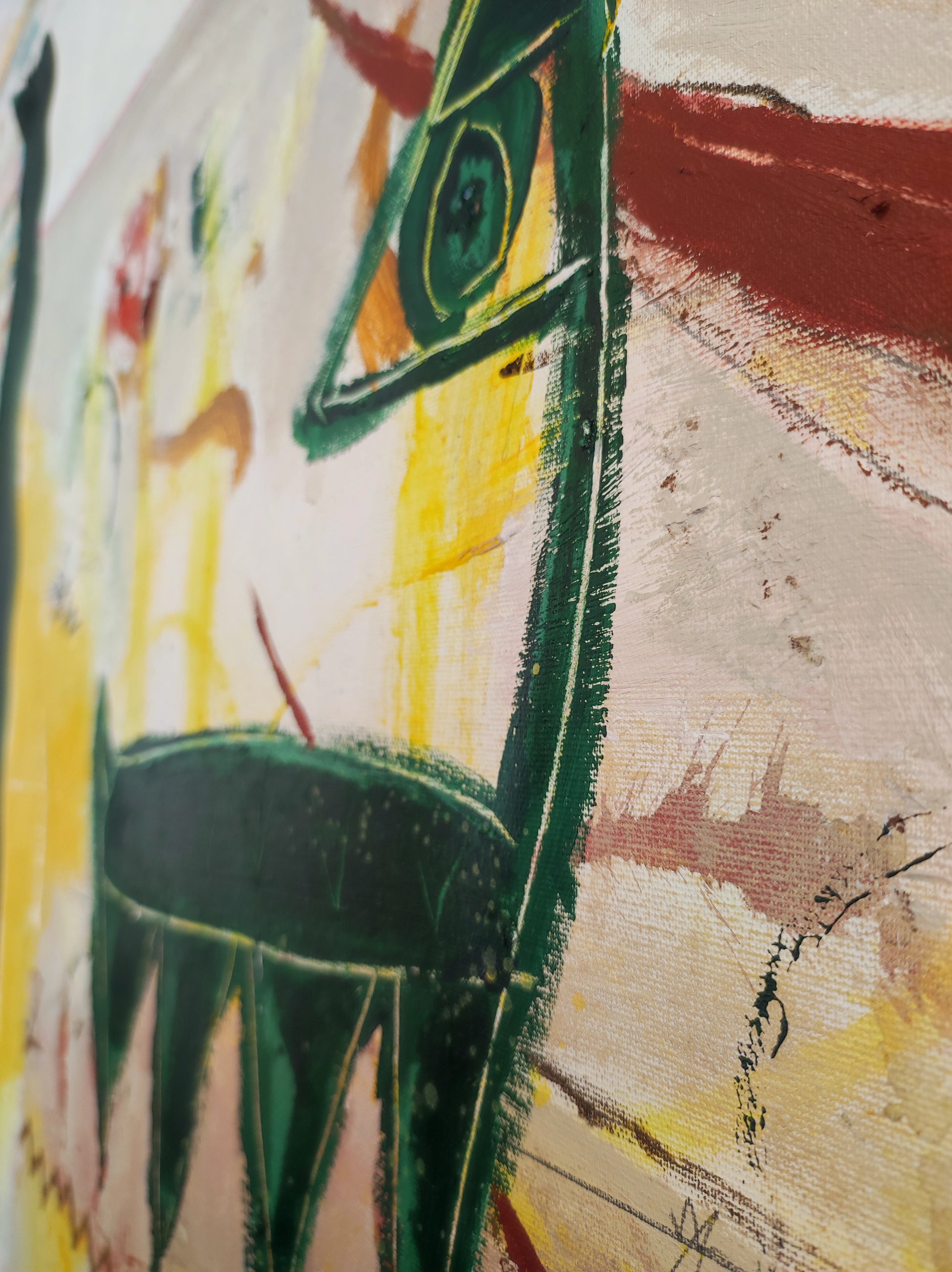 Técnica: acrílico, pigmentos, ceras, tempera, lápiz y pastel.