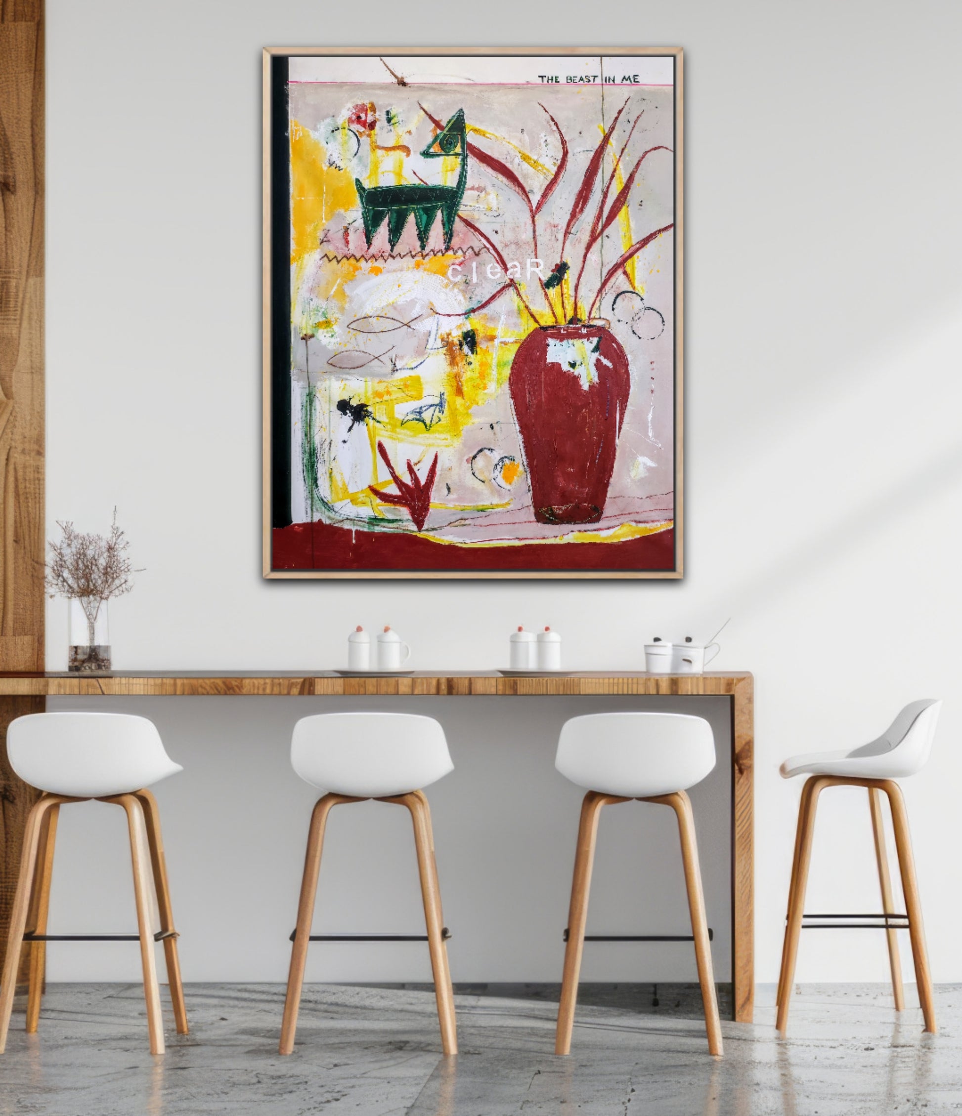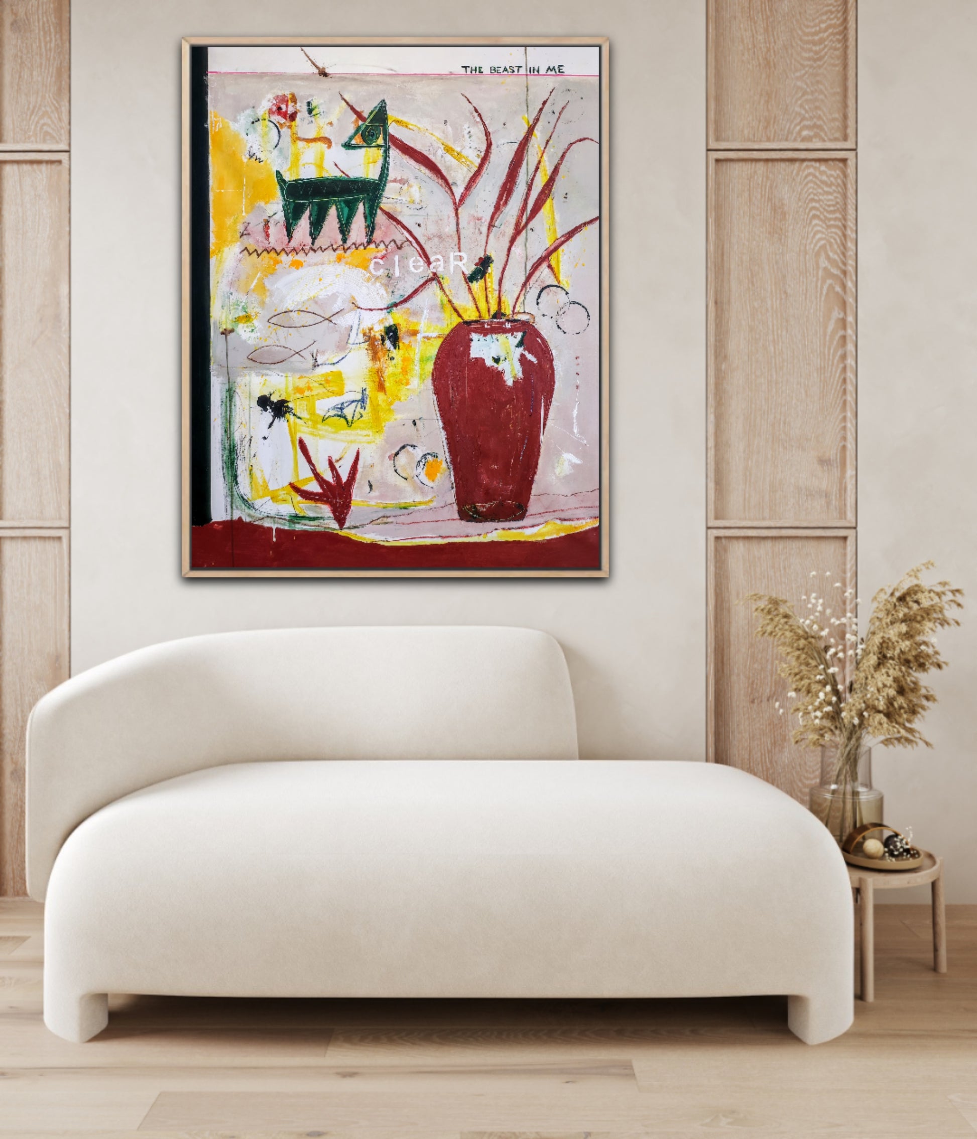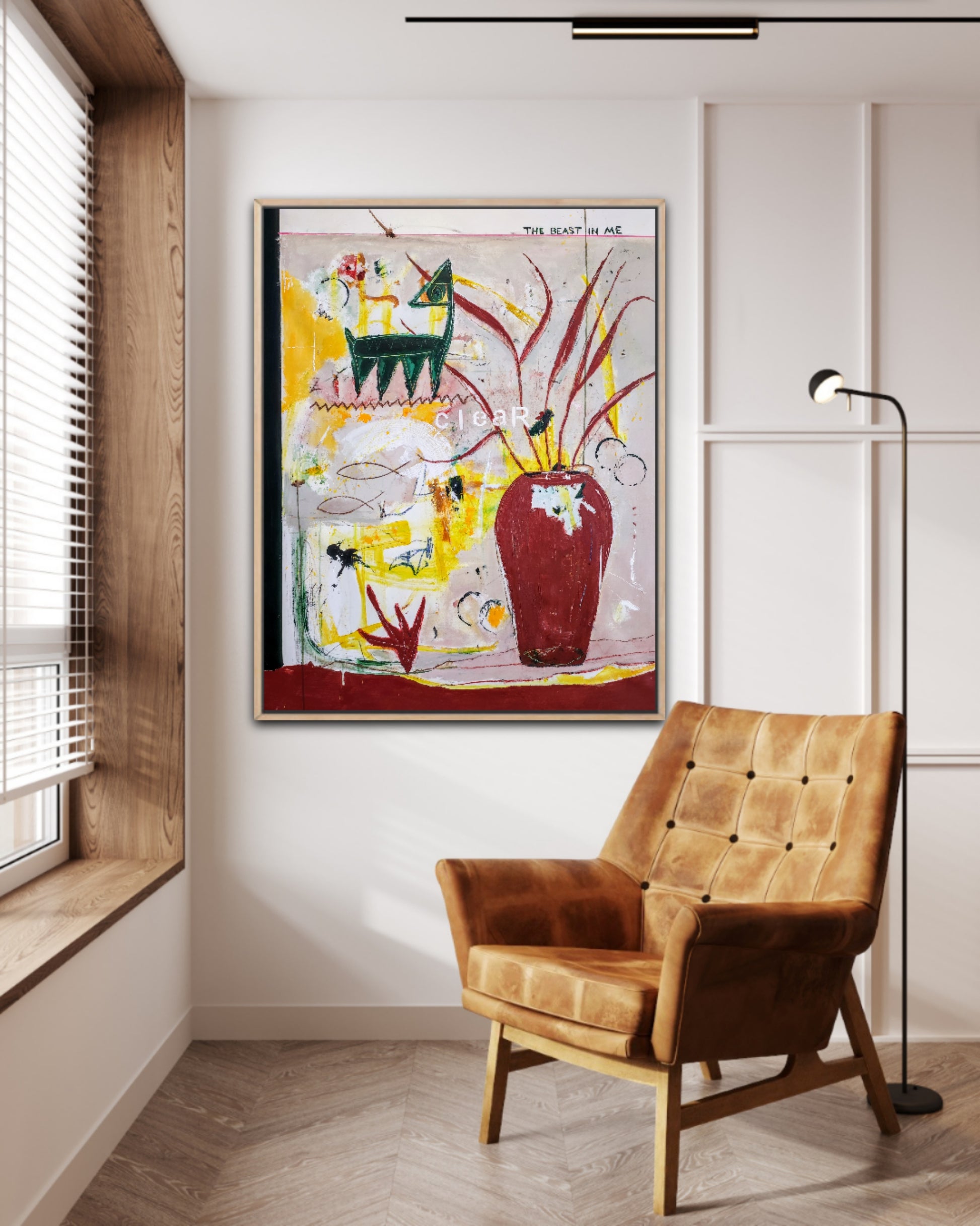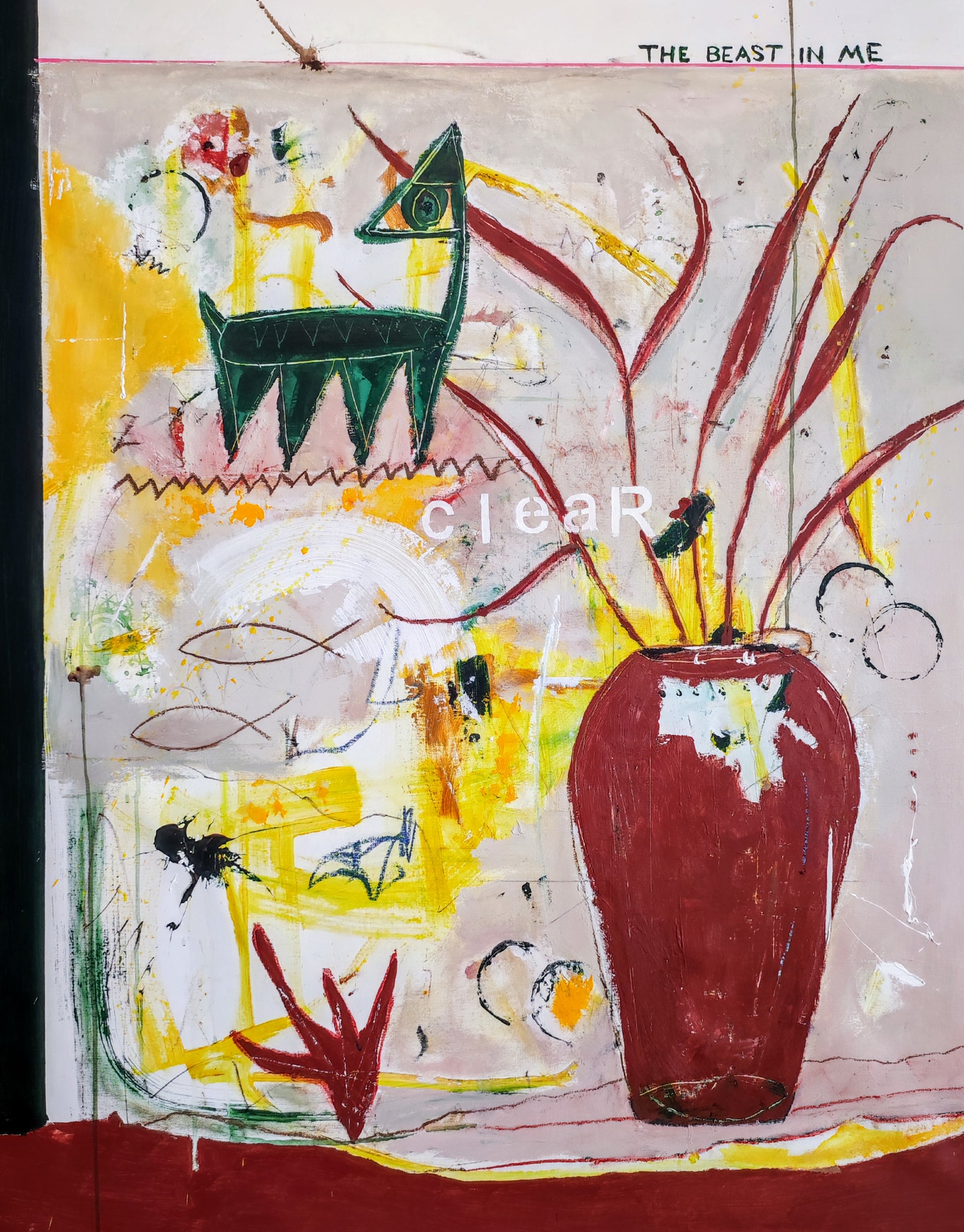 Técnica: acrílico, pigmentos, ceras, tempera, lápiz y pastel.