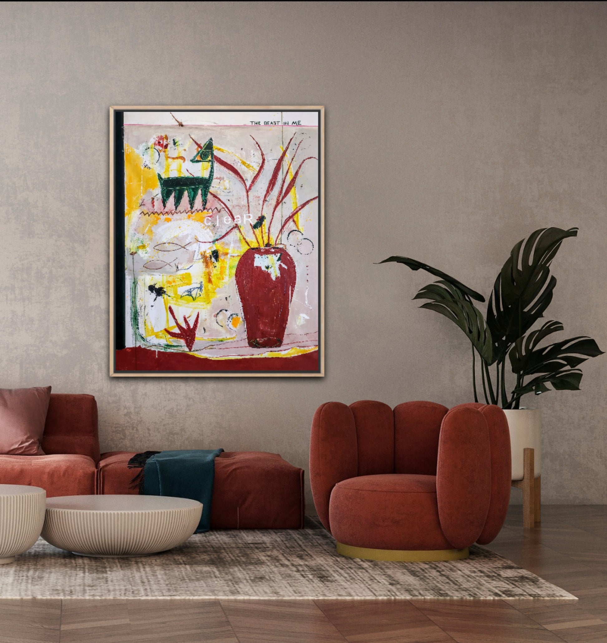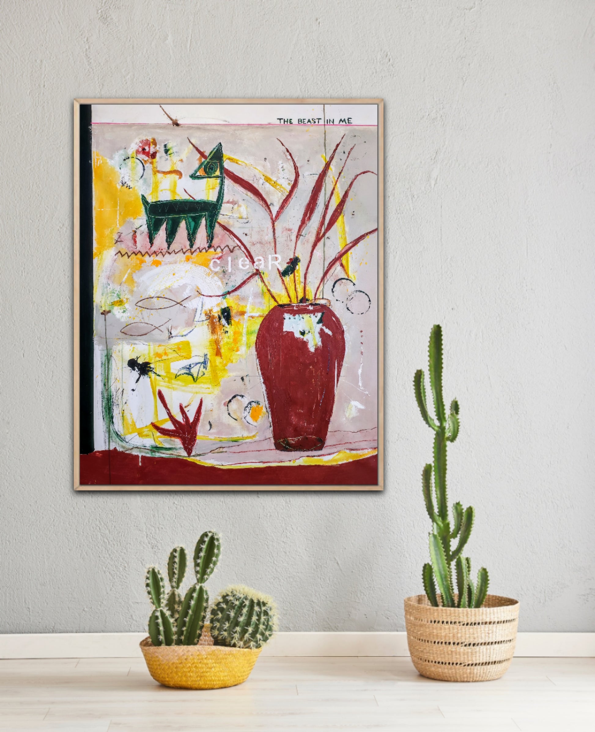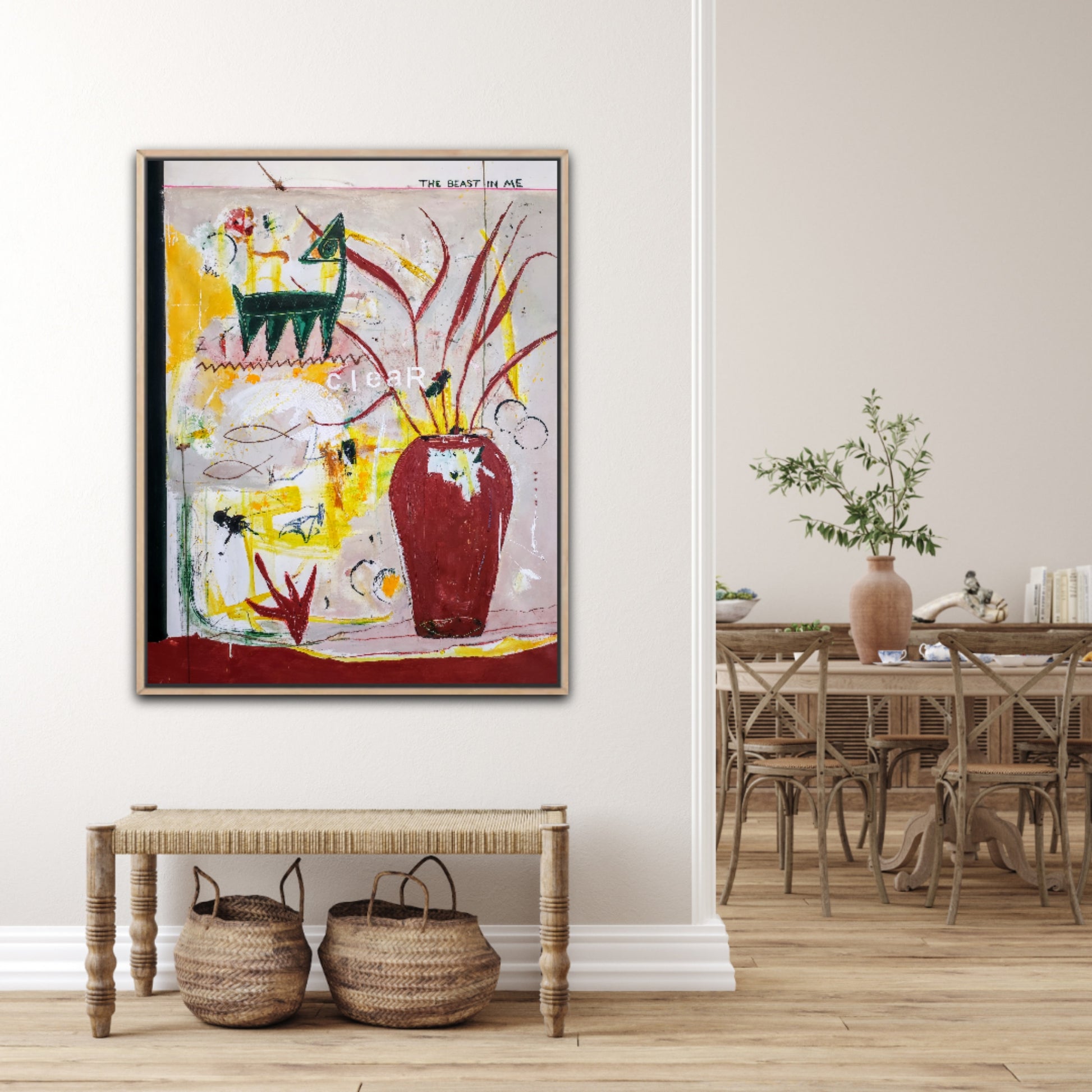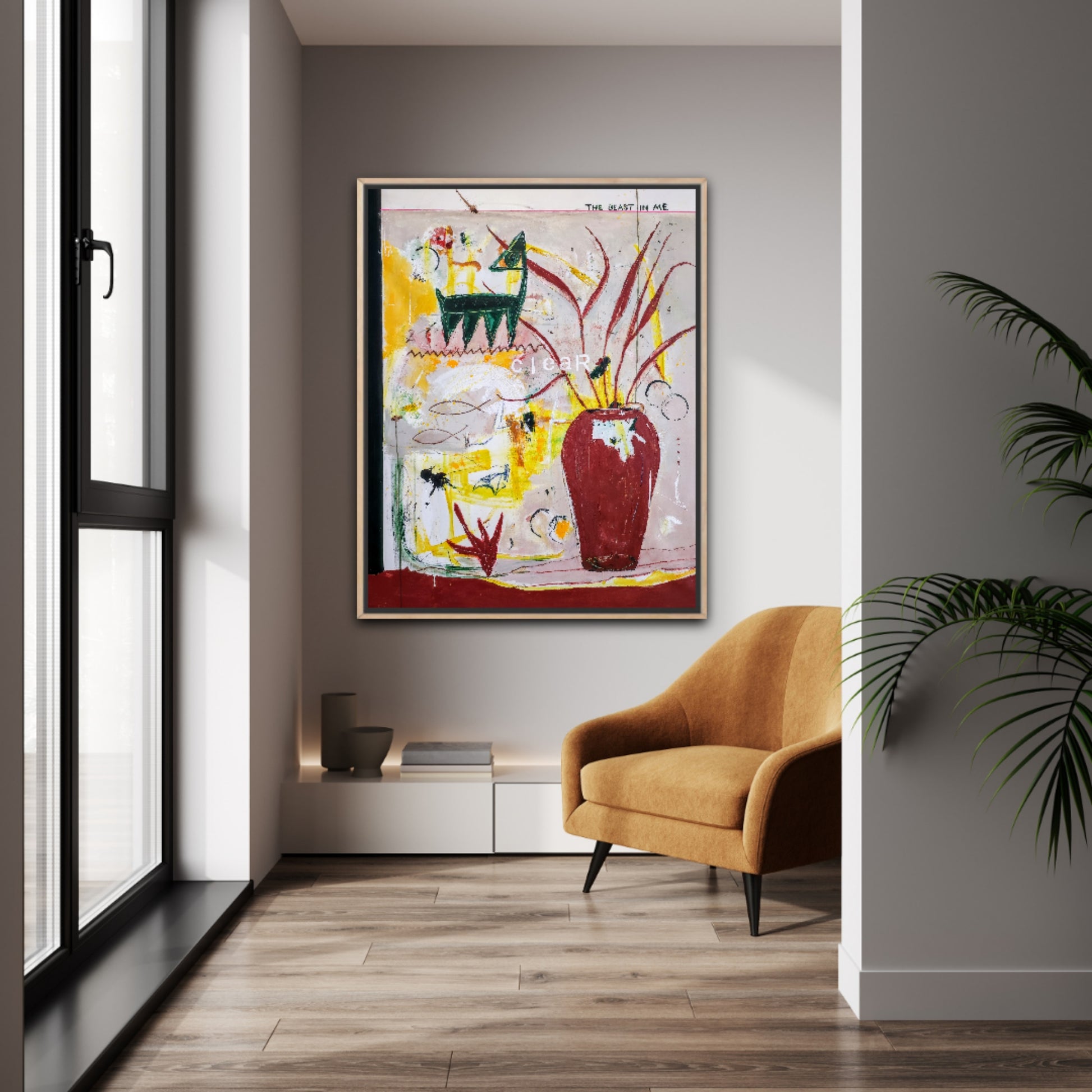 Técnica: acrílico, pigmentos, ceras, tempera, lápiz y pastel.