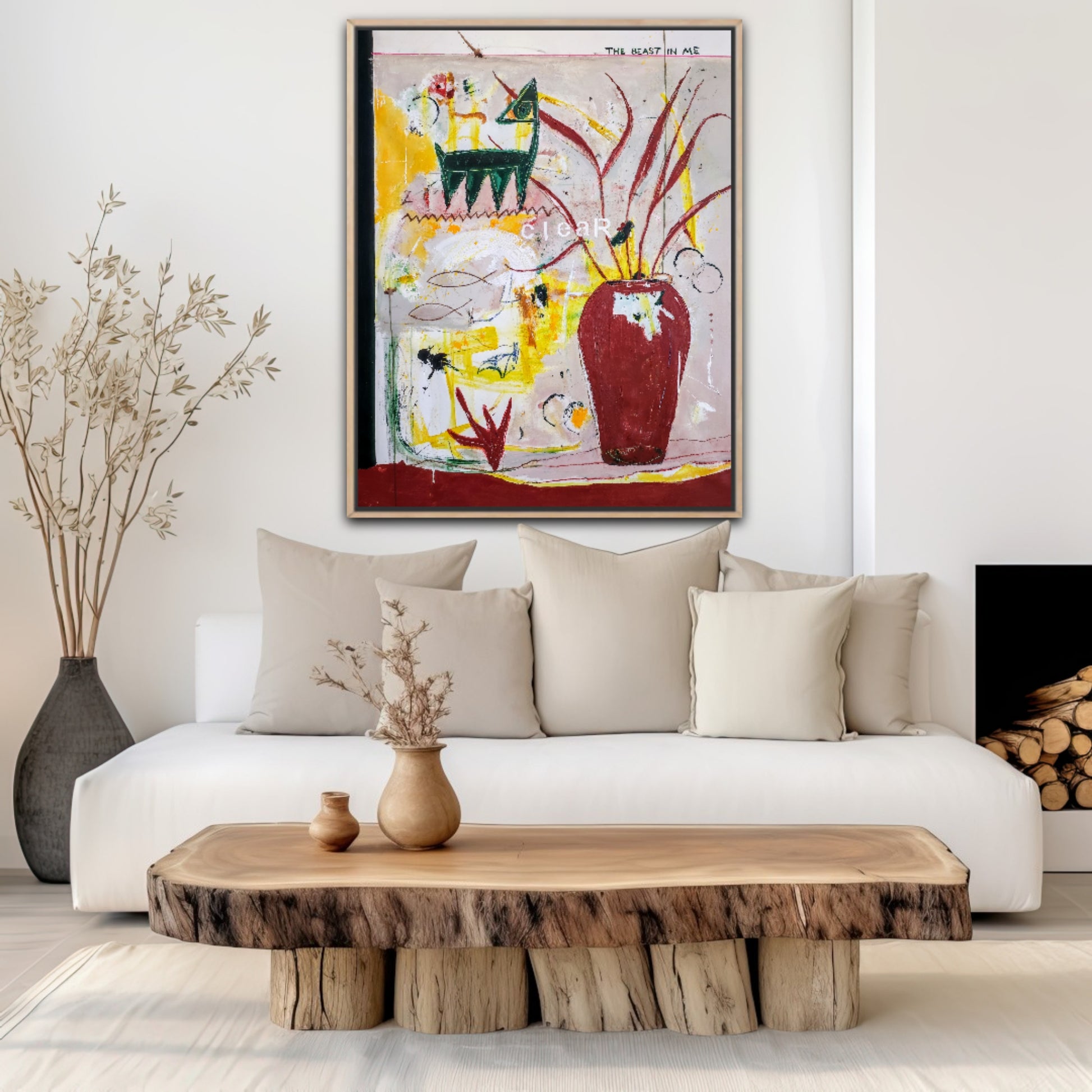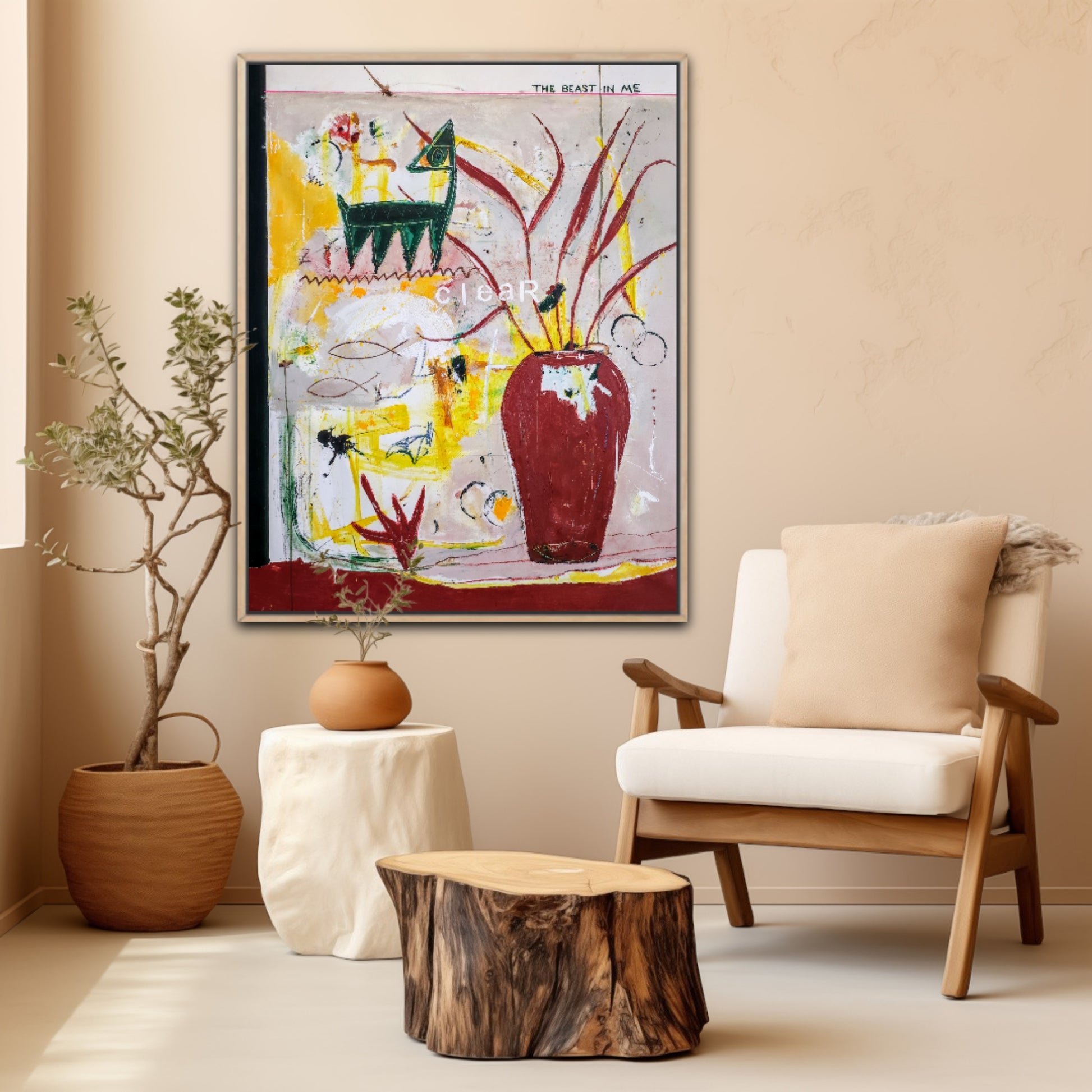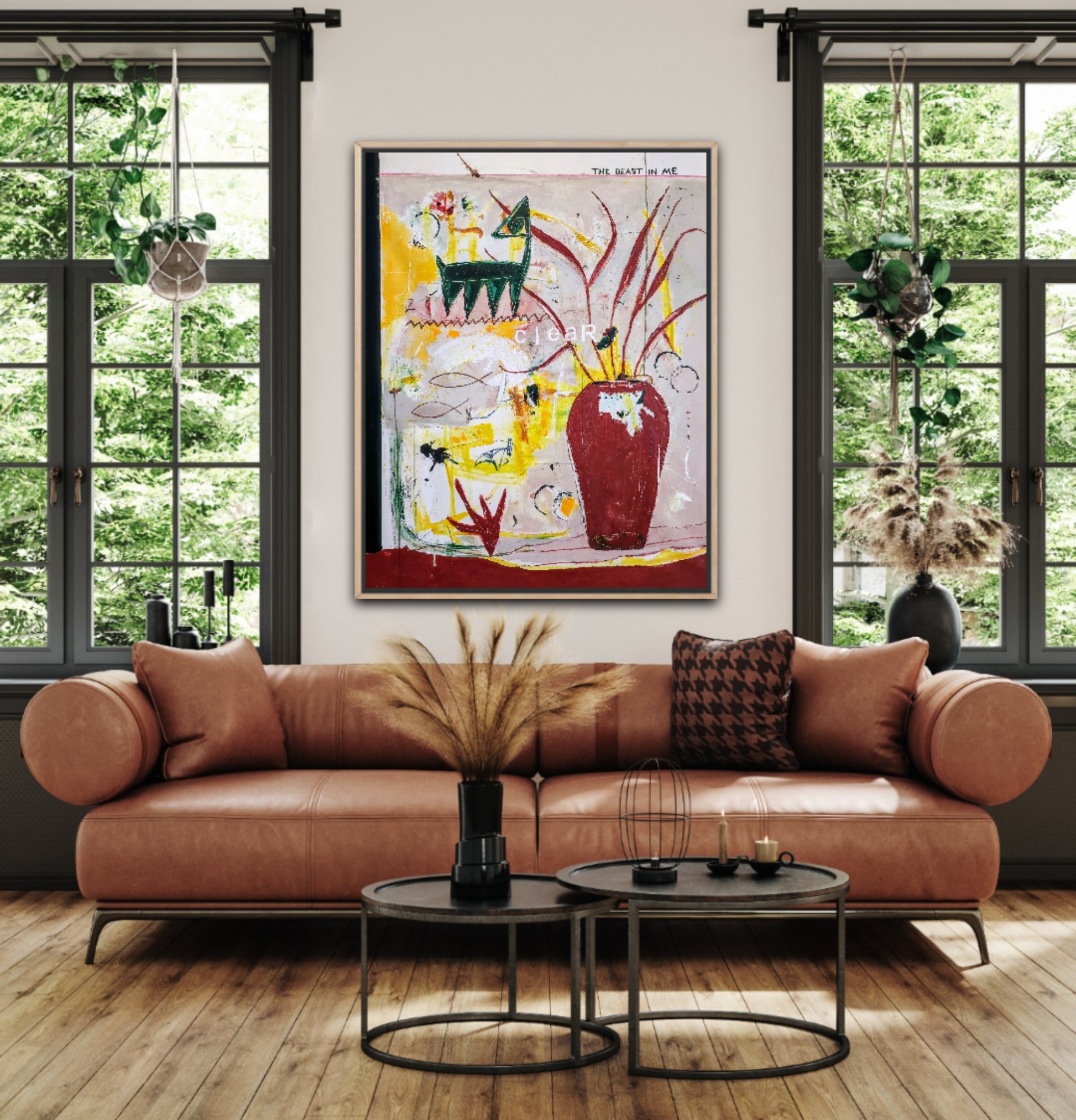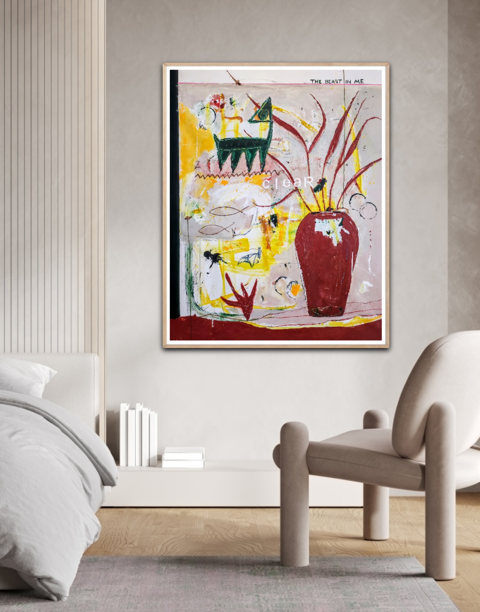 Técnica: acrílico, pigmentos, ceras, tempera, lápiz y pastel.