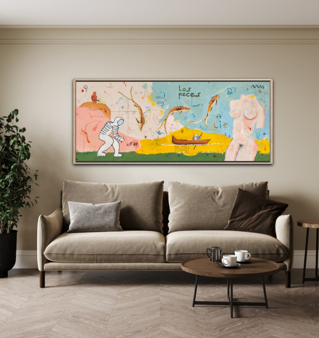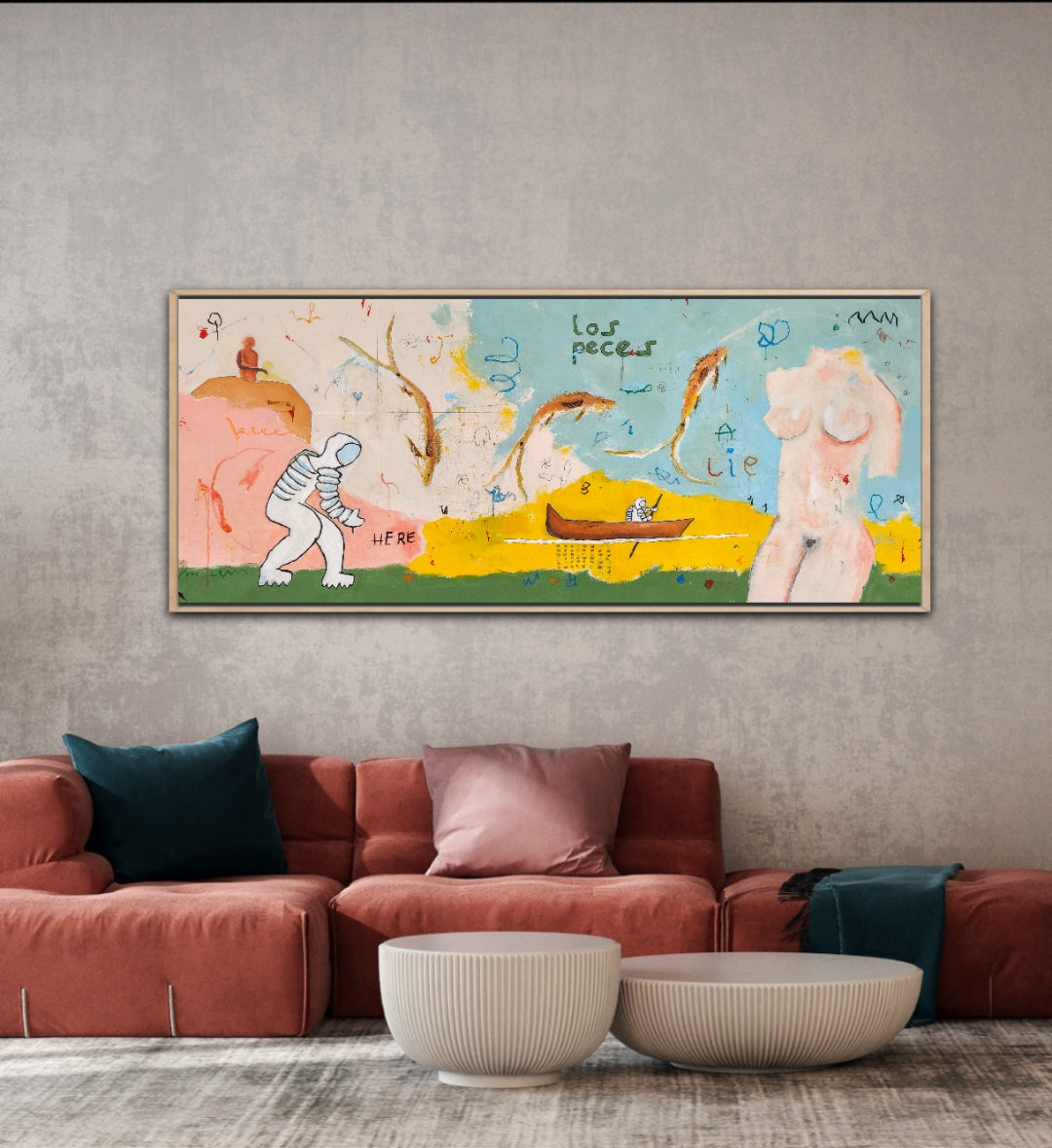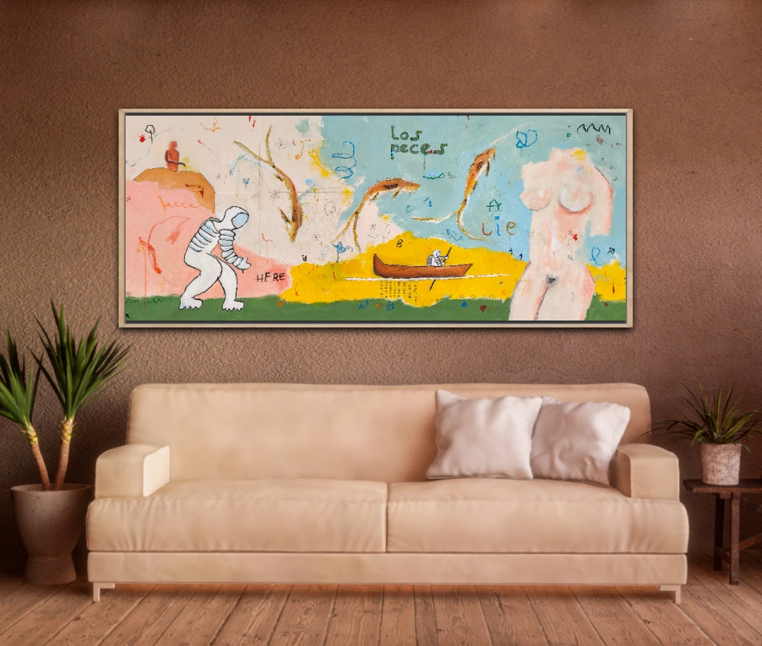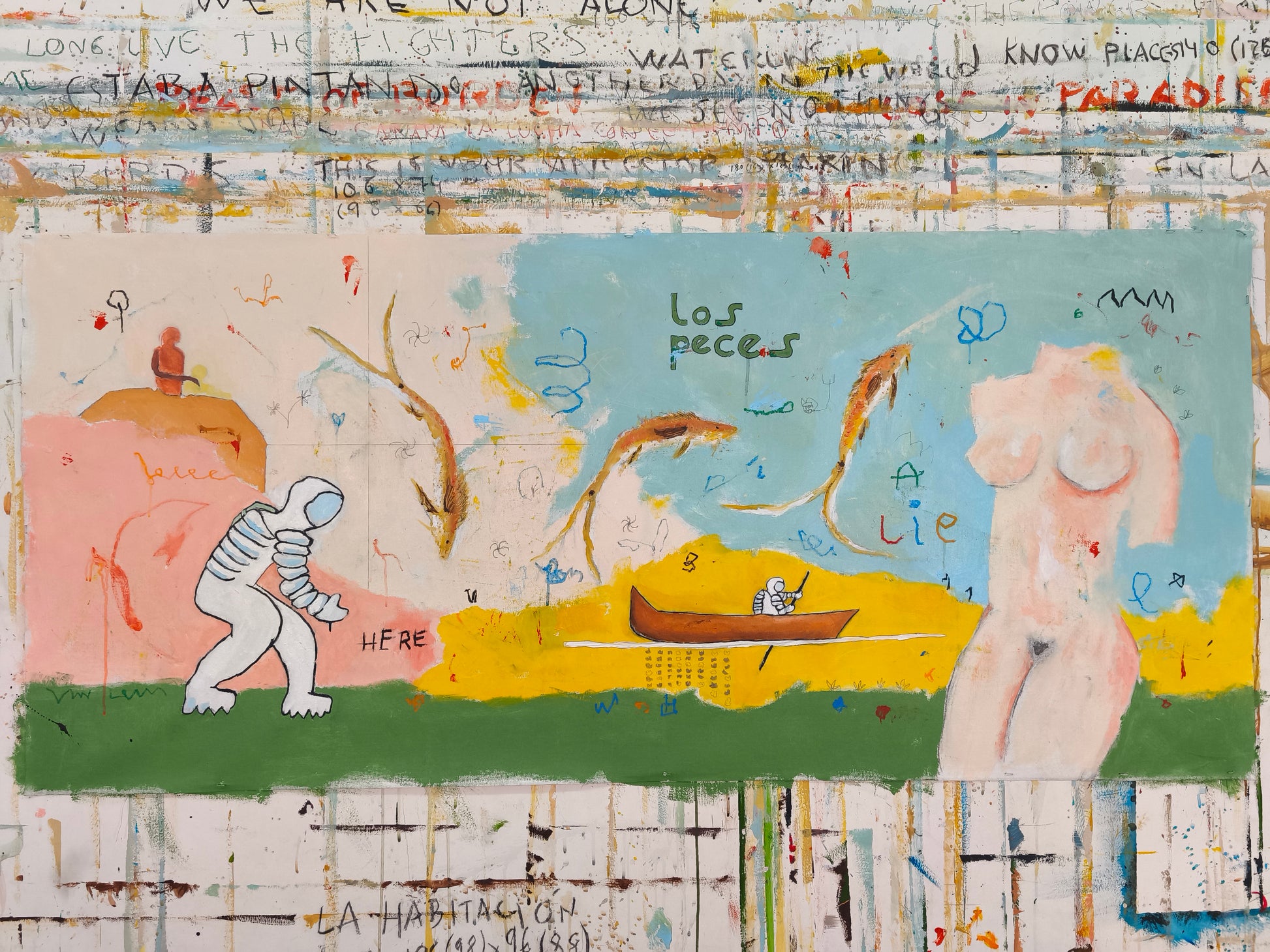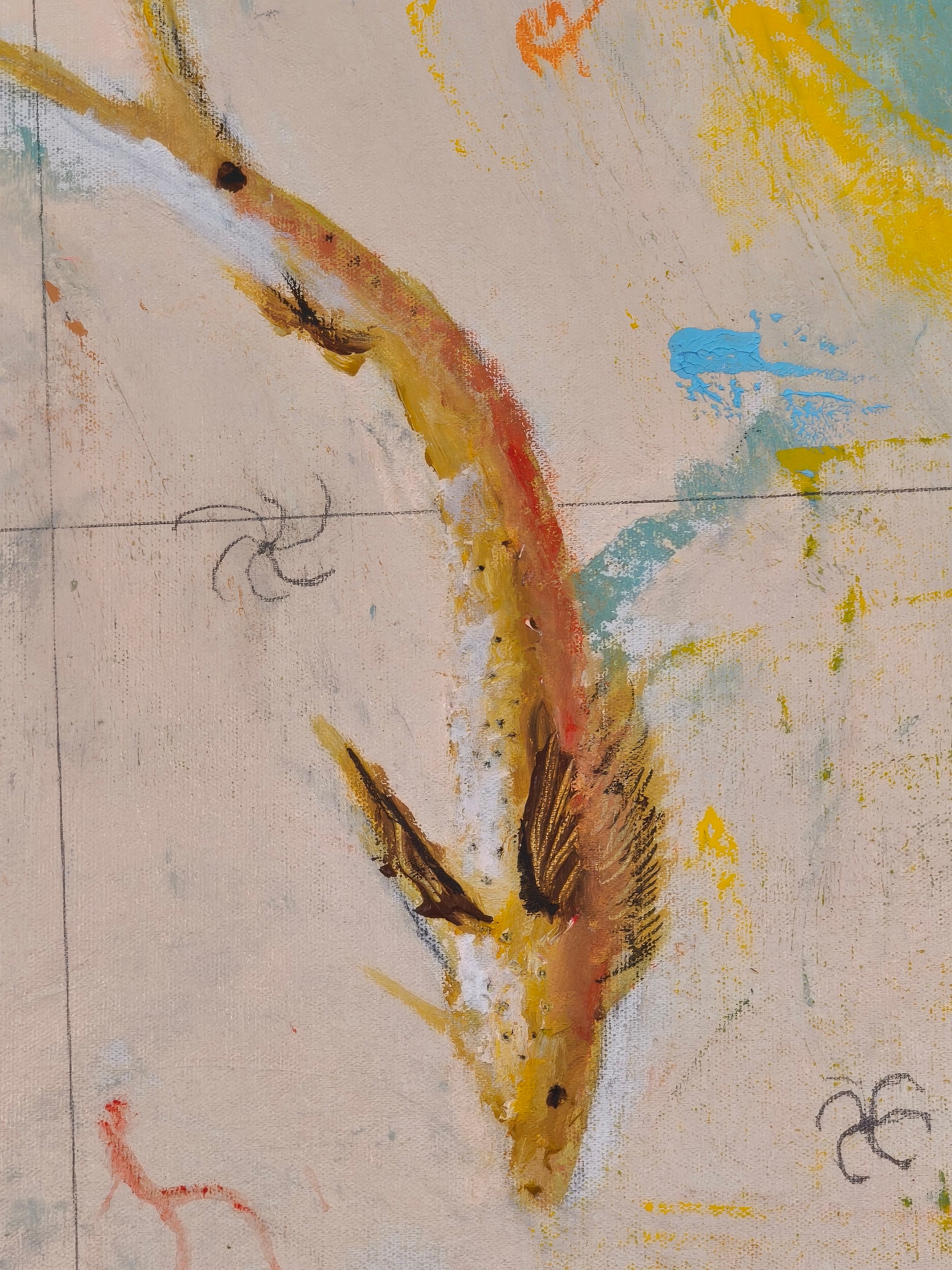 Técnica: acrílico, lápiz, carboncillo, gesso, ceras.