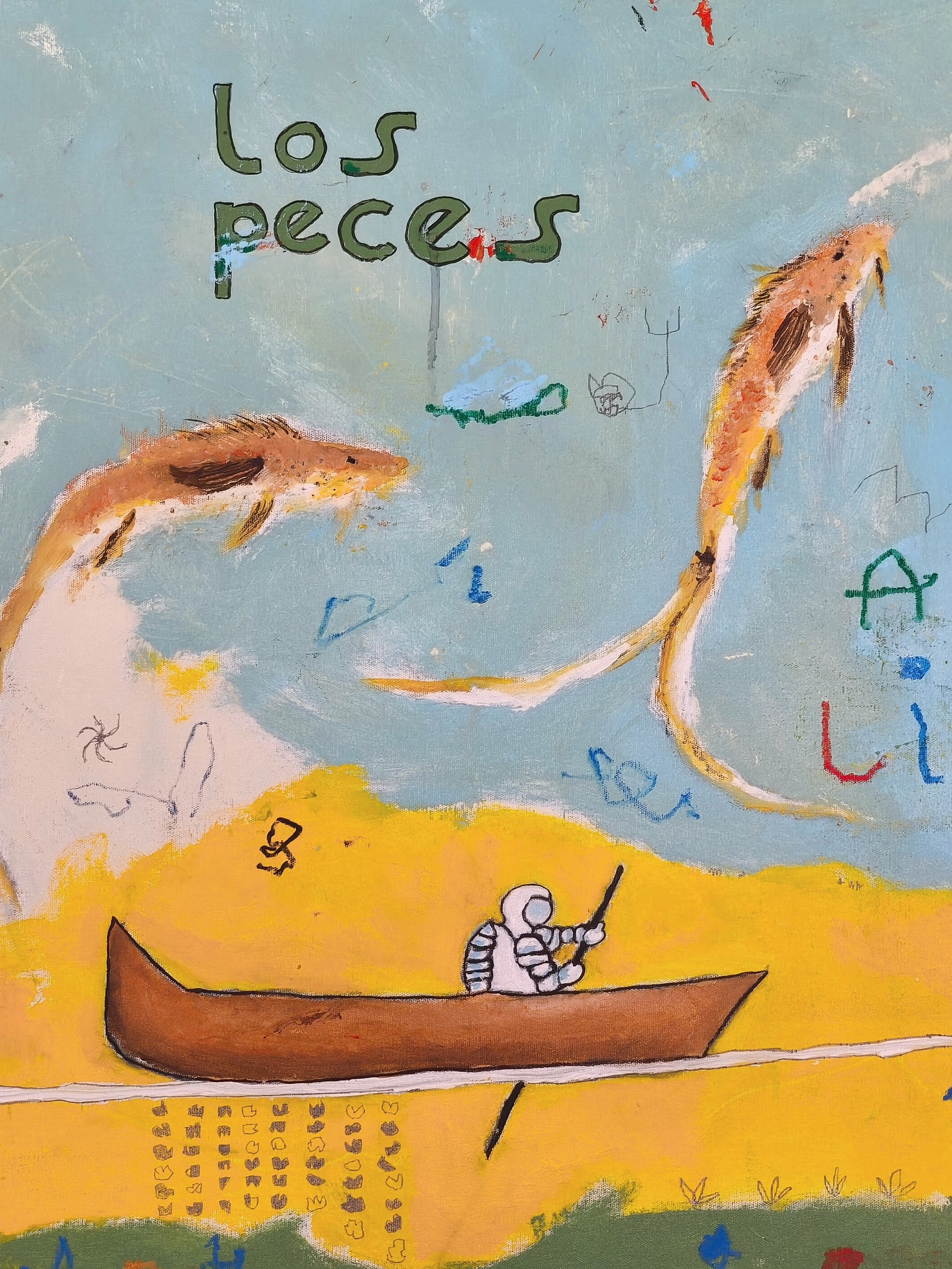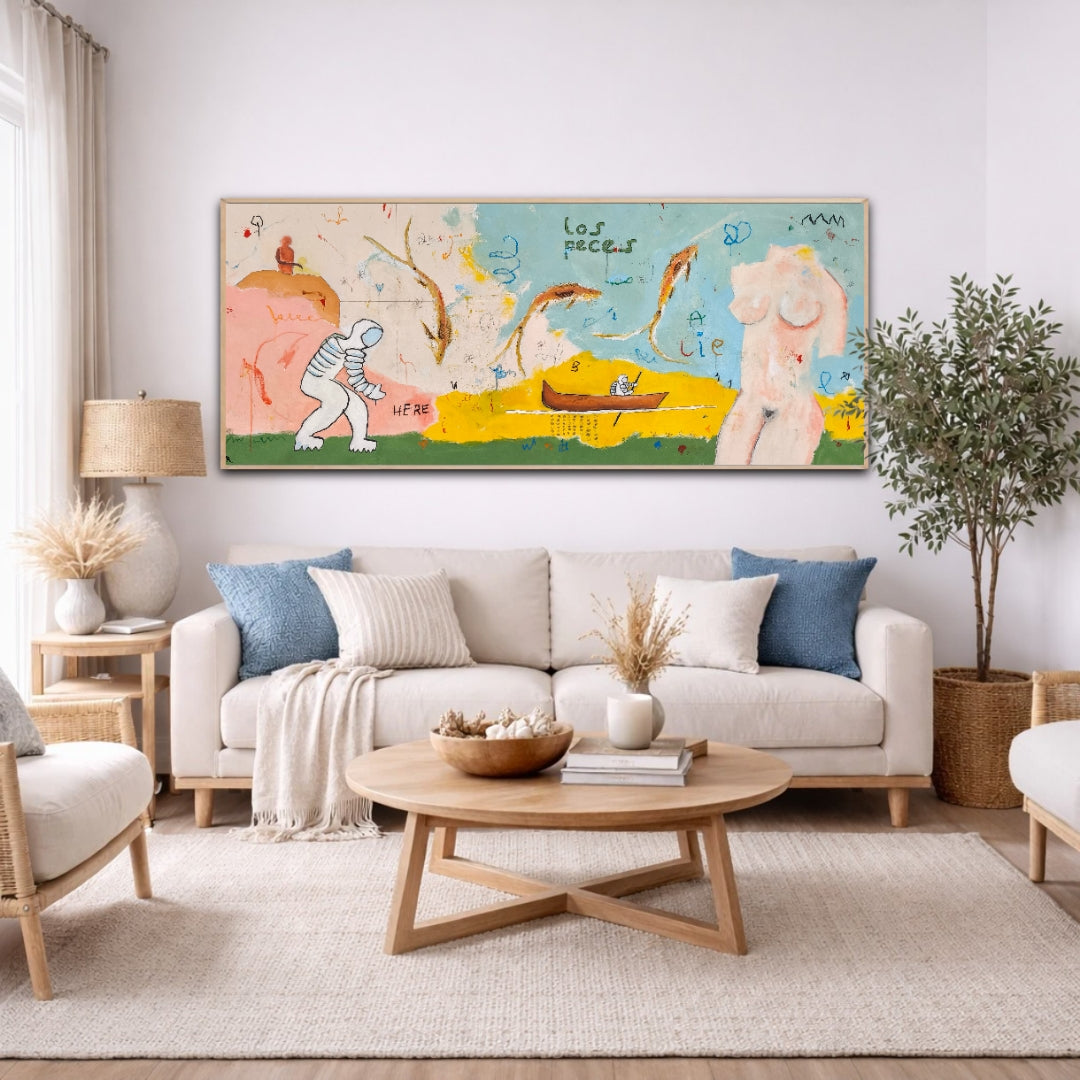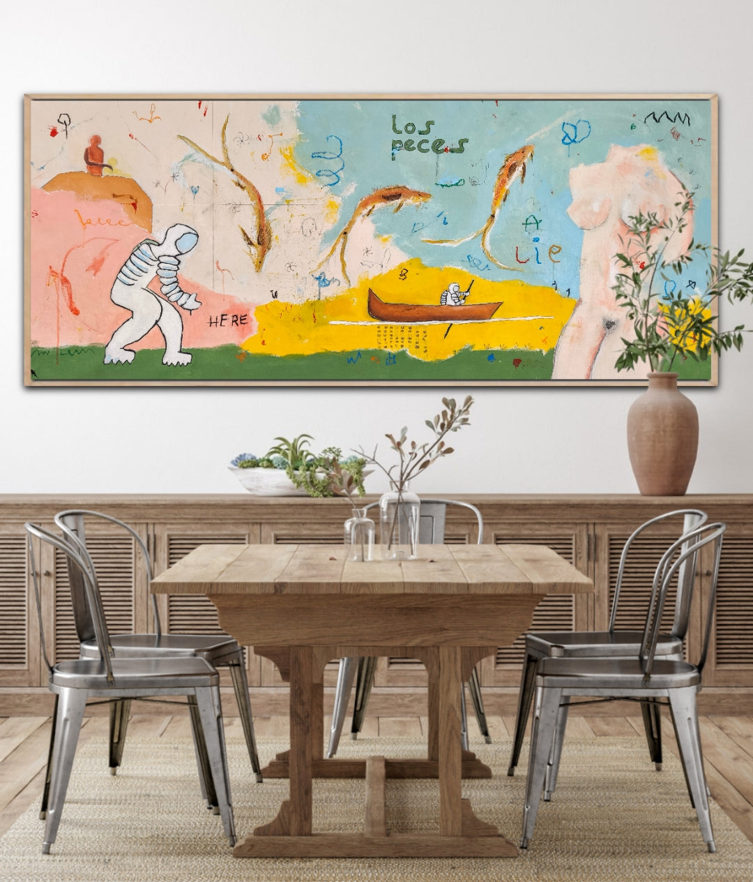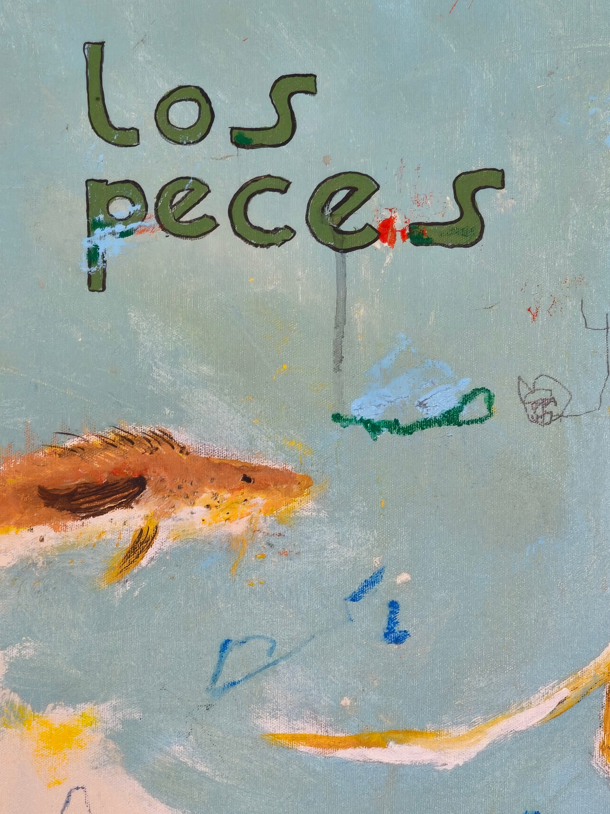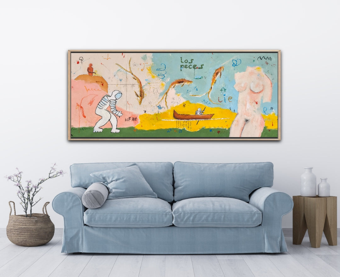 Técnica: acrílico, lápiz, carboncillo, gesso, ceras.