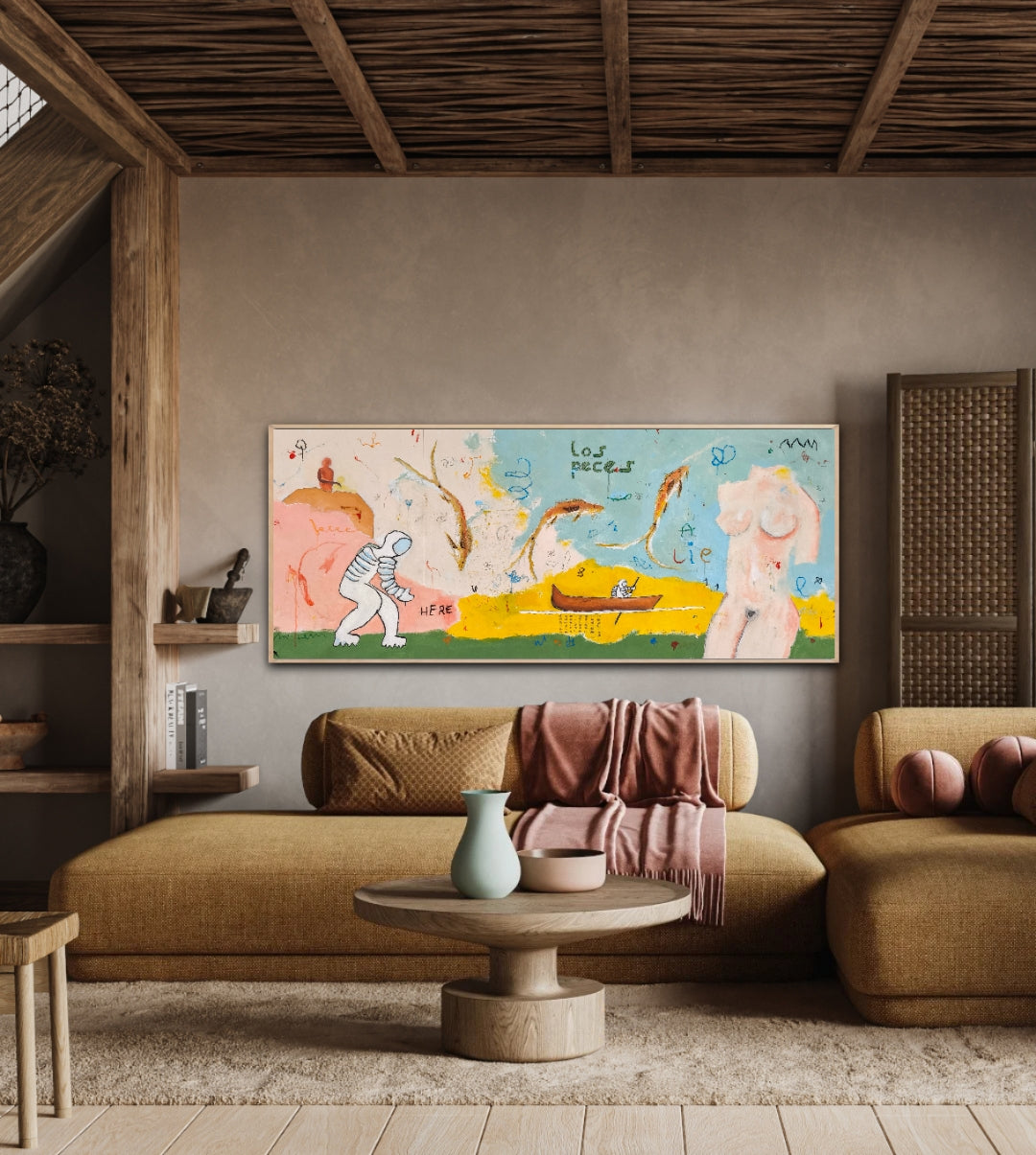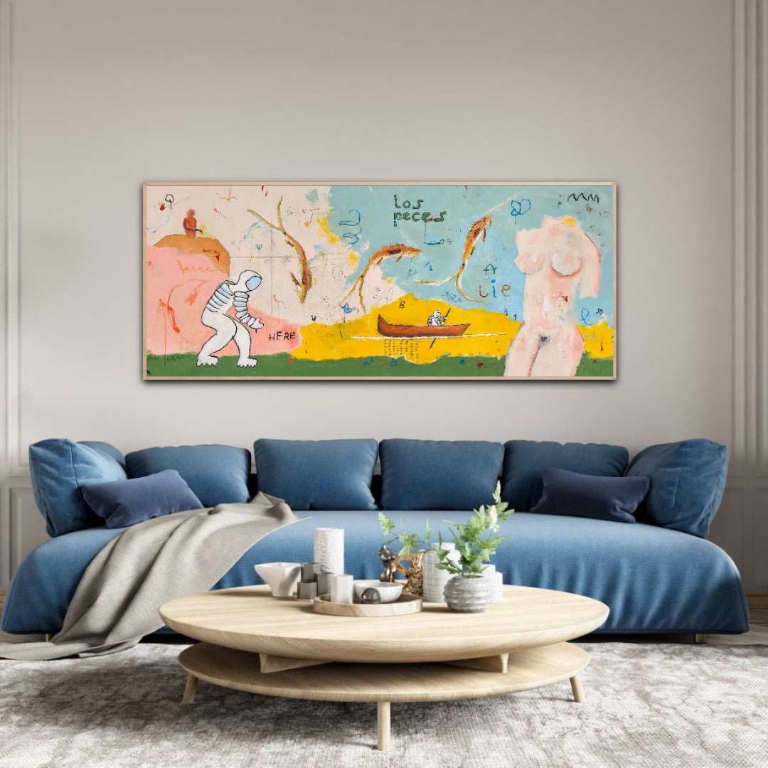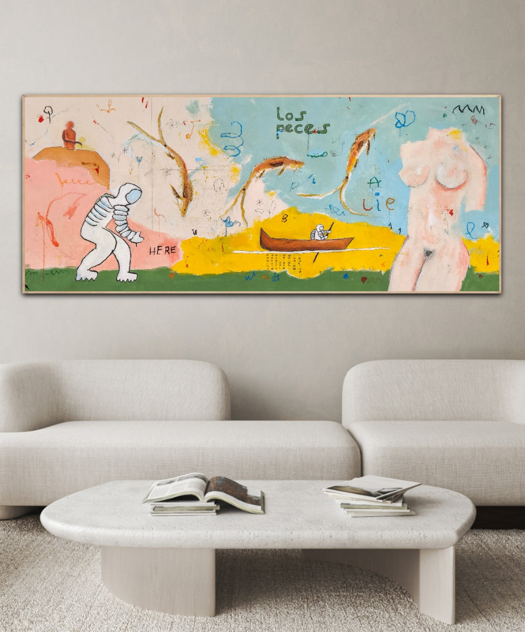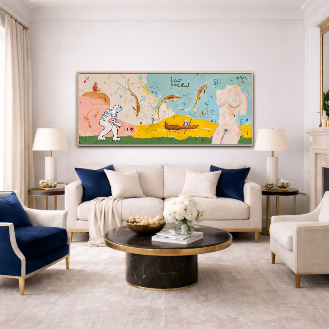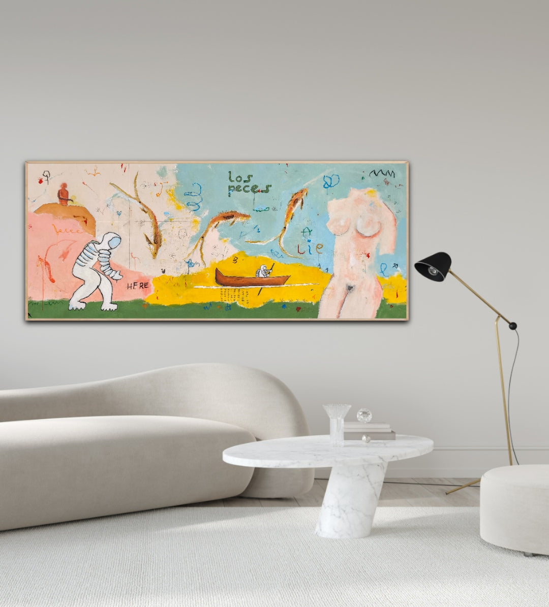 Técnica: acrílico, lápiz, carboncillo, gesso, ceras.