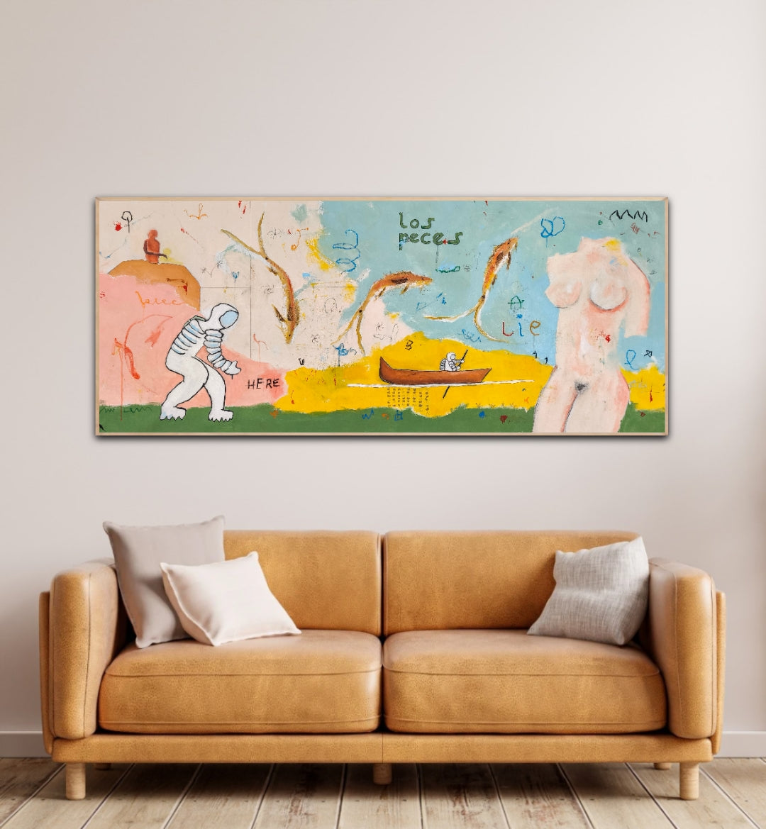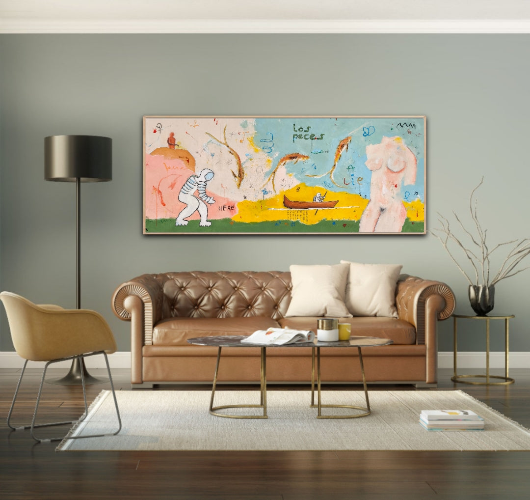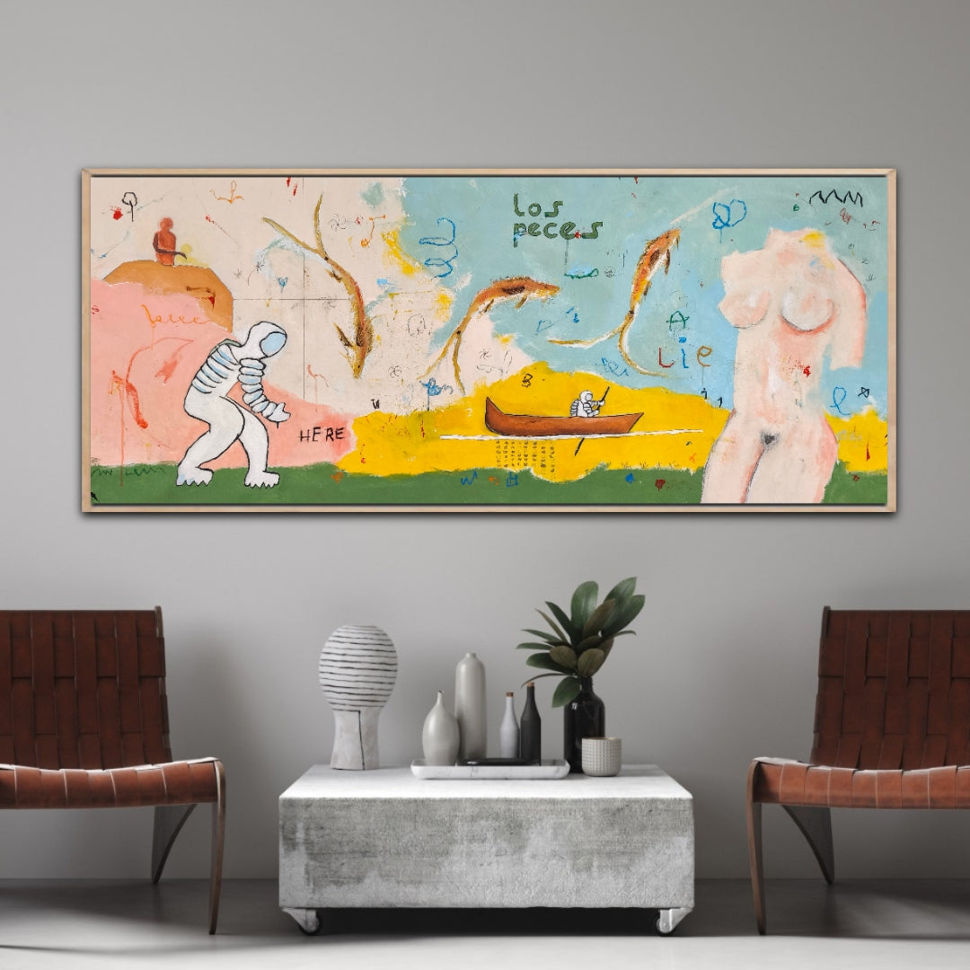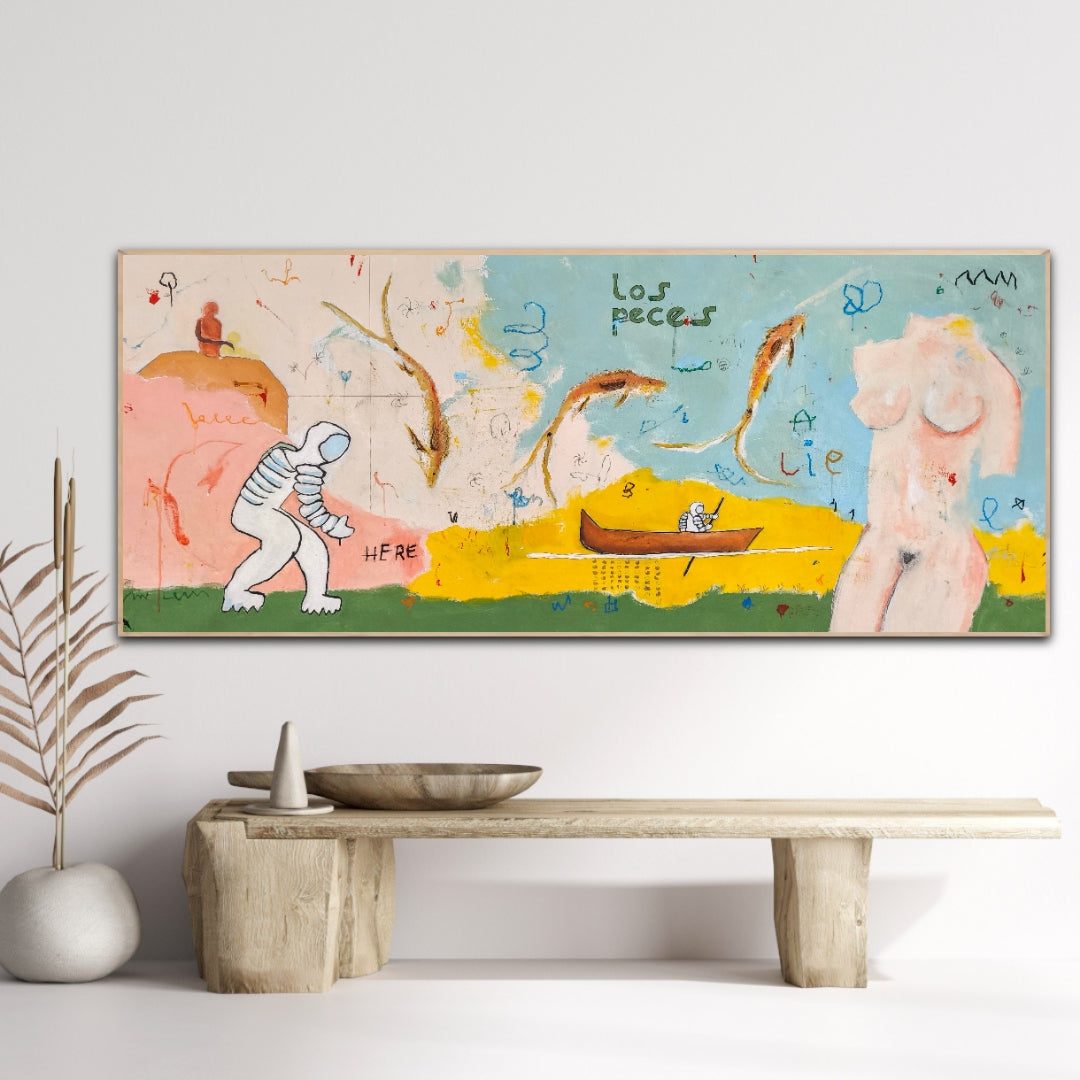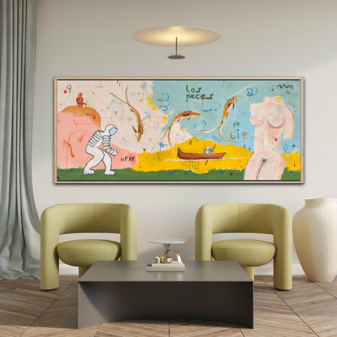 Técnica: acrílico, lápiz, carboncillo, gesso, ceras.