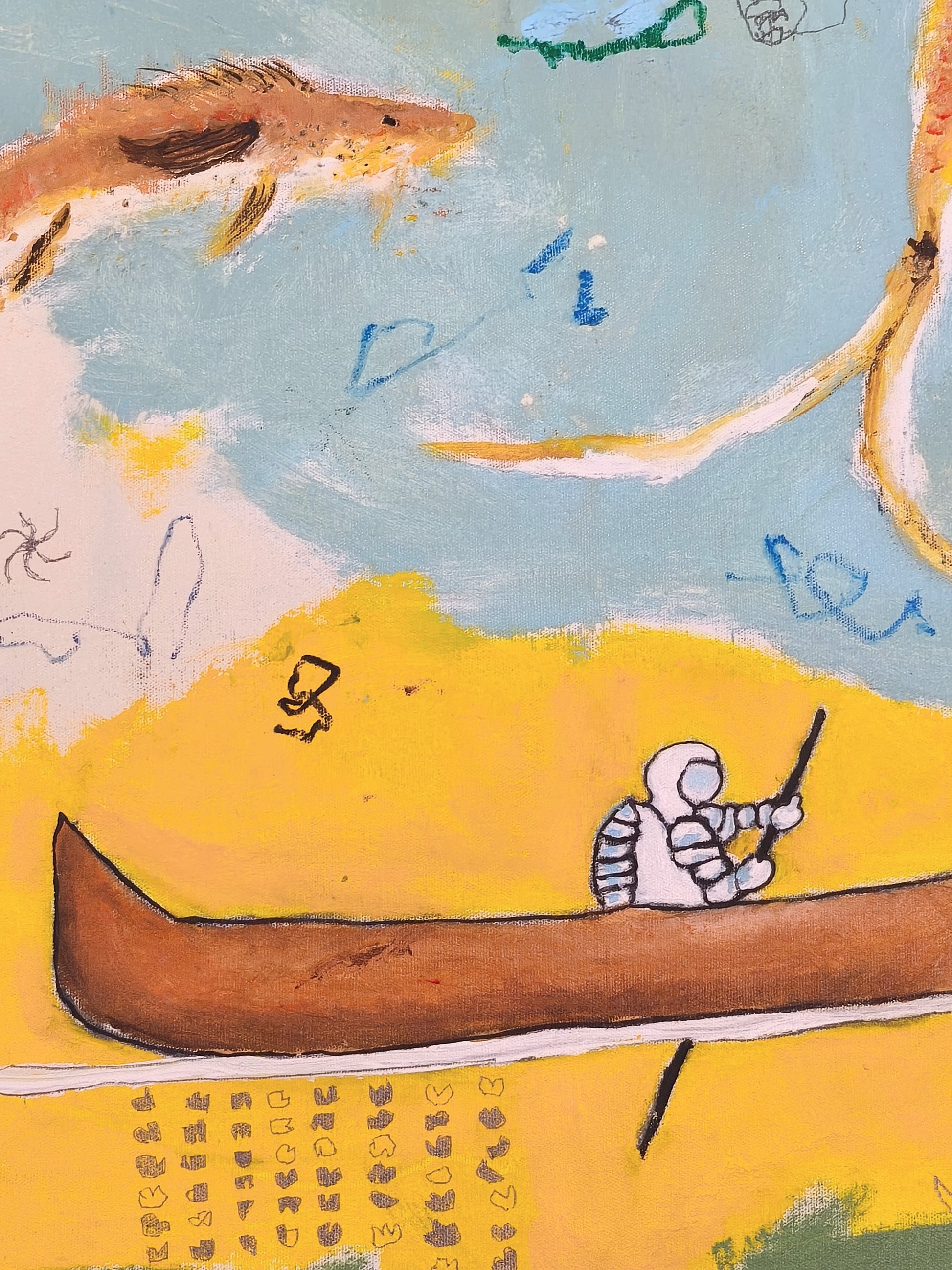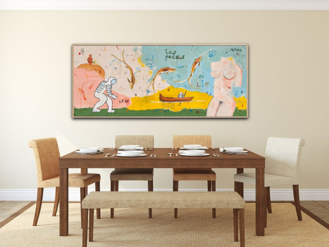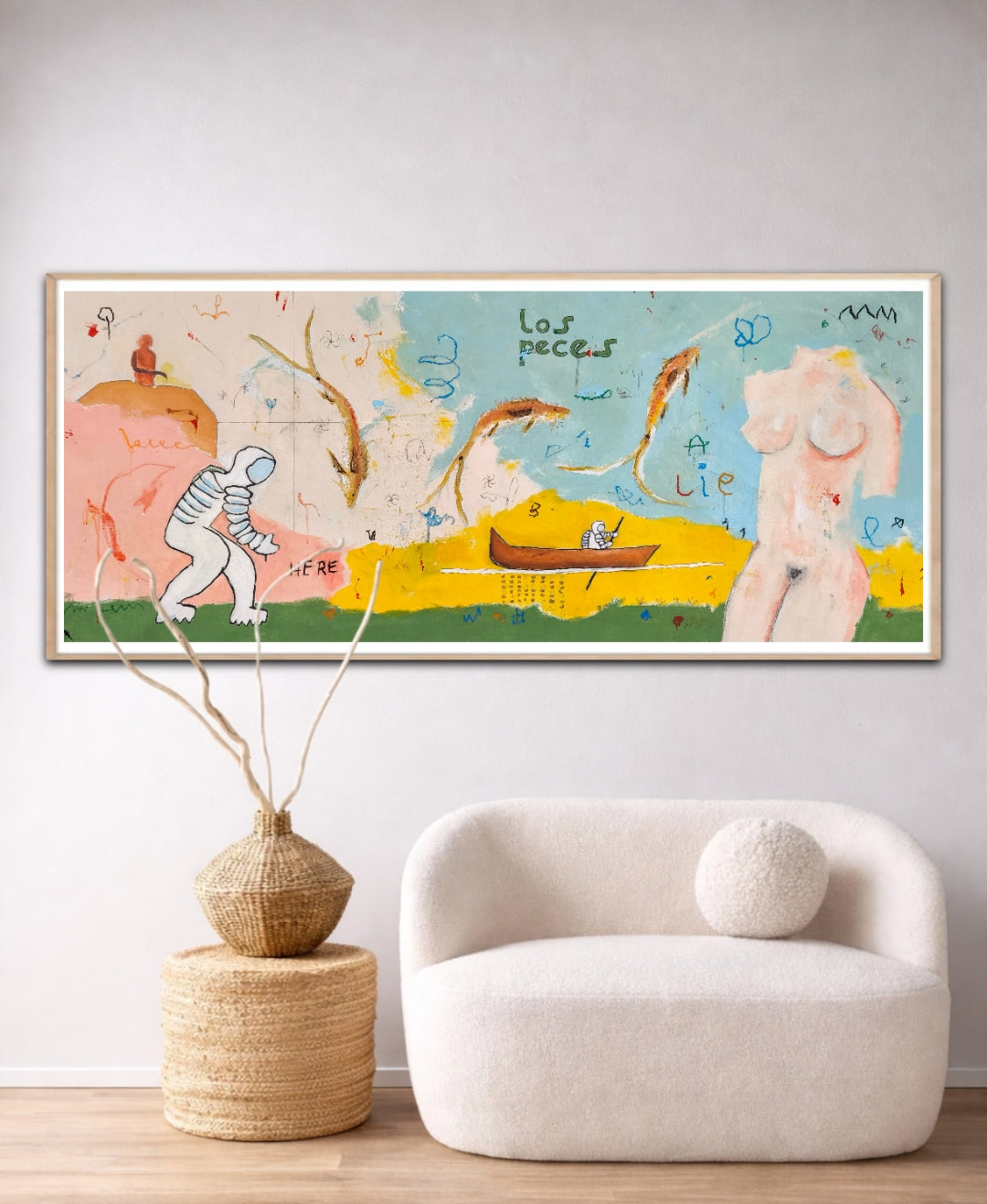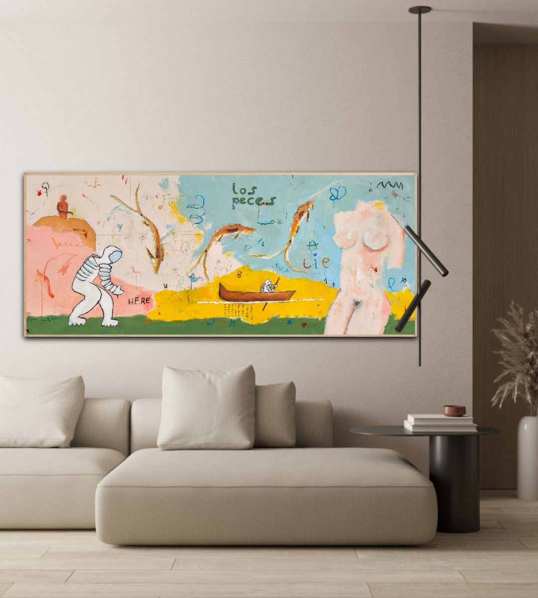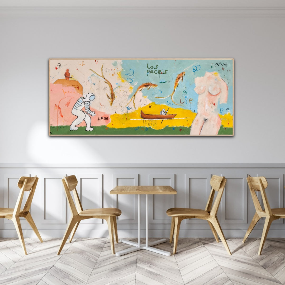 Técnica: acrílico, lápiz, carboncillo, gesso, ceras.