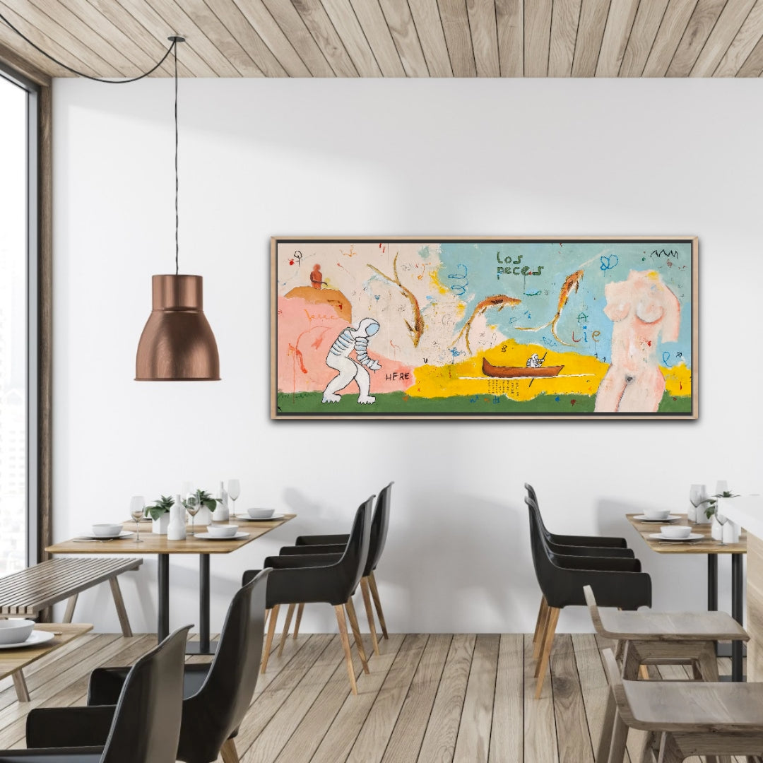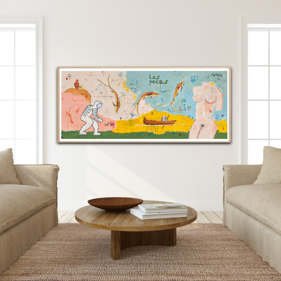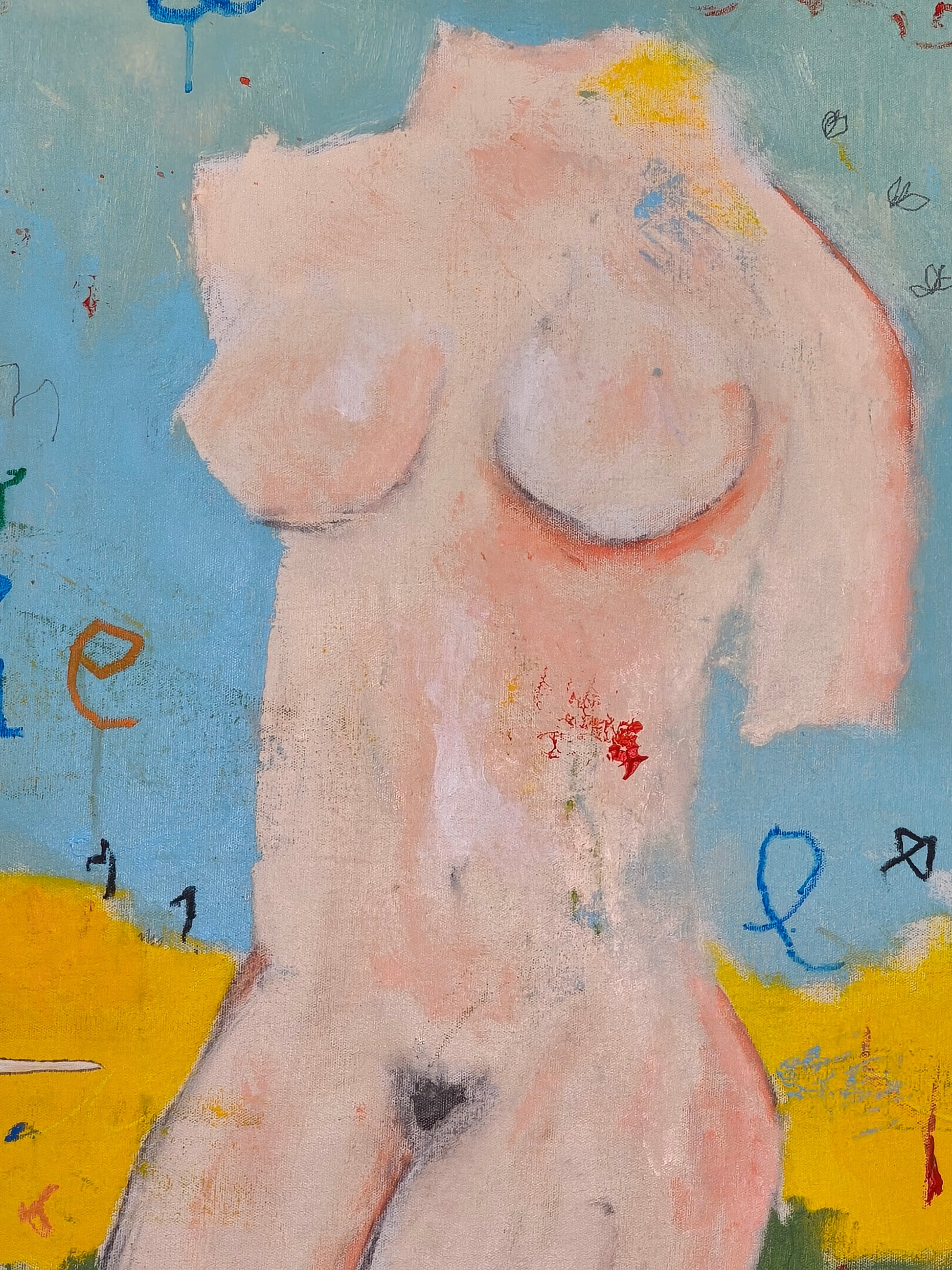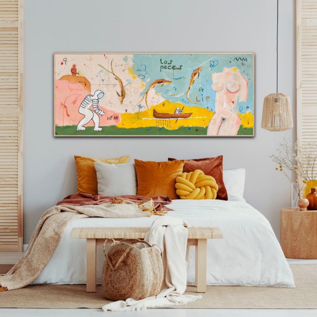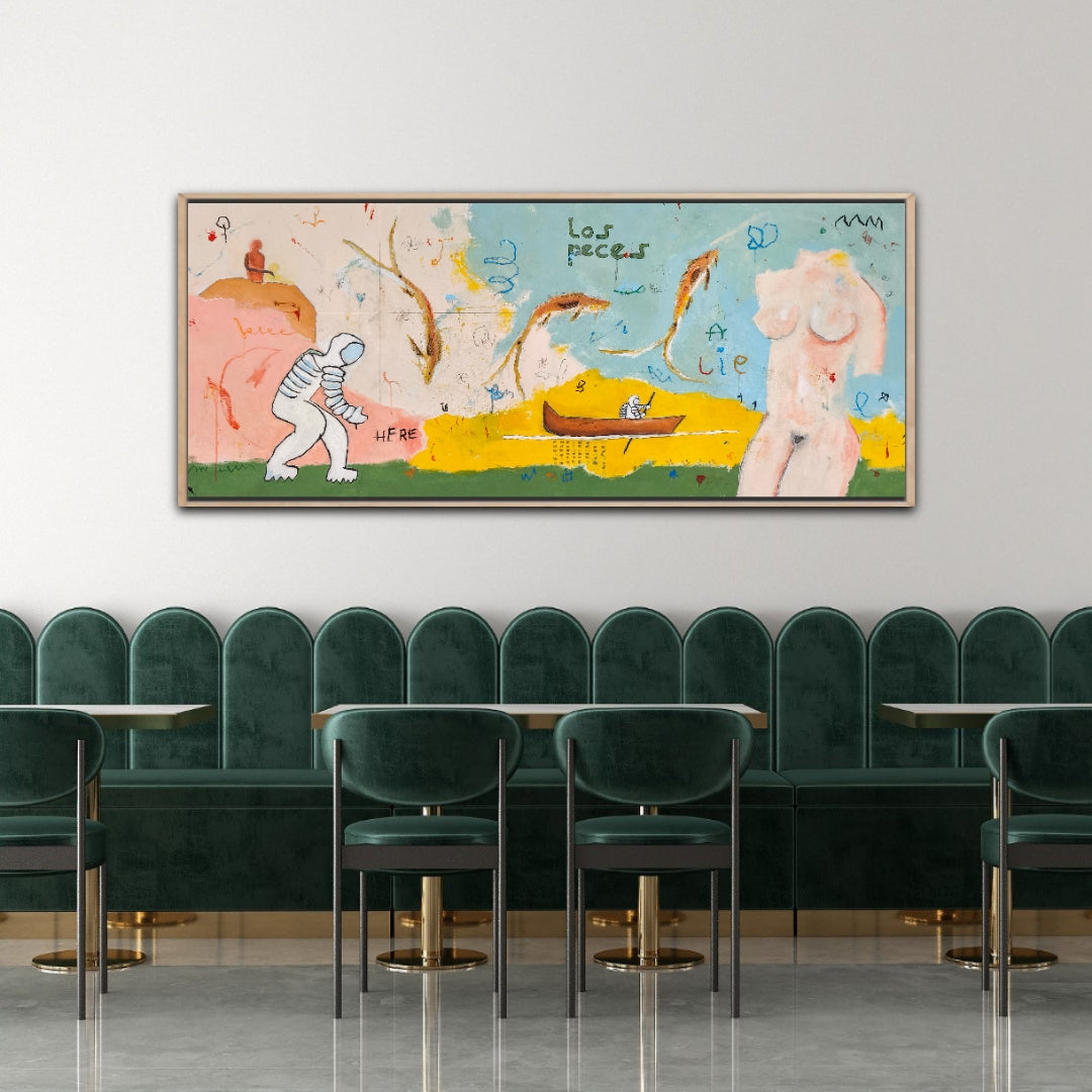 Técnica: acrílico, lápiz, carboncillo, gesso, ceras.