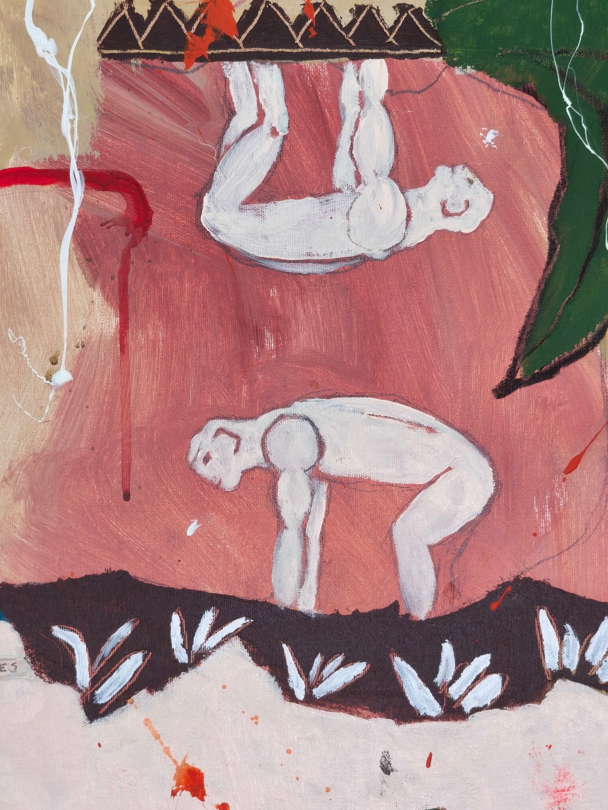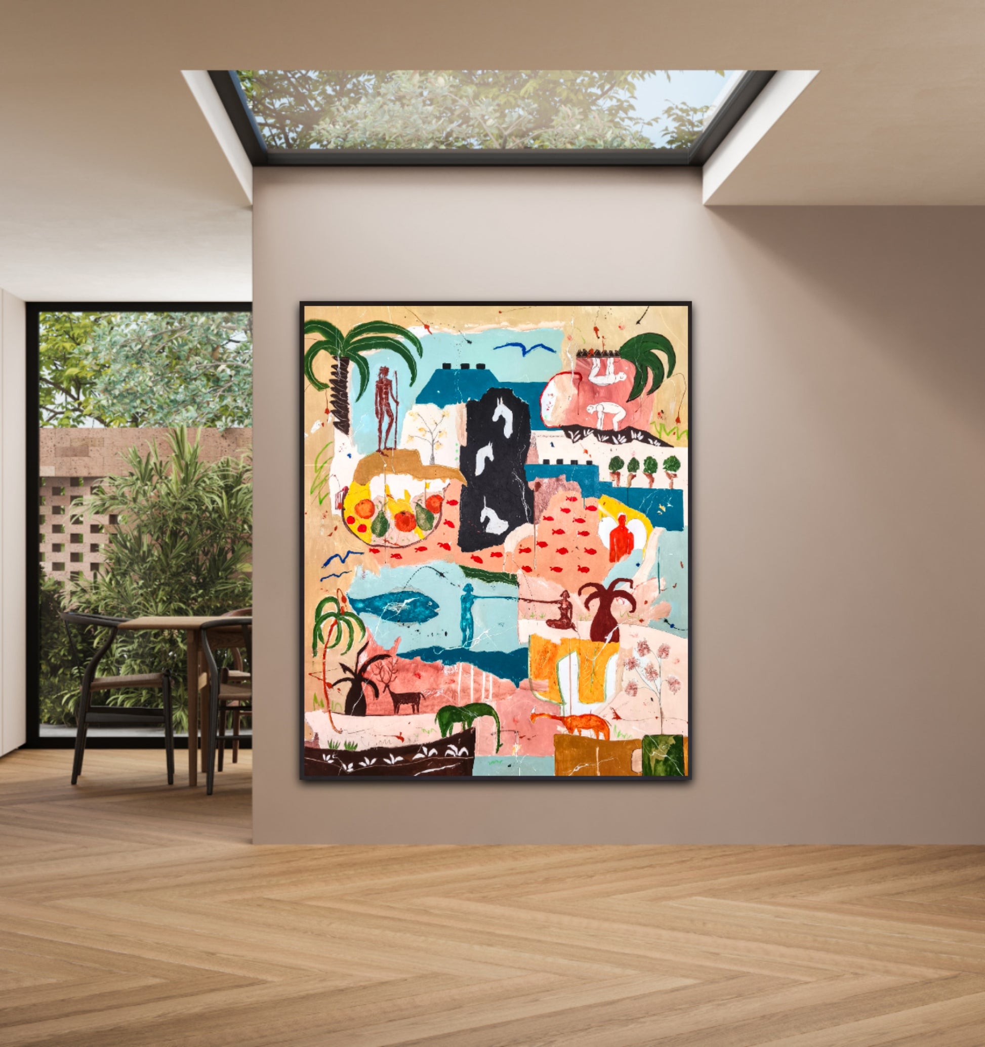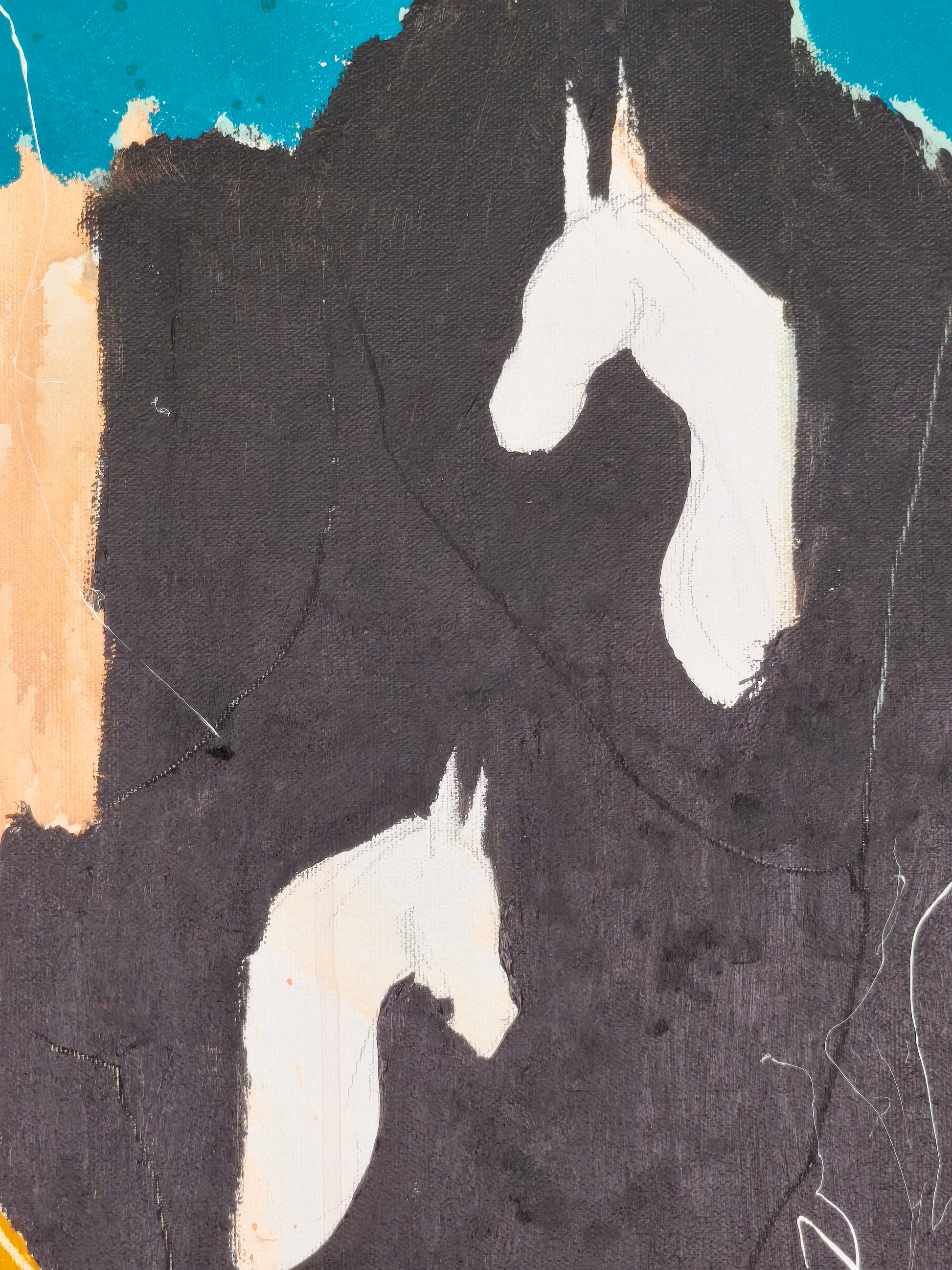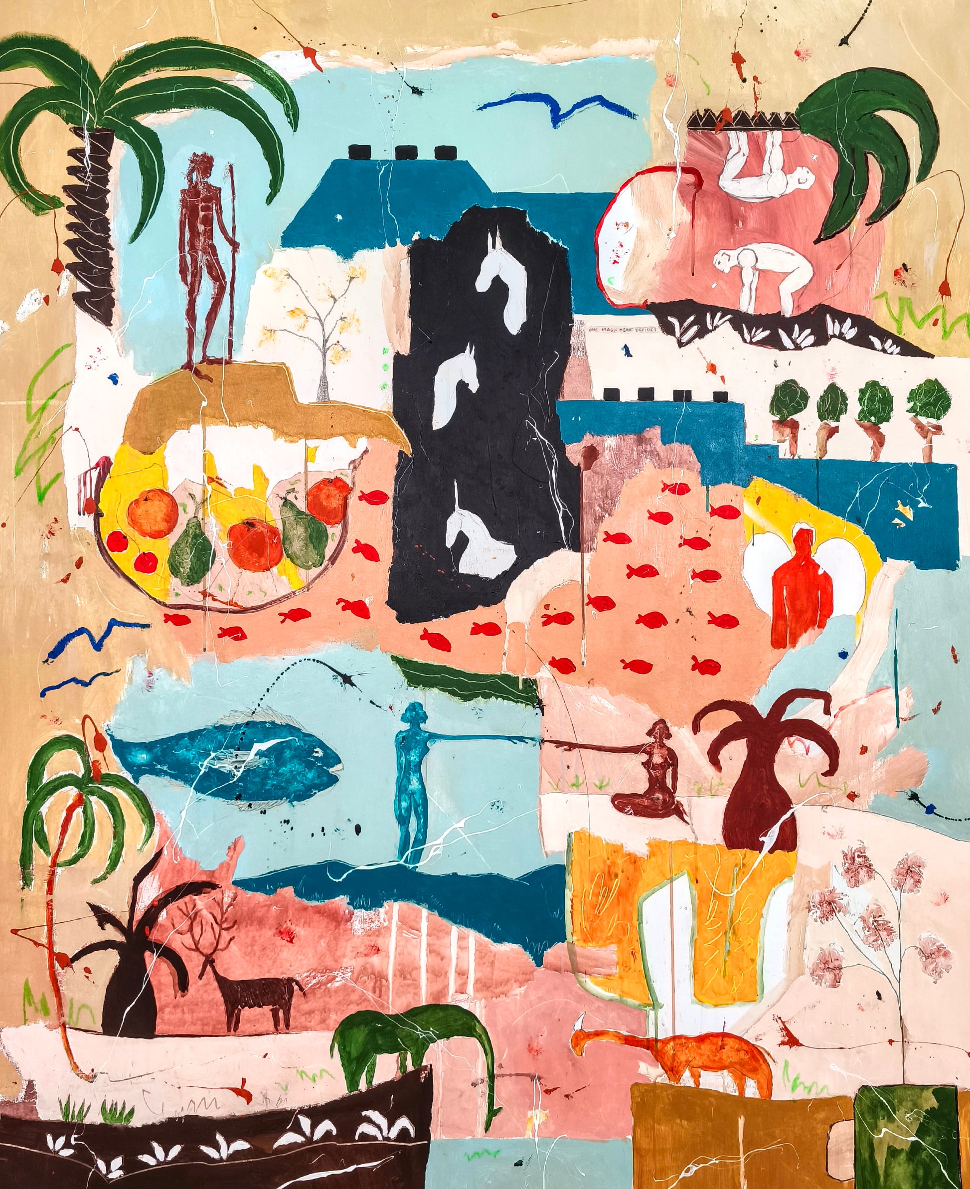 Técnica: acrílico, pigmentos, lápiz, carboncillo, tinta china y oil stick.