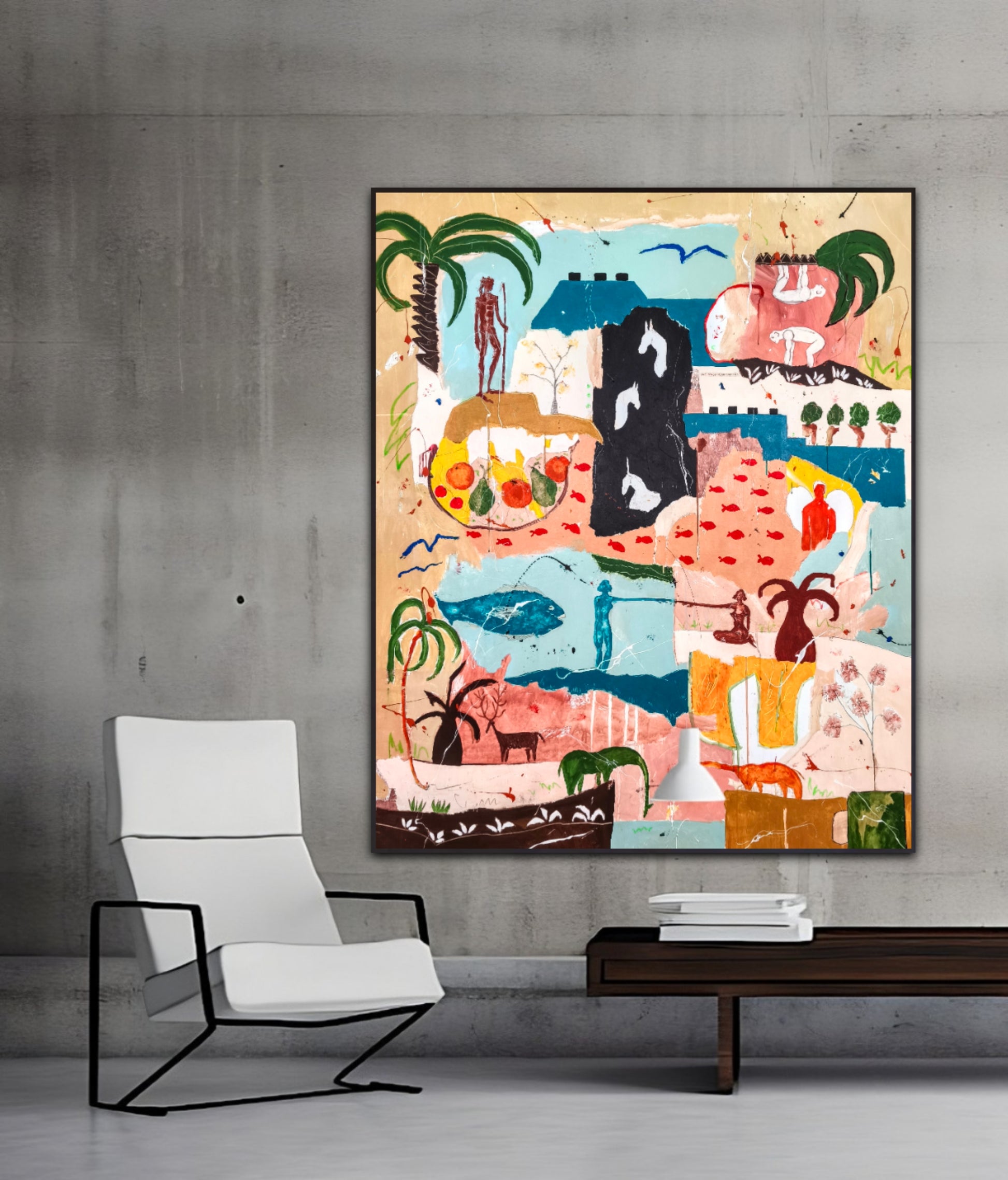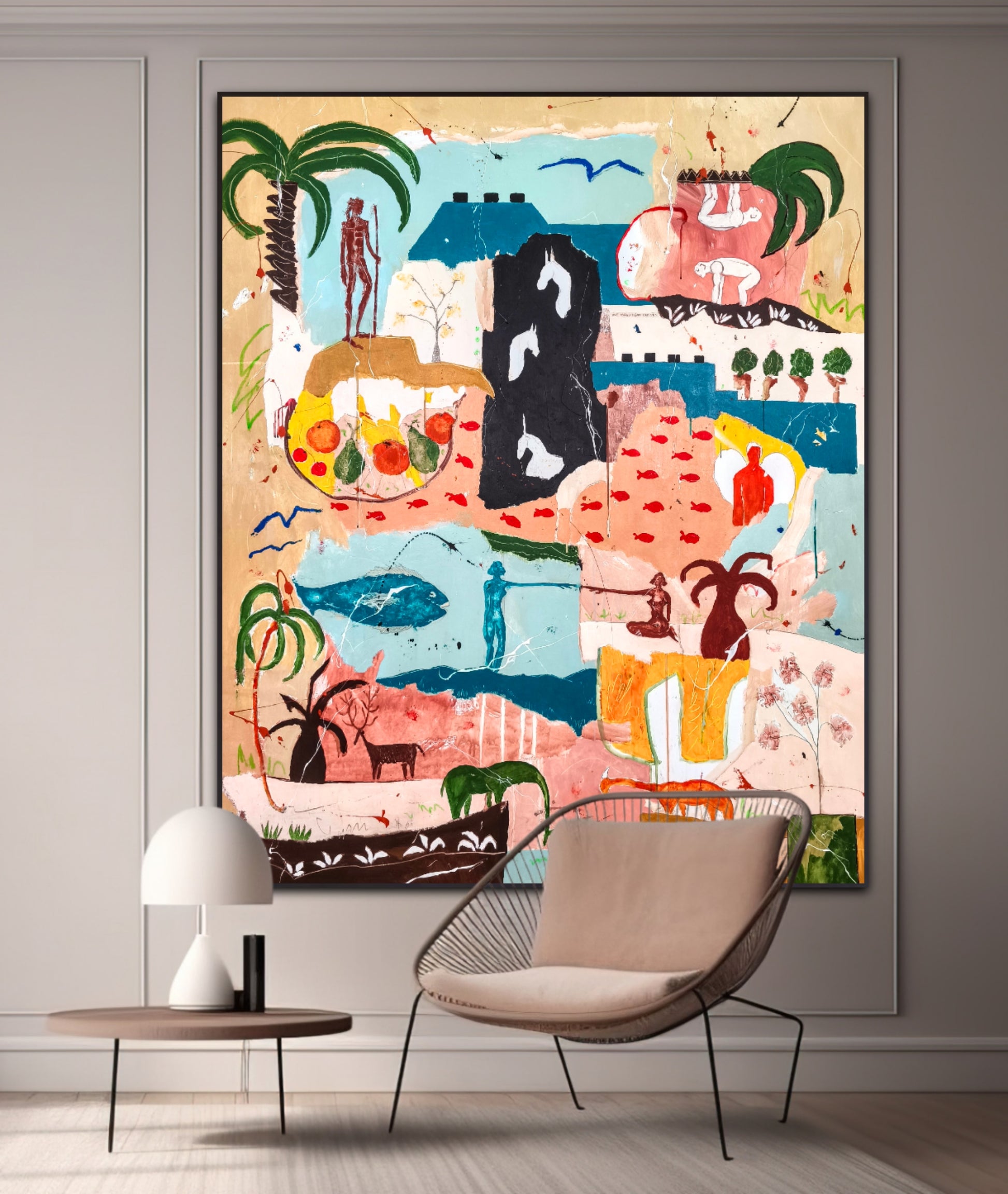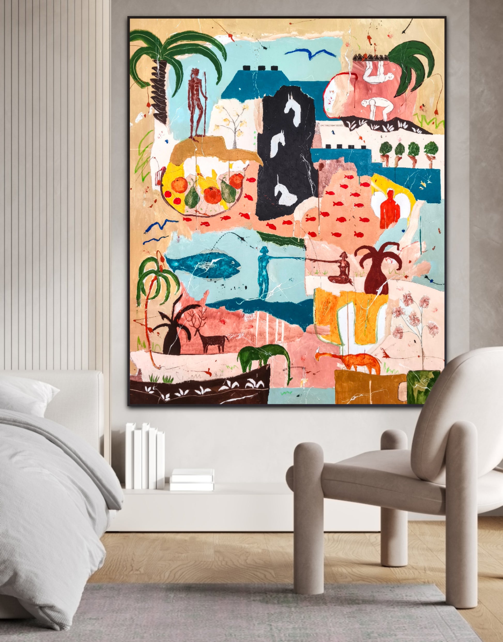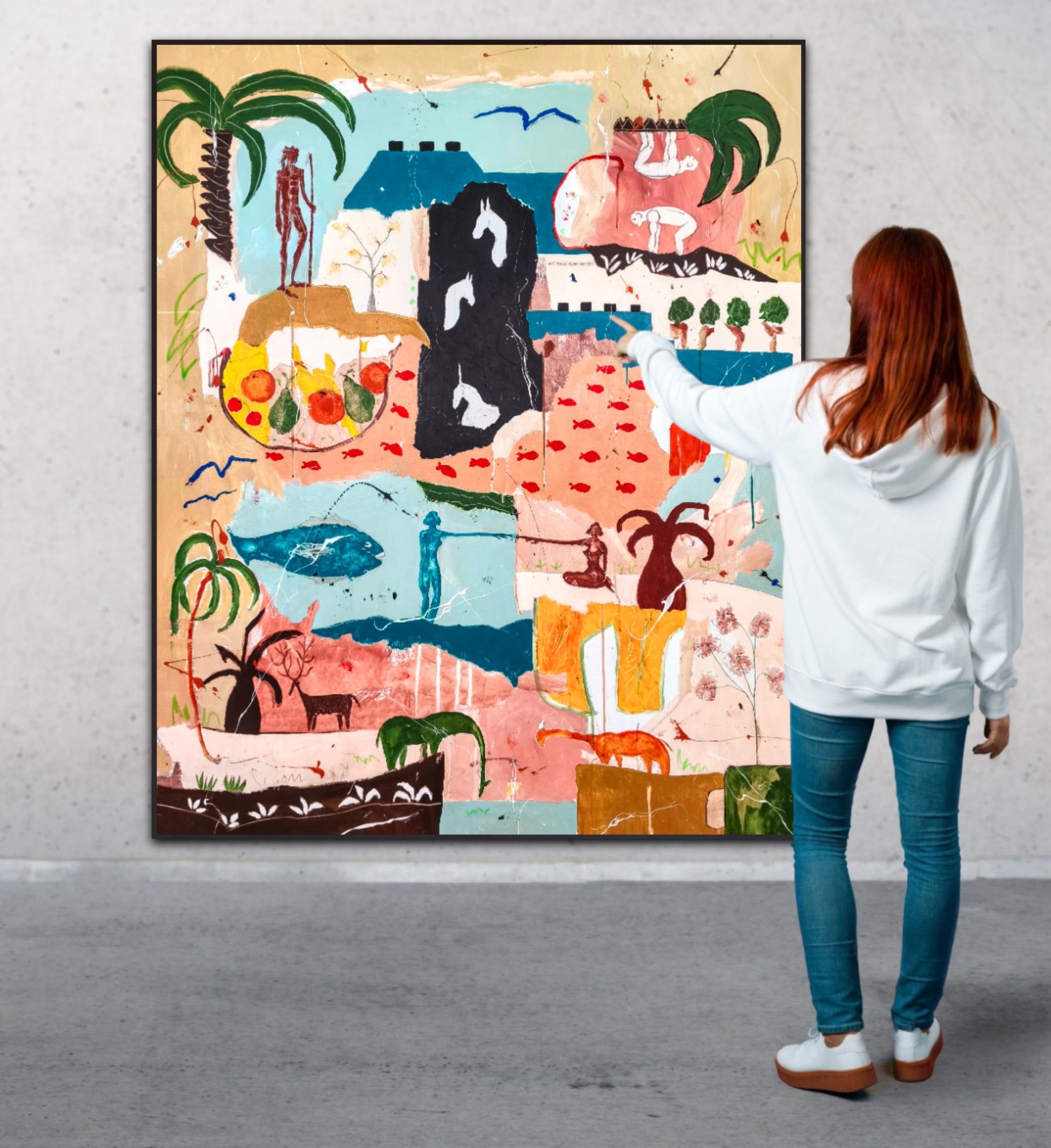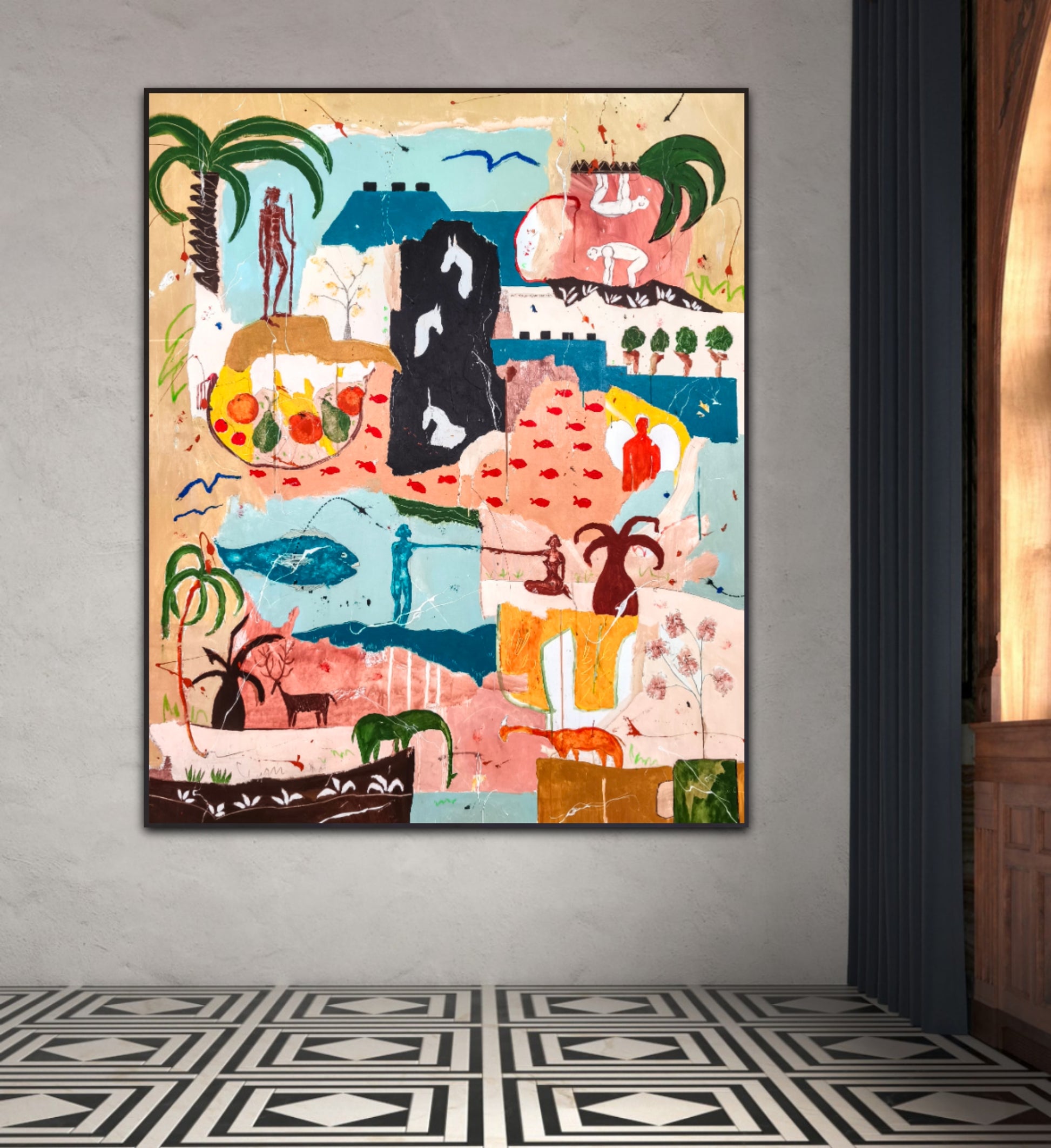 Técnica: acrílico, pigmentos, lápiz, carboncillo, tinta china y oil stick.