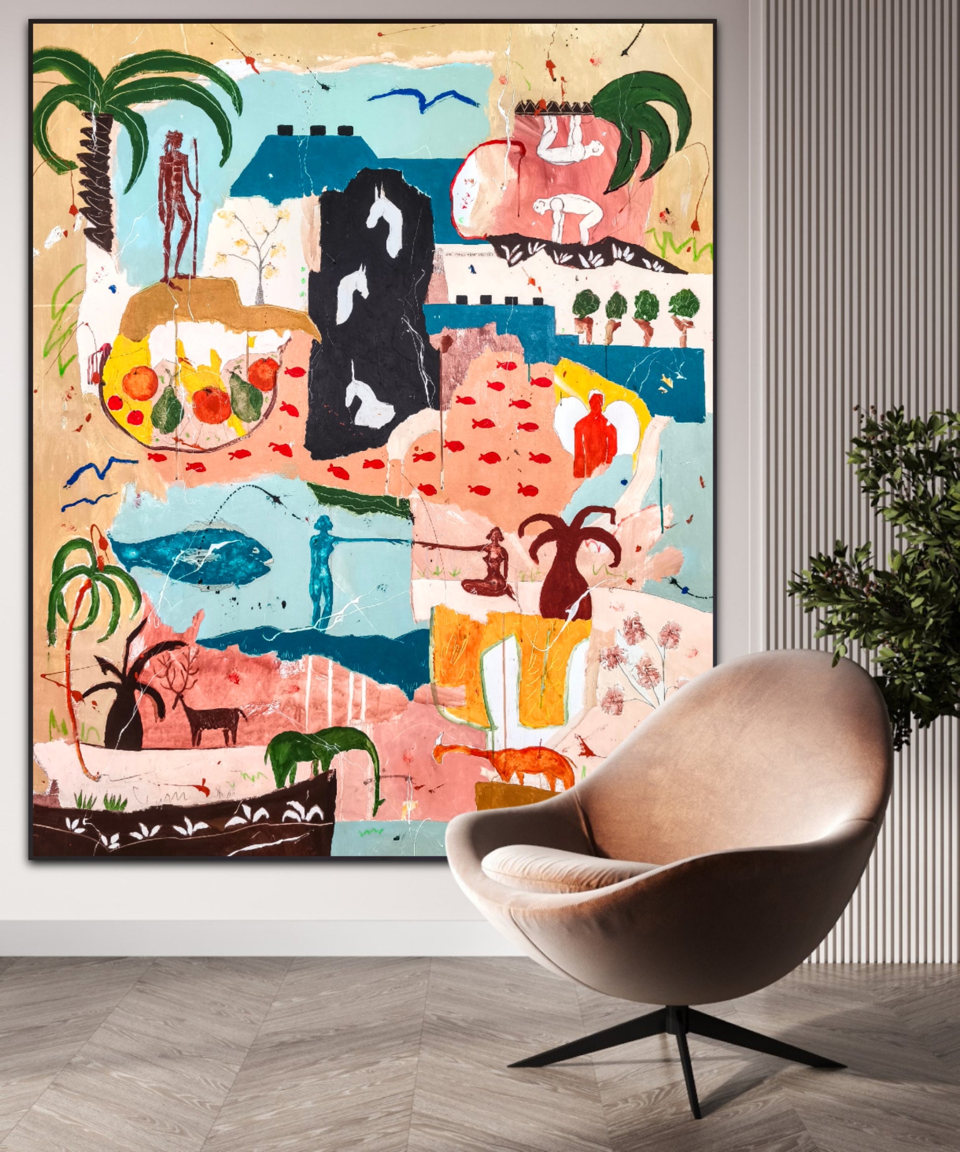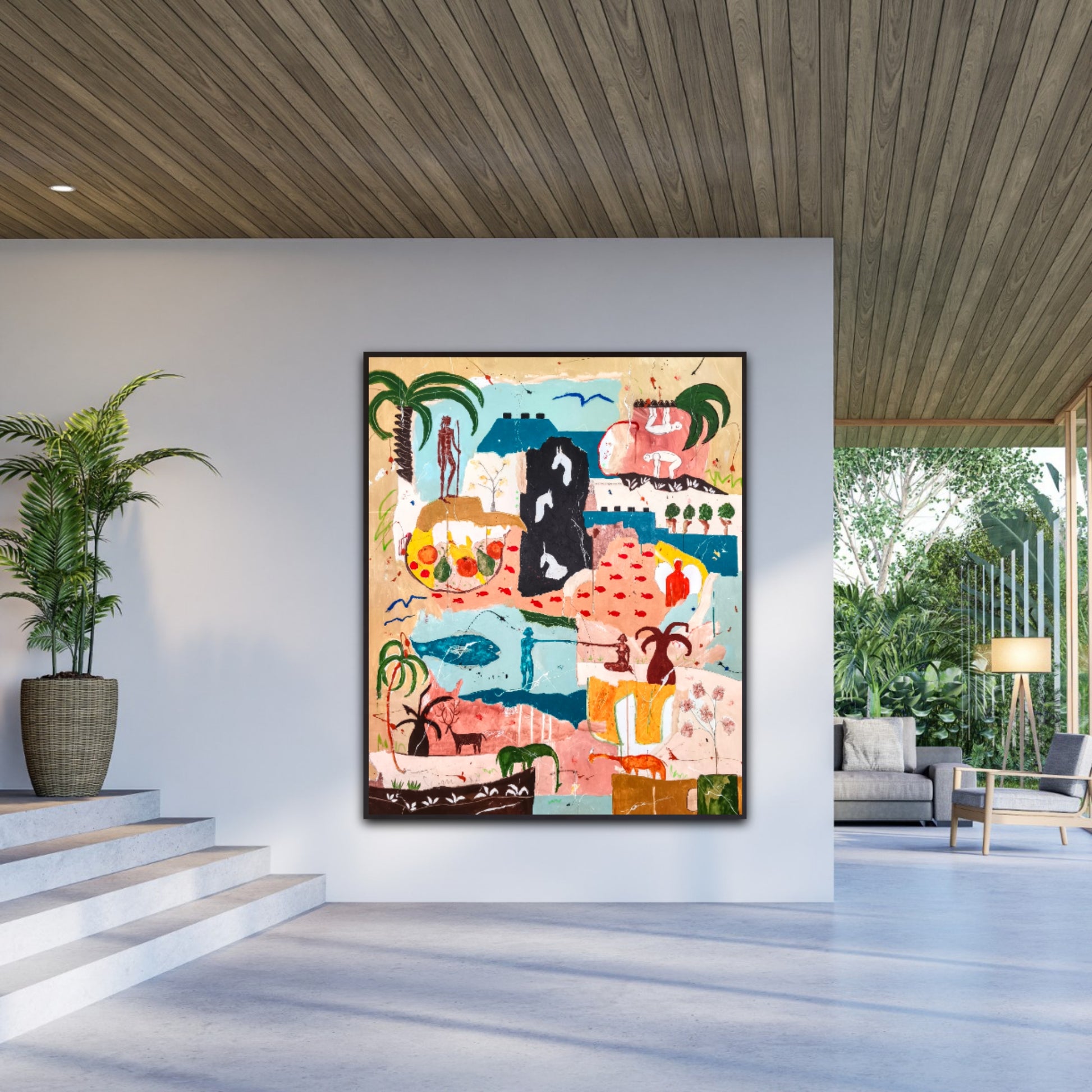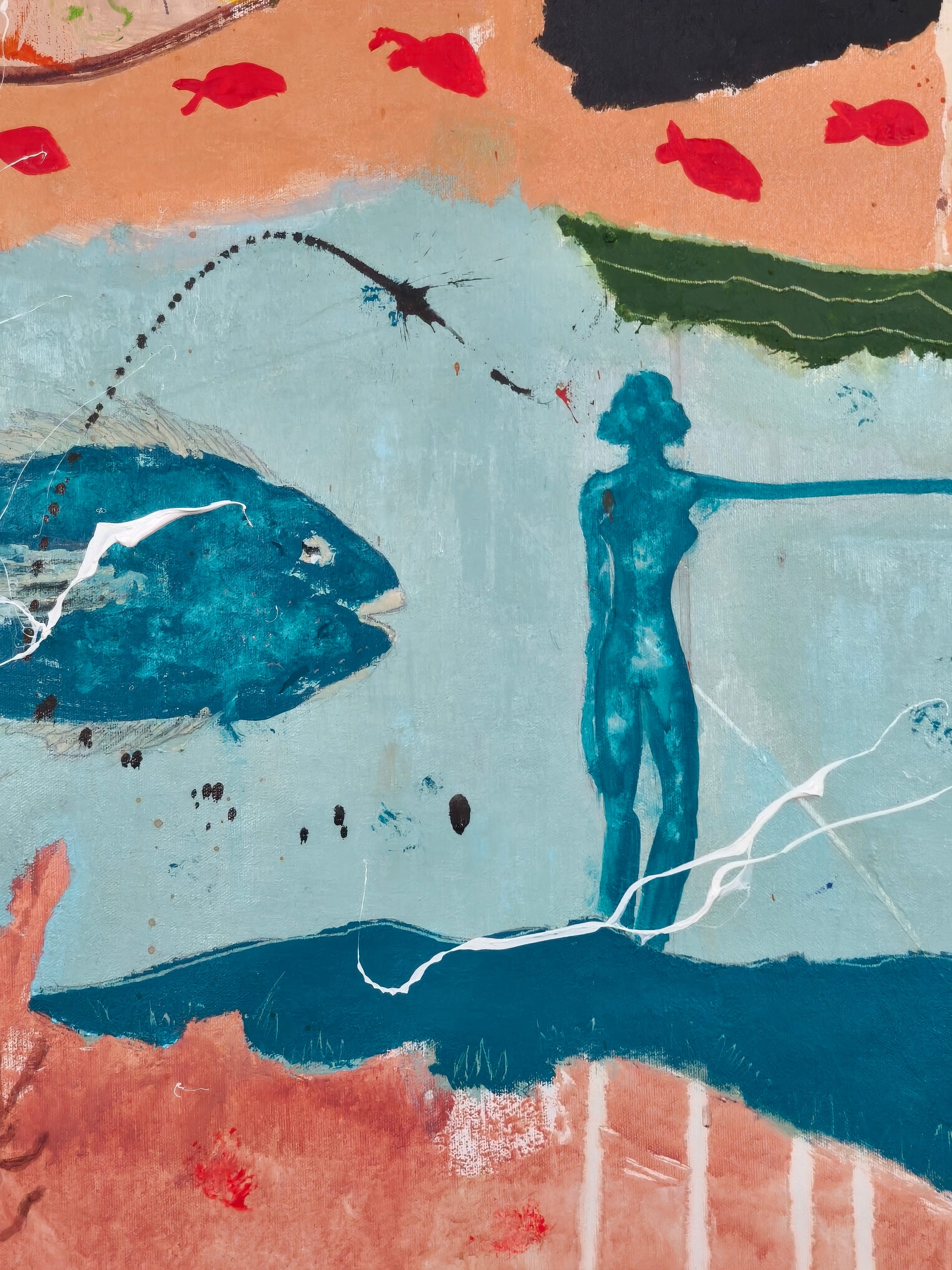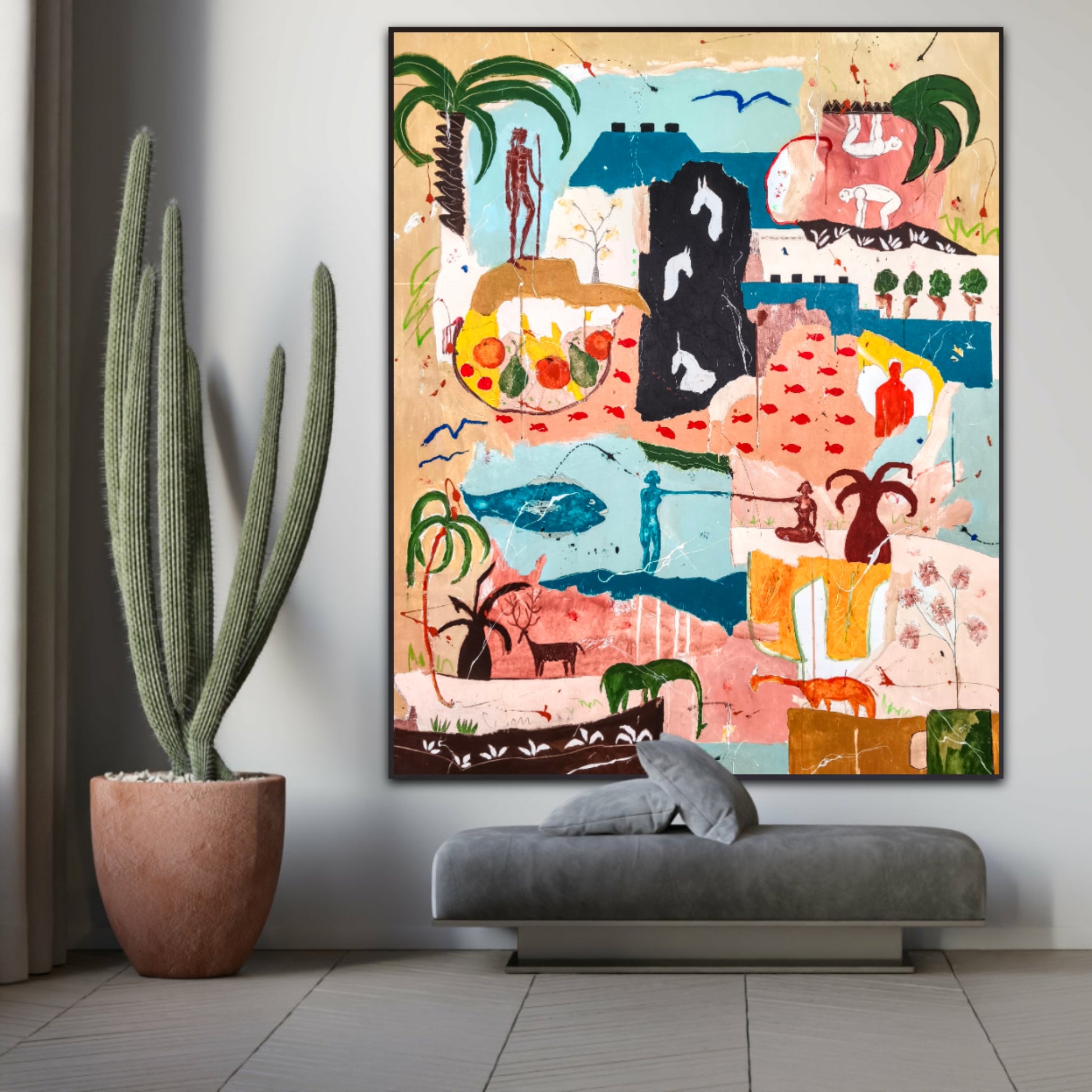Técnica: acrílico, pigmentos, lápiz, carboncillo, tinta china y oil stick.
