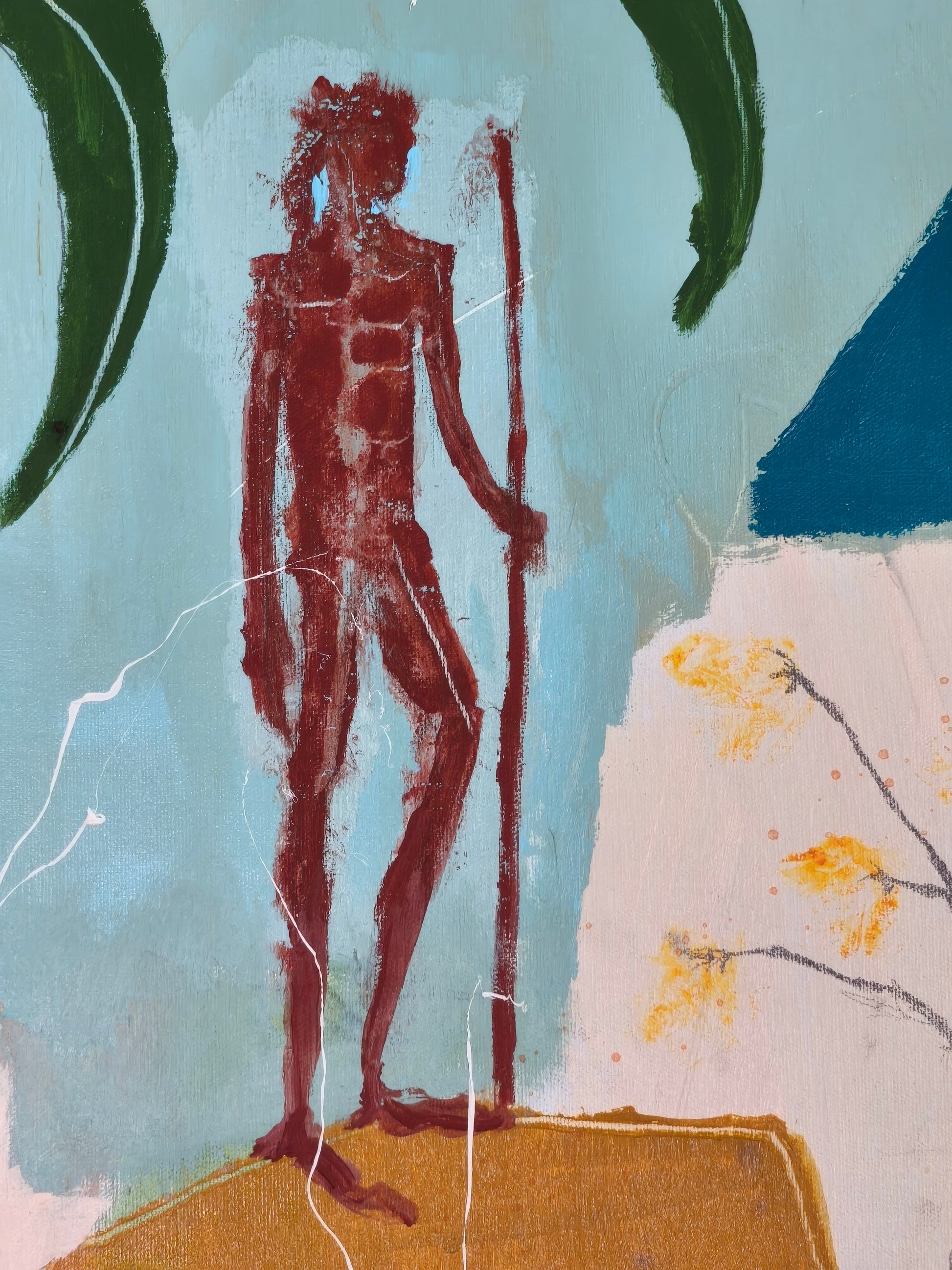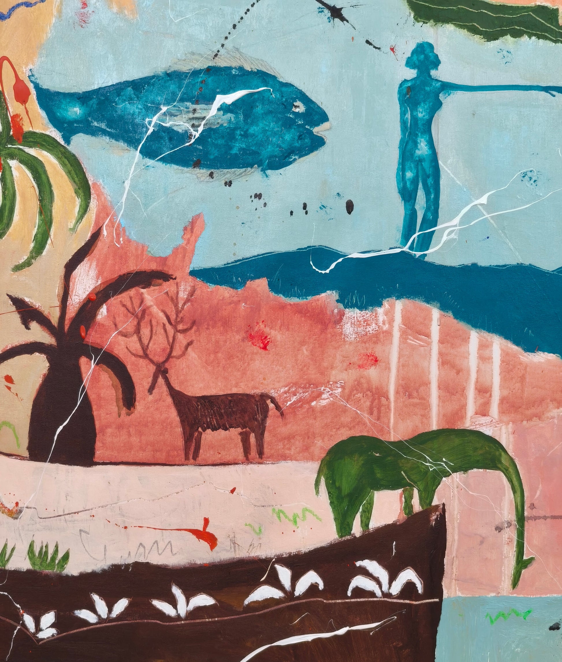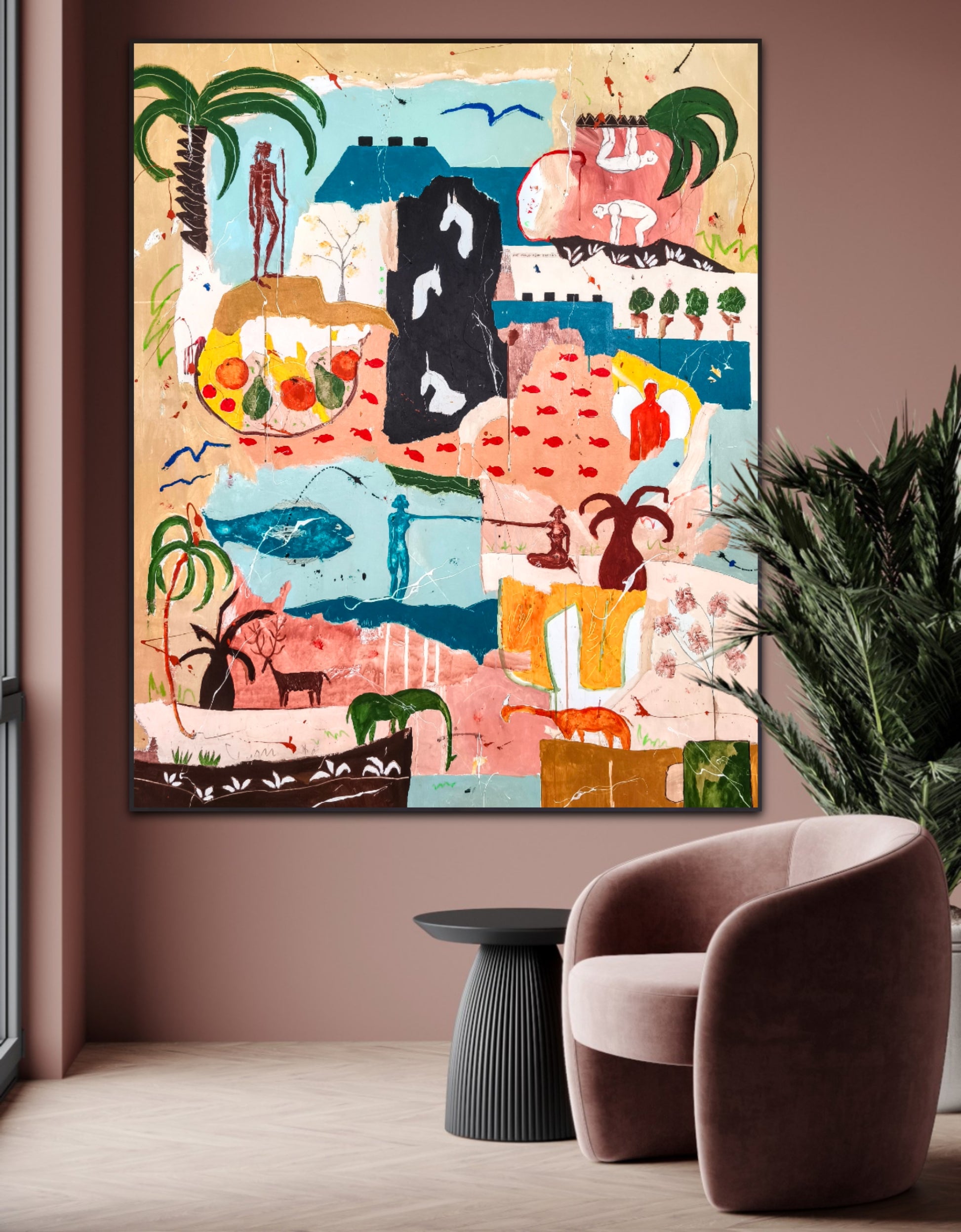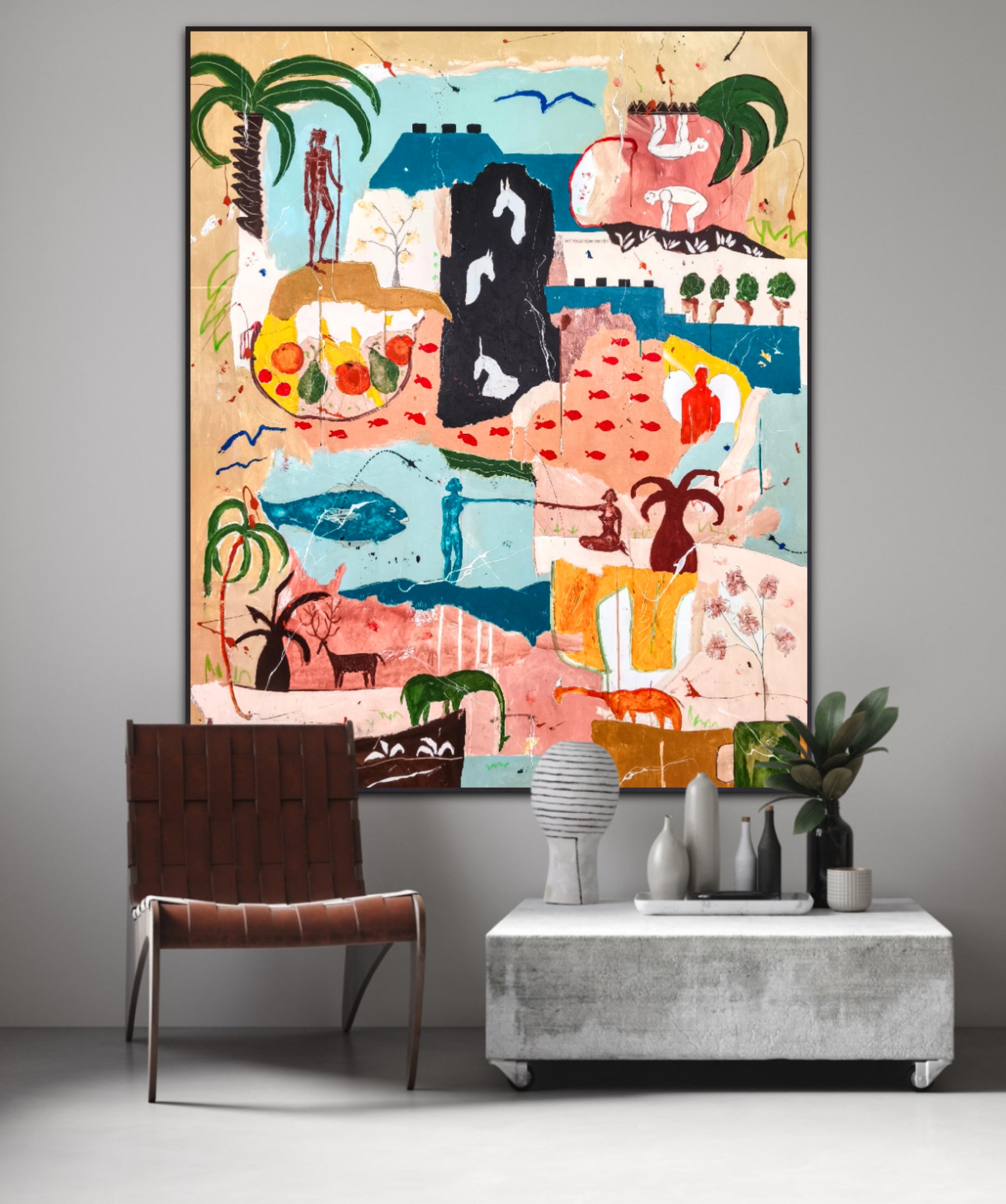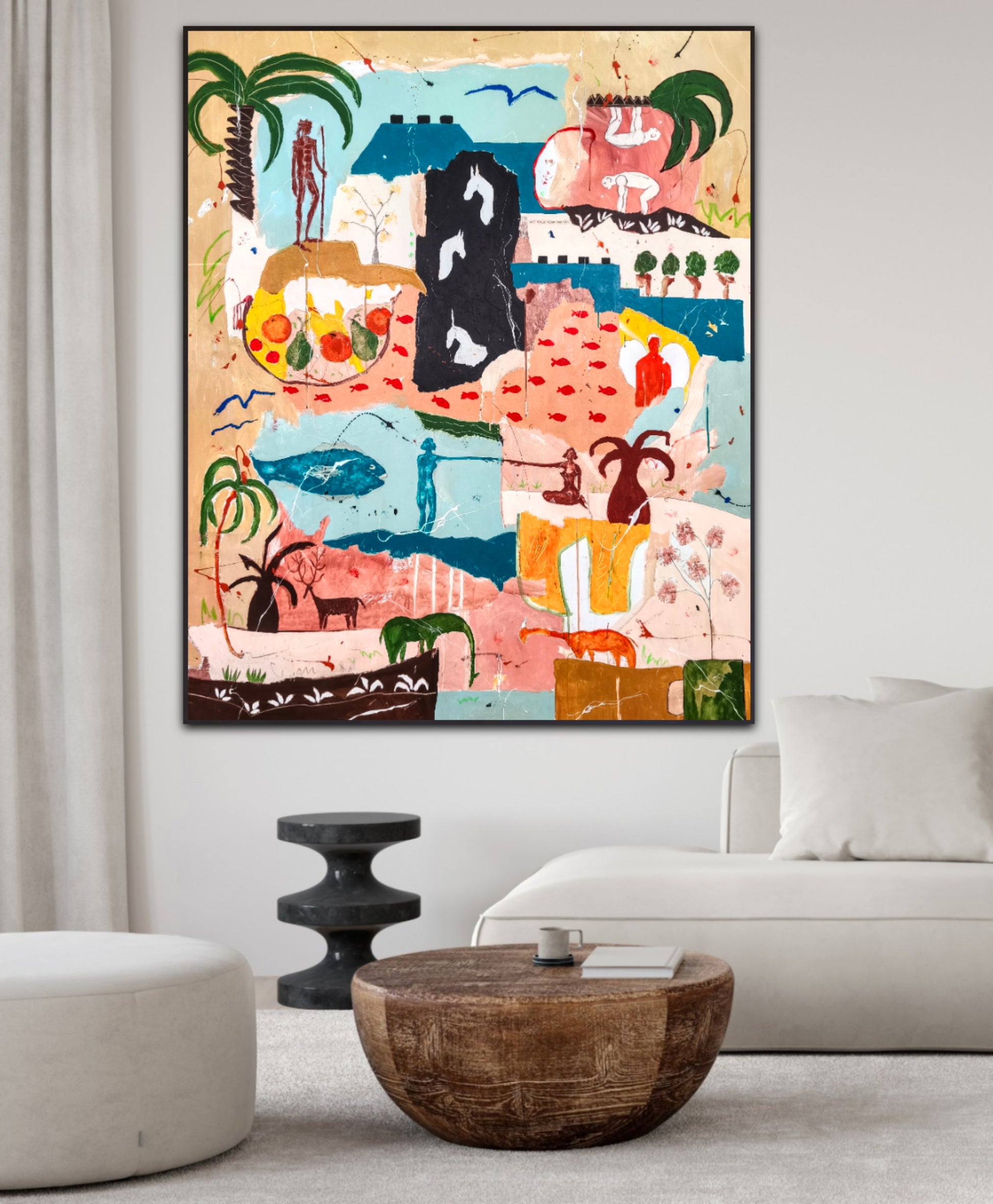Técnica: acrílico, pigmentos, lápiz, carboncillo, tinta china y oil stick.