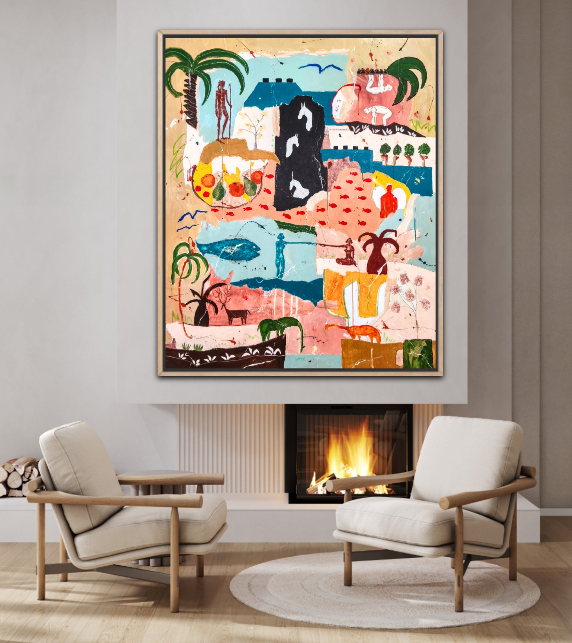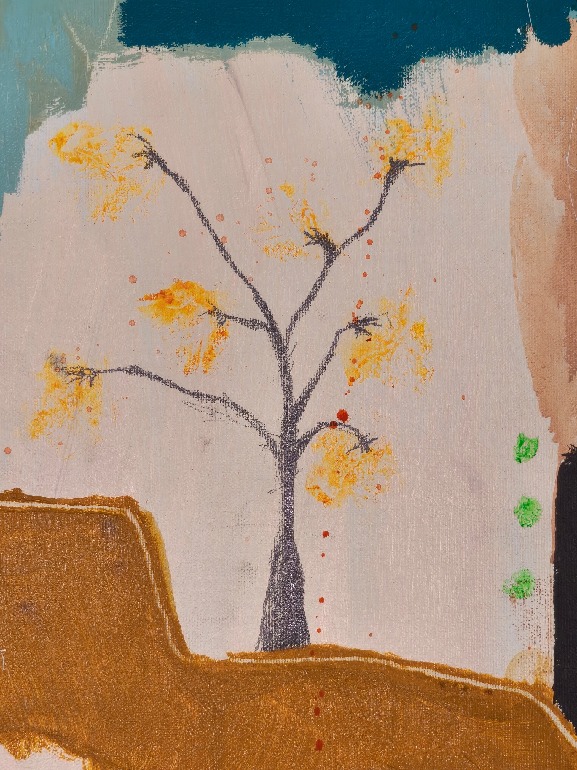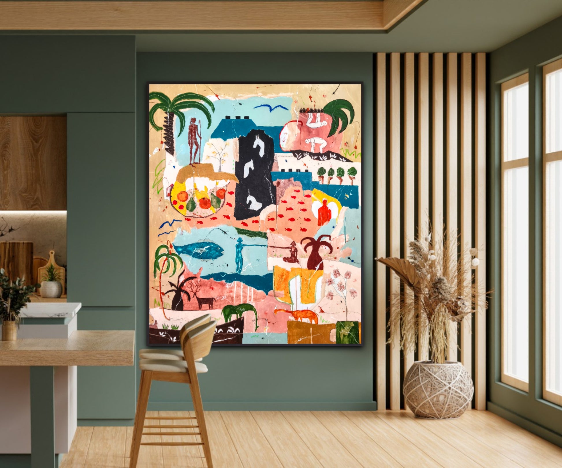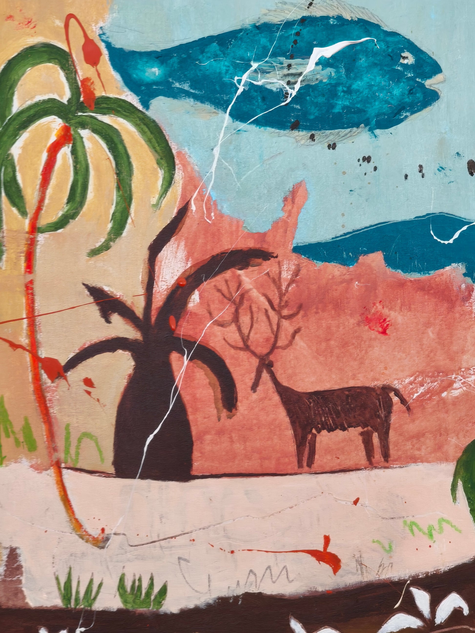Técnica: acrílico, pigmentos, lápiz, carboncillo, tinta china y oil stick.