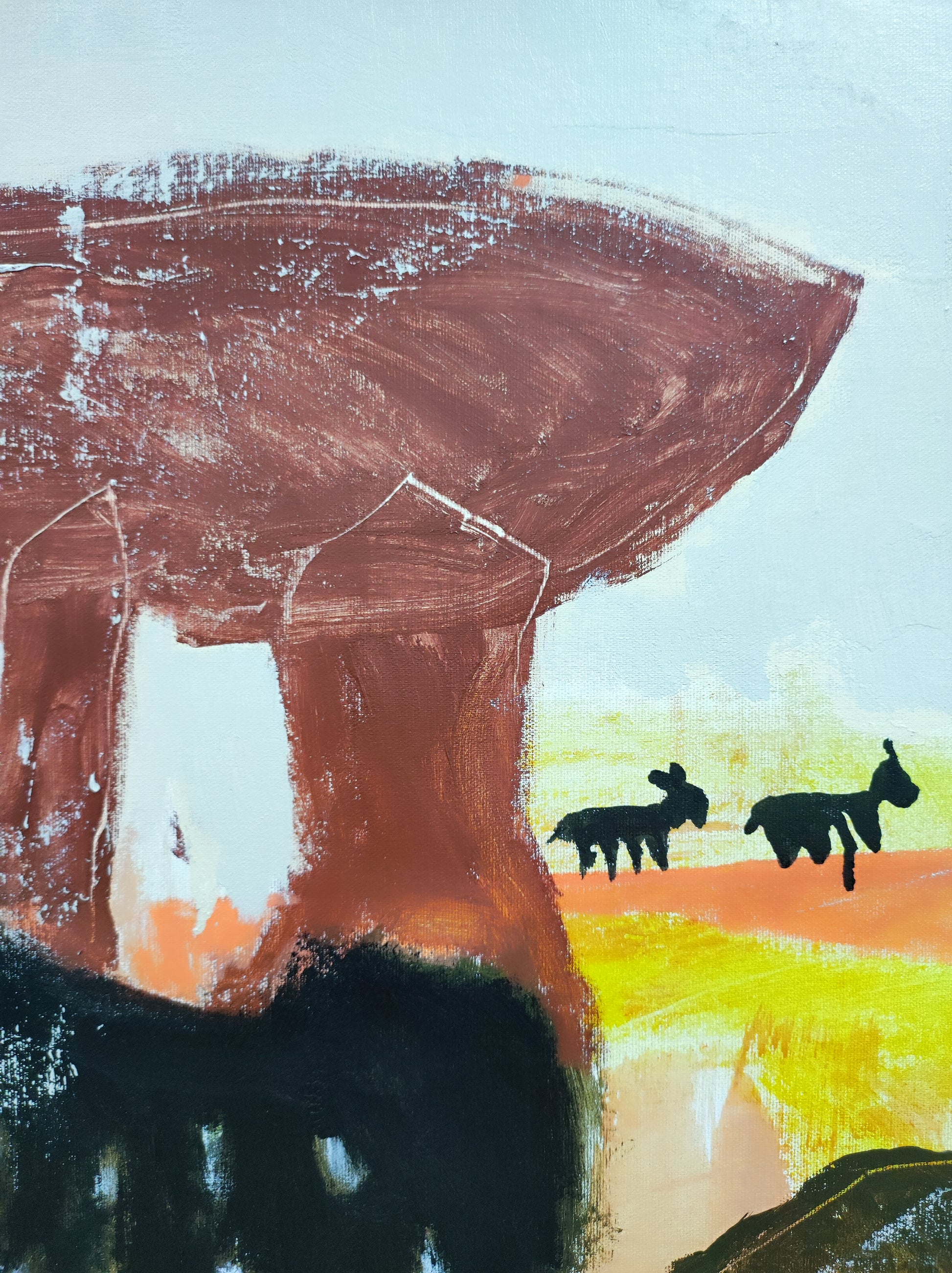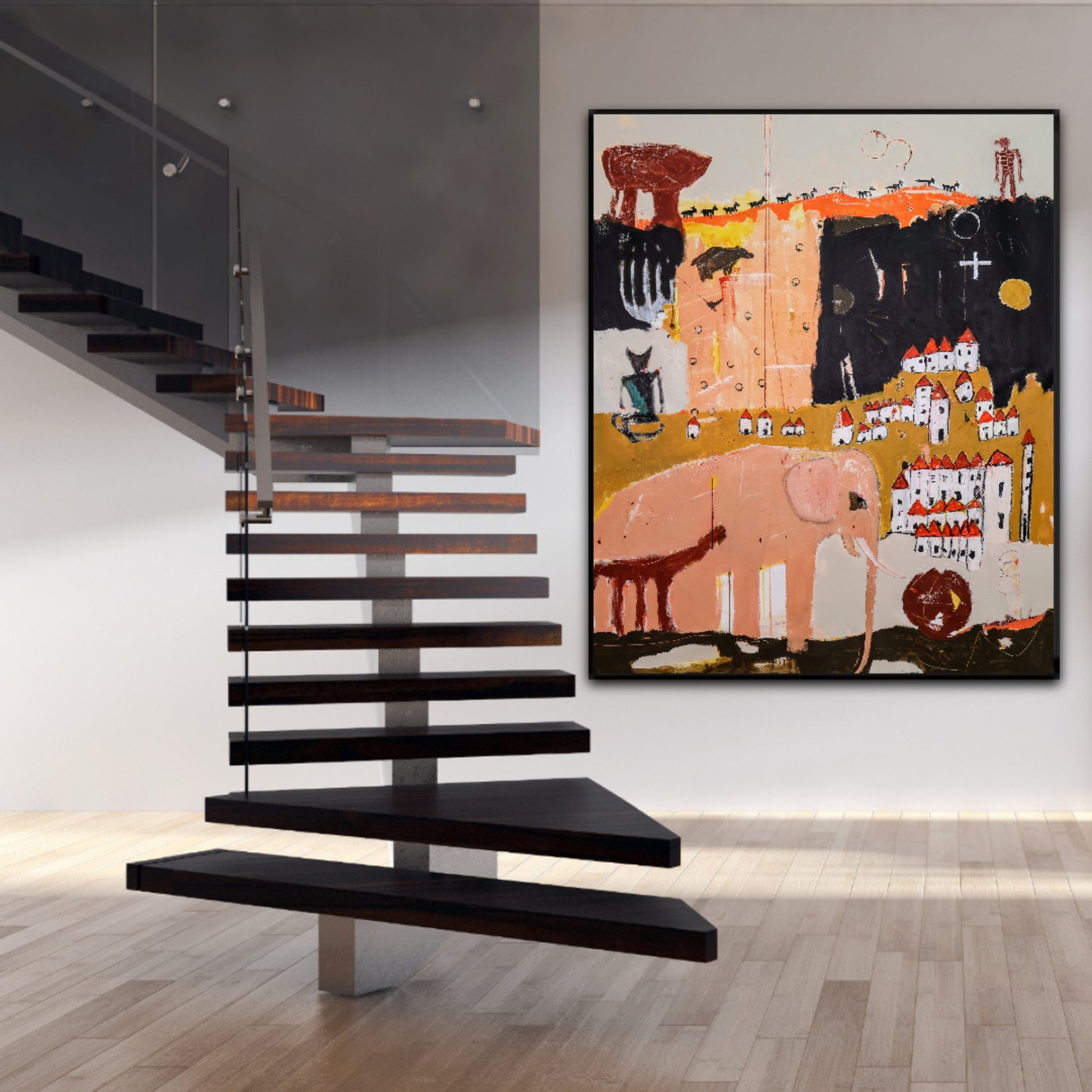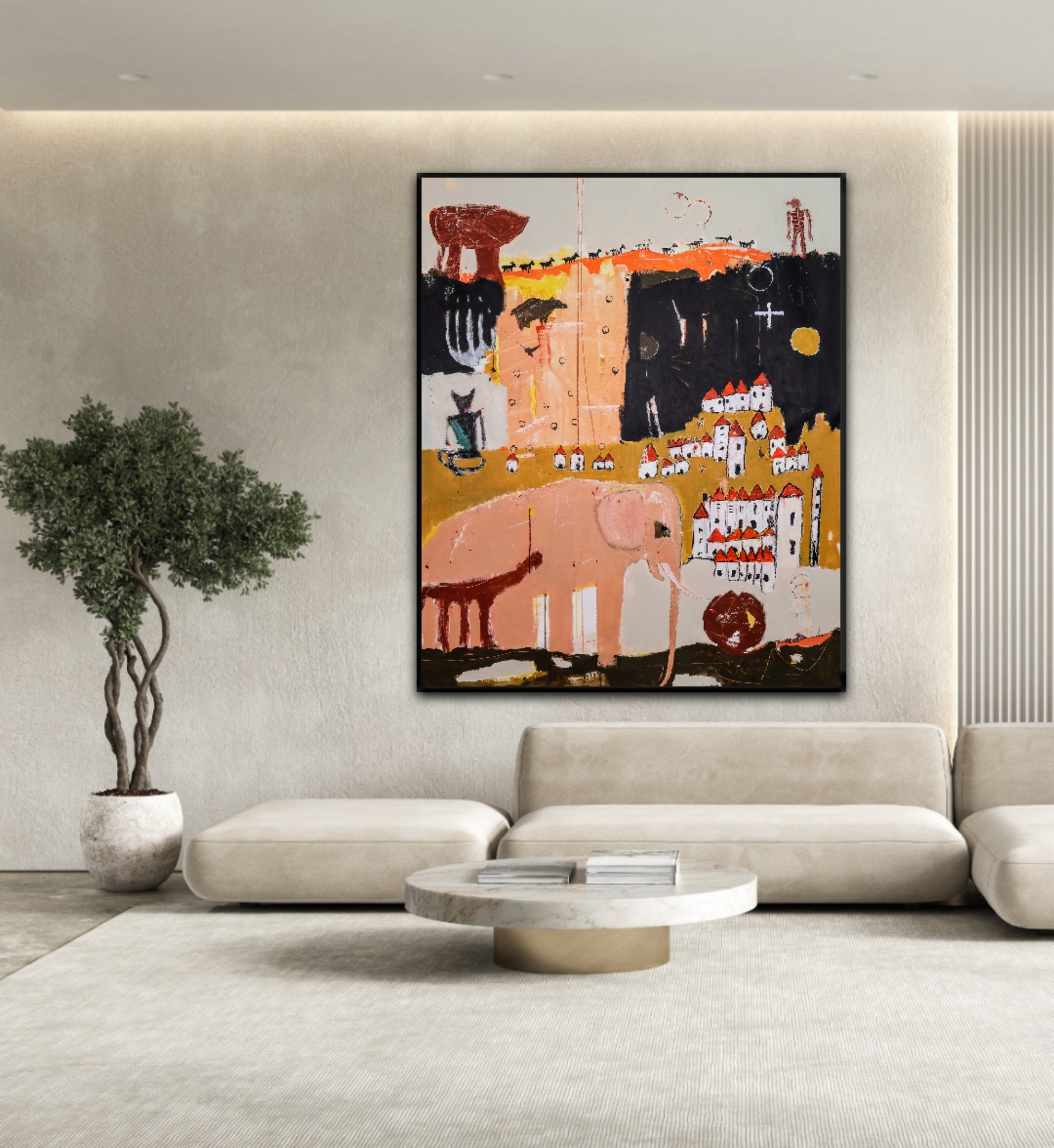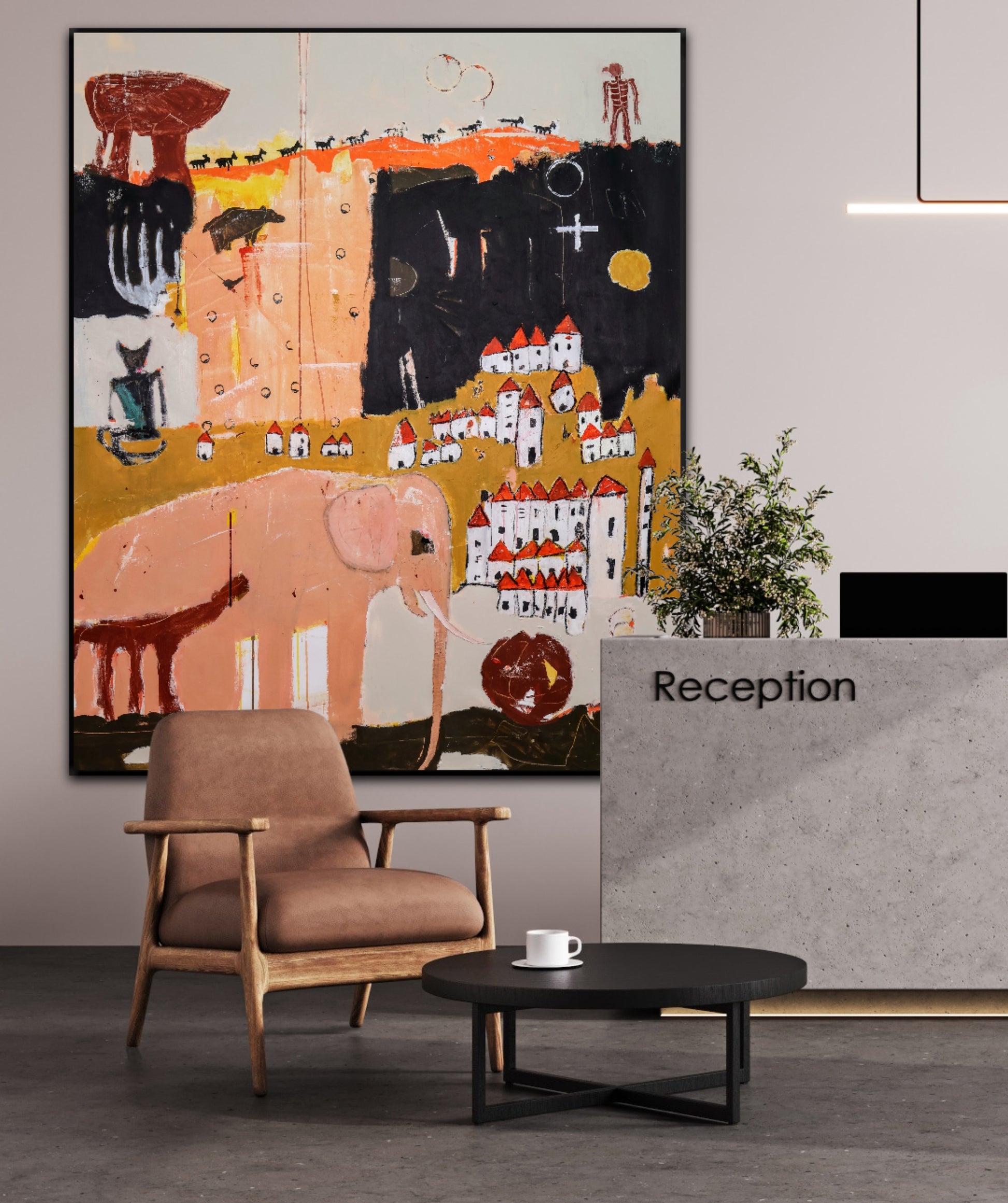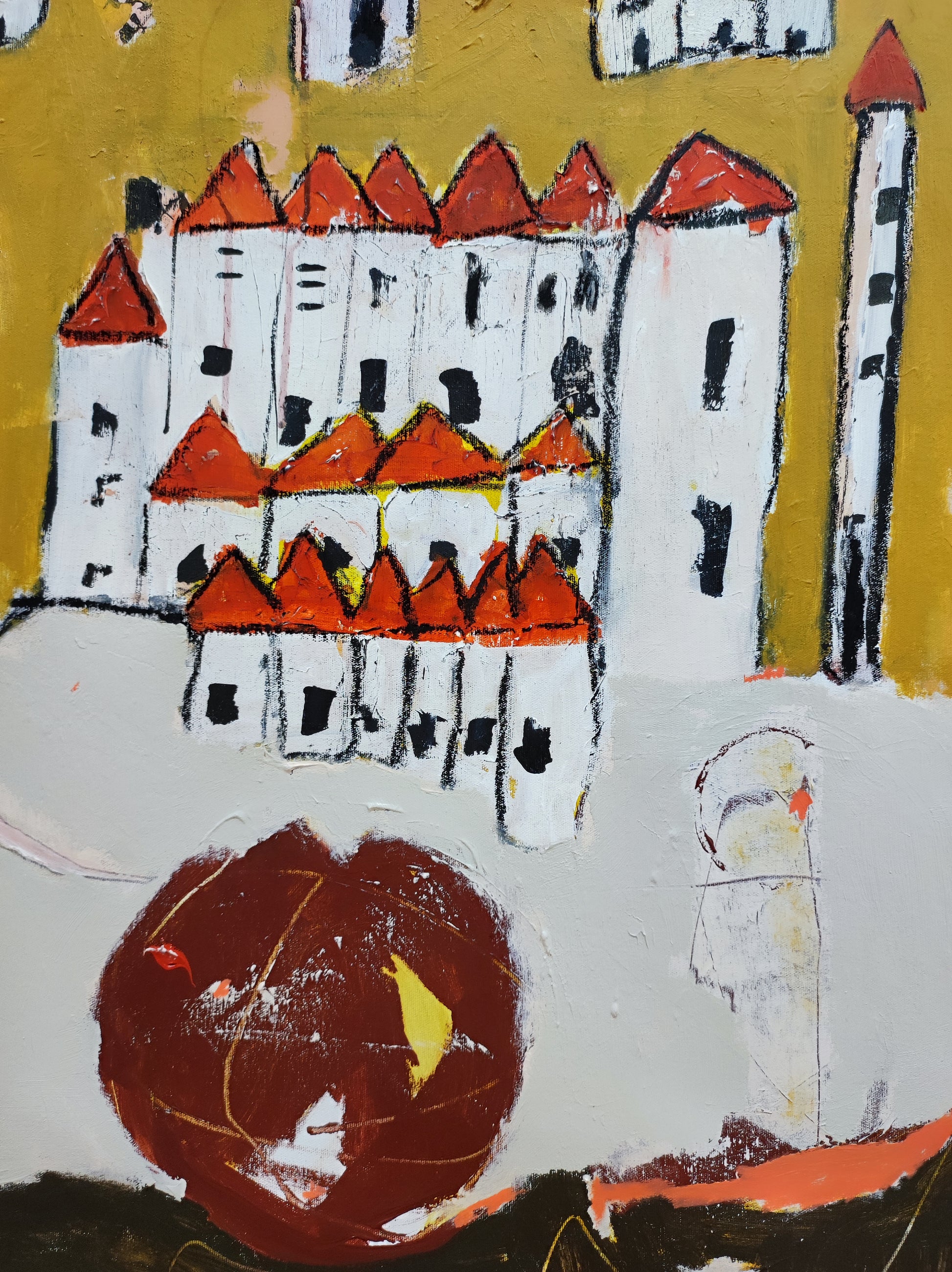 Pintura gestual, intuitiva, que deja que las cosas pasen y se apoya sobre lo que aparece. Aprovechando el accidente y aceptando las consecuencias.