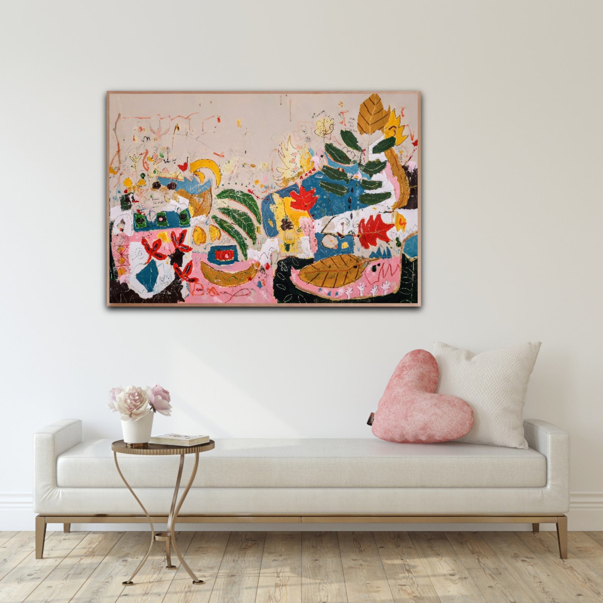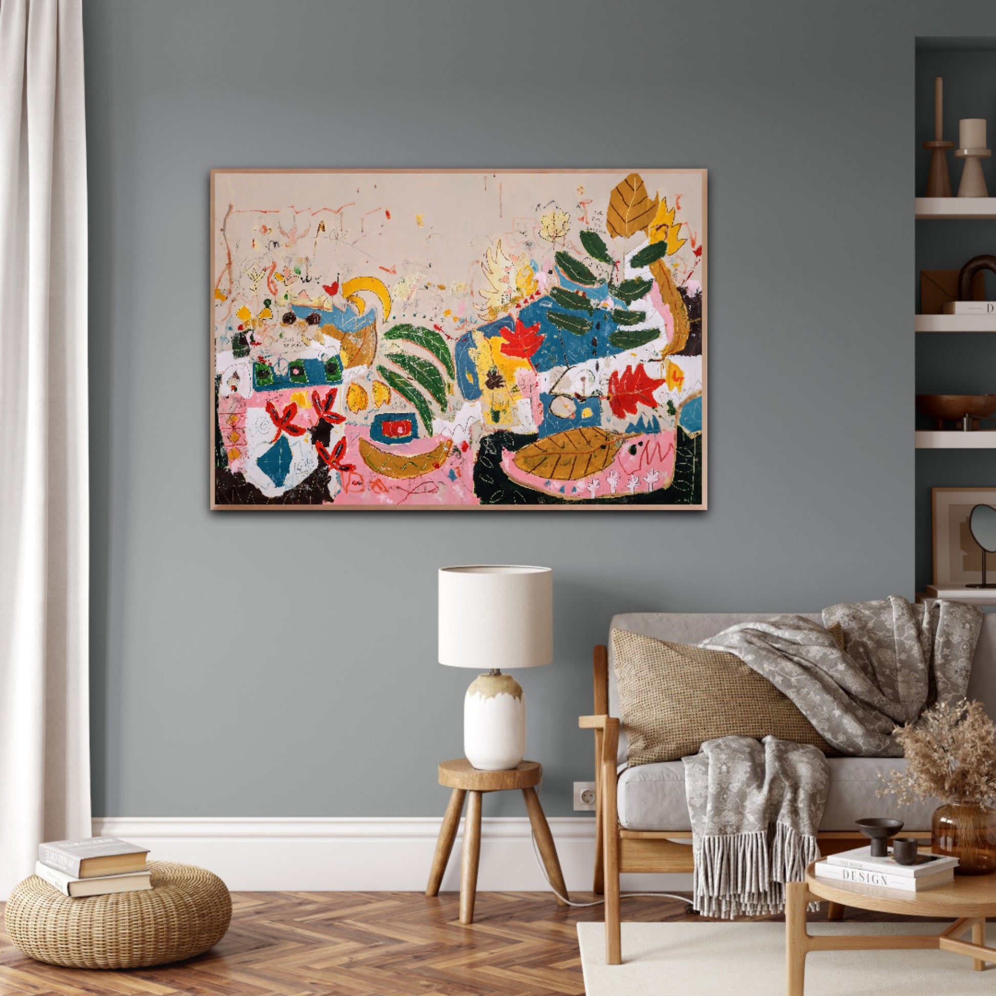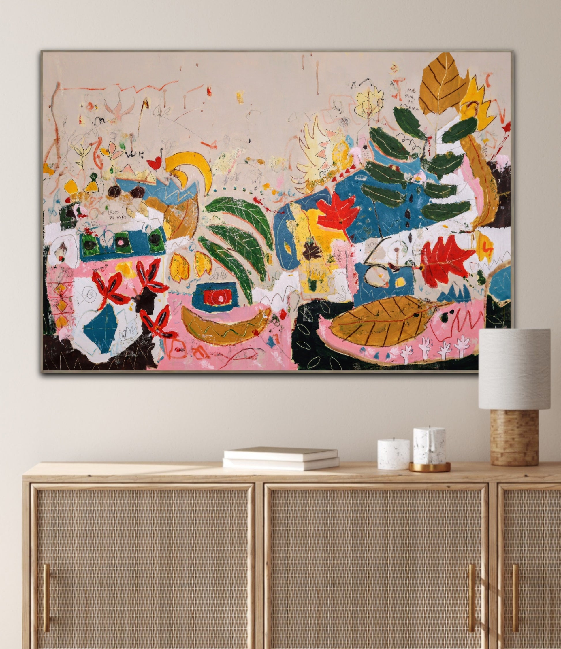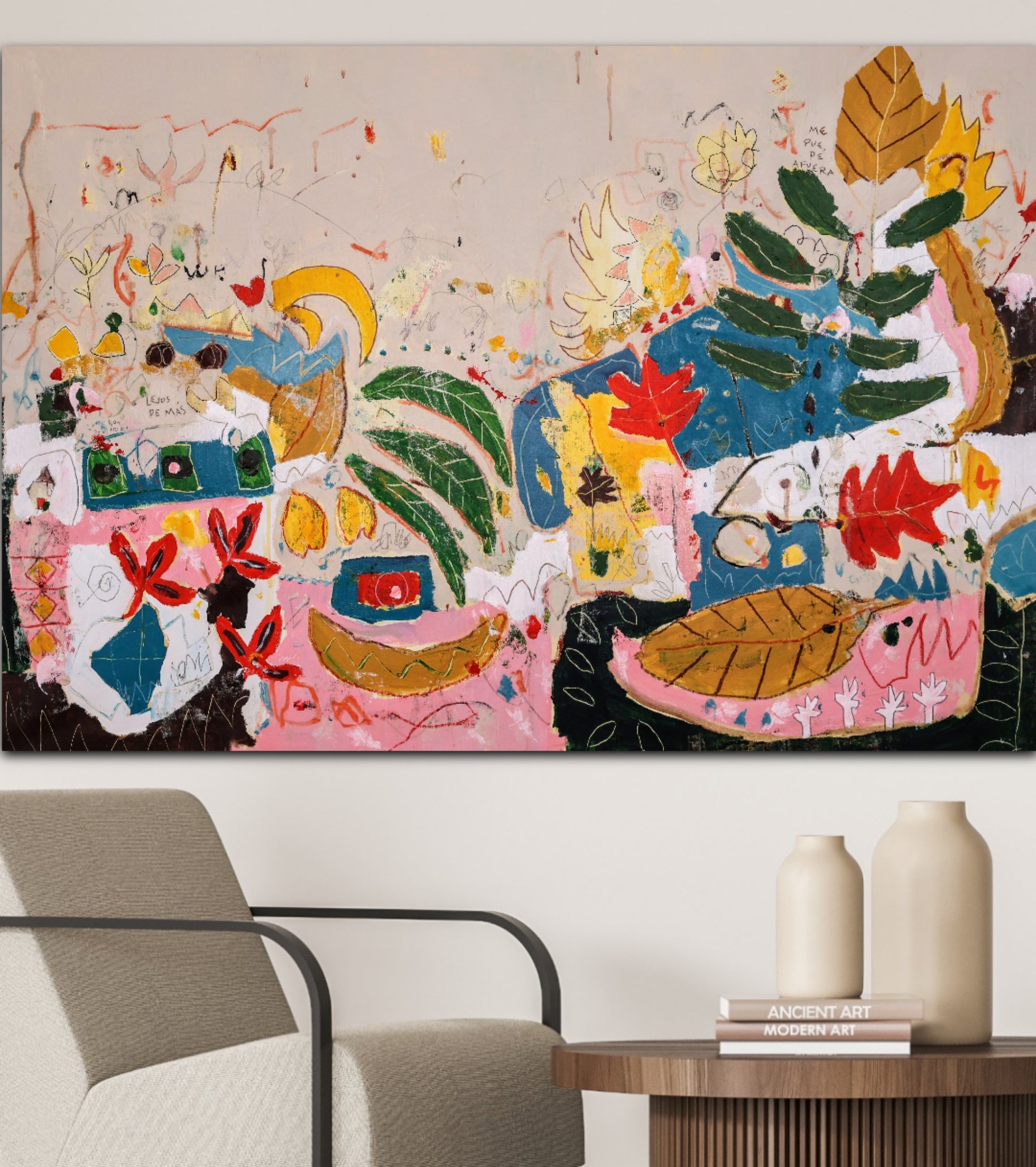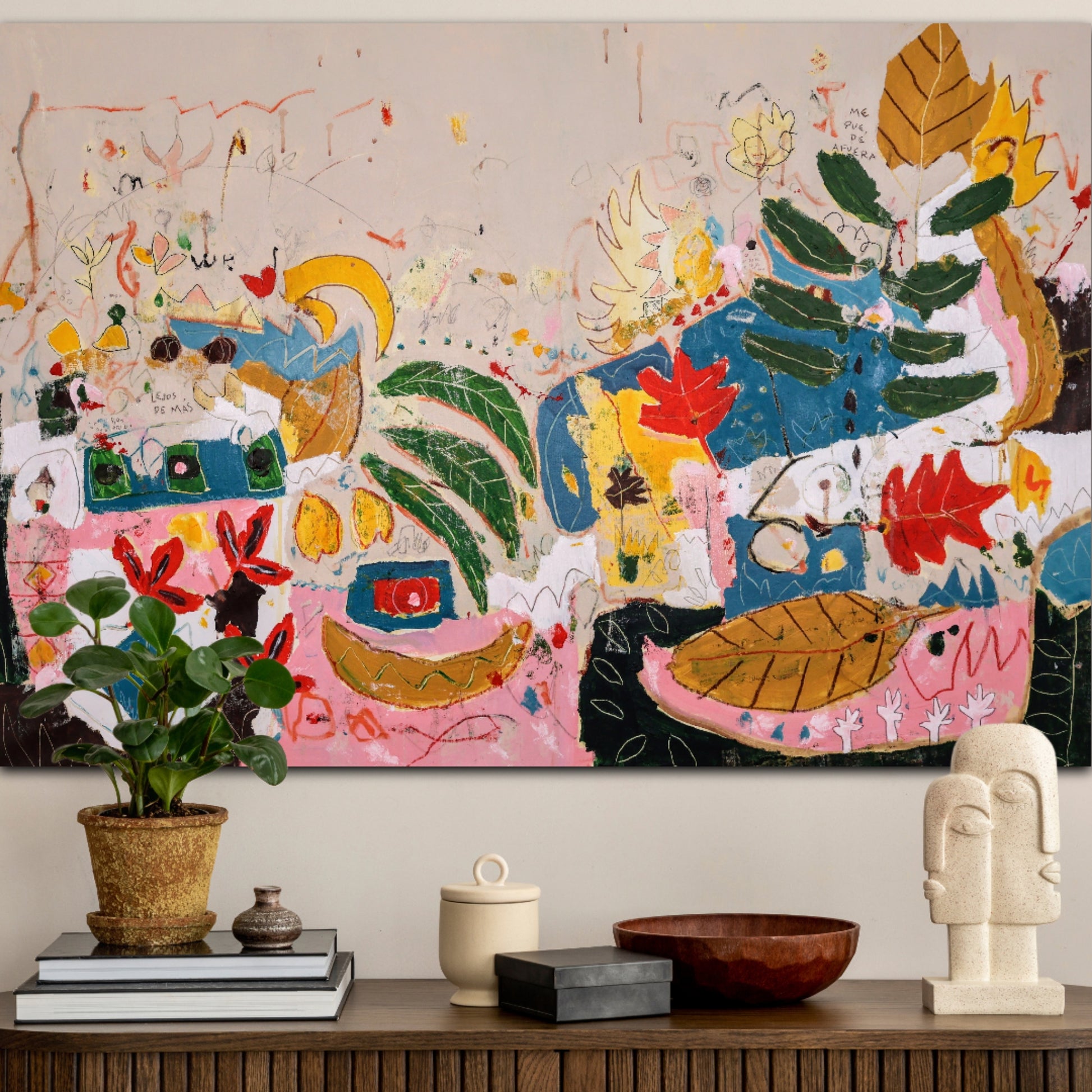 Técnica: acrílico, pigmentos, ceras y lápiz.