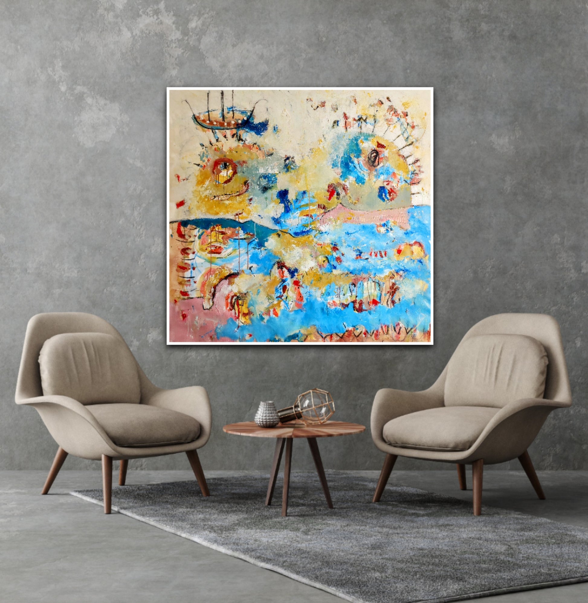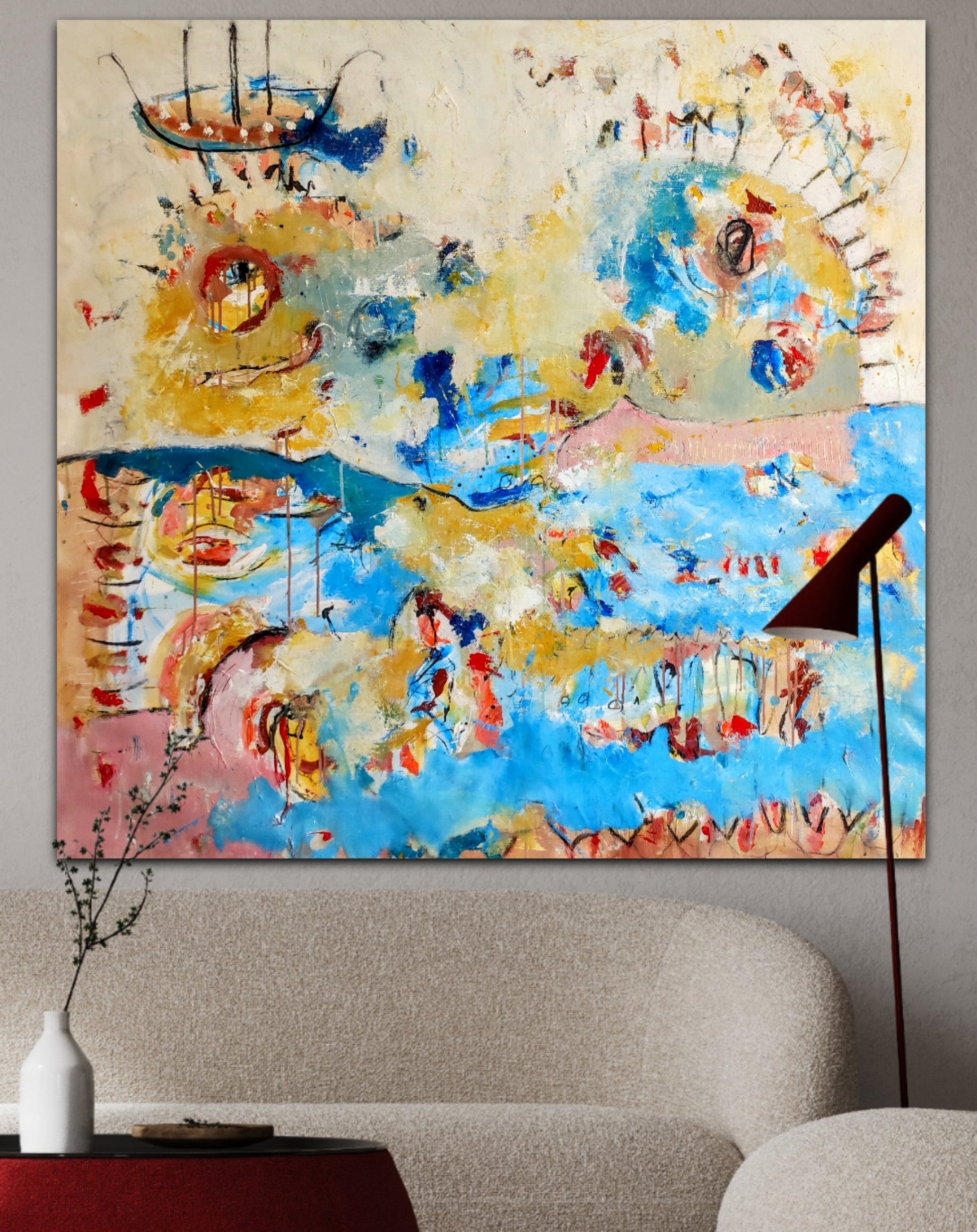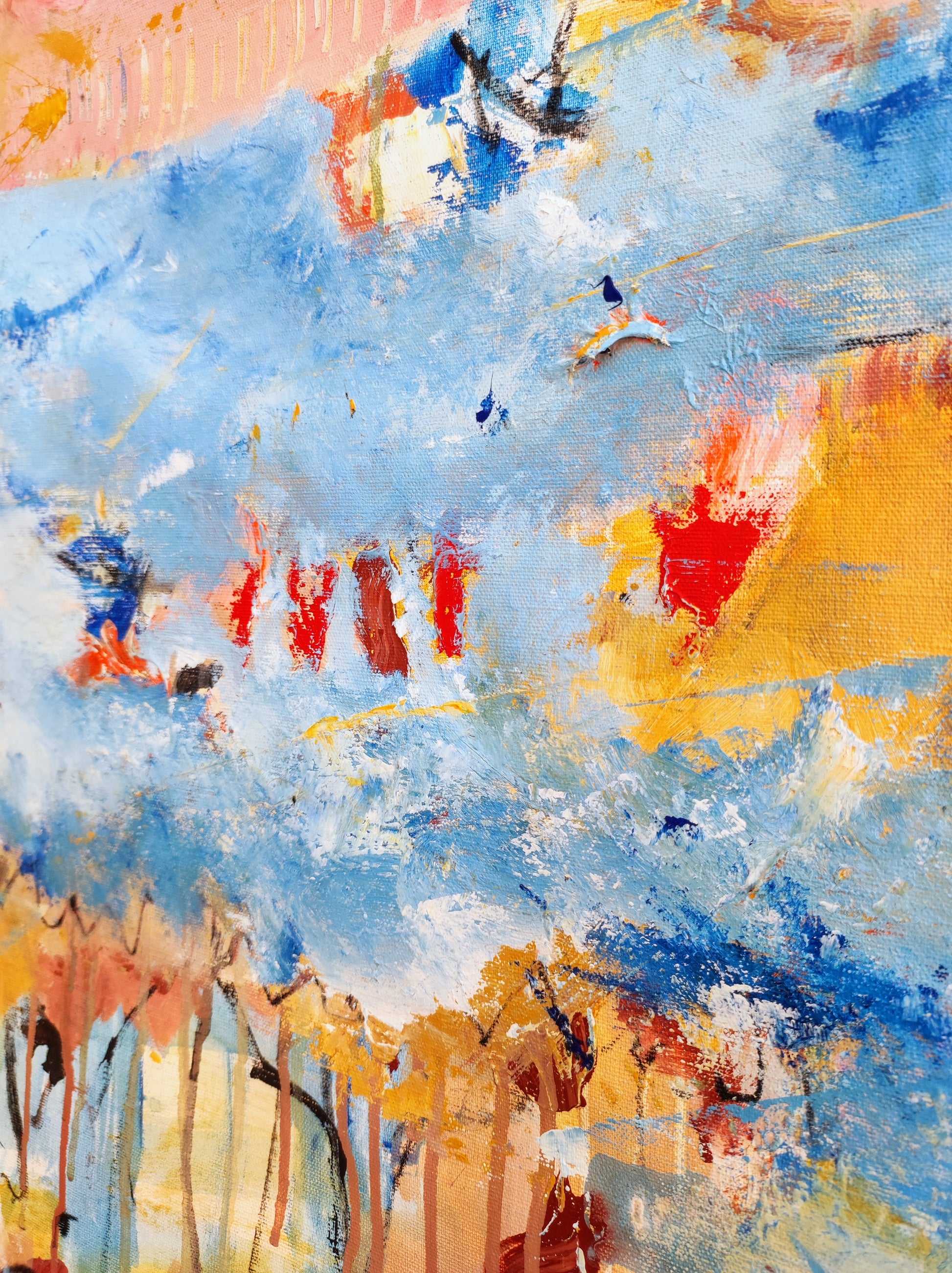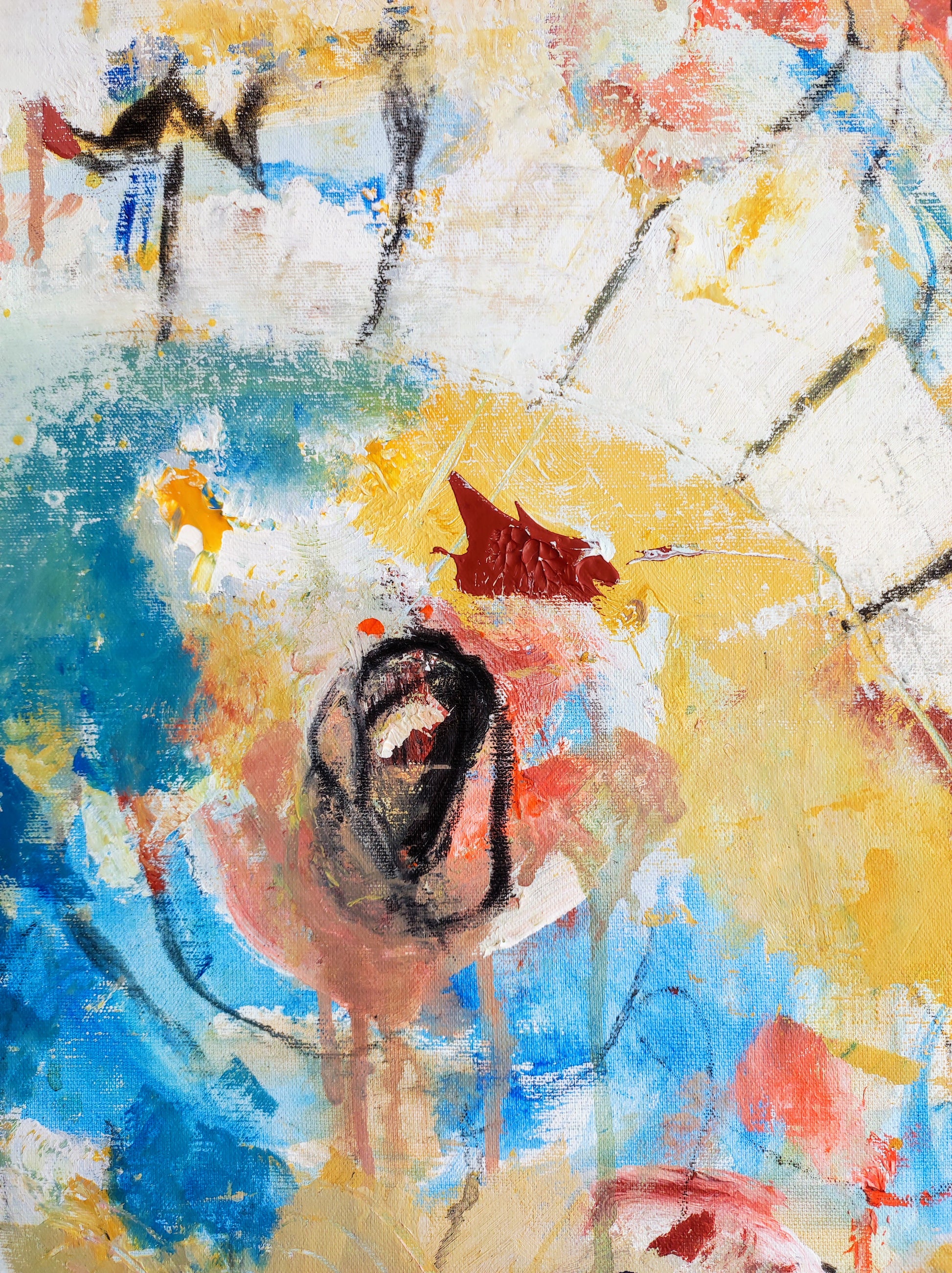 Cuadro trabajado desde la improvisación libre. Action painting con música de The Magic Lantern.