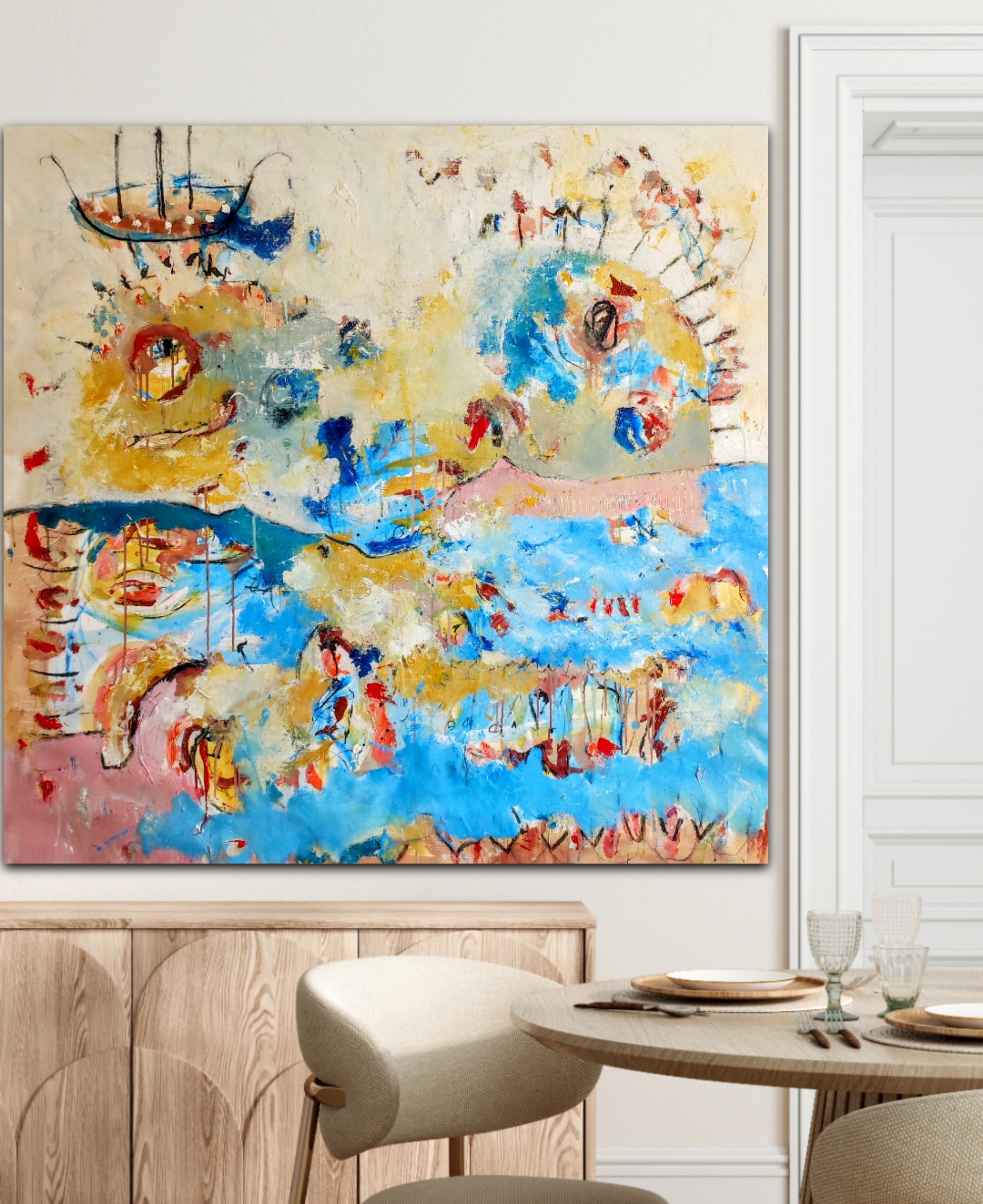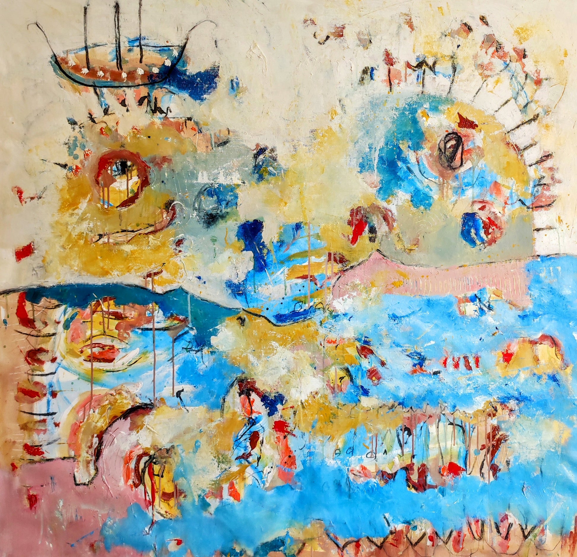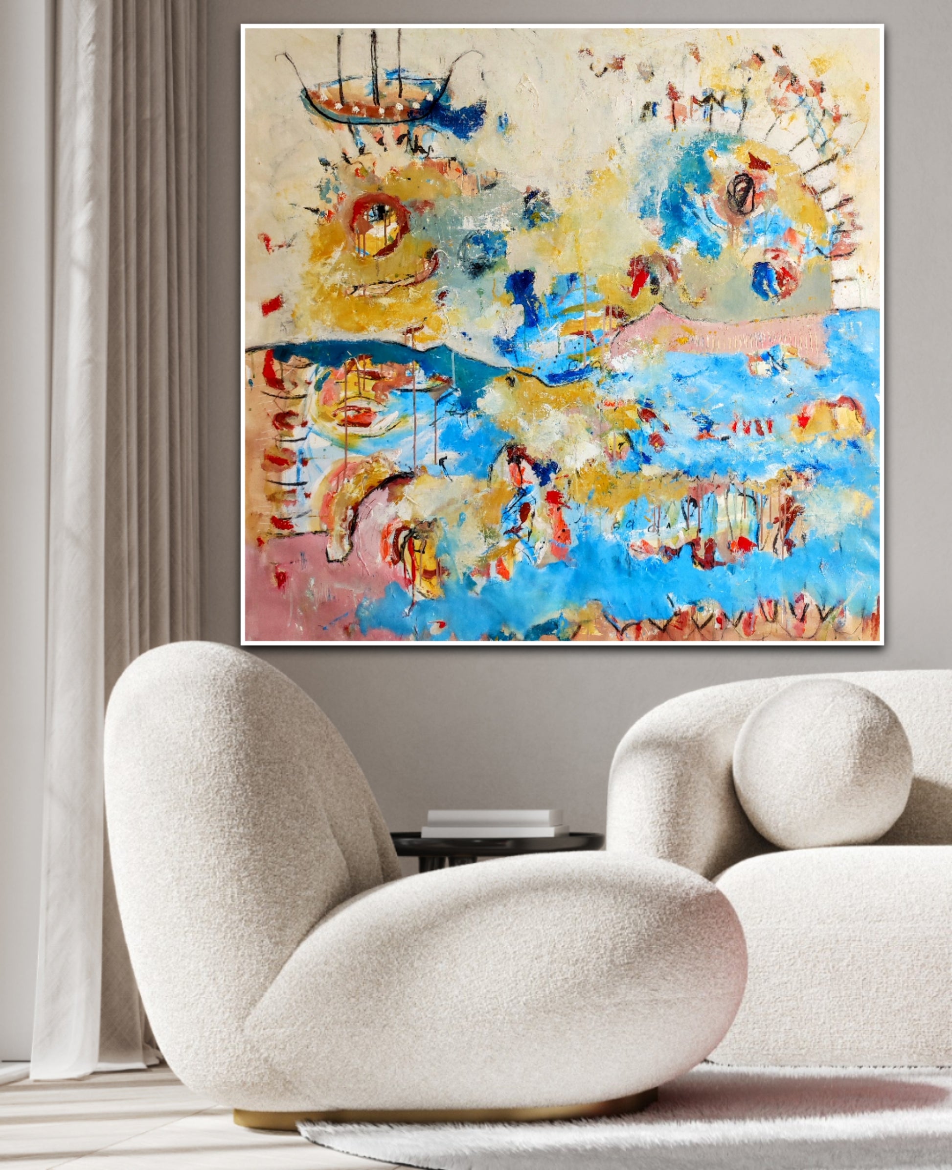 Cuadro trabajado desde la improvisación libre. Action painting con música de The Magic Lantern.