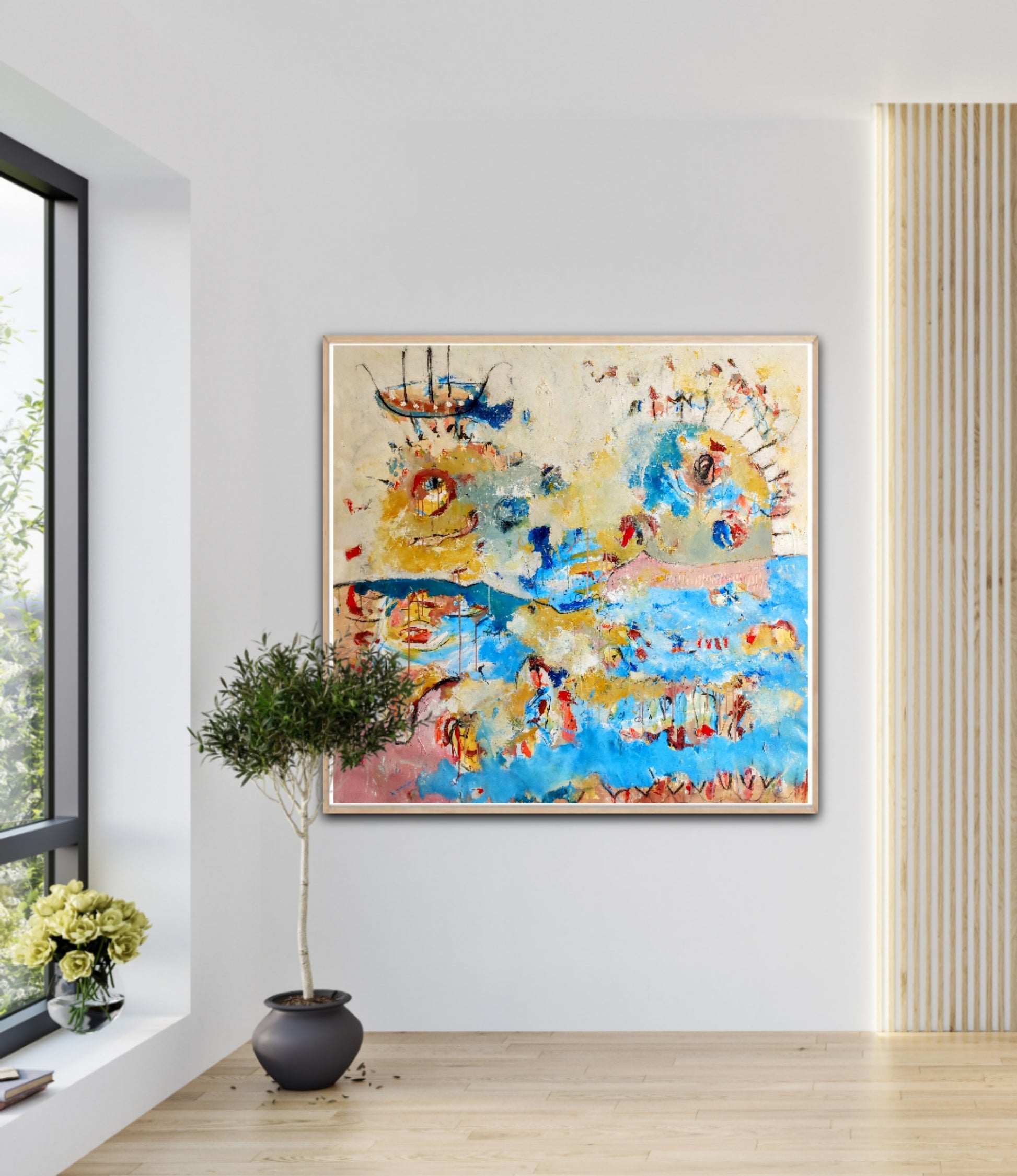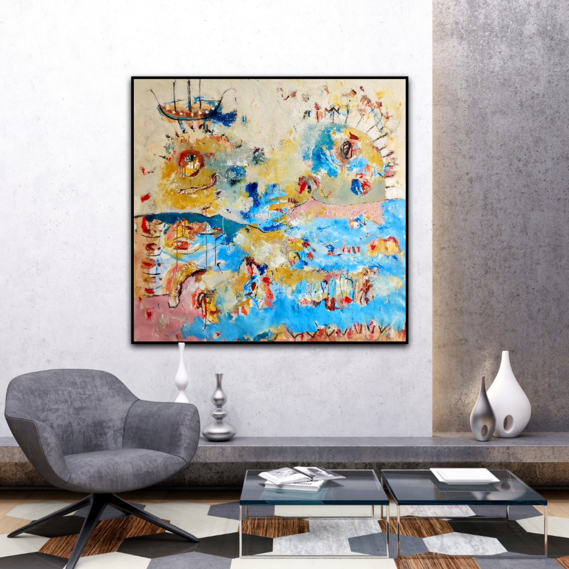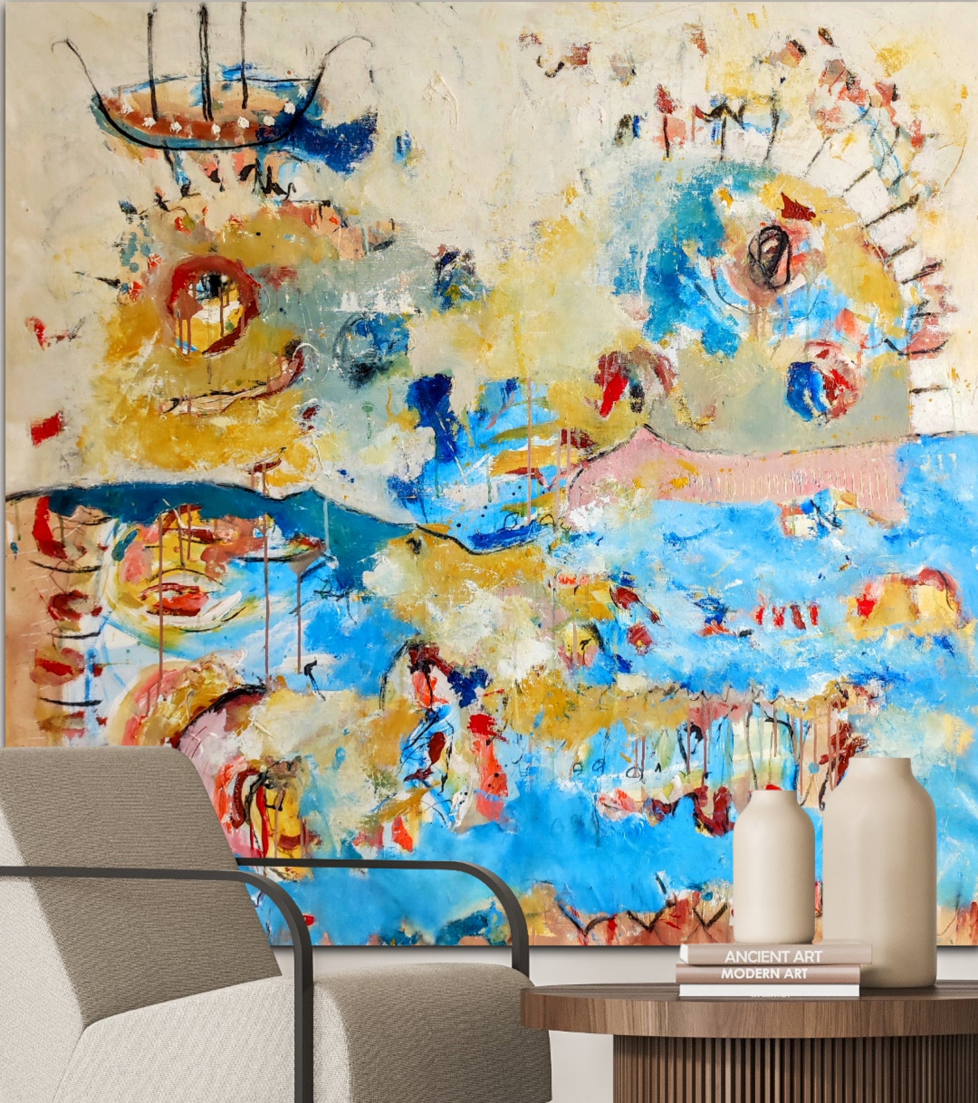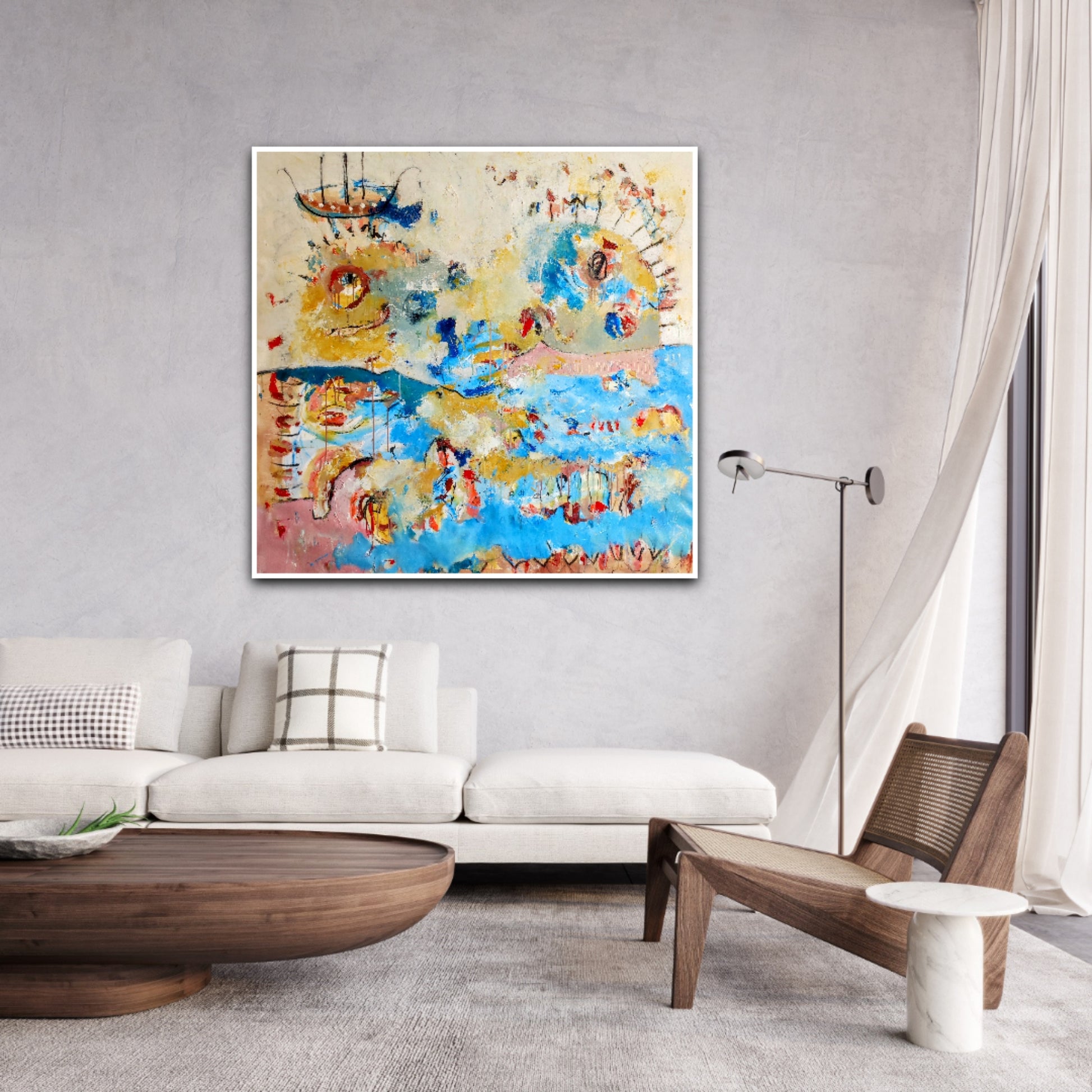 Cuadro trabajado desde la improvisación libre. Action painting con música de The Magic Lantern.