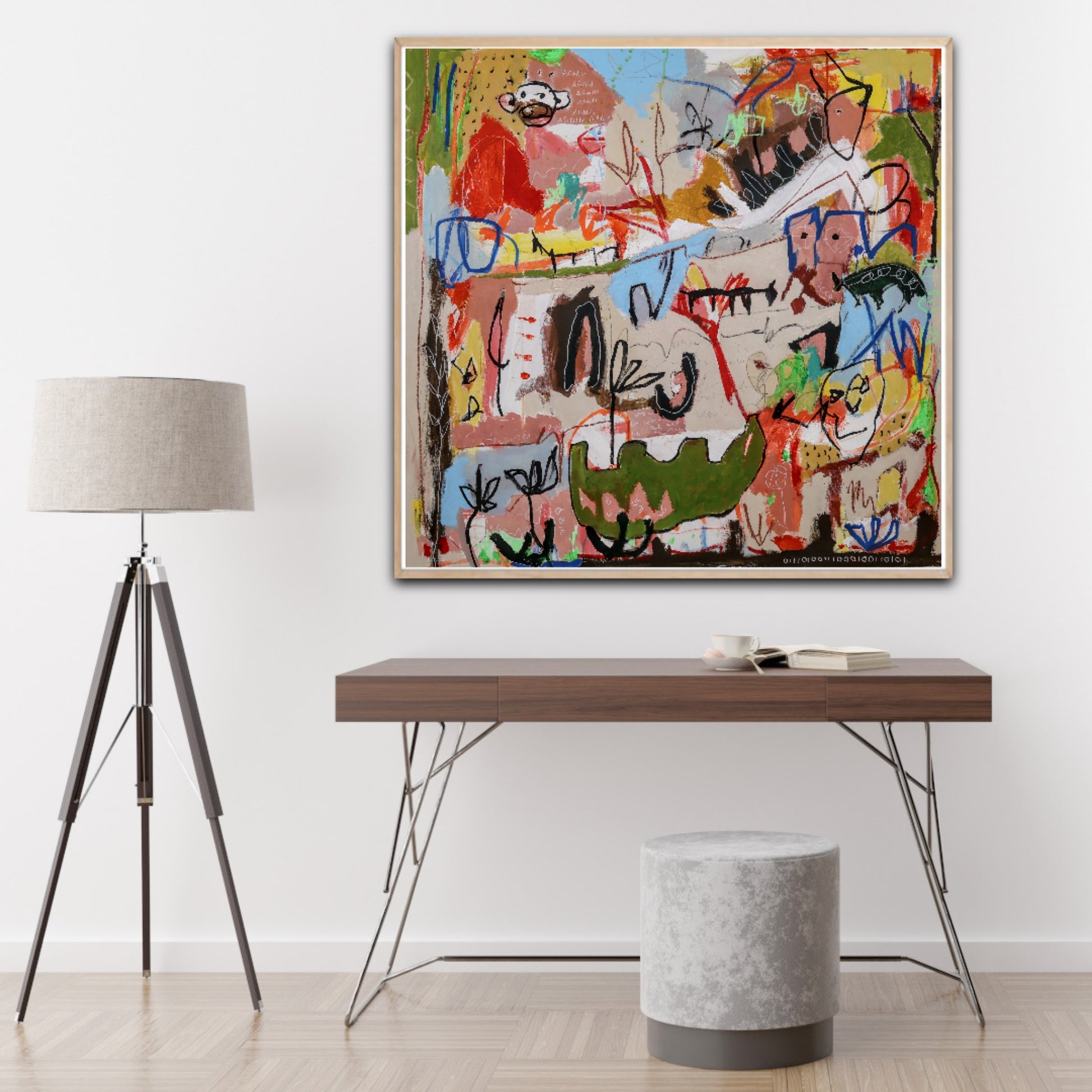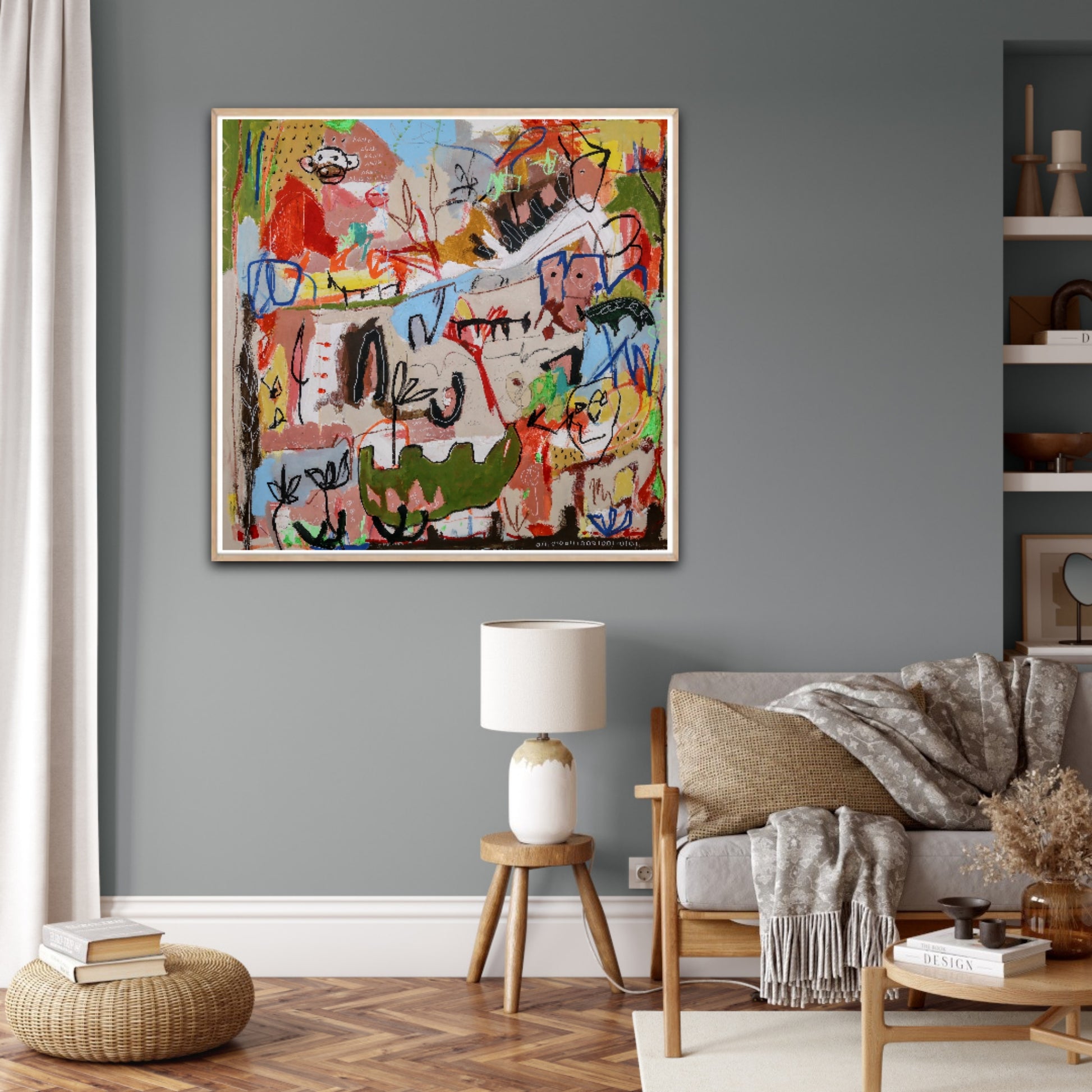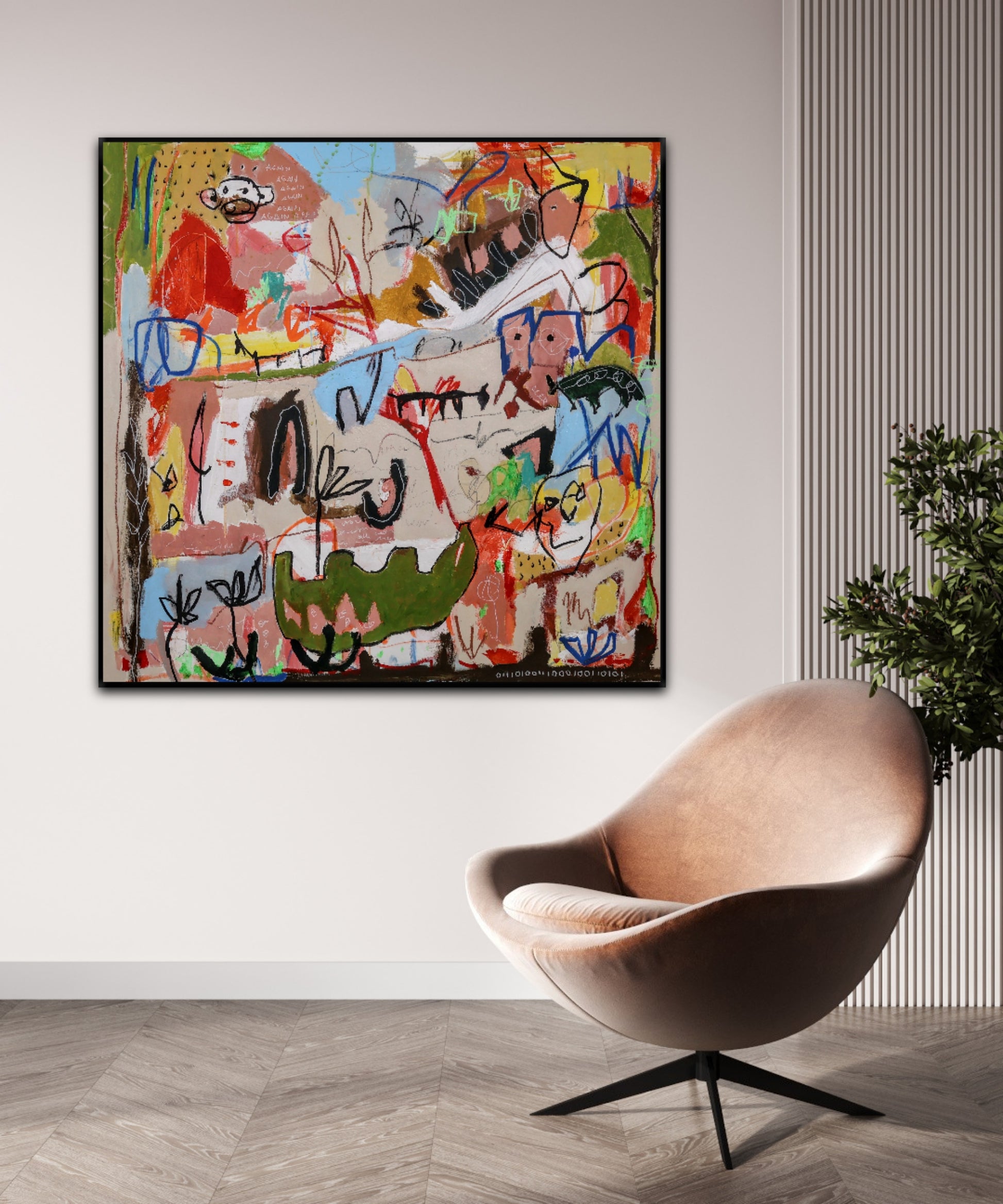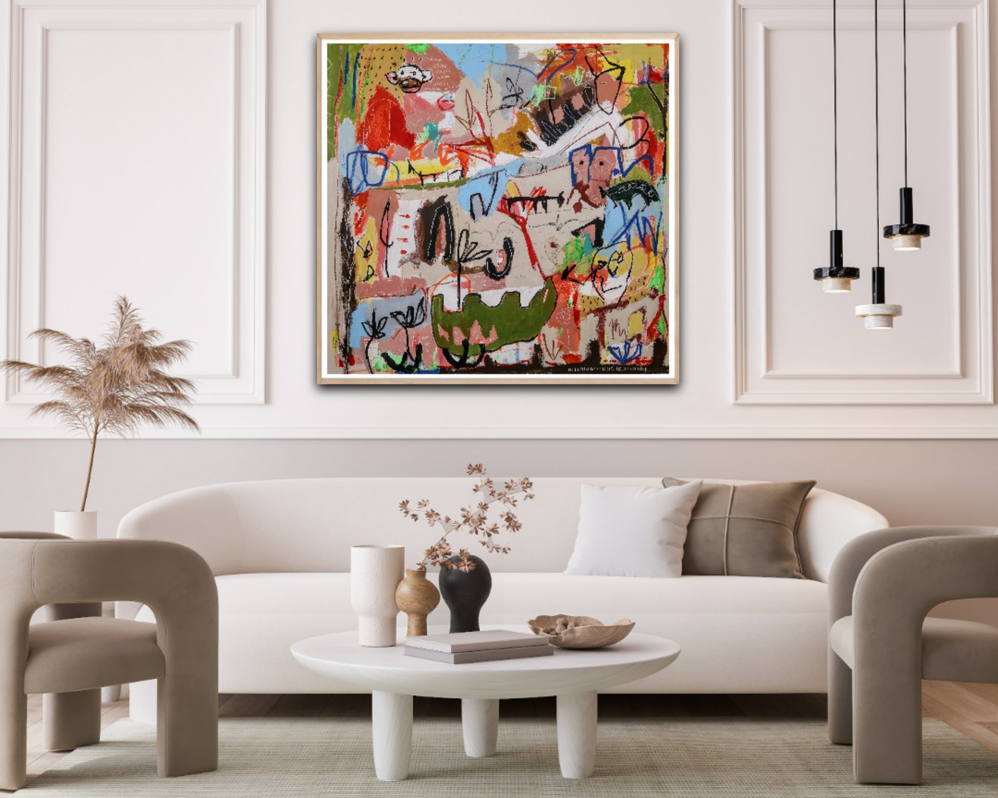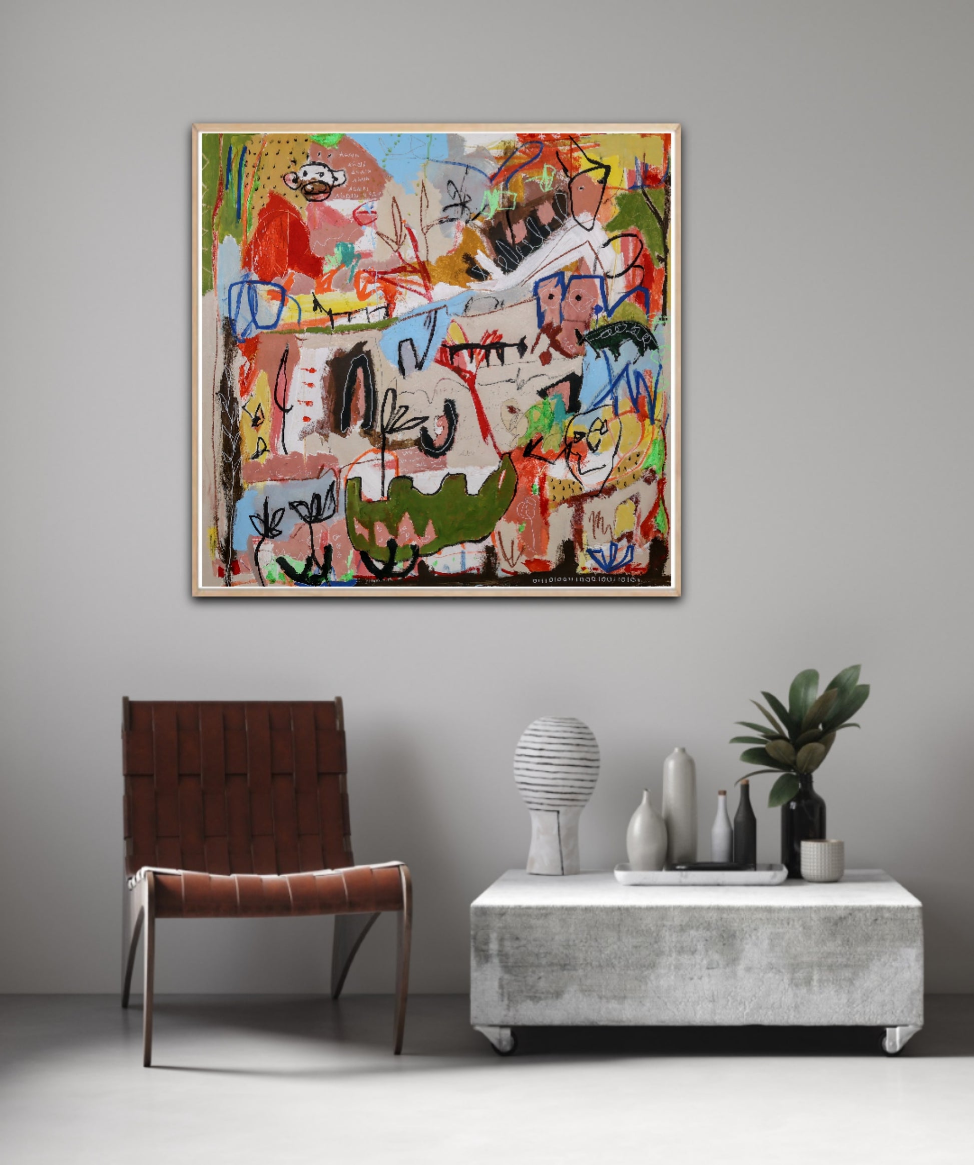 Técnica: acrílico, pigmentos, tempera, carboncillo, lápiz y pastel.