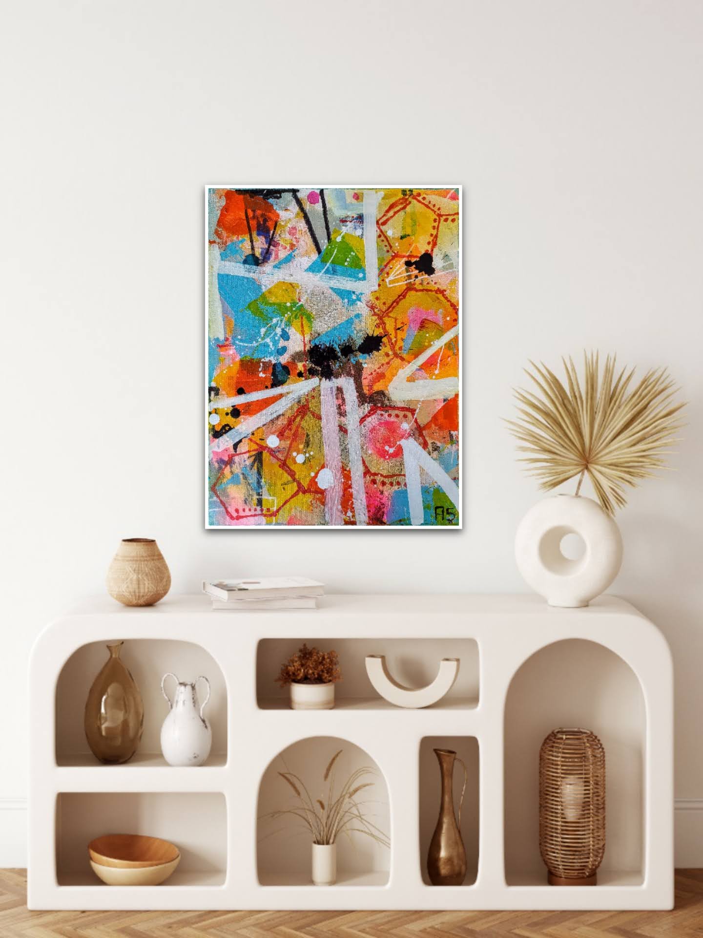 Técnica: mixed media: acrílico, pintura en spray, carboncillo, ceras y tintas al alcohol.