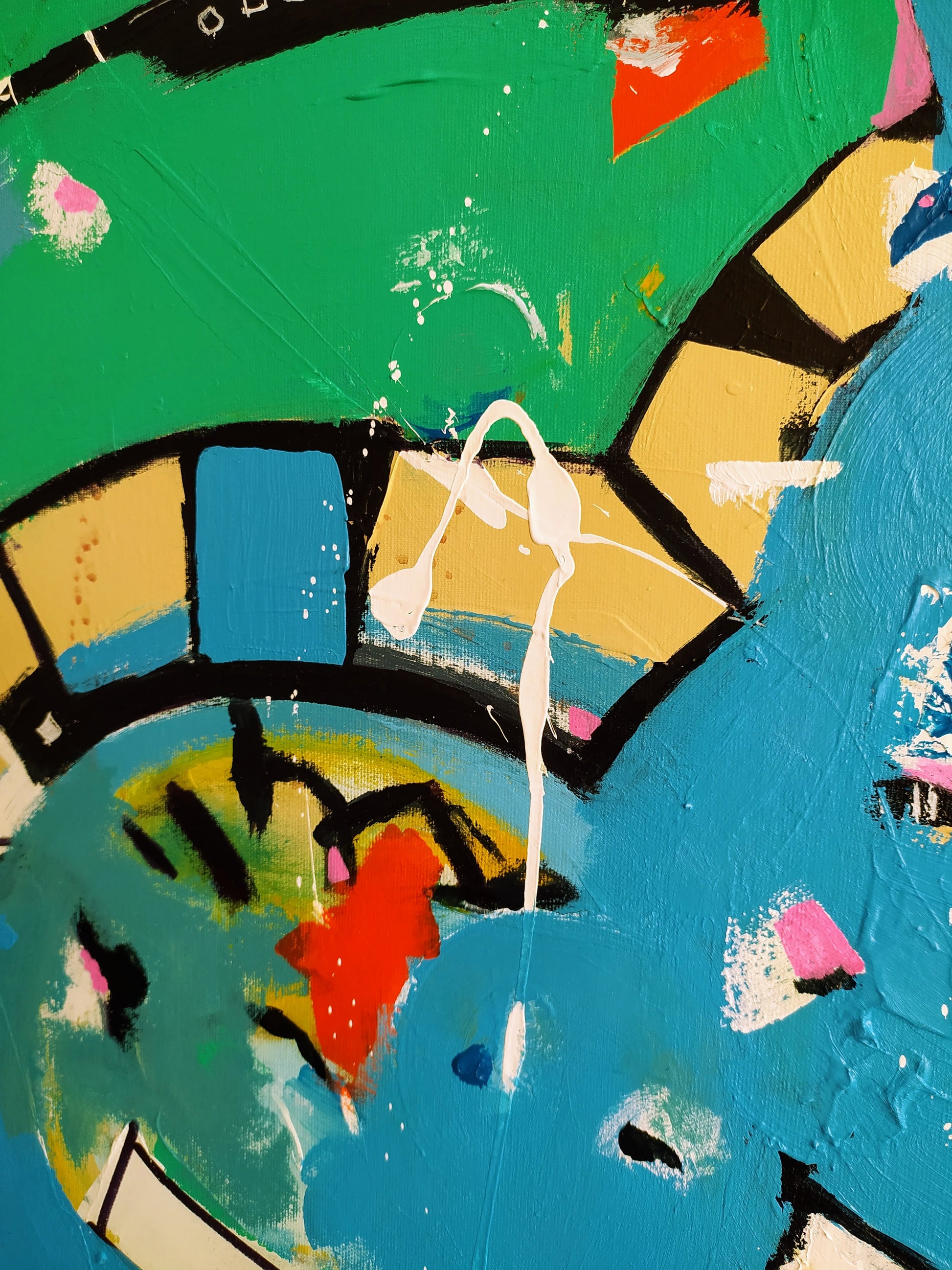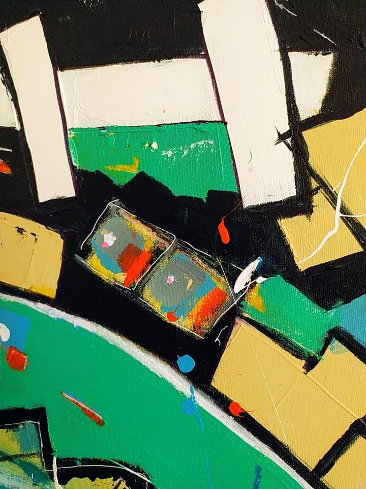 Cuadro trabajado desde la improvisación libre. Action painting con música de Hiromi