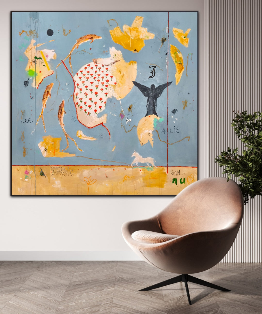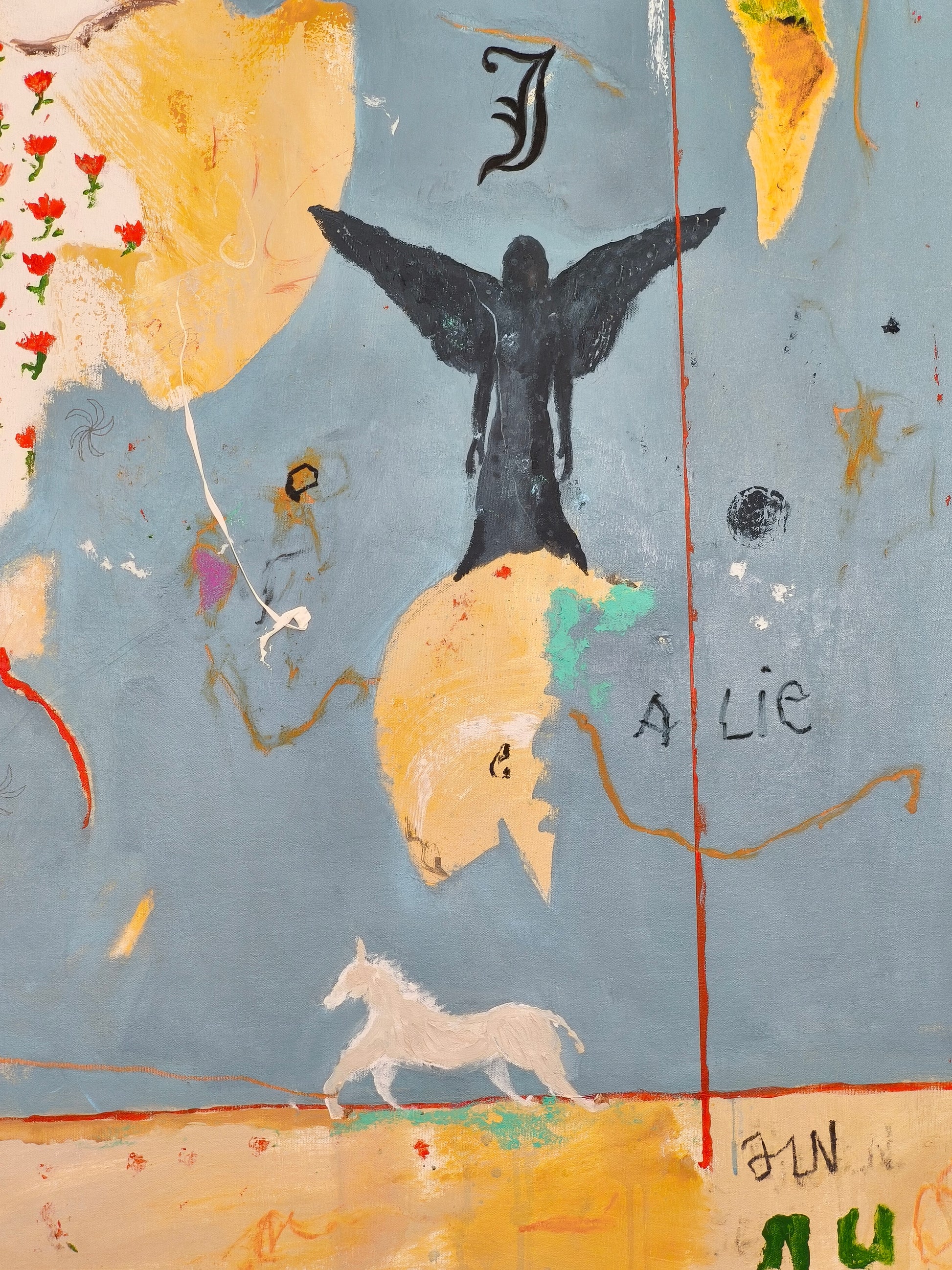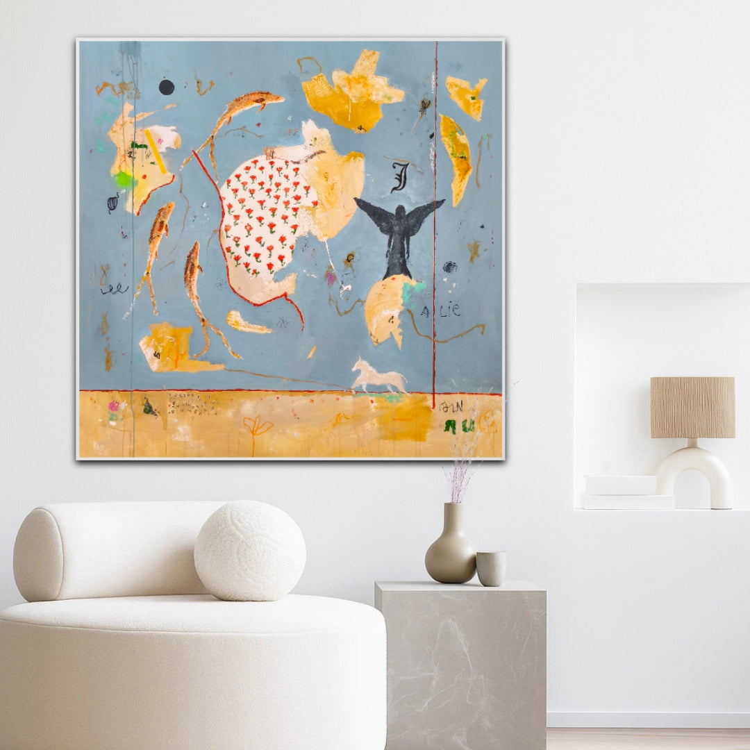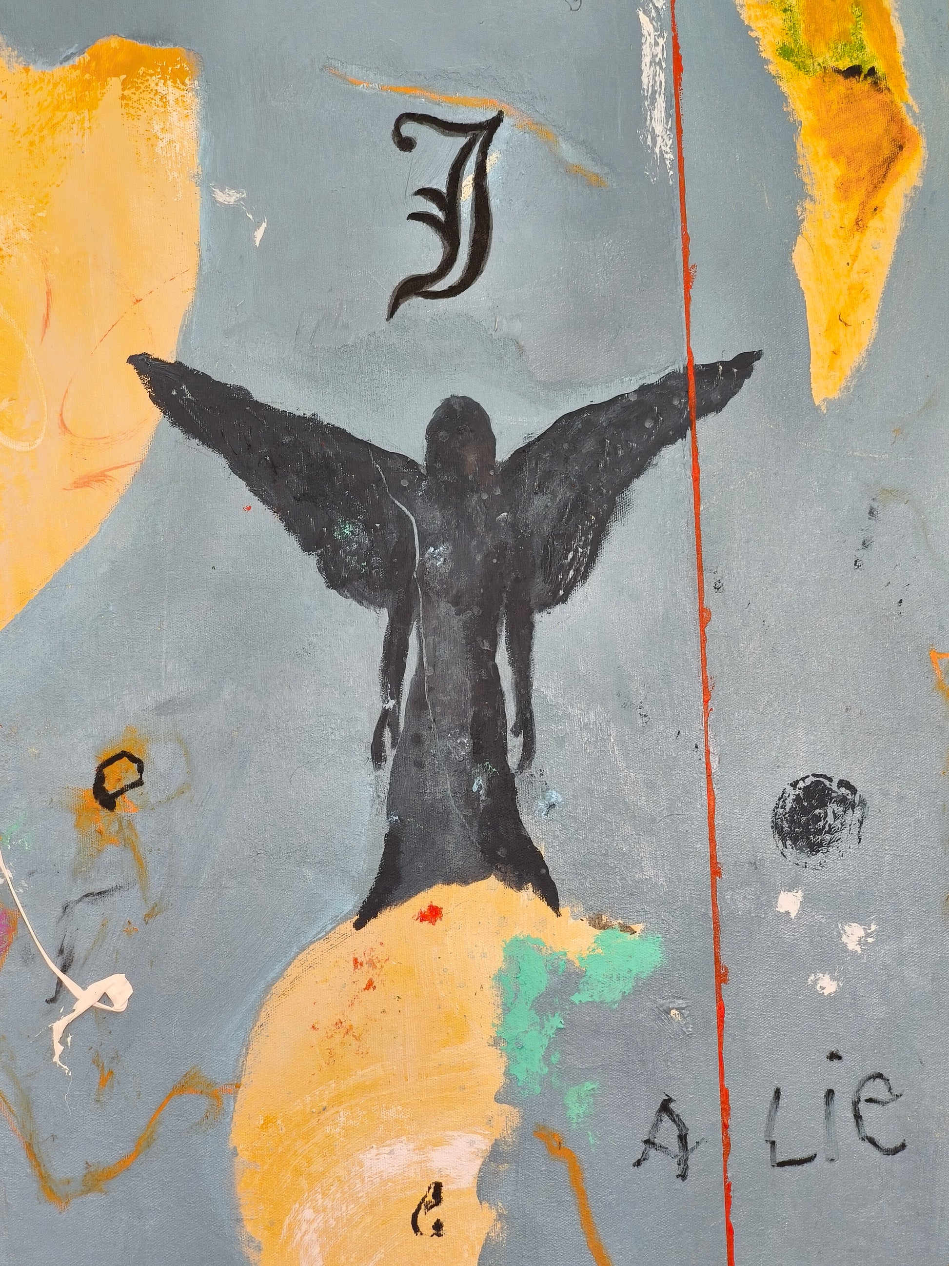 Técnica: acrílico, lápiz, carboncillo, gesso, ceras.