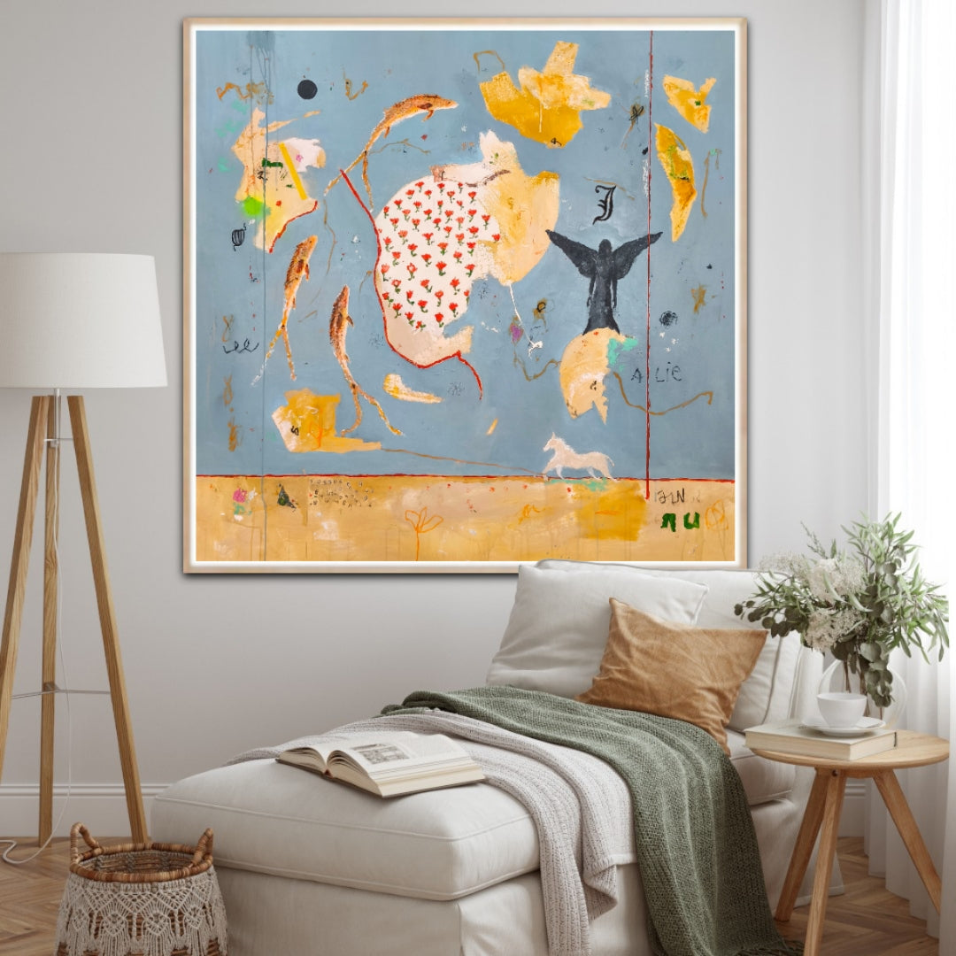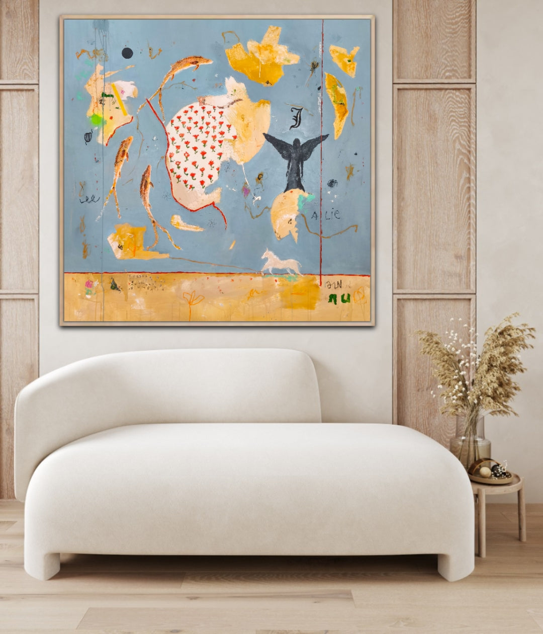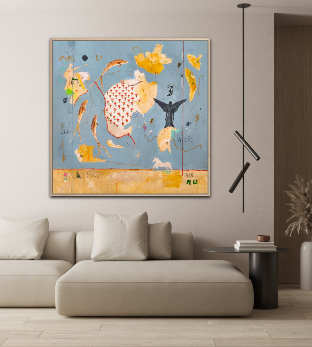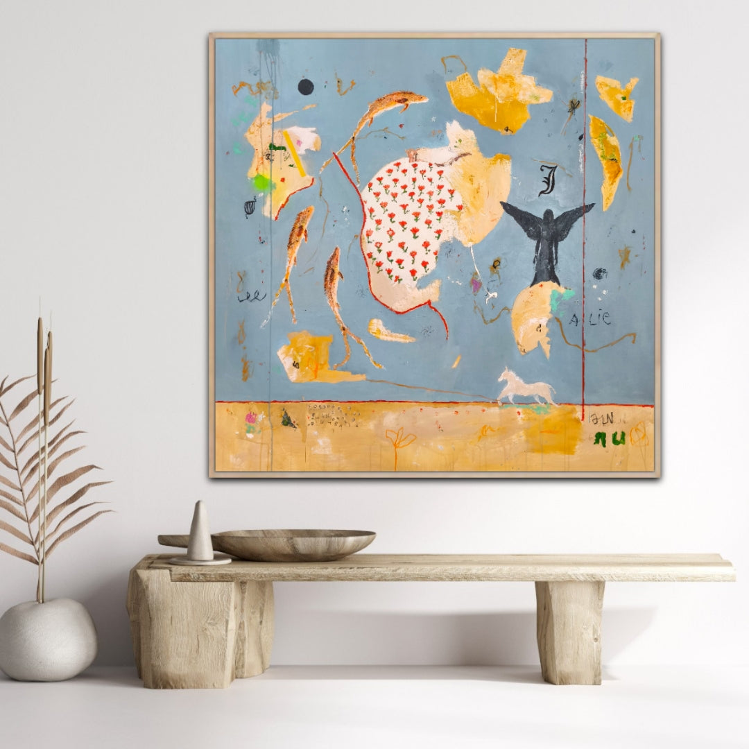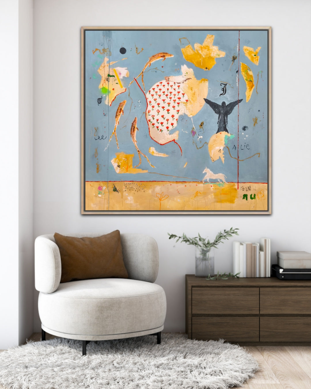 Técnica: acrílico, lápiz, carboncillo, gesso, ceras.