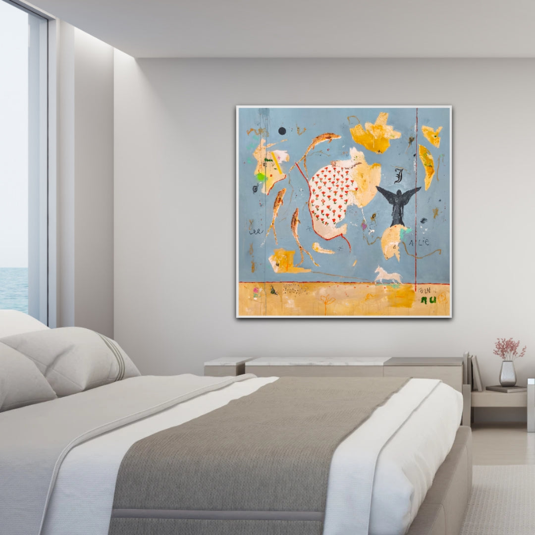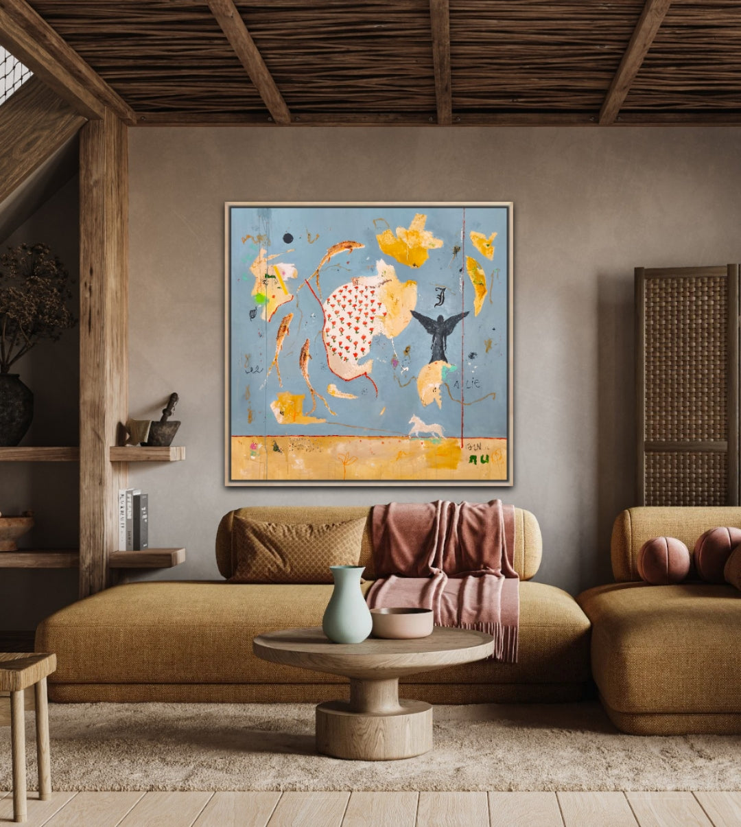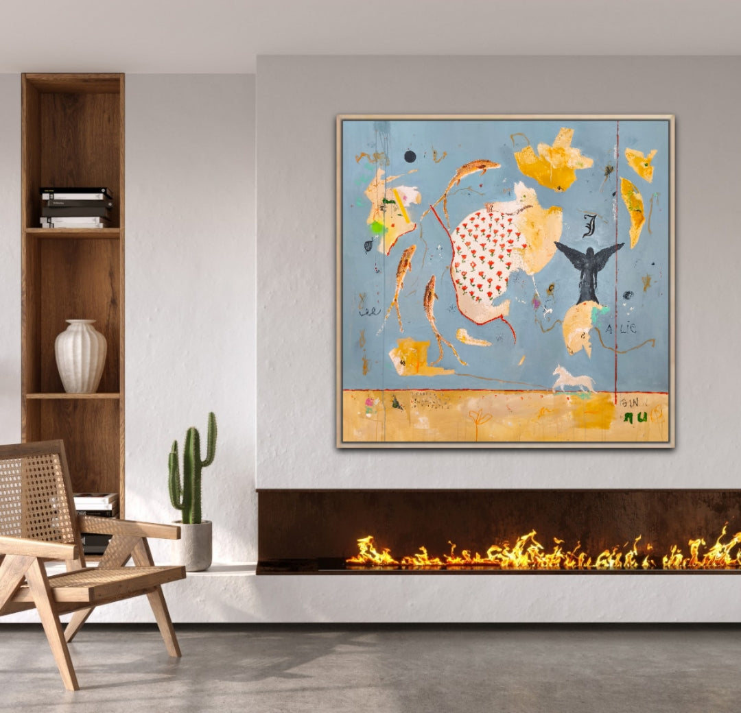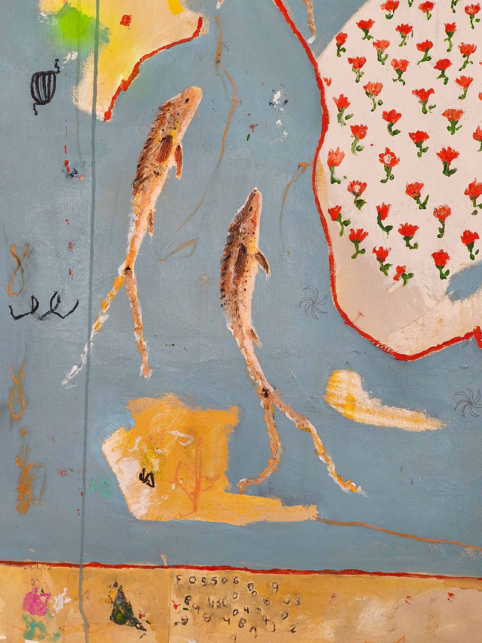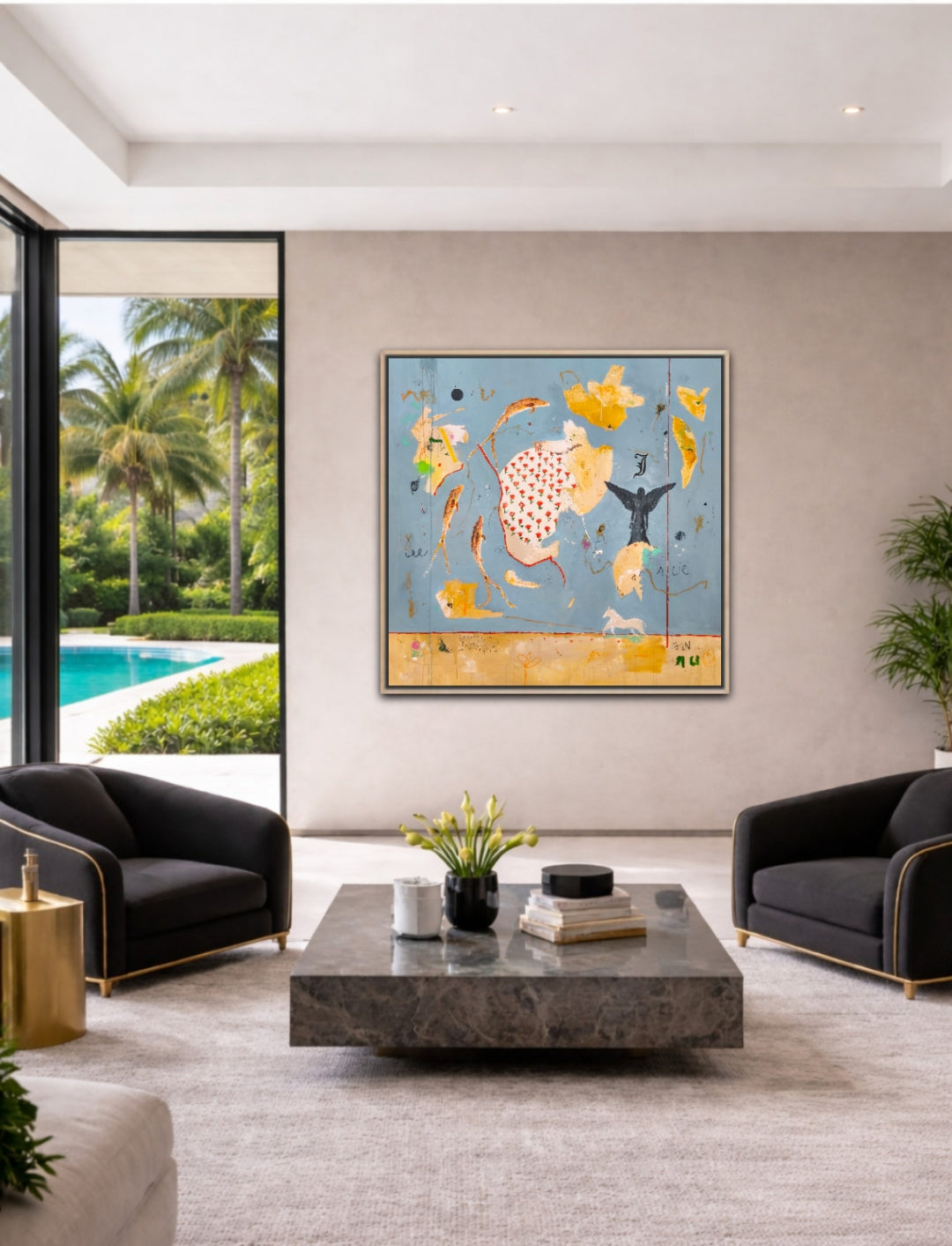 Técnica: acrílico, lápiz, carboncillo, gesso, ceras.