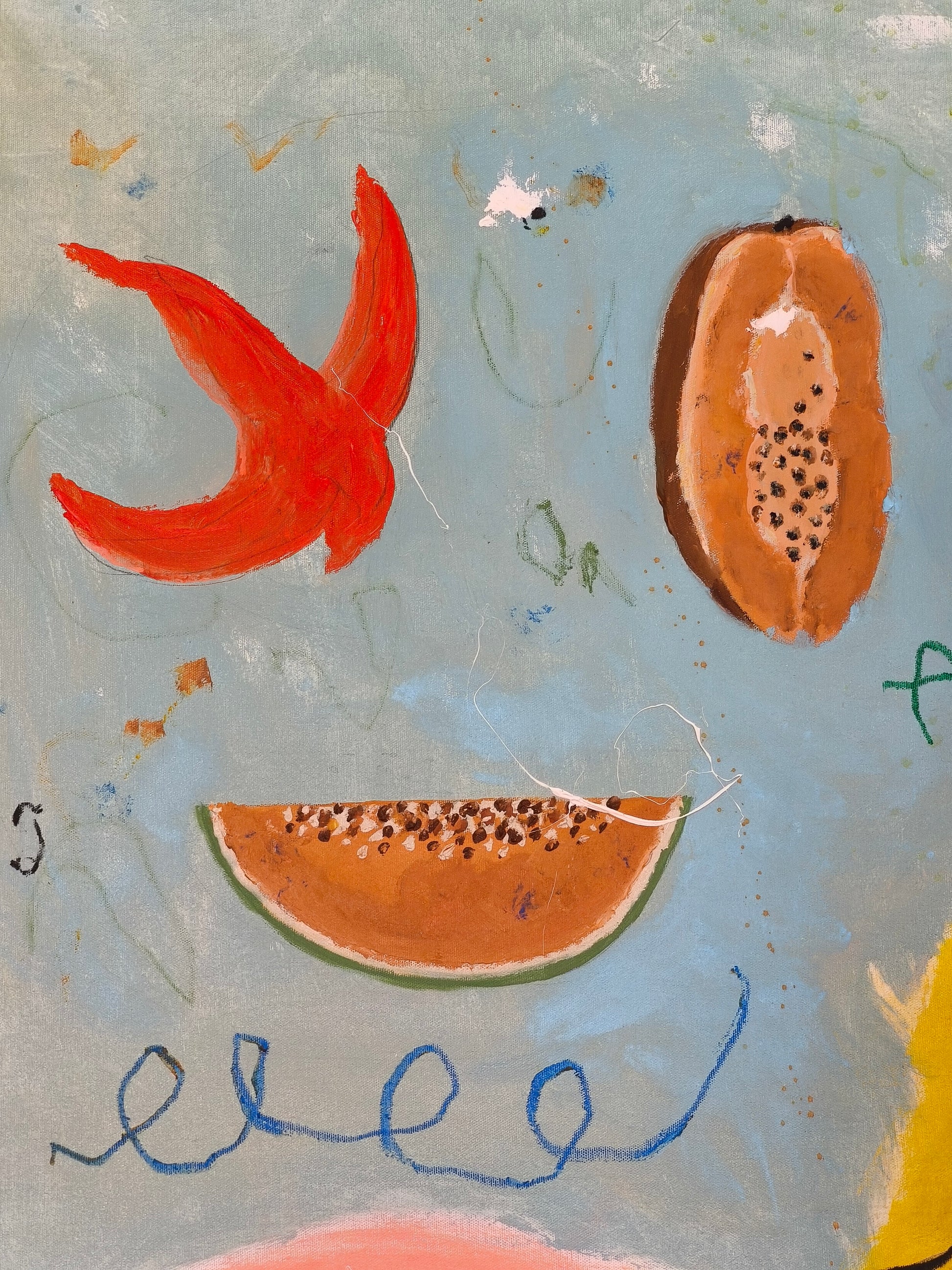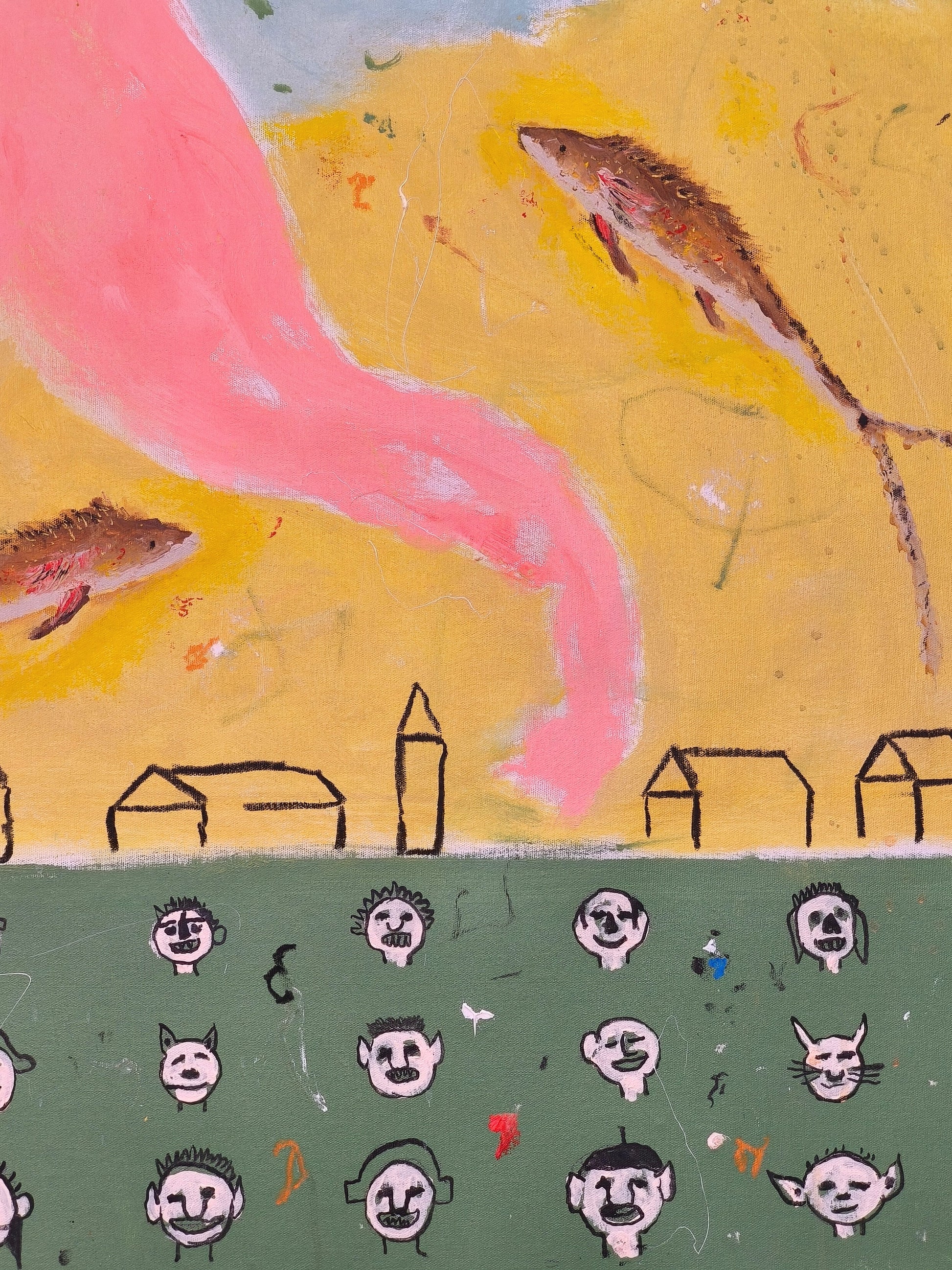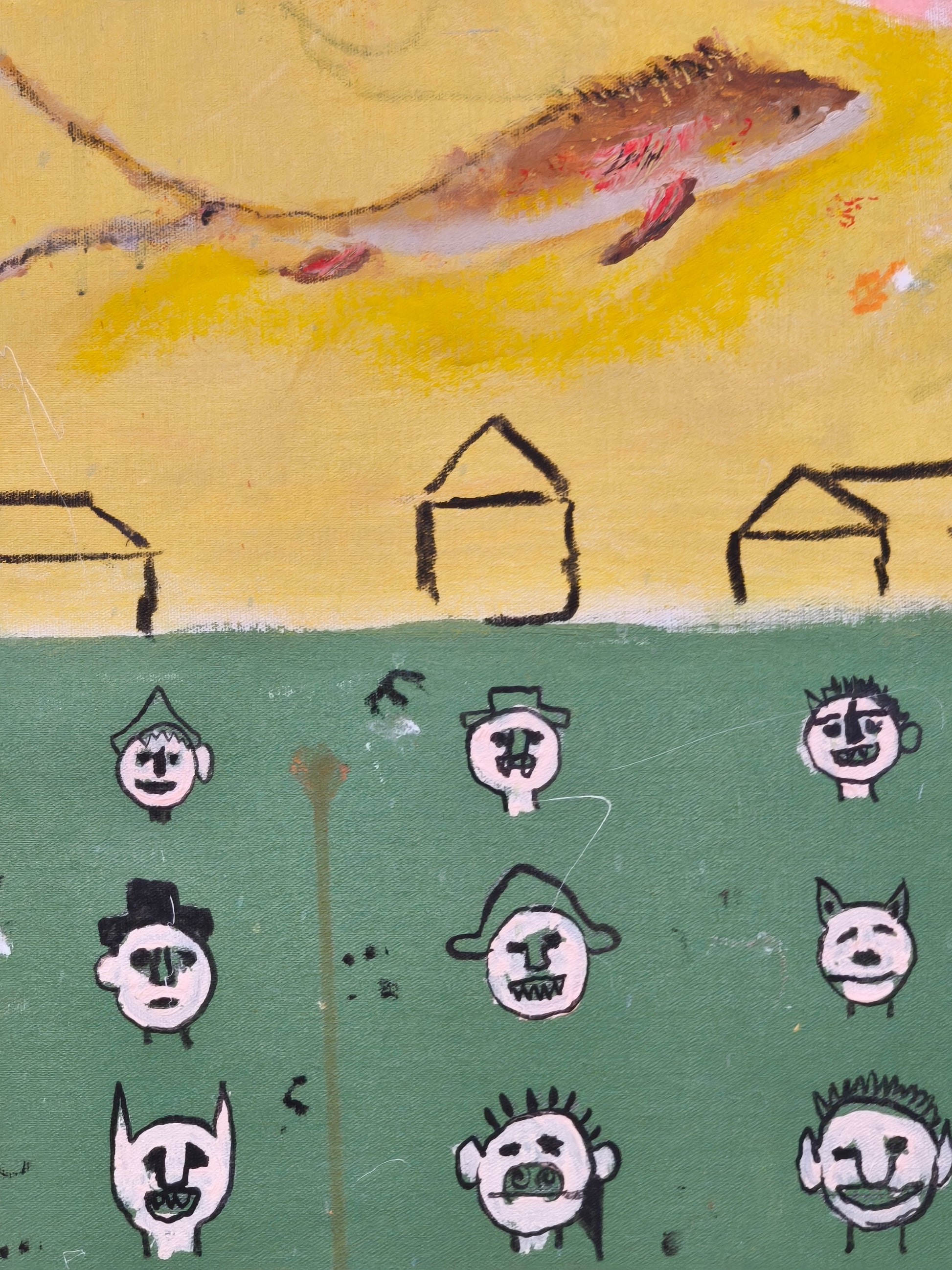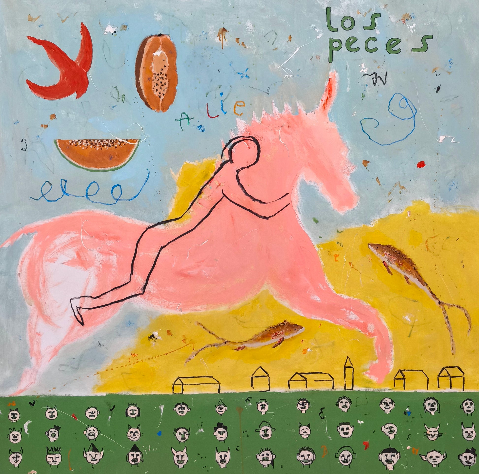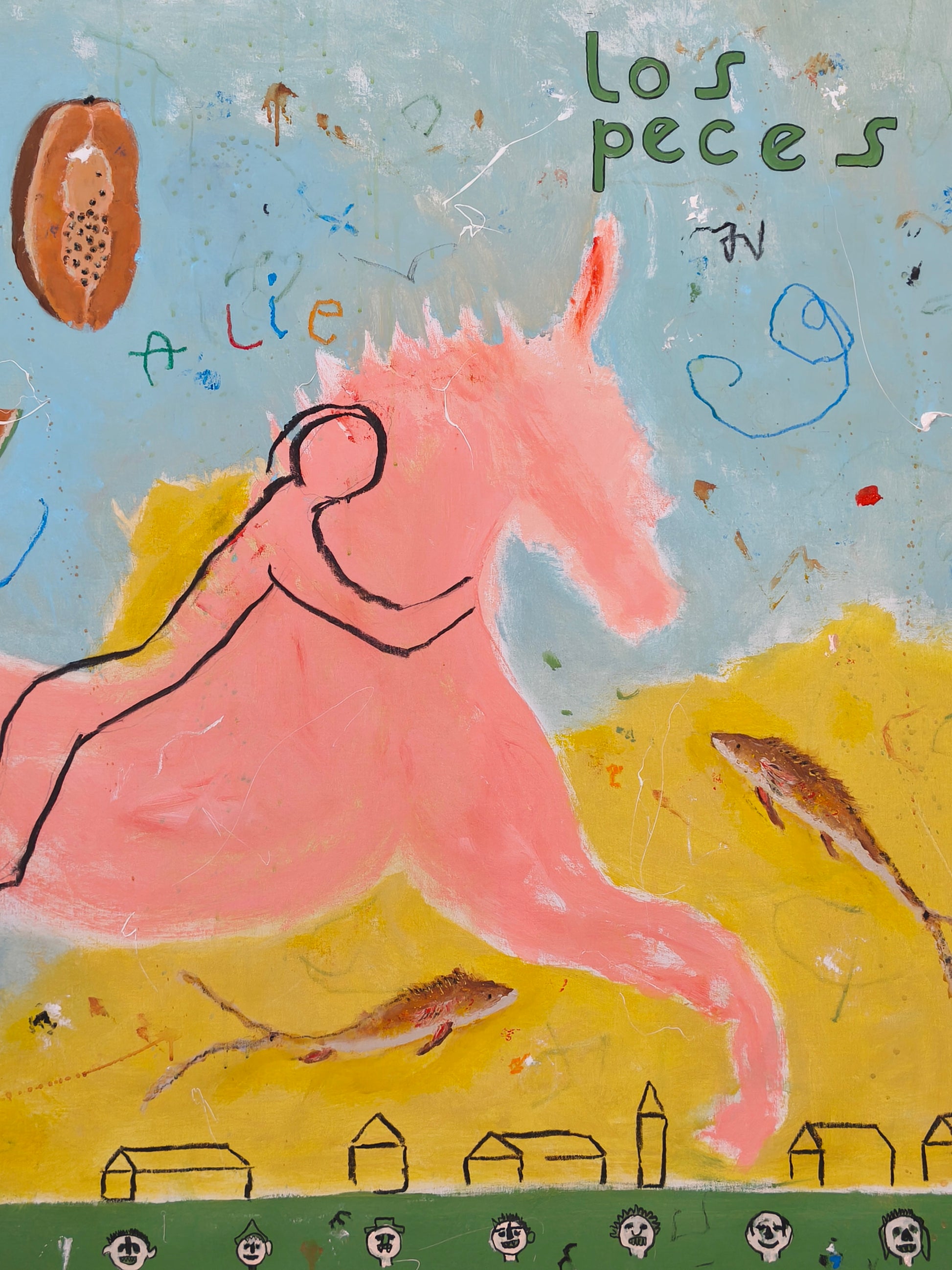 Técnica: acrílico, lápiz, carboncillo, gesso, ceras.