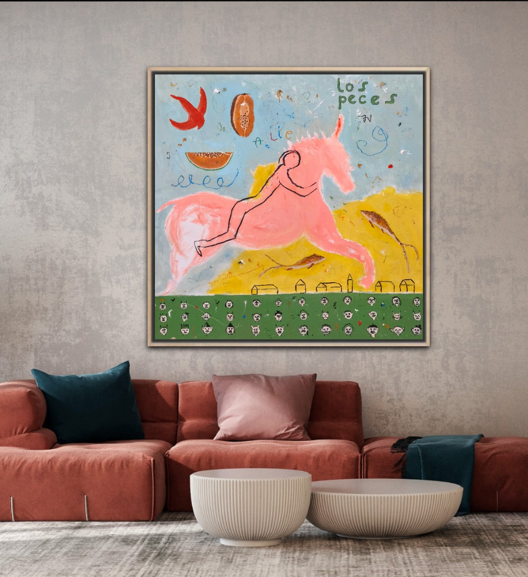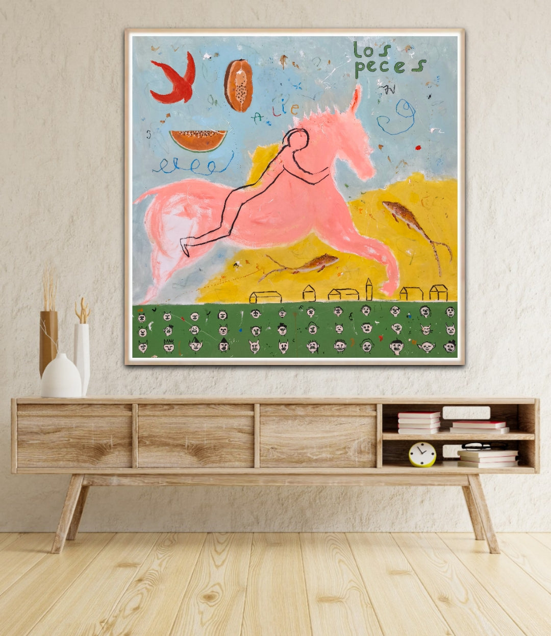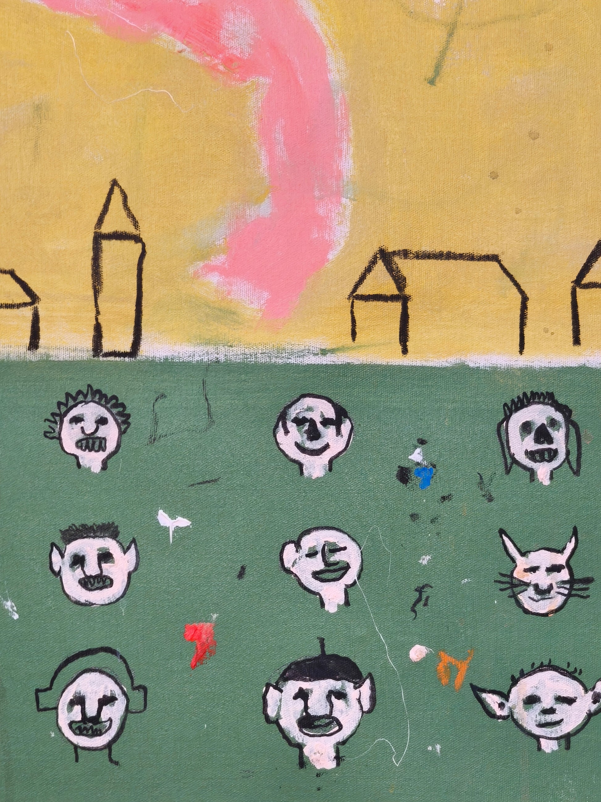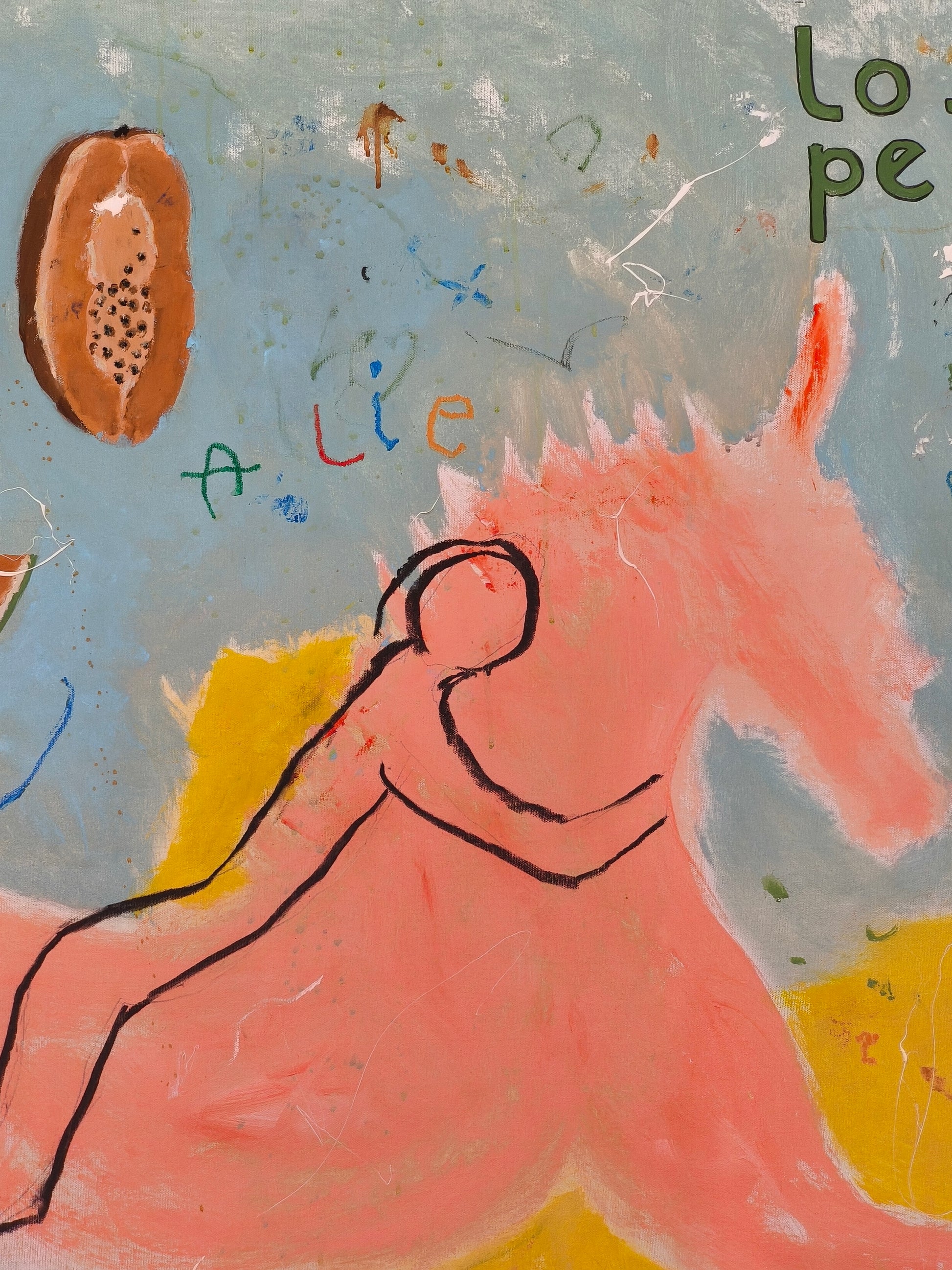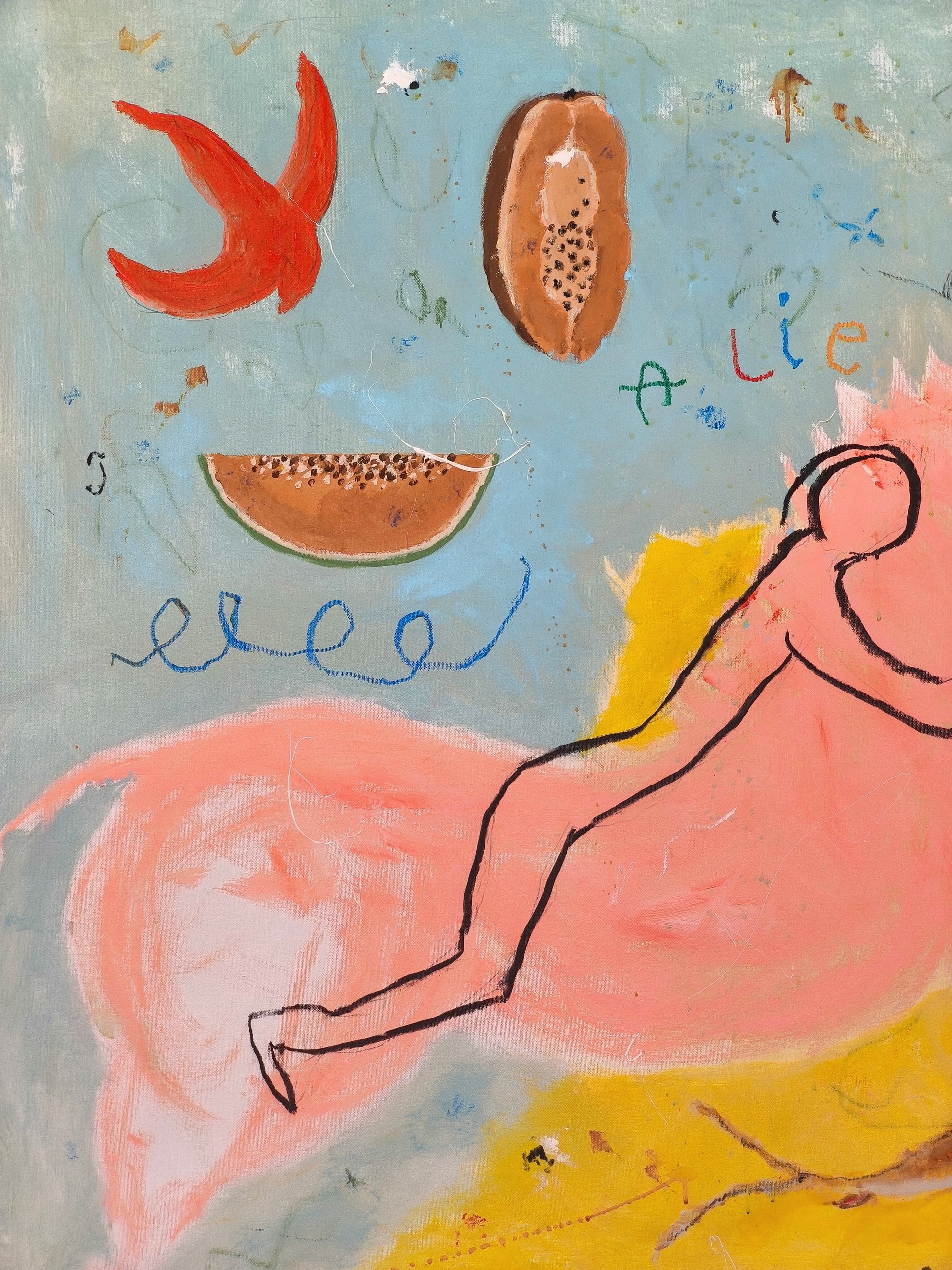 Técnica: acrílico, lápiz, carboncillo, gesso, ceras.
