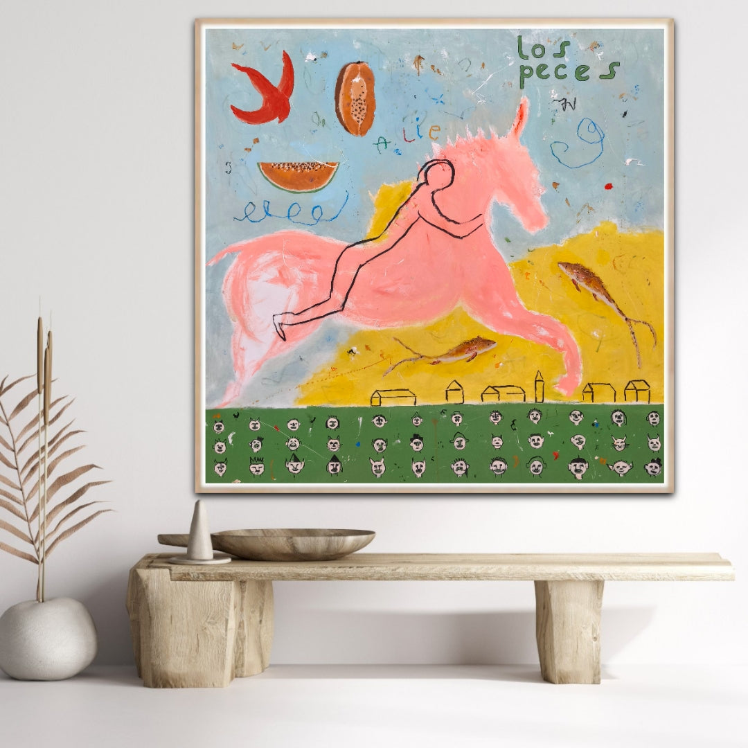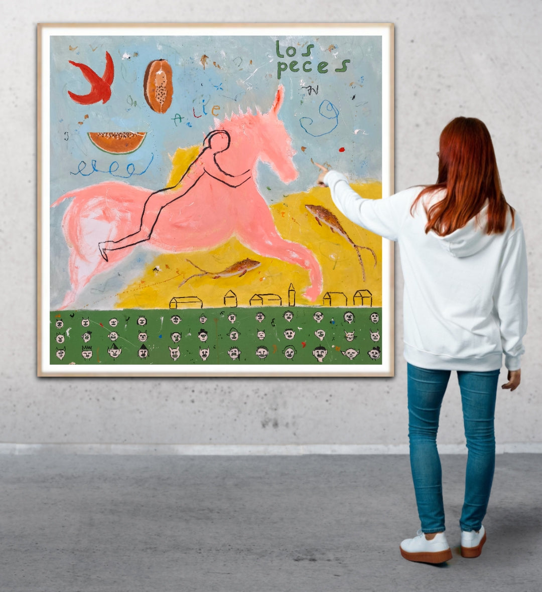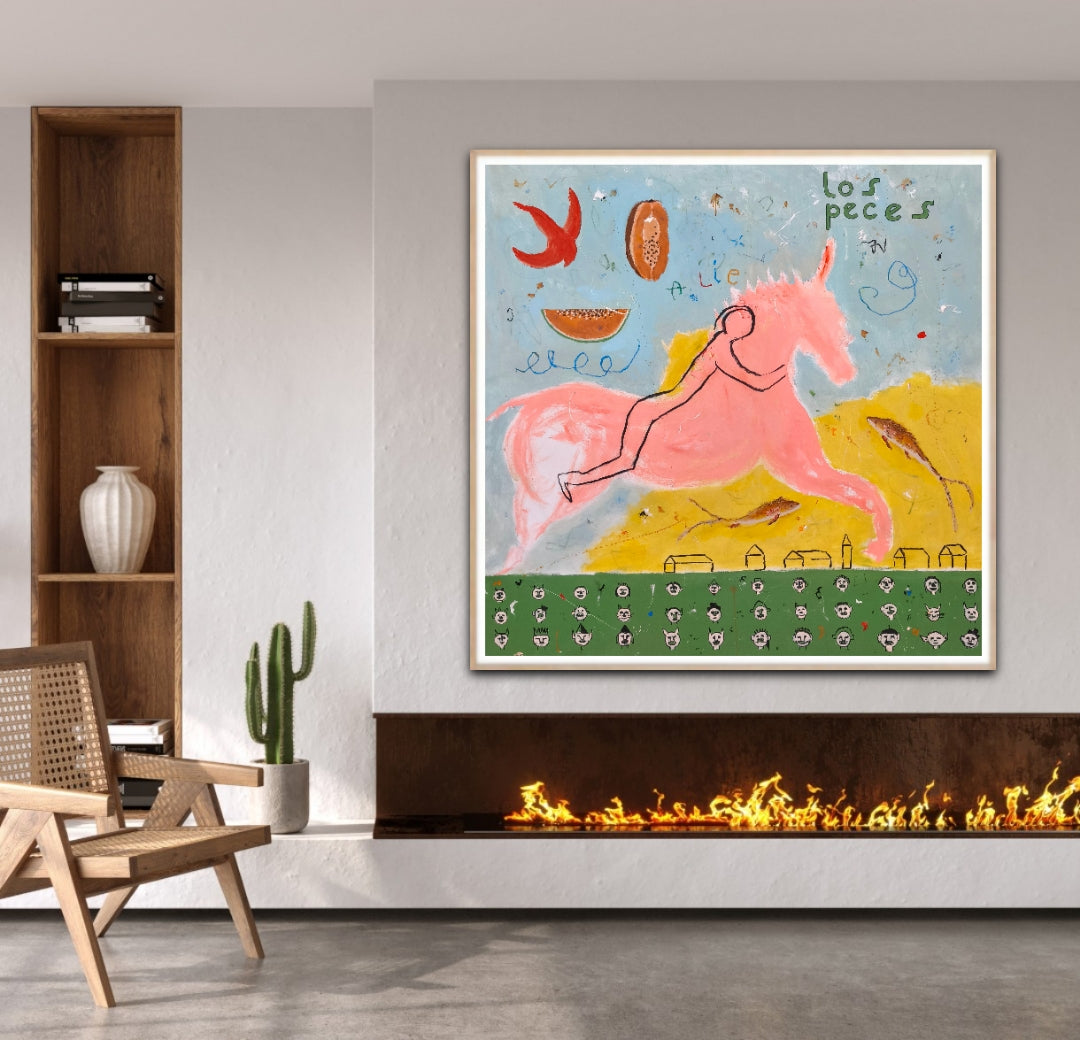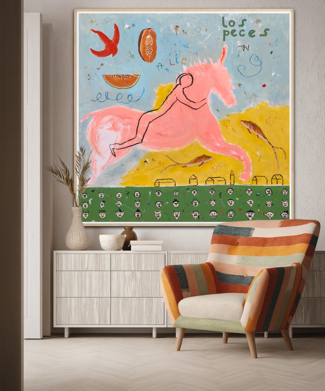 Técnica: acrílico, lápiz, carboncillo, gesso, ceras.
