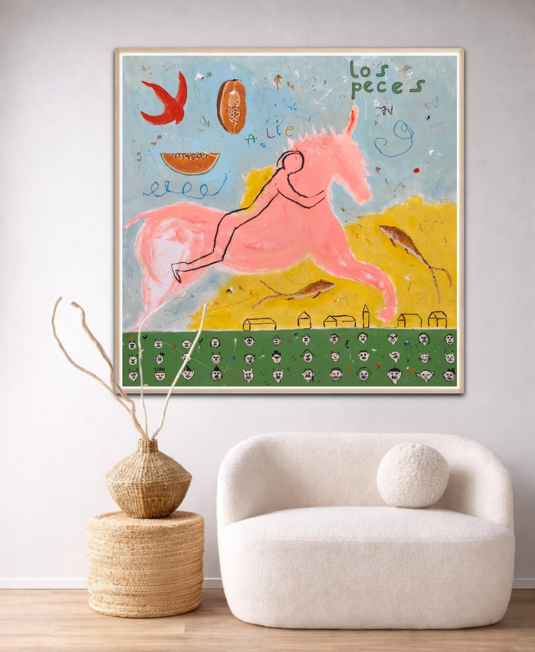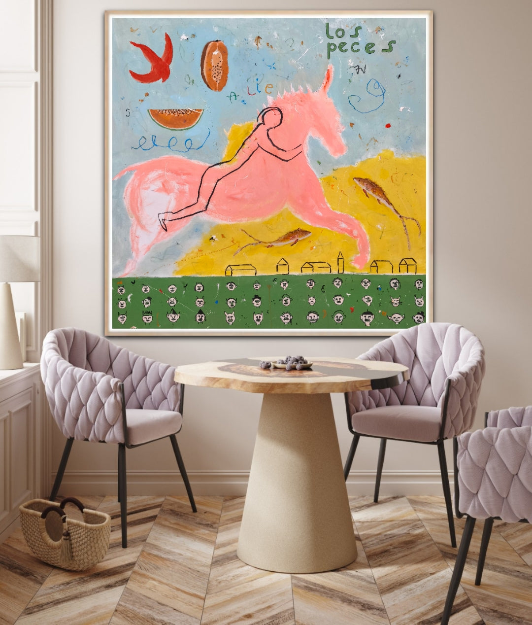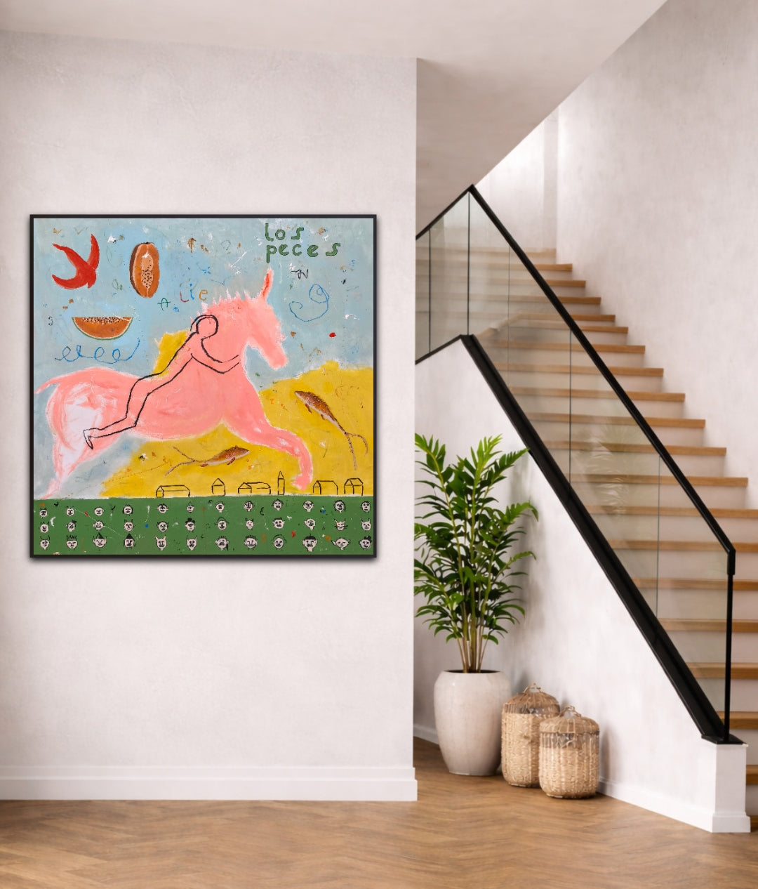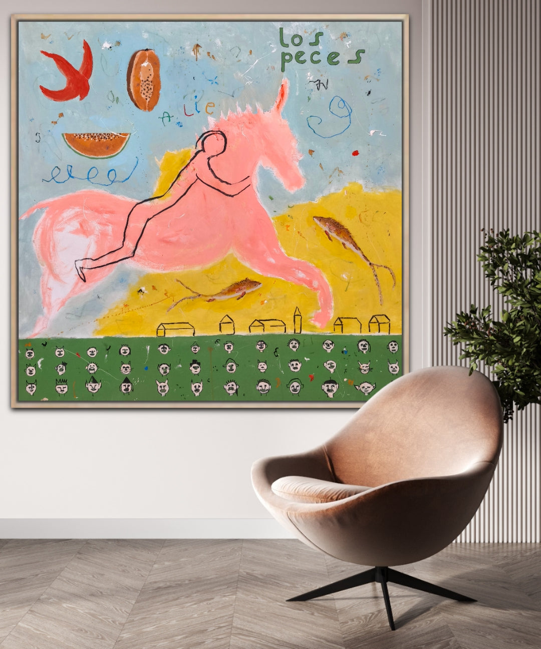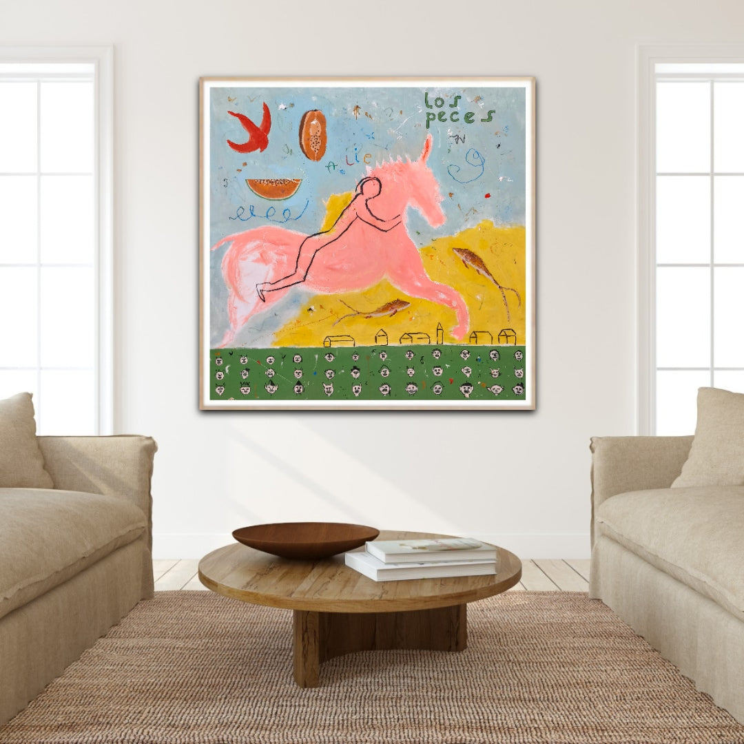 Técnica: acrílico, lápiz, carboncillo, gesso, ceras.