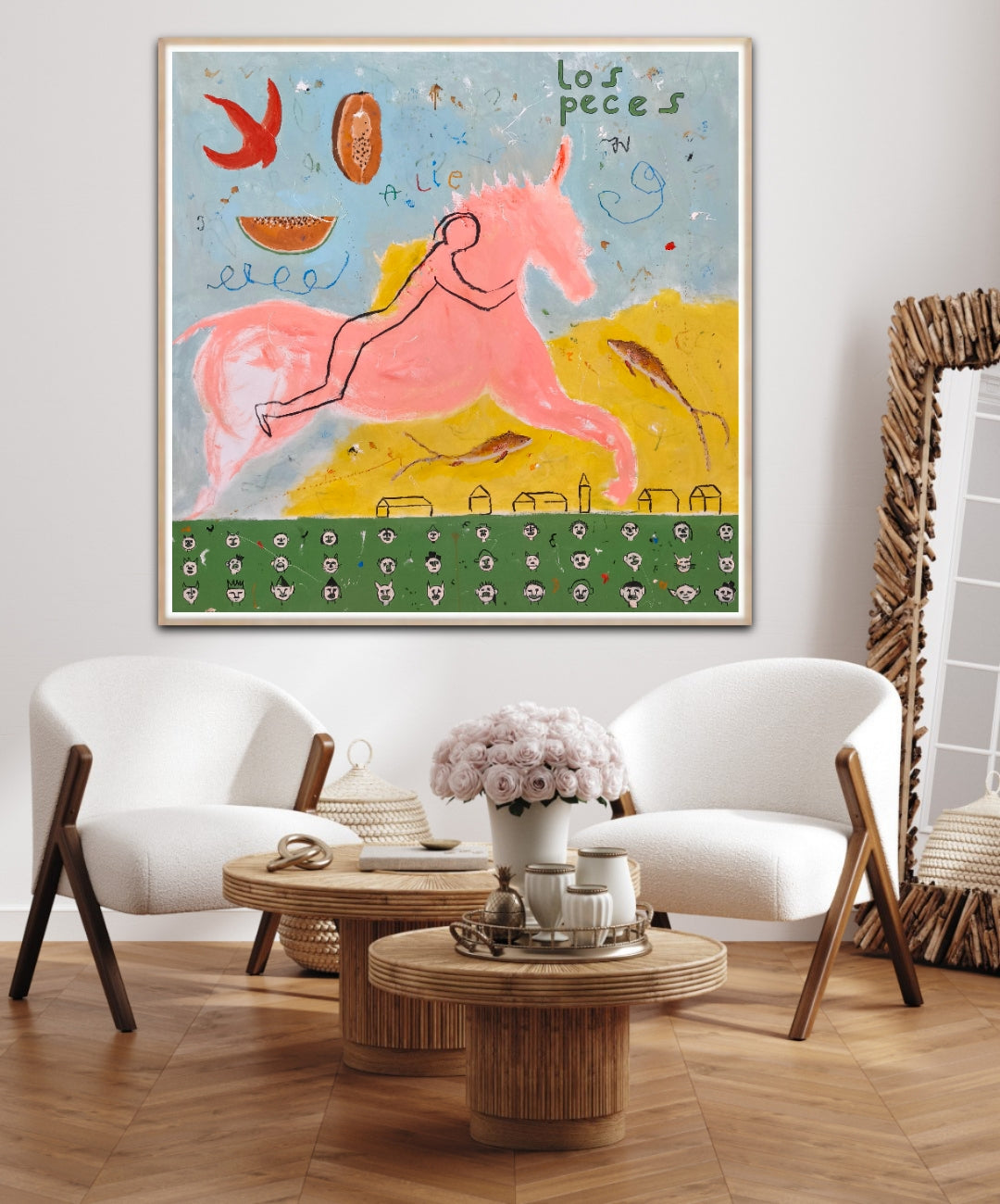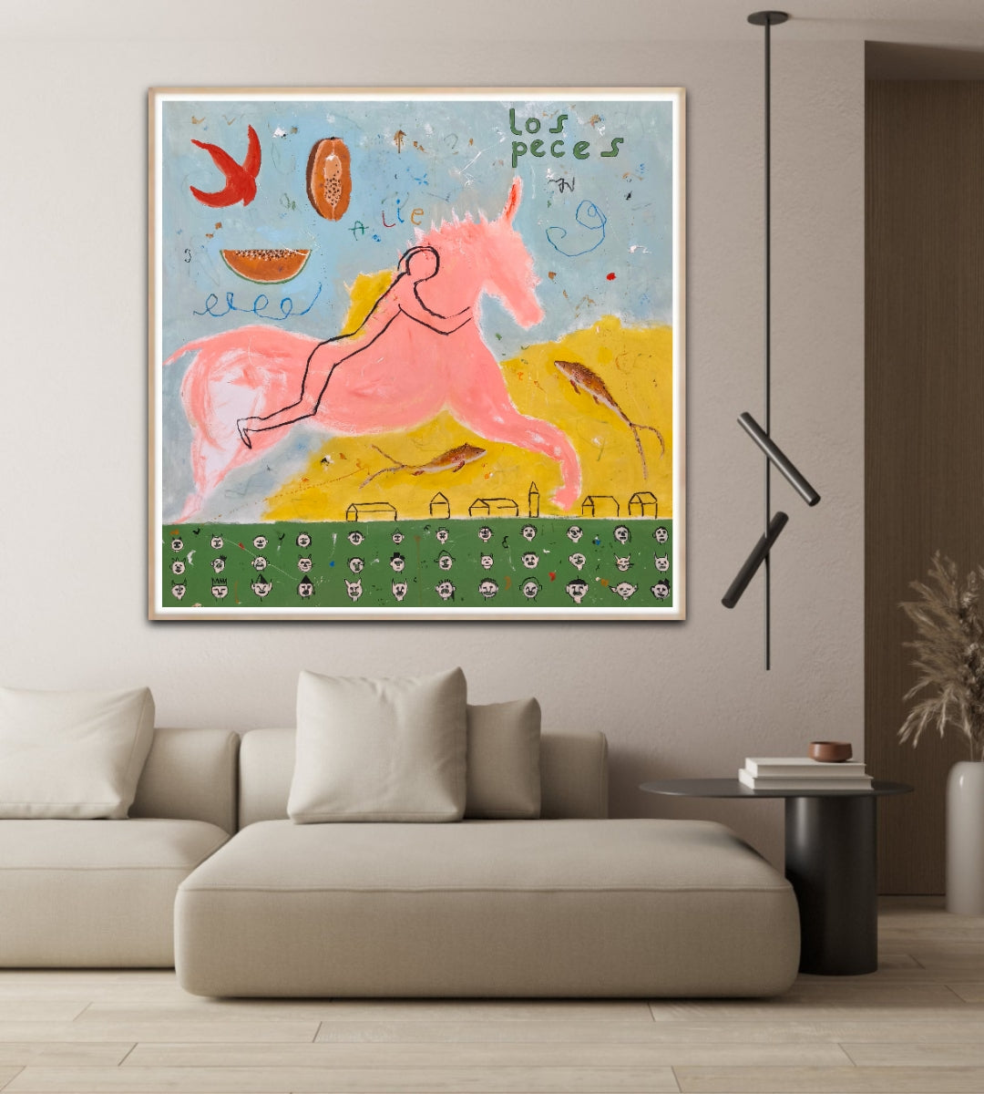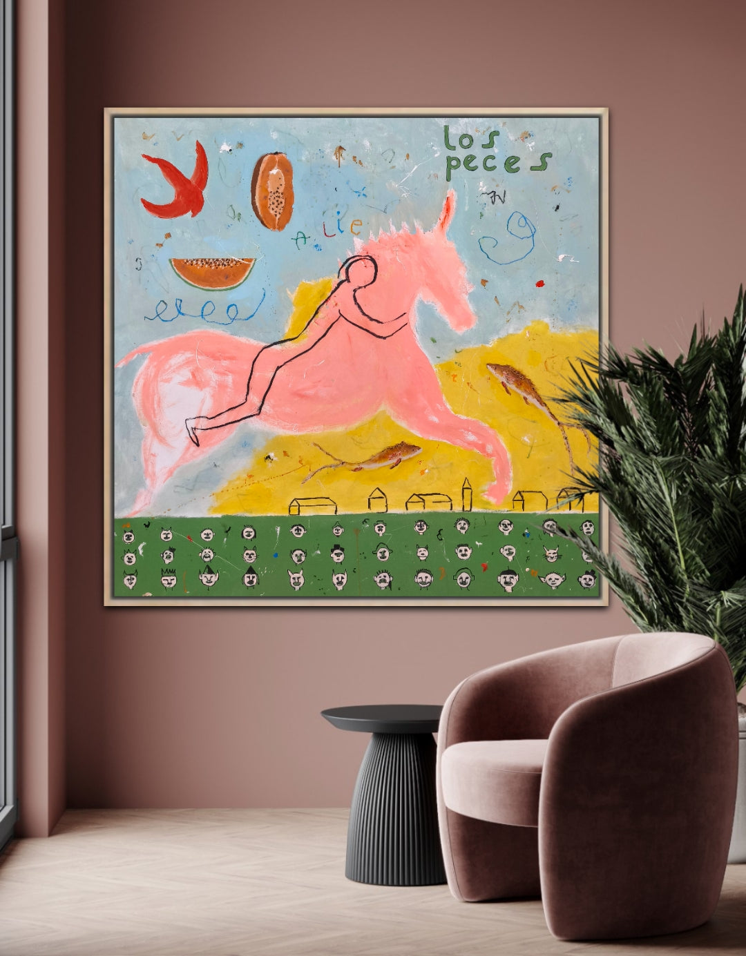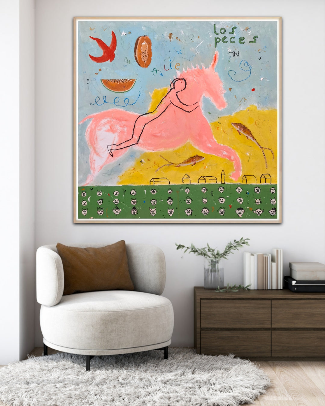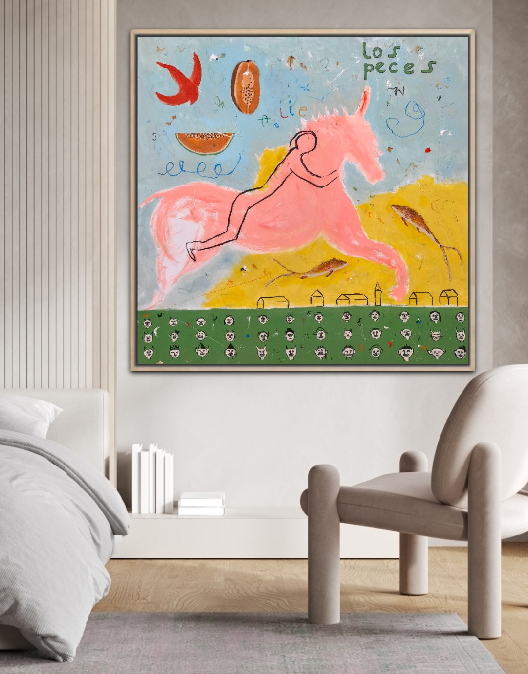 Técnica: acrílico, lápiz, carboncillo, gesso, ceras.