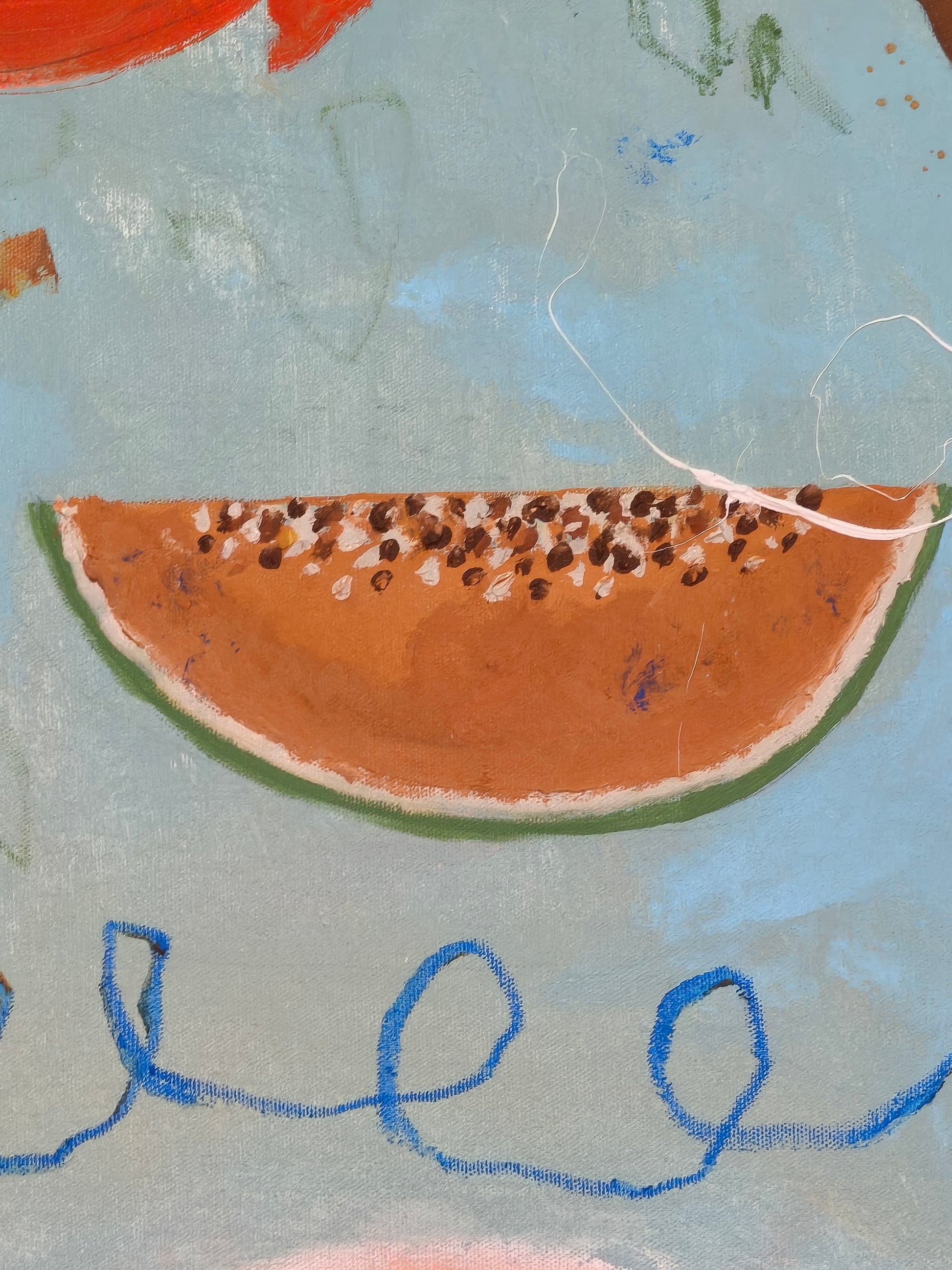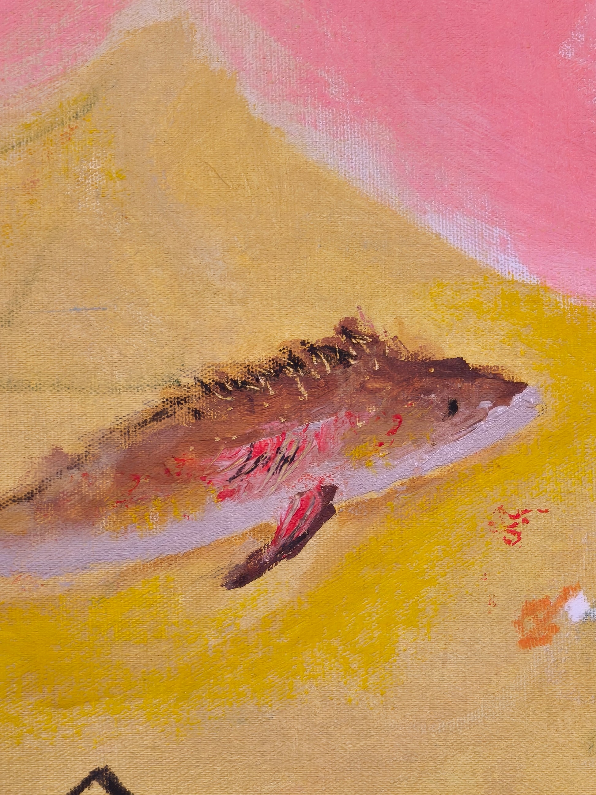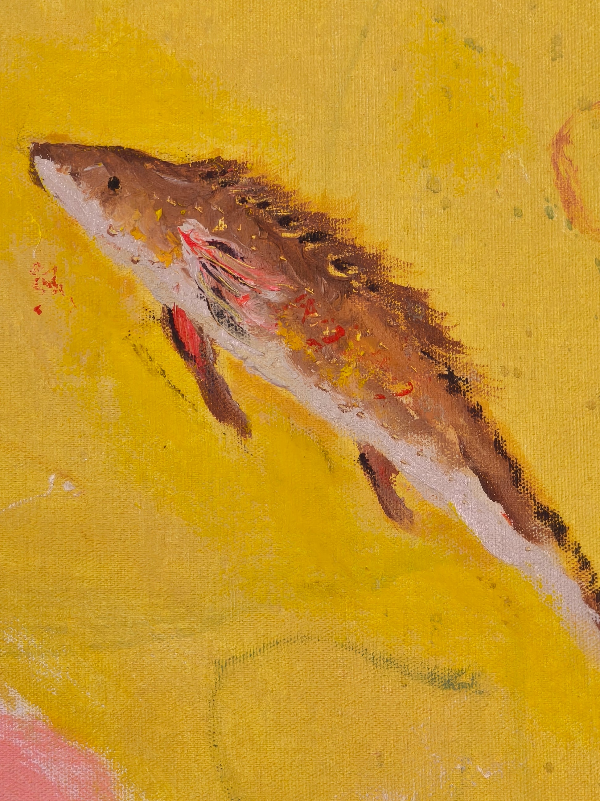 Pintura gestual, intuitiva, que deja que las cosas pasen y se apoya sobre lo que aparece. Aprovechando el accidente y aceptando las consecuencias.