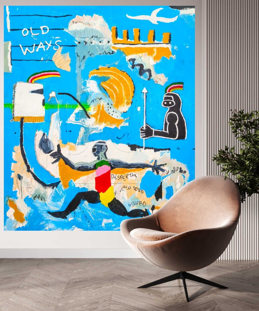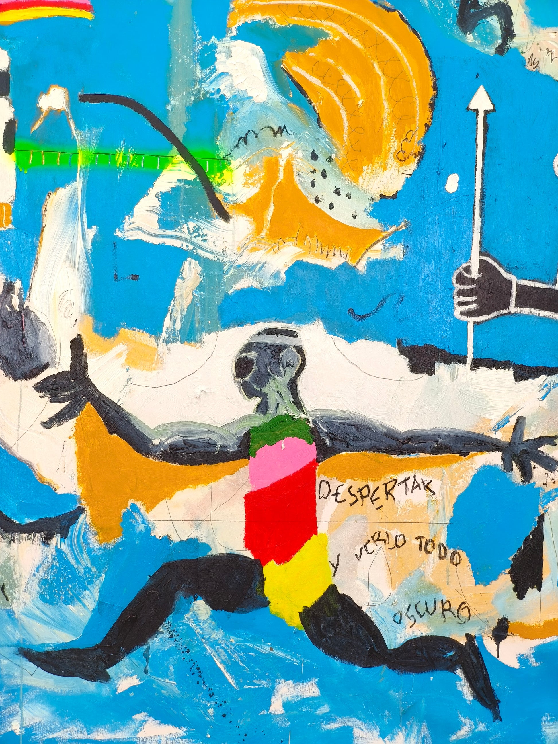 Técnica: acrílico, pigmentos, lápiz, carboncillo, spray.