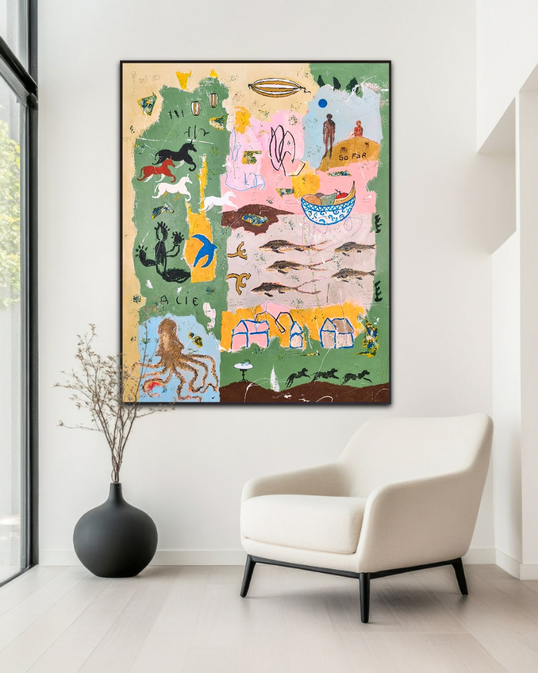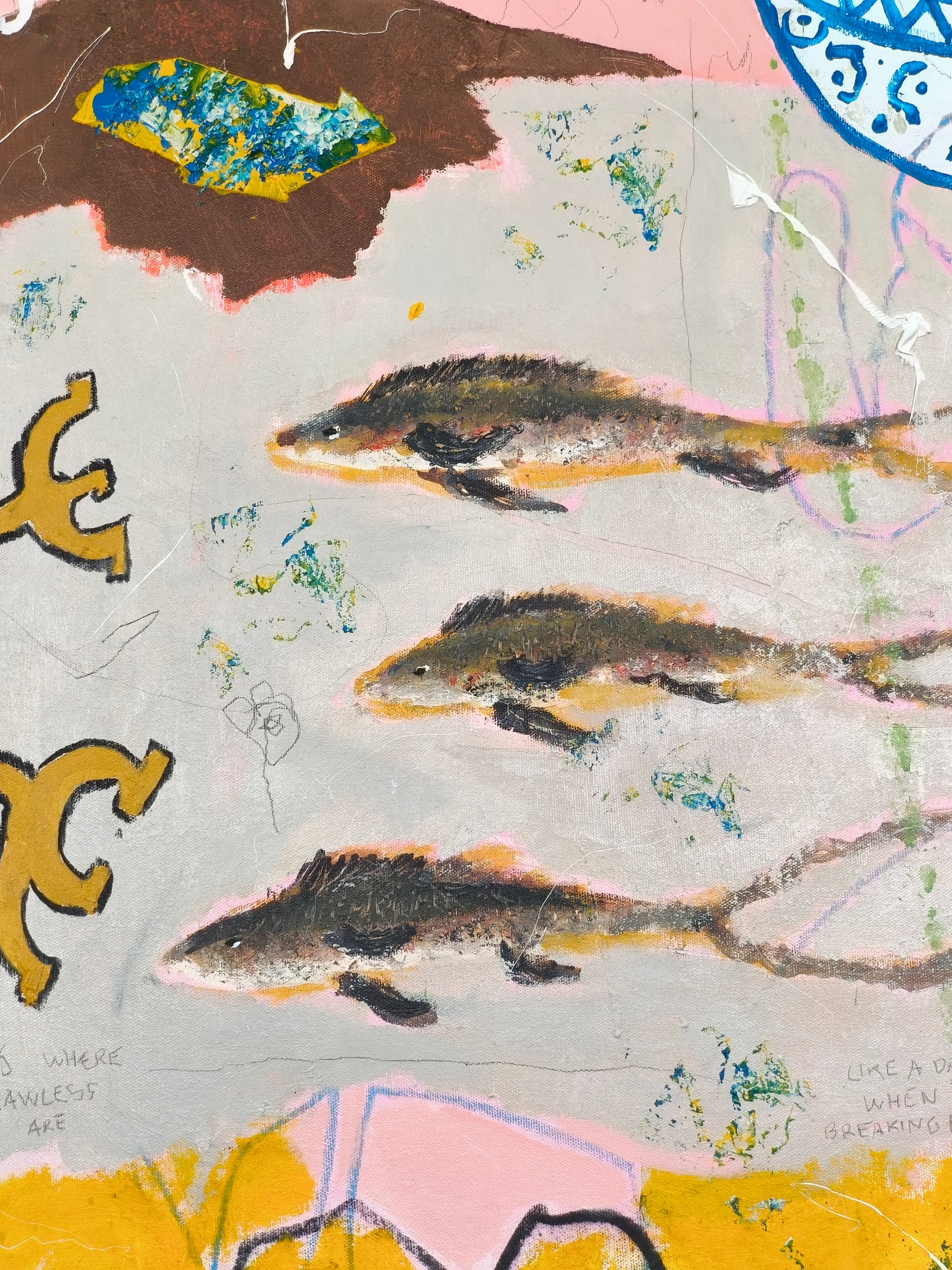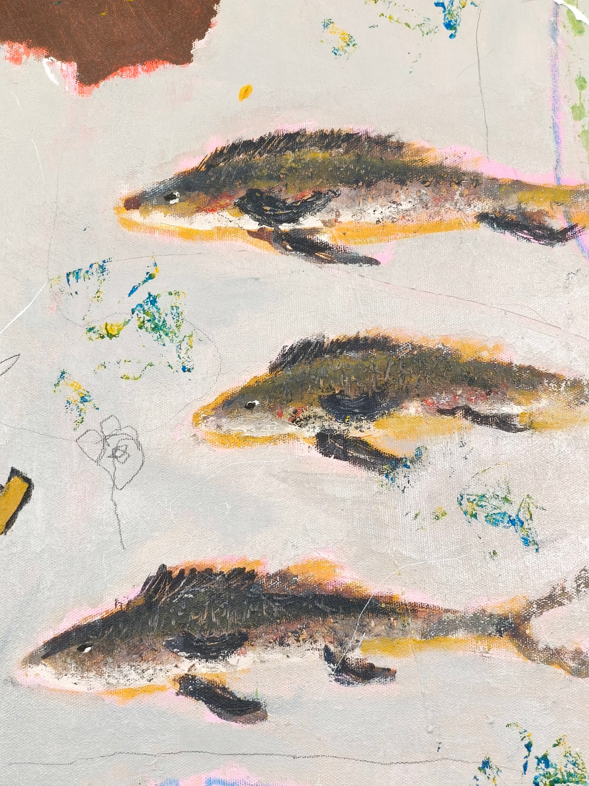 Gestural, intuitive painting that lets things happen and relies on what emerges. Taking advantage of the unexpected and accepting the consequences.