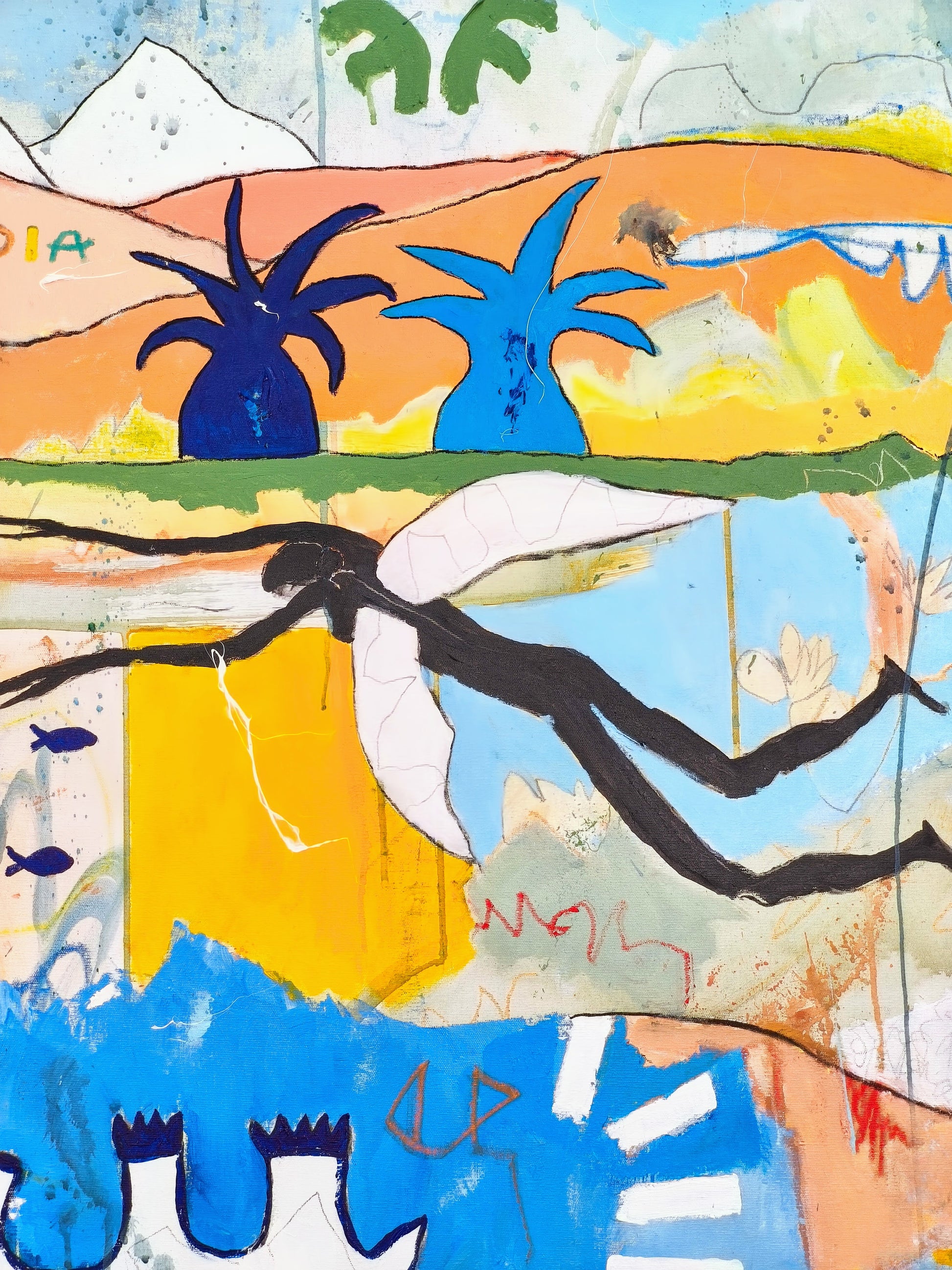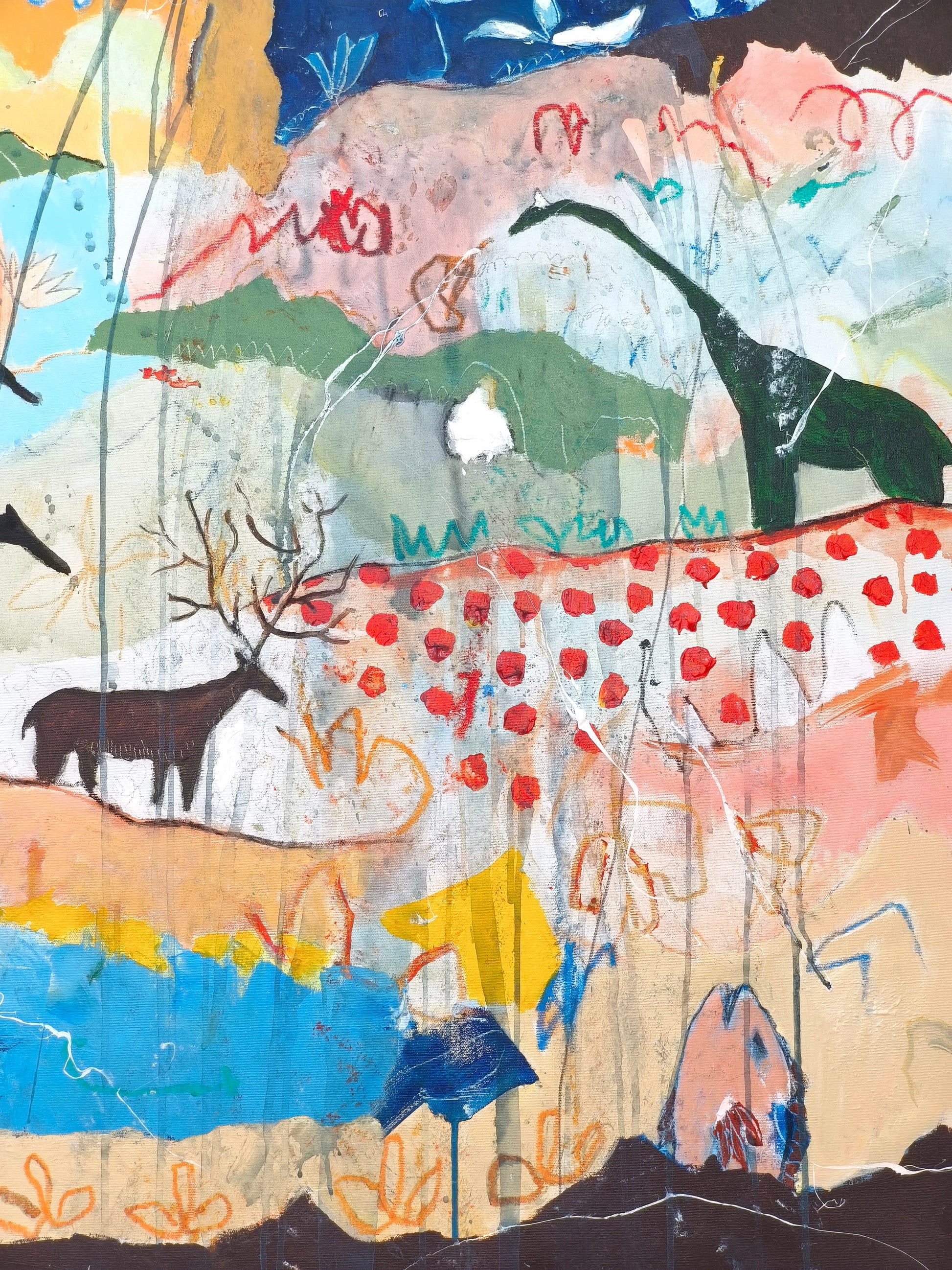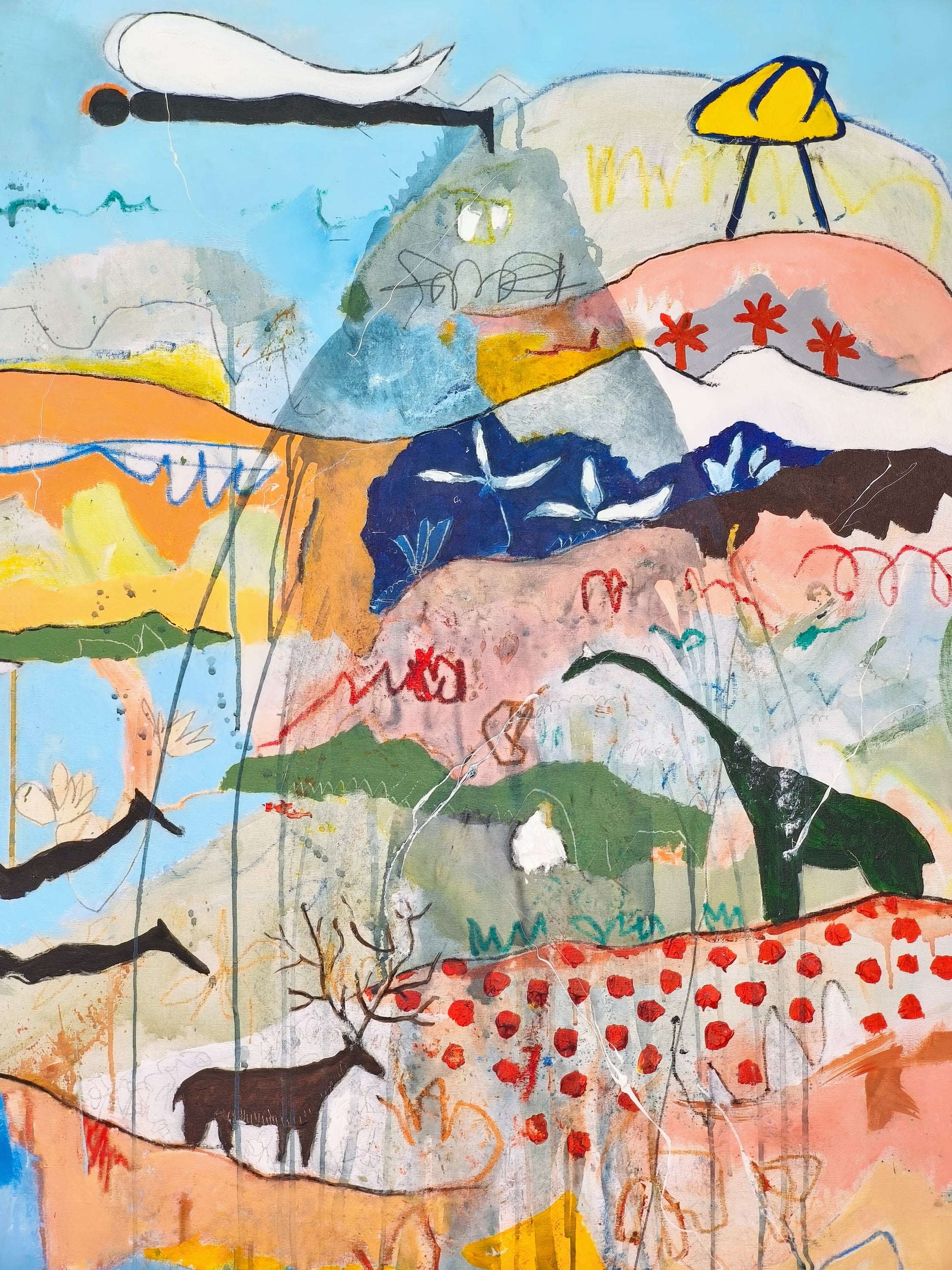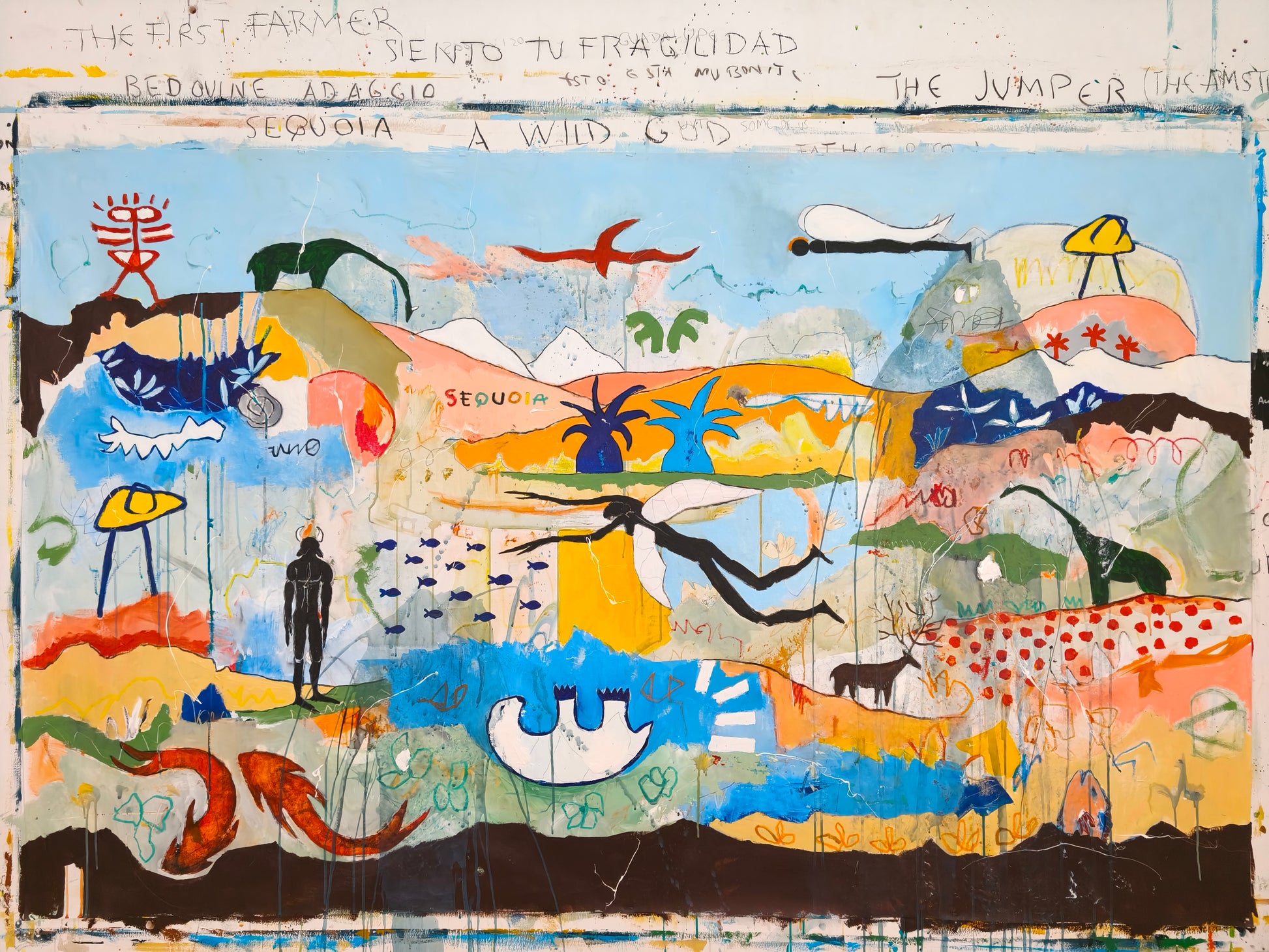 Técnica: acrílico, pigmentos, lápiz, carboncillo, gesso, stick oil.