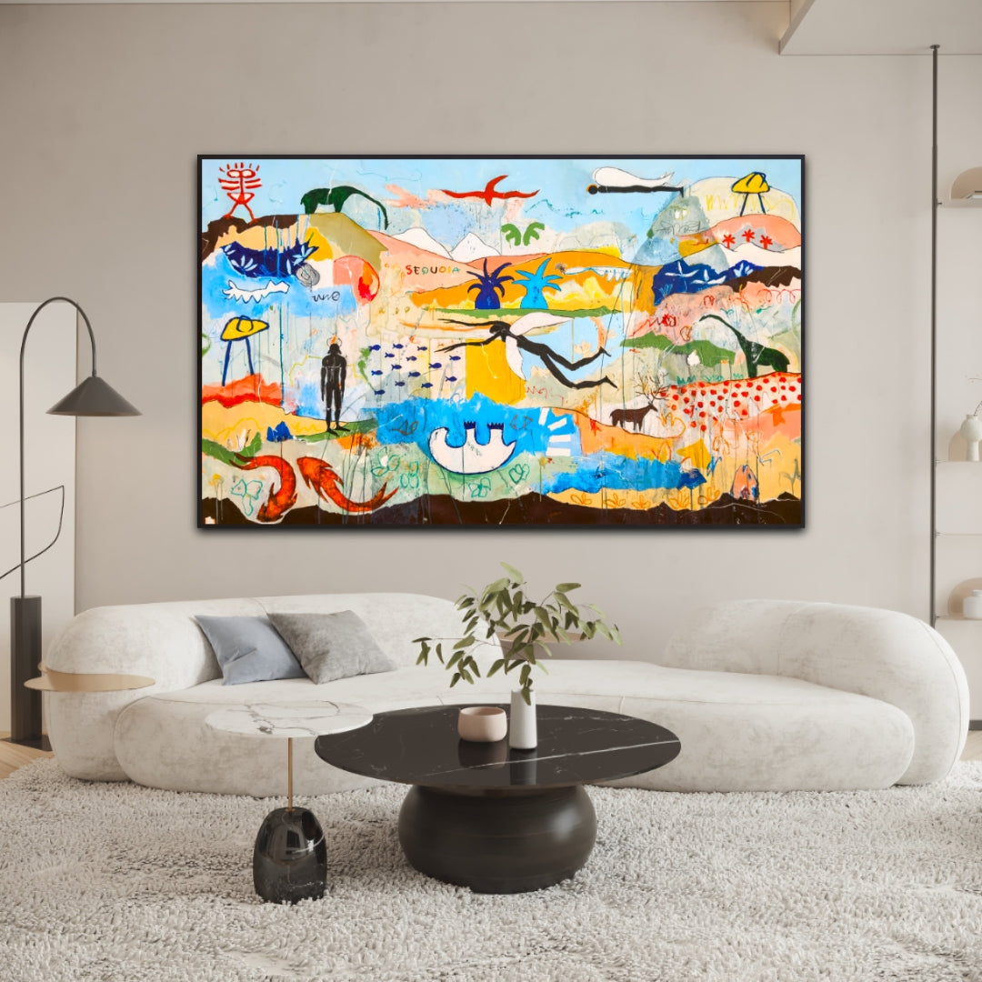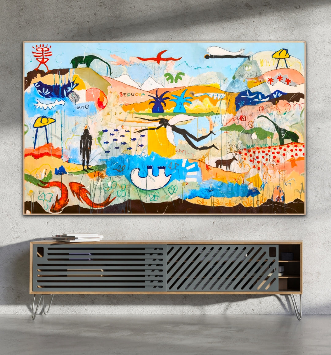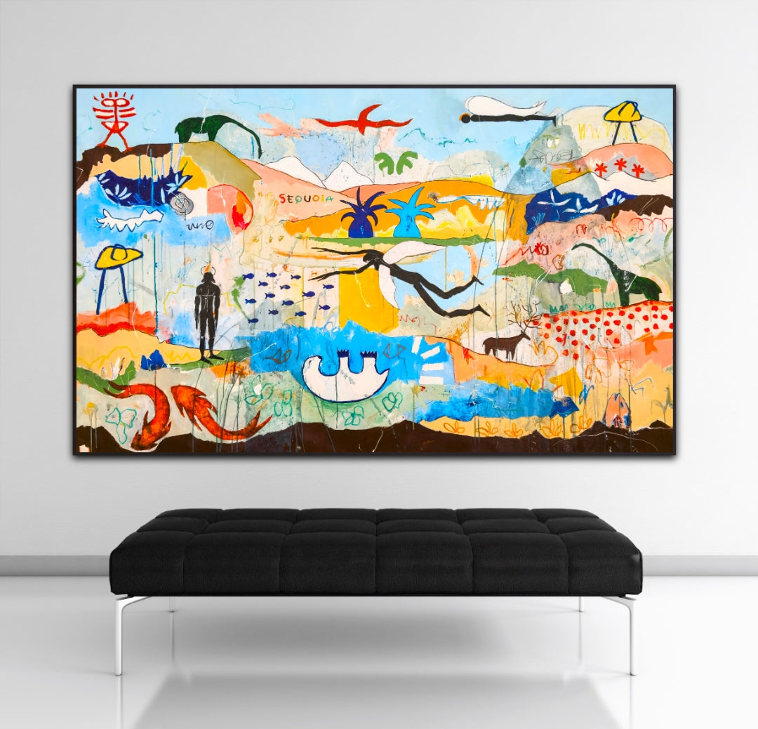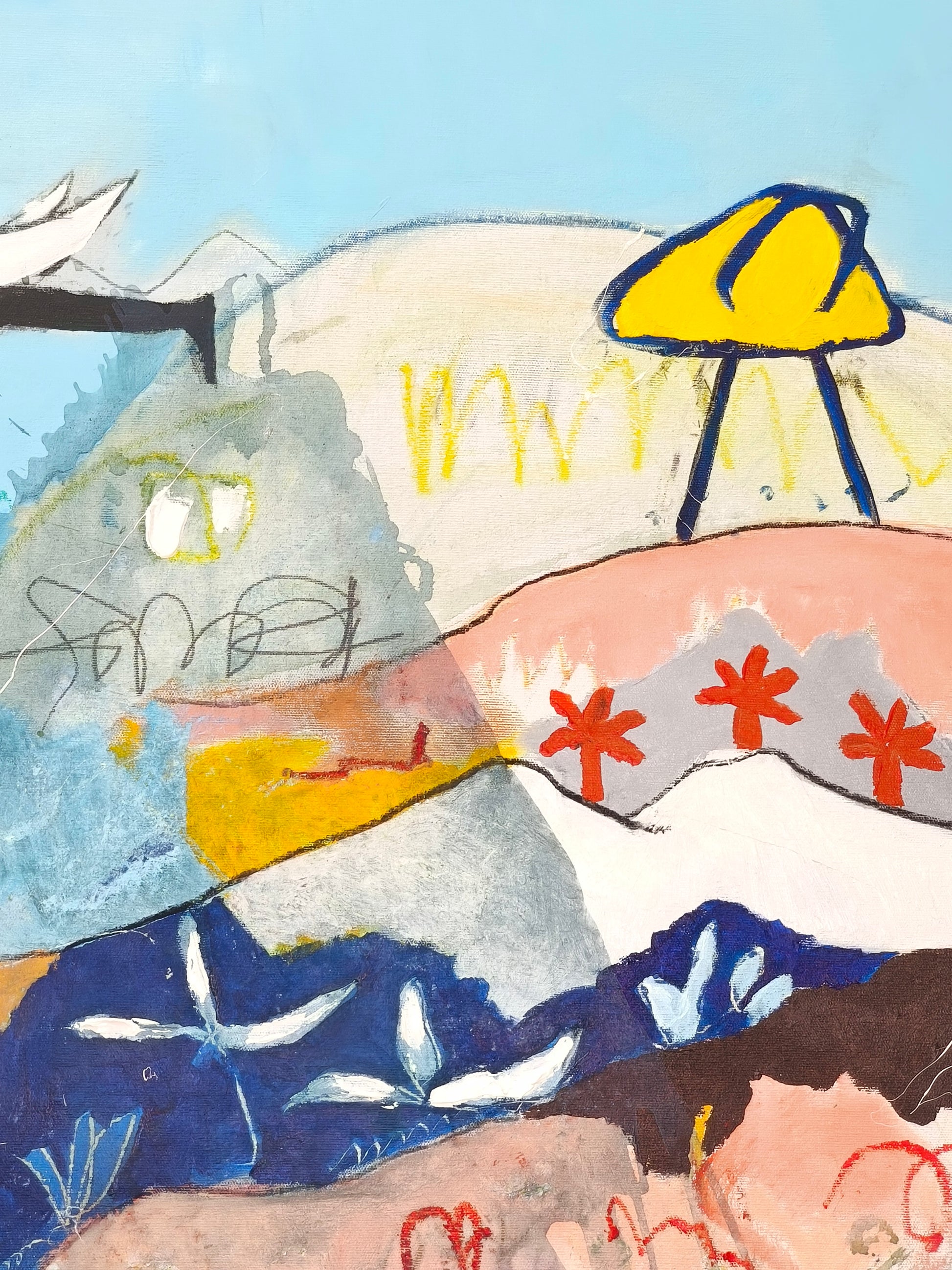 Técnica: acrílico, pigmentos, lápiz, carboncillo, gesso, stick oil.