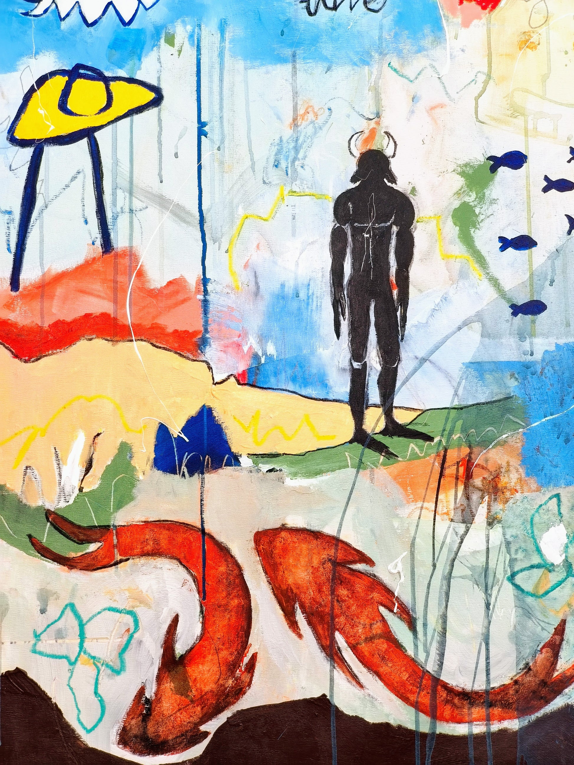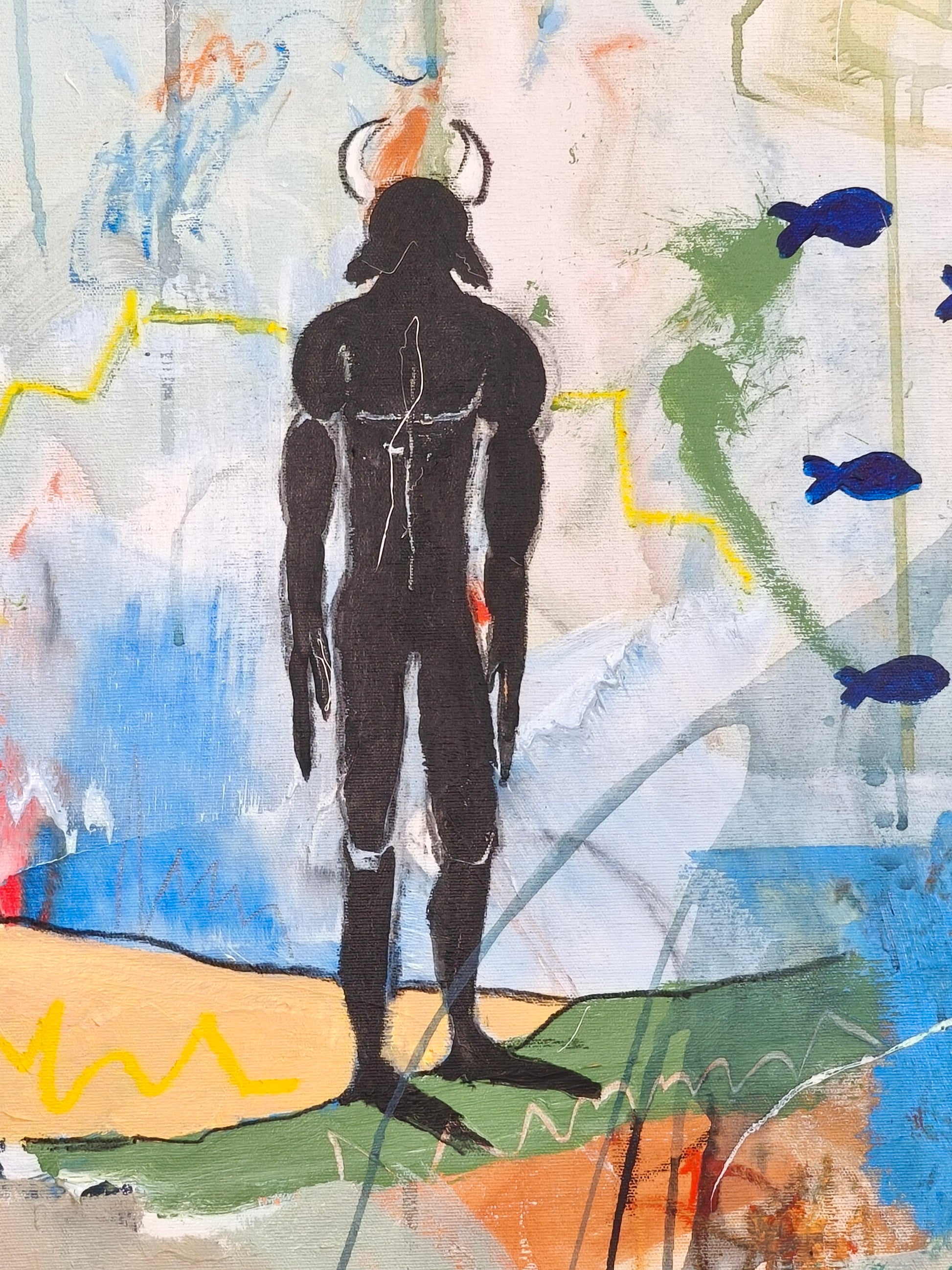 Cuadro trabajado desde la improvisación libre. Action painting con la música de Nick Cave y Warren Ellis.