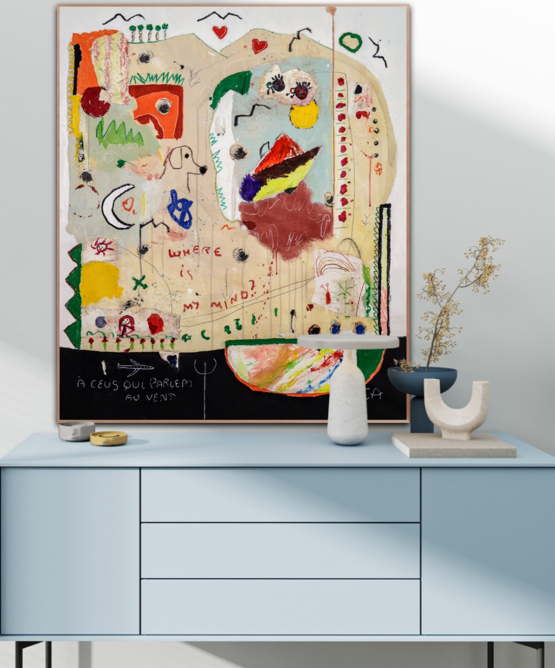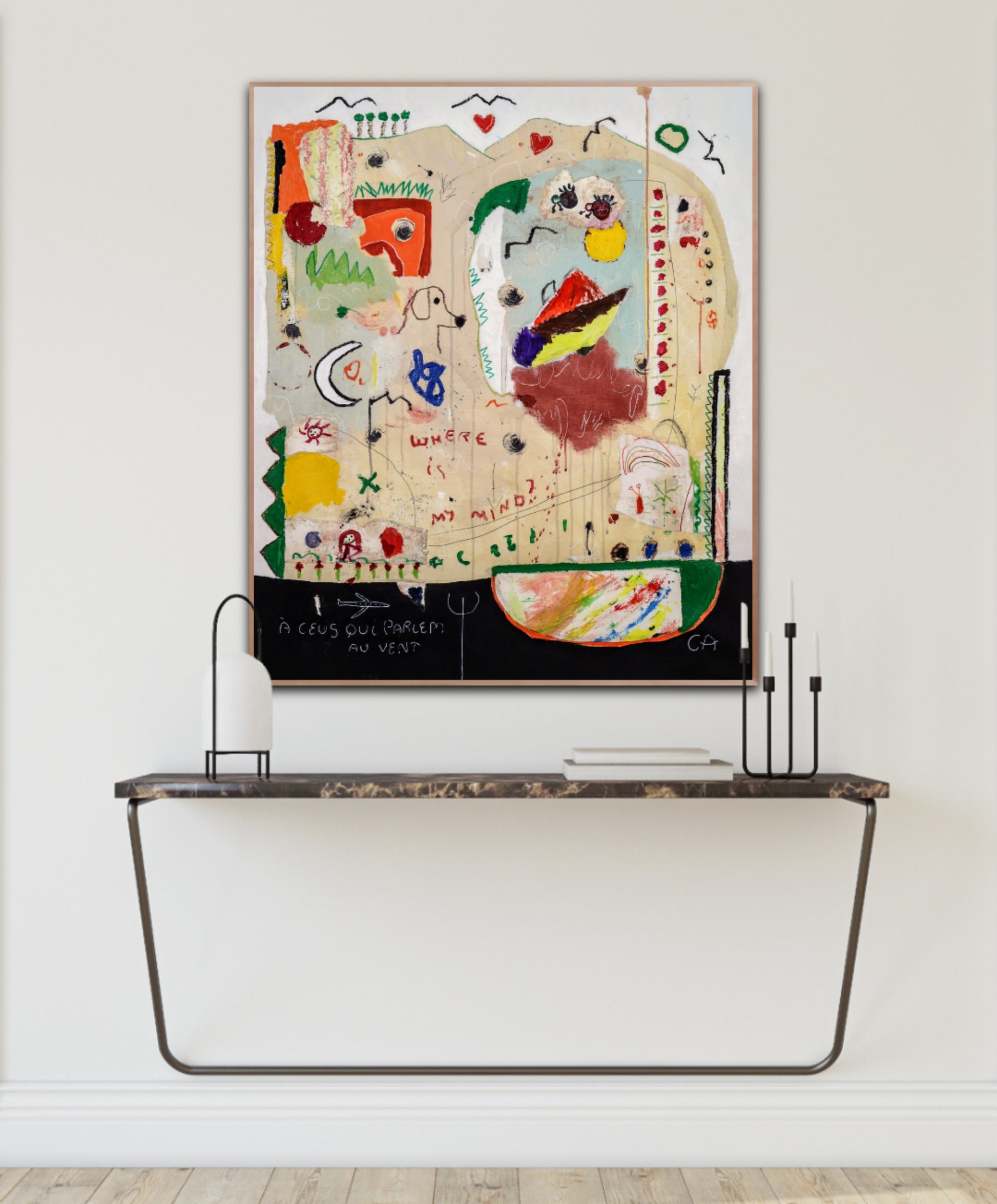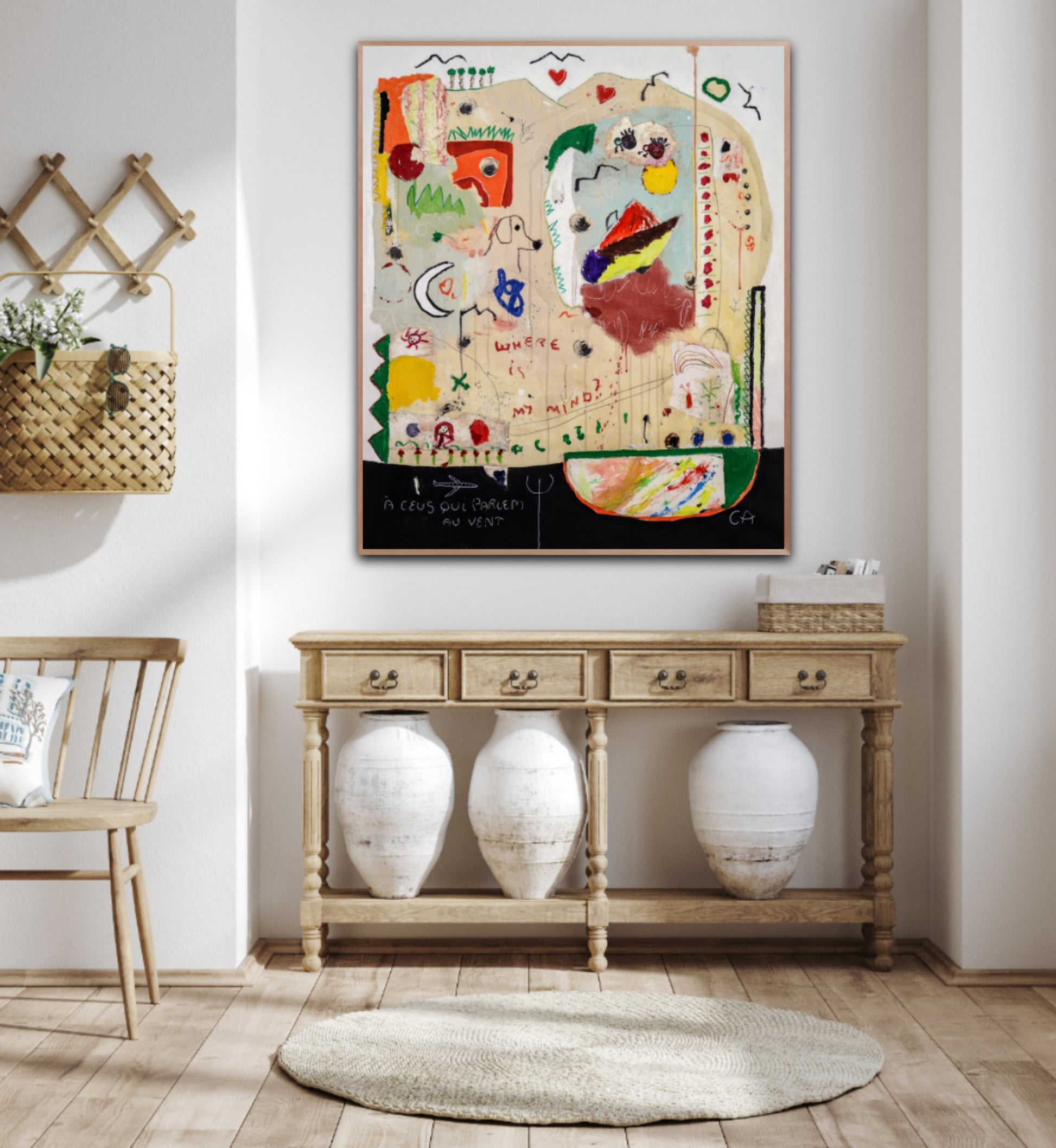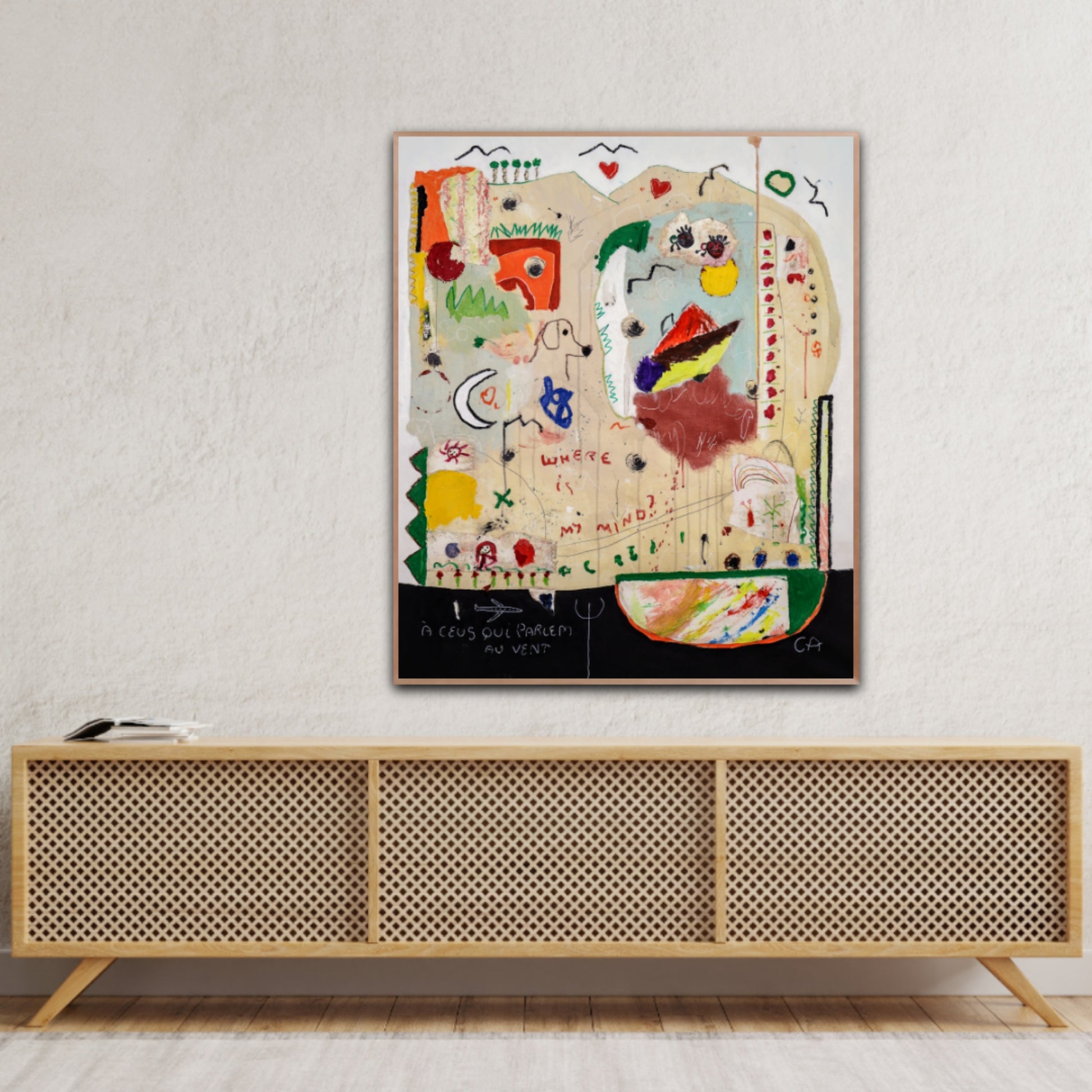 Técnica: acrílico, pigmentos, oil stick, lápiz, carboncillo y papel y.