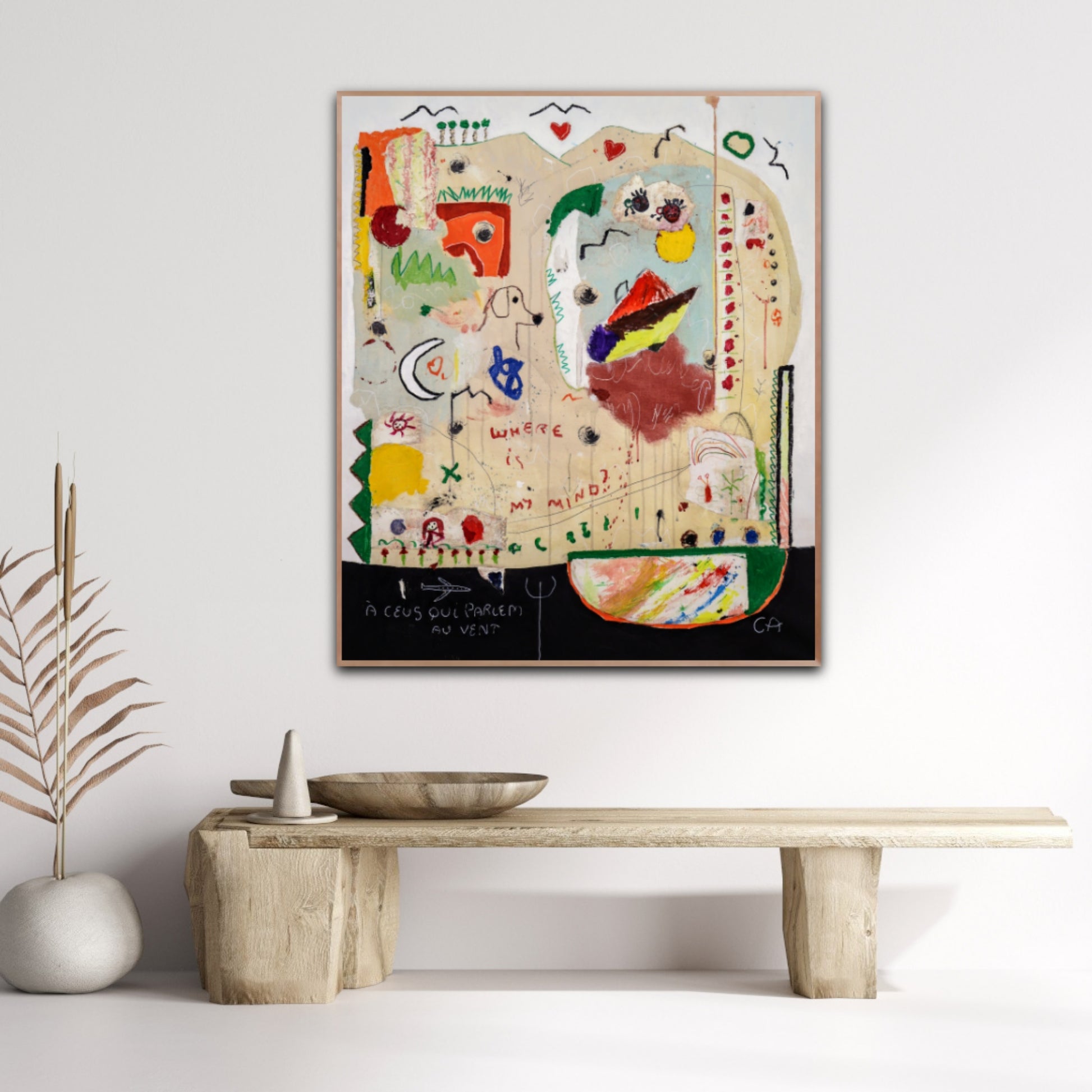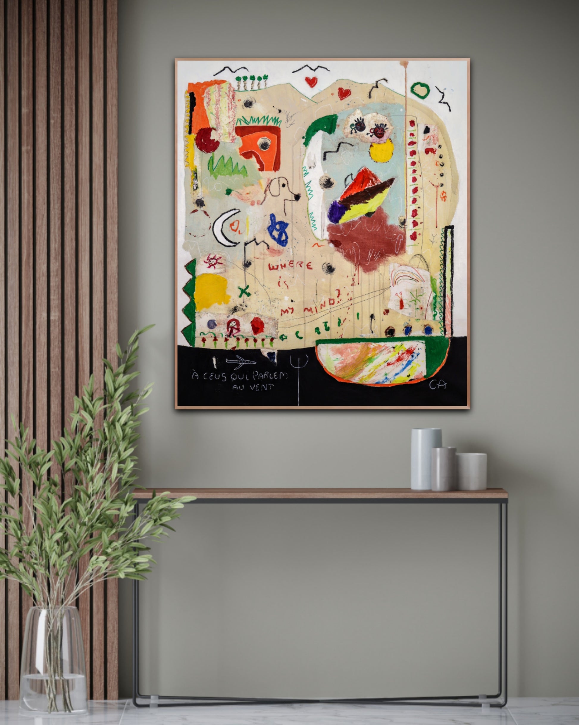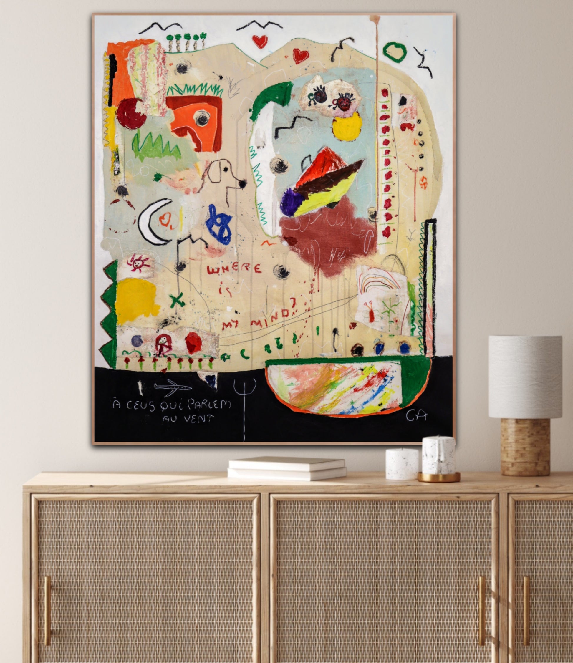 Técnica: acrílico, pigmentos, oil stick, lápiz, carboncillo y papel y.