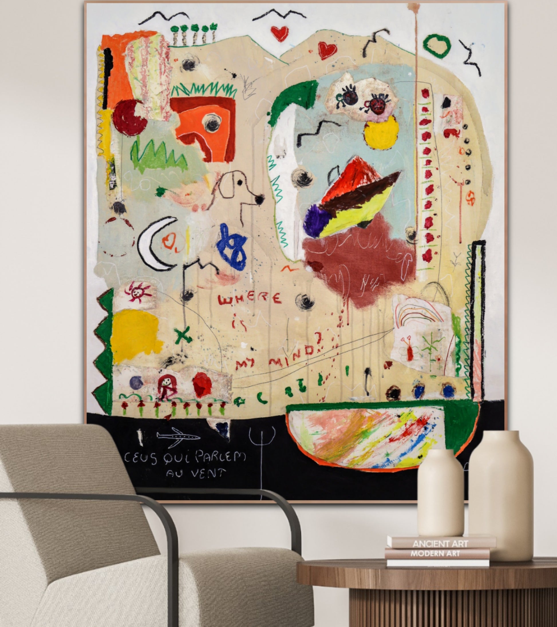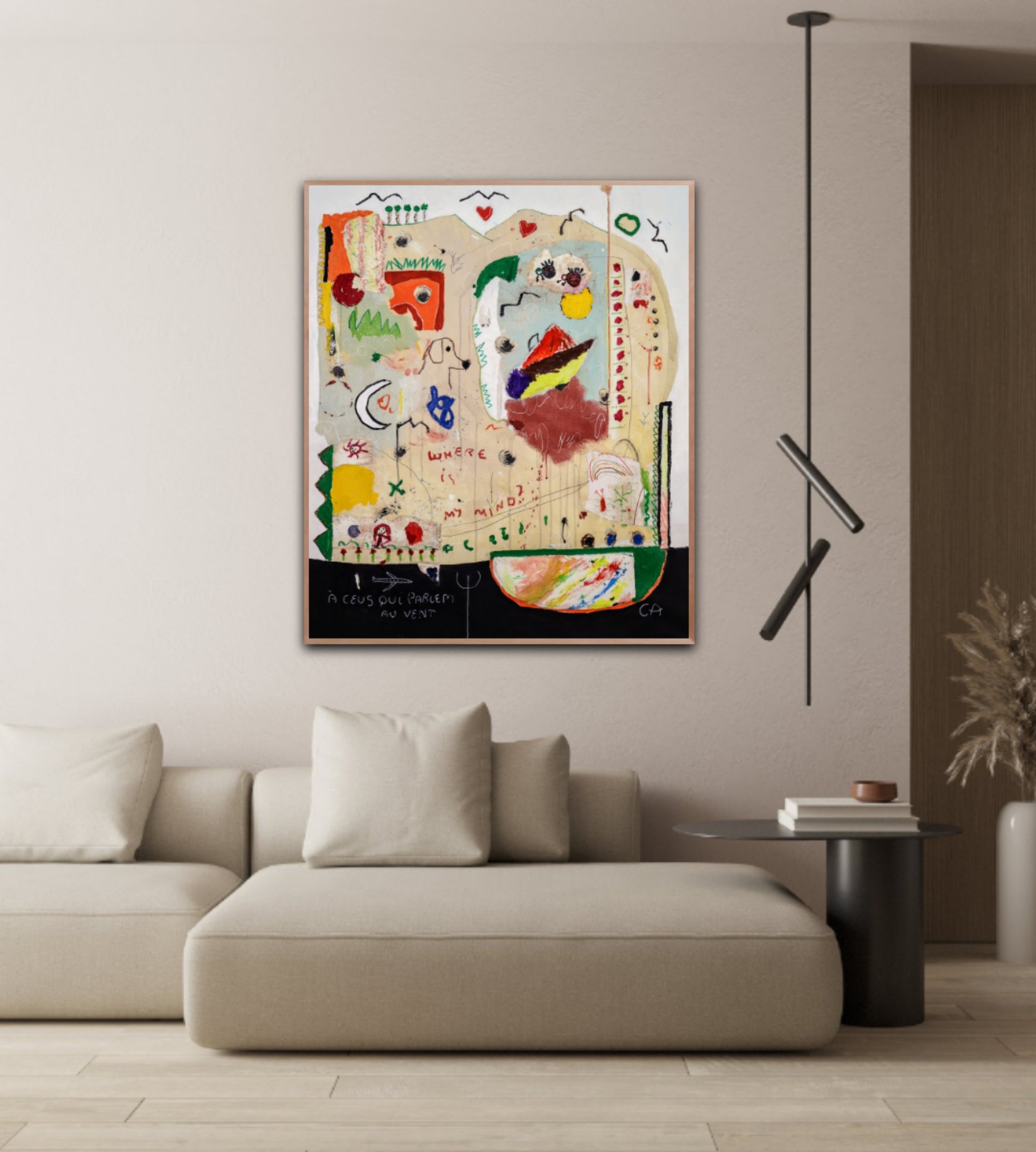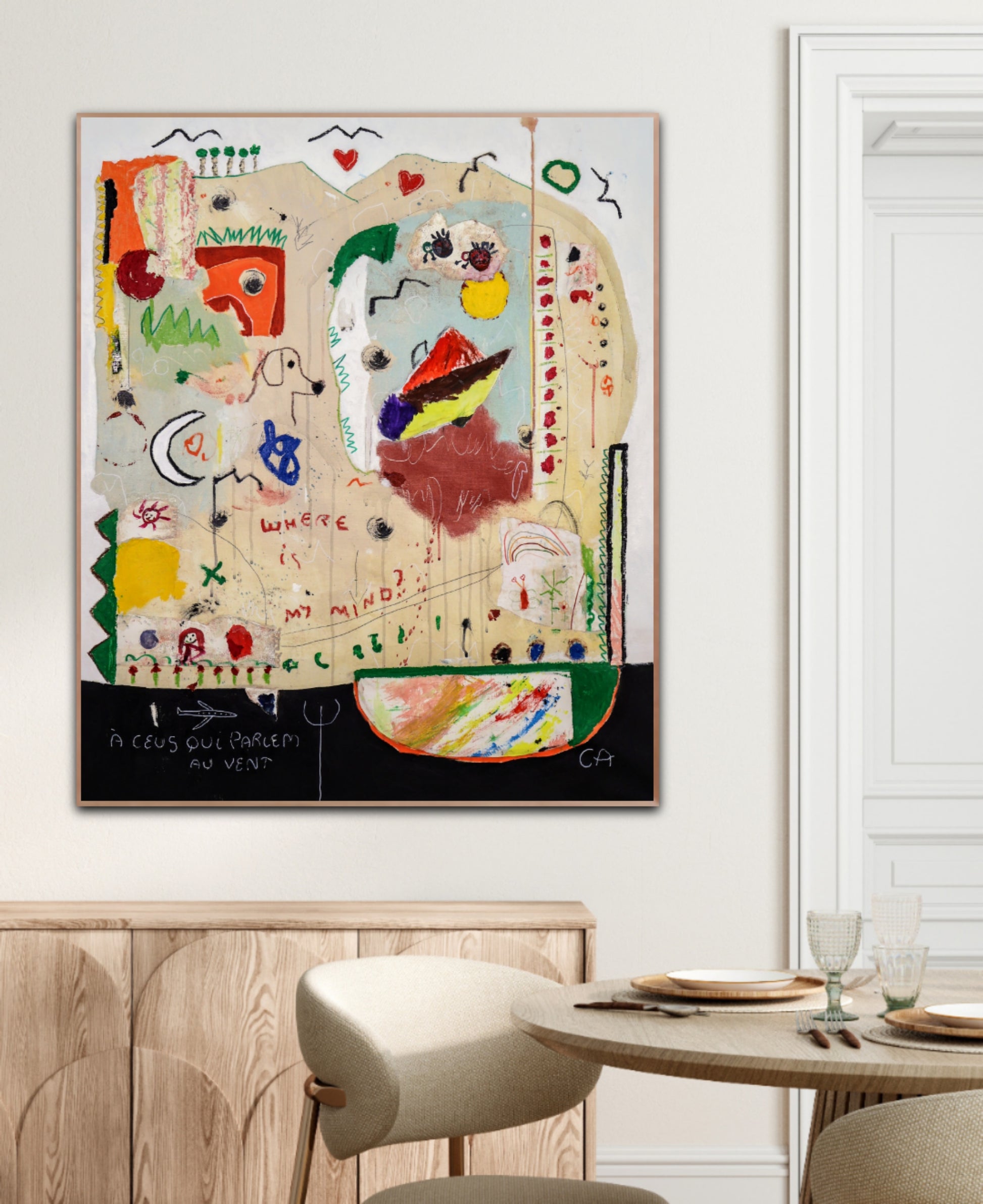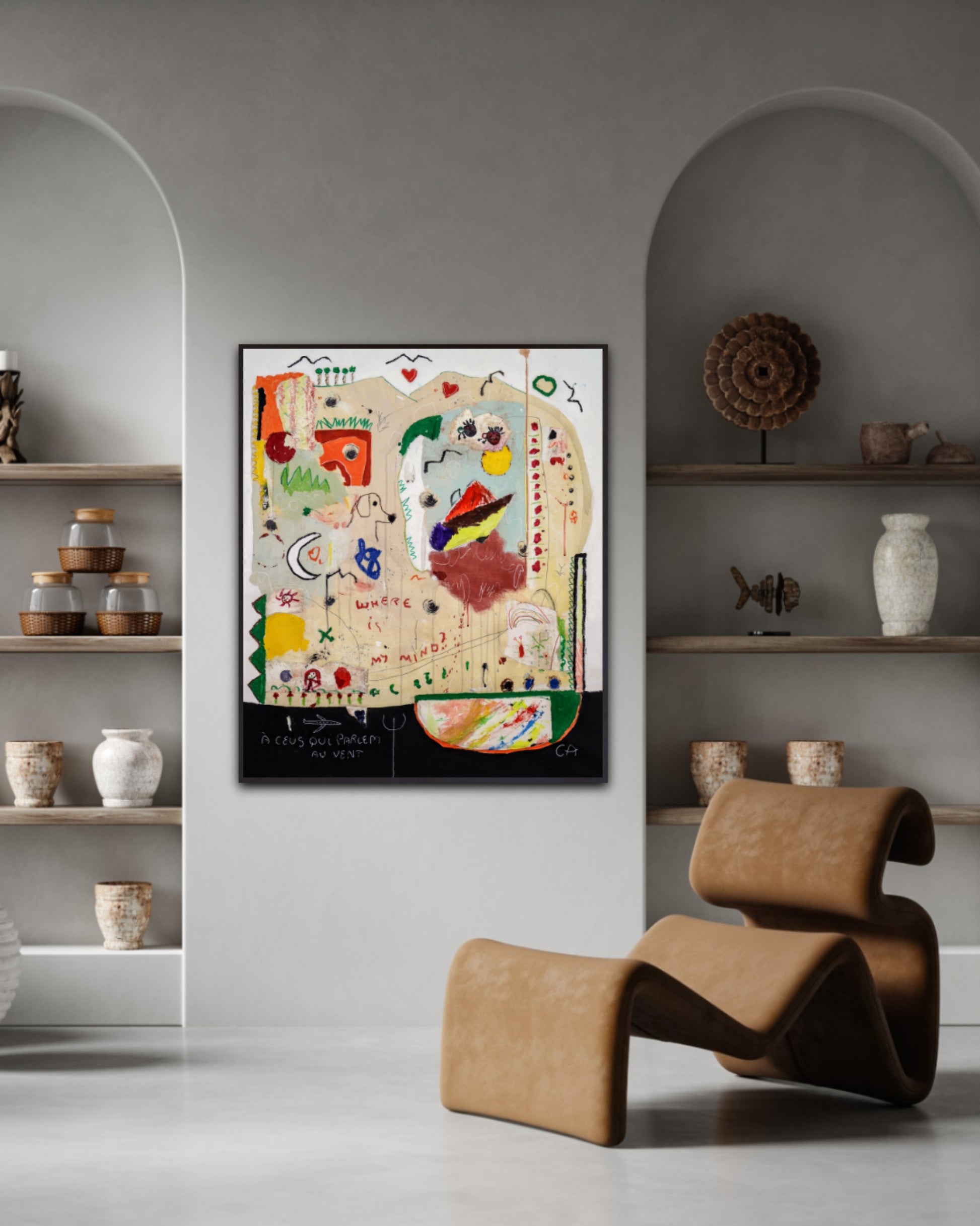 Técnica: acrílico, pigmentos, oil stick, lápiz, carboncillo y papel y.