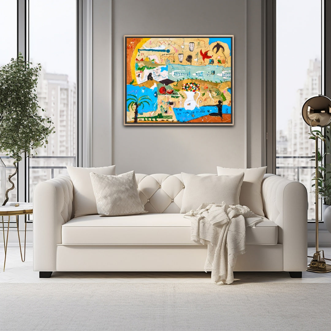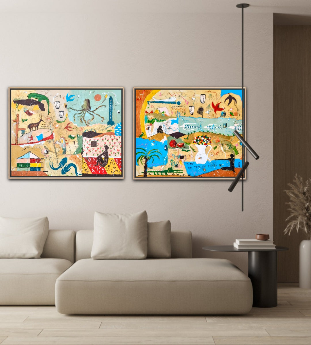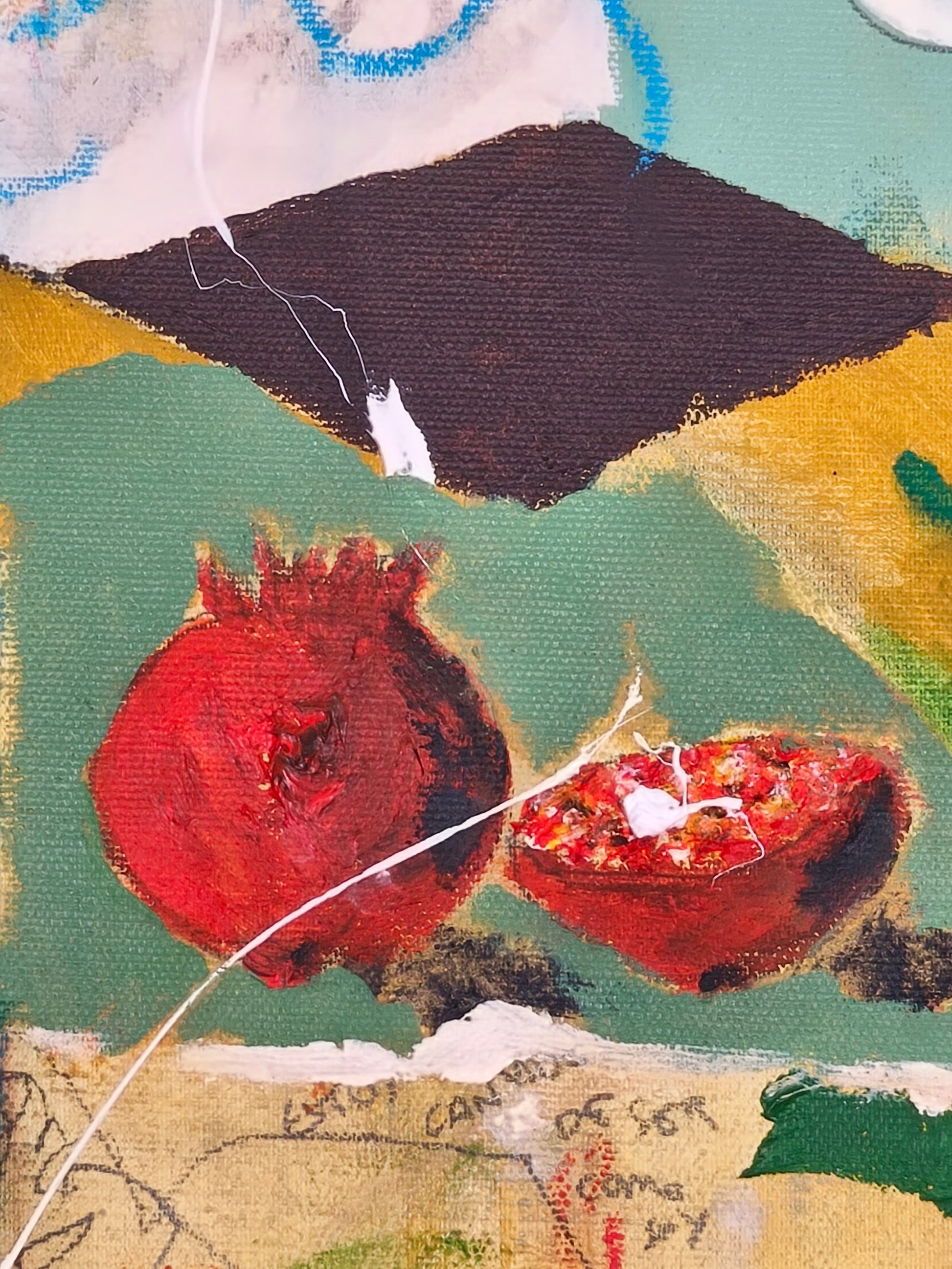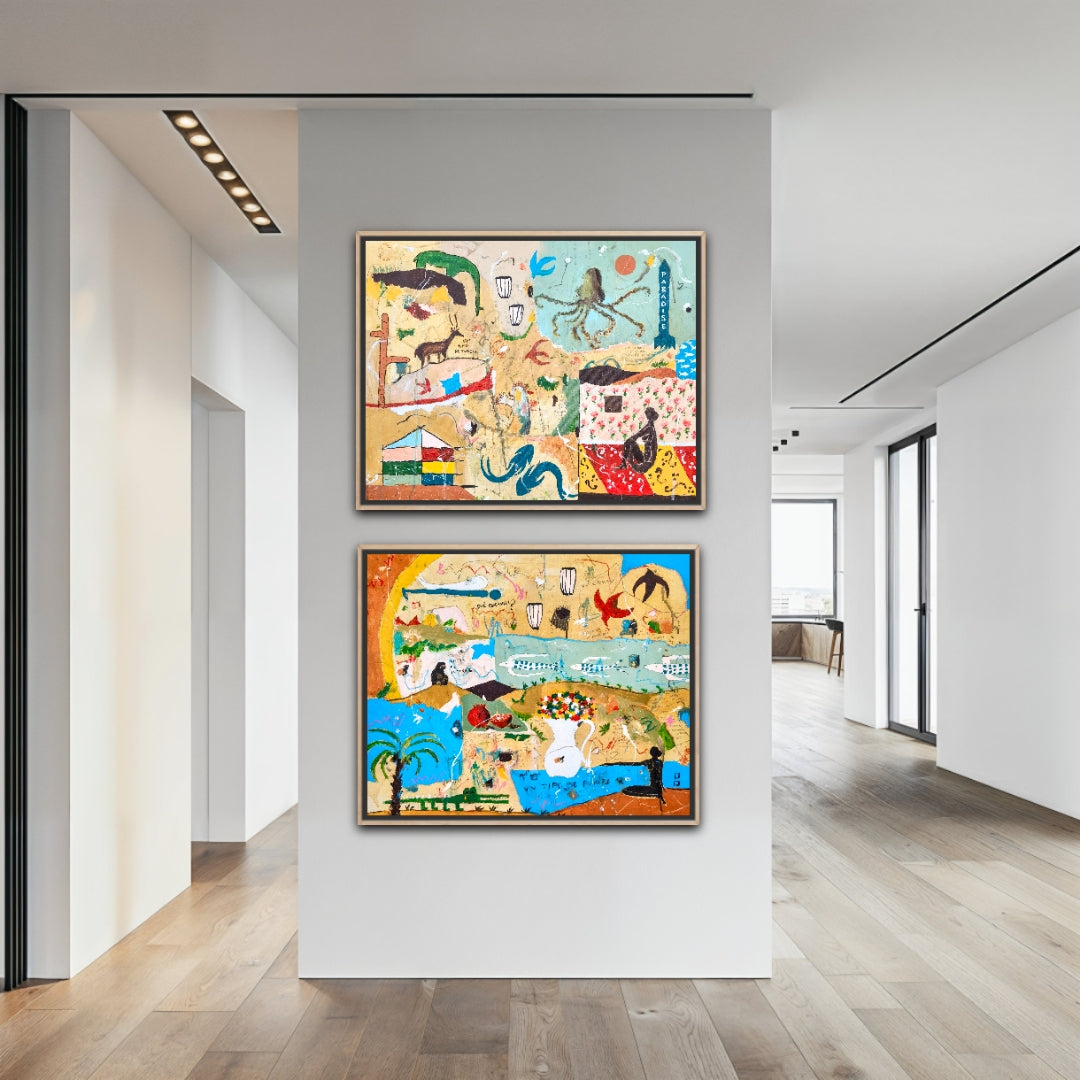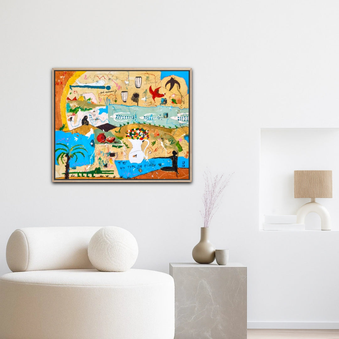 Técnica: acrílico, pigmentos, lápiz, carboncillo, gesso, ceras.