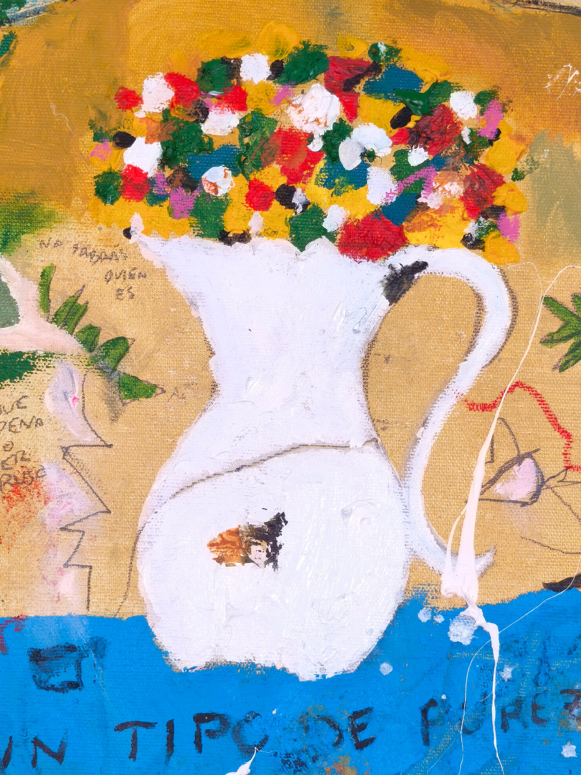 Pintura gestual, intuitiva, que deja que las cosas pasen y se apoya sobre lo que aparece. Aprovechando el accidente y aceptando las consecuencias.