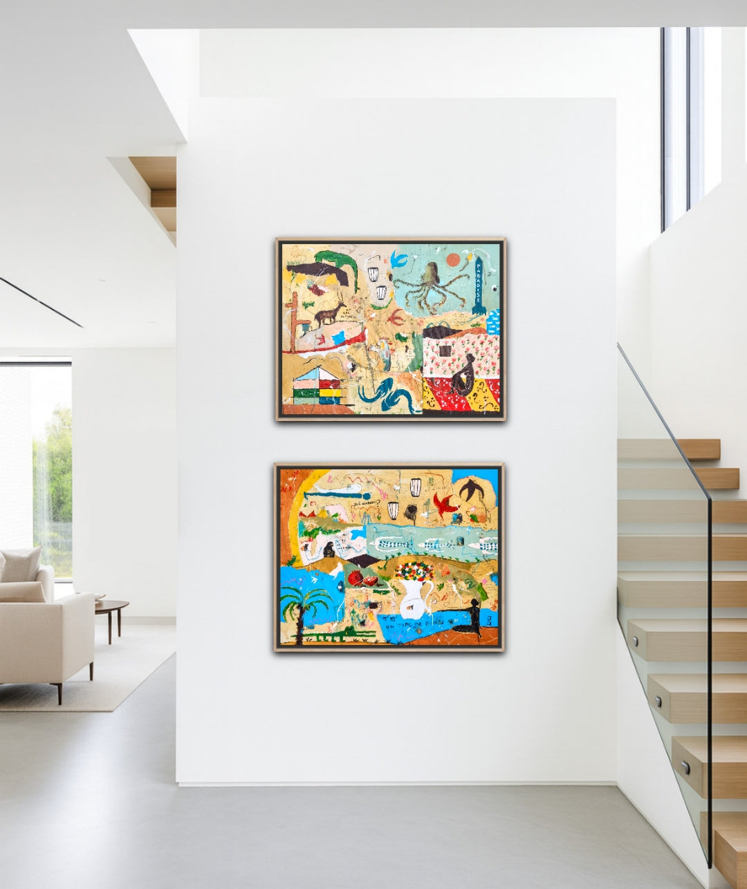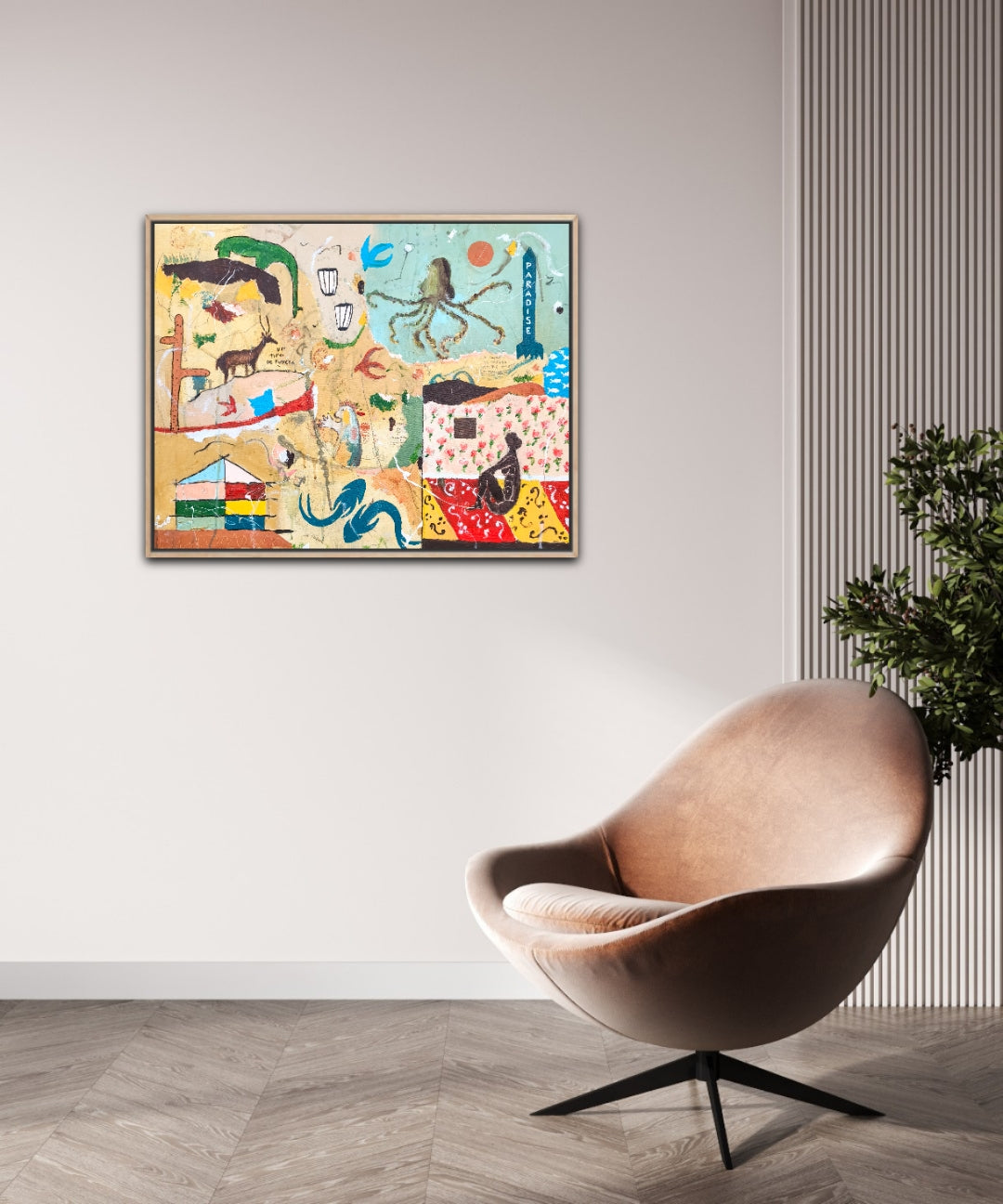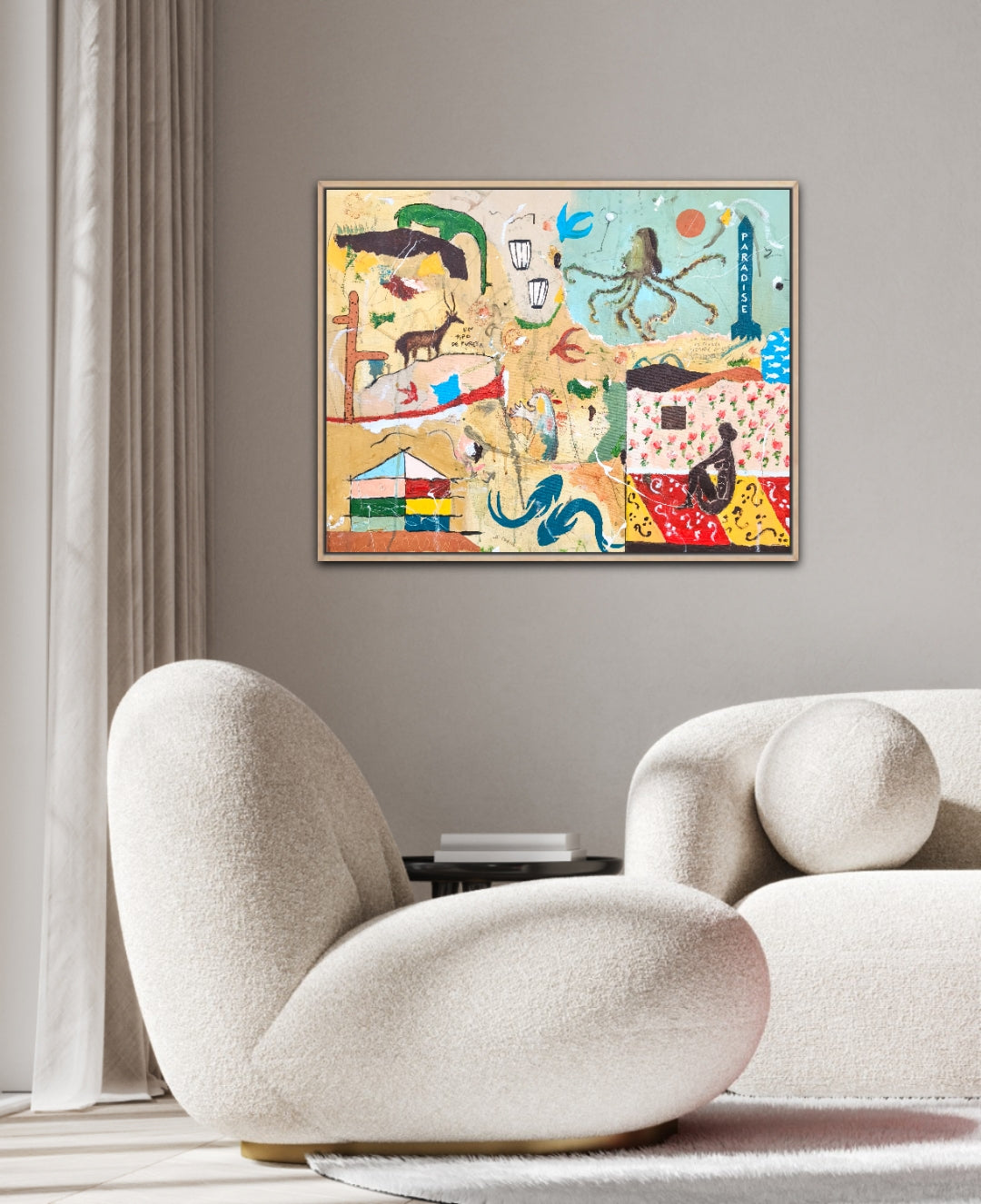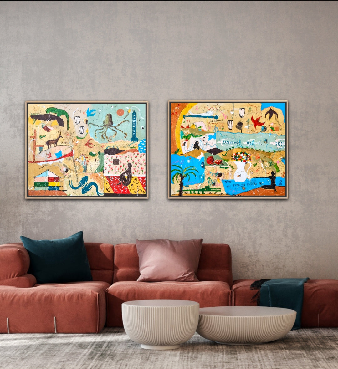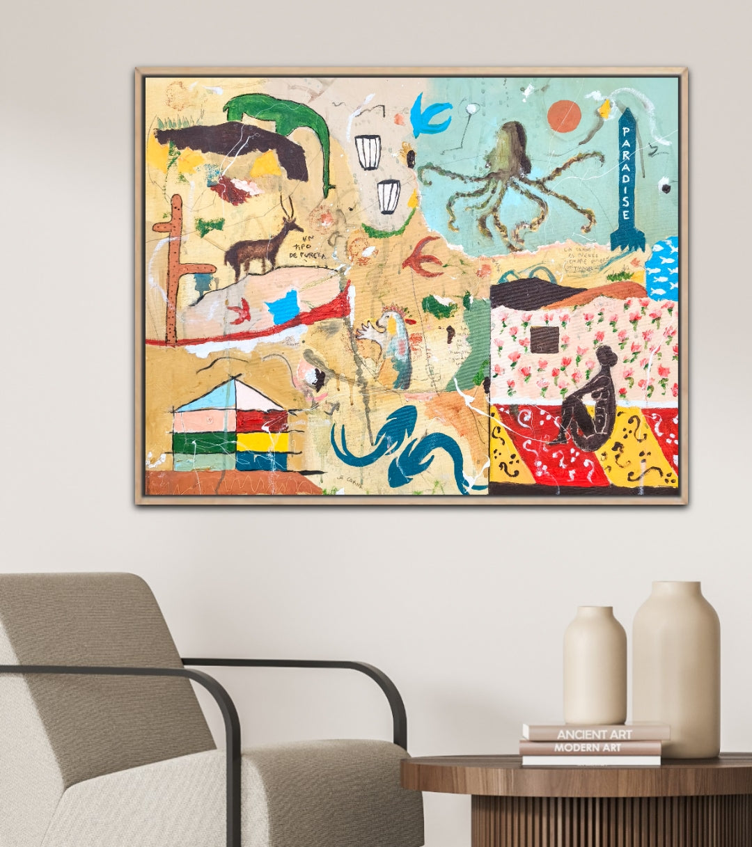 Técnica: acrílico, pigmentos, lápiz, carboncillo, gesso, ceras.