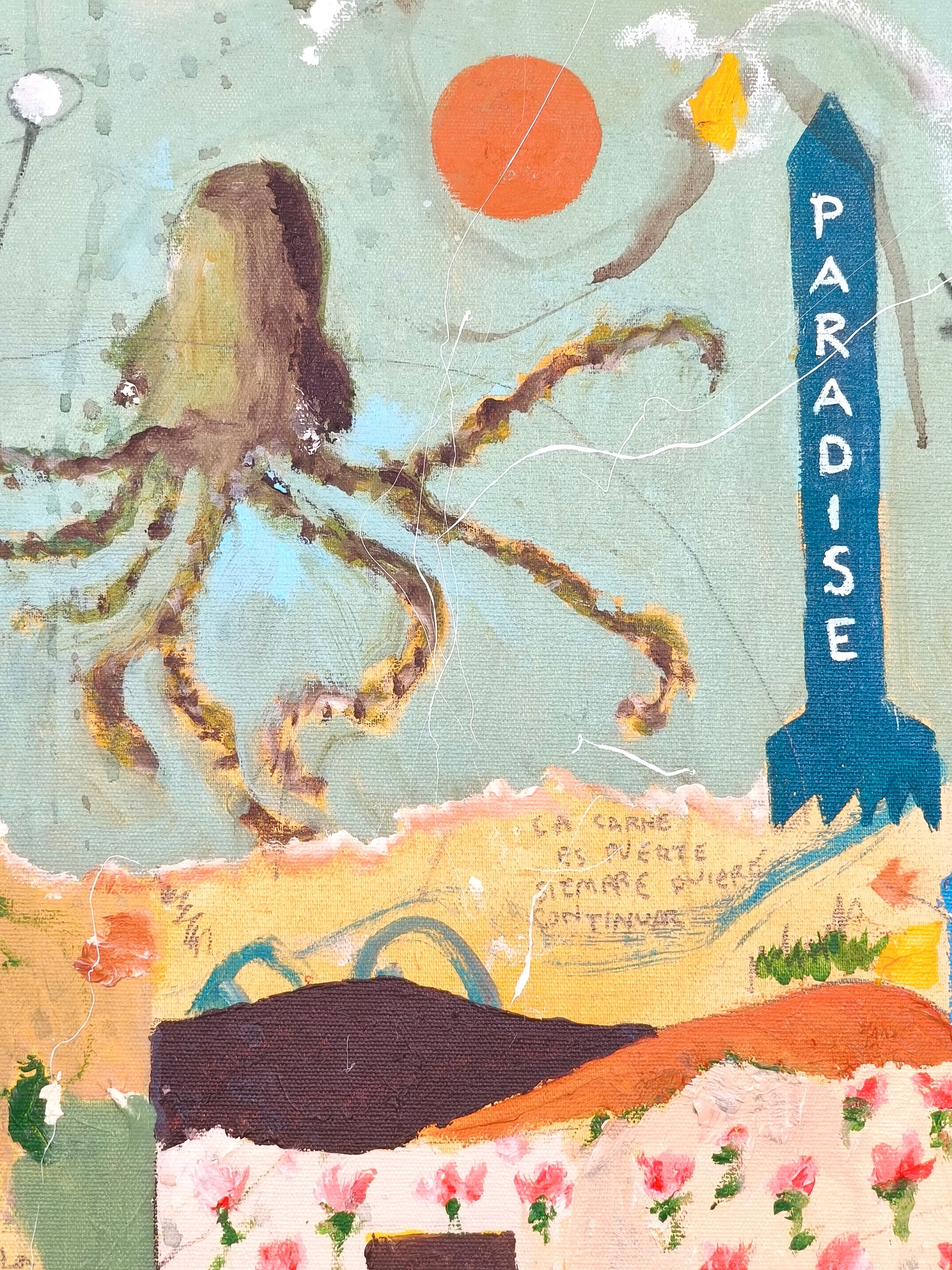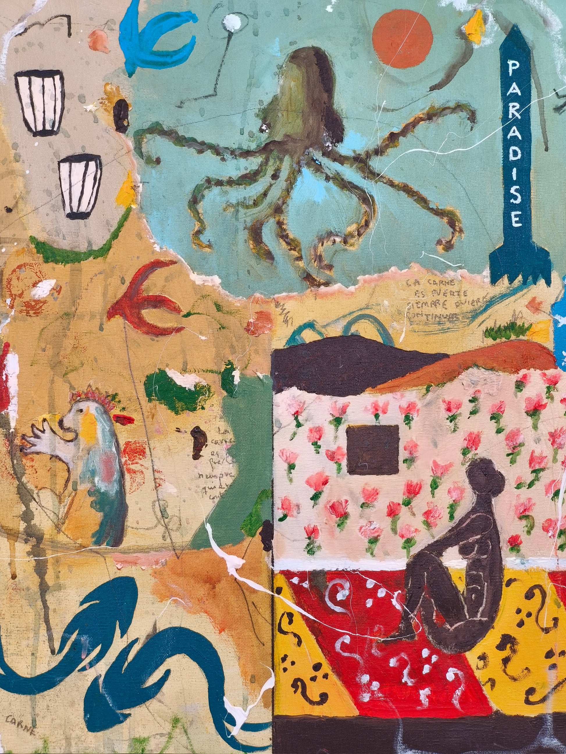 Cuadro trabajado desde la improvisación libre con la música del álbum "El escarabajo más grande de Europa" de El Niño Gusano.