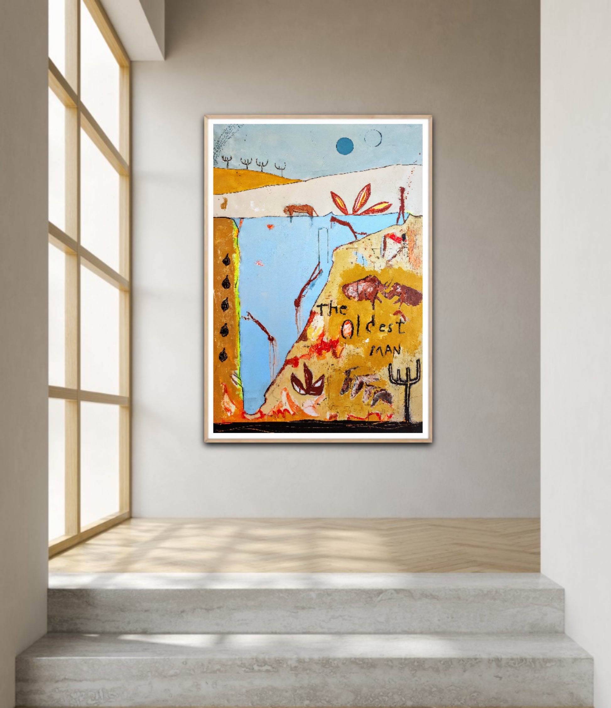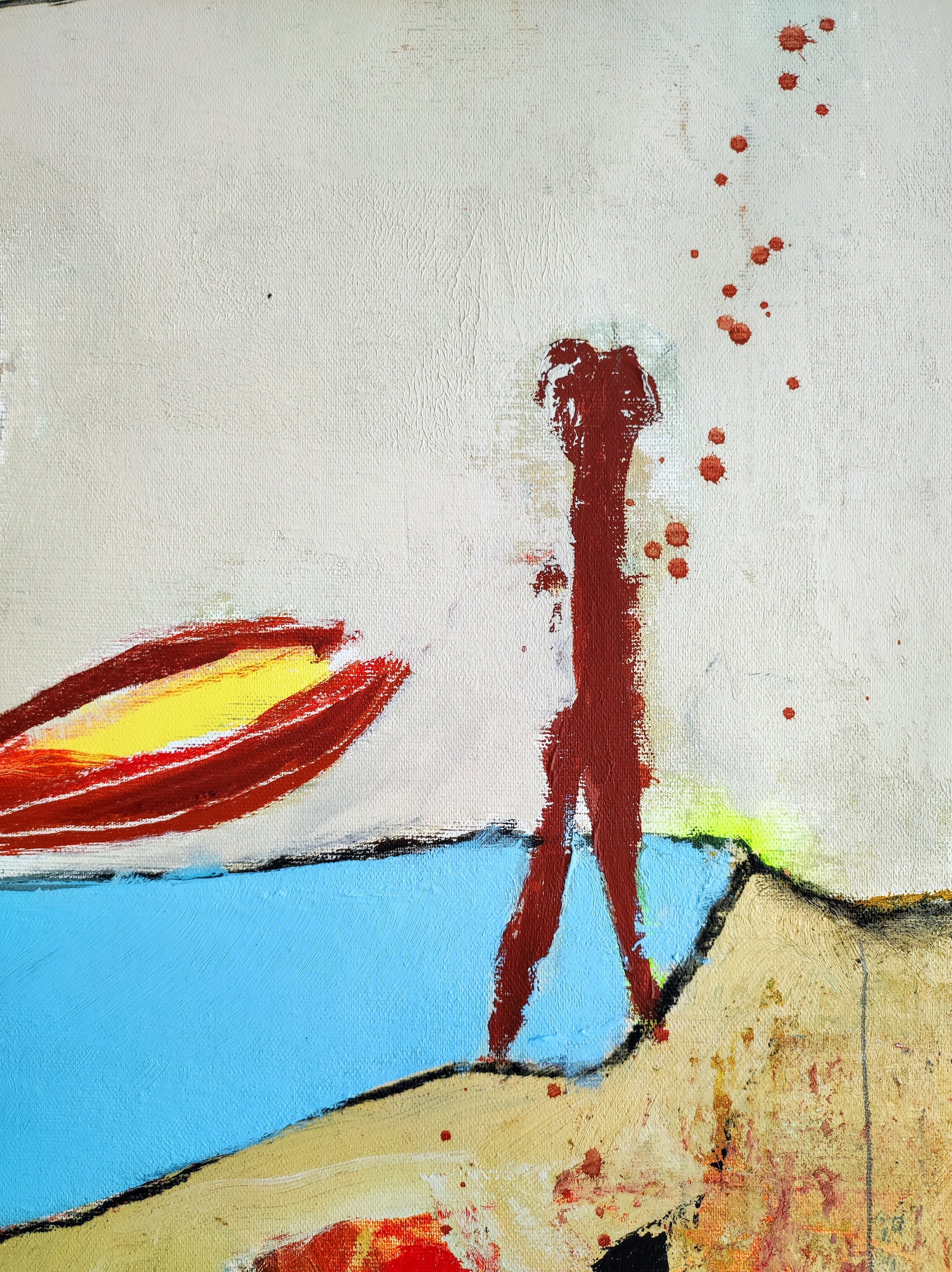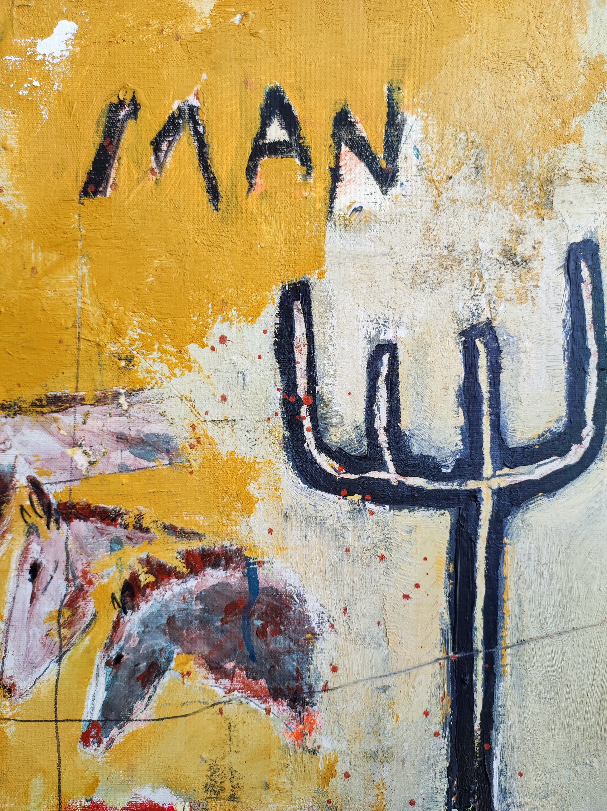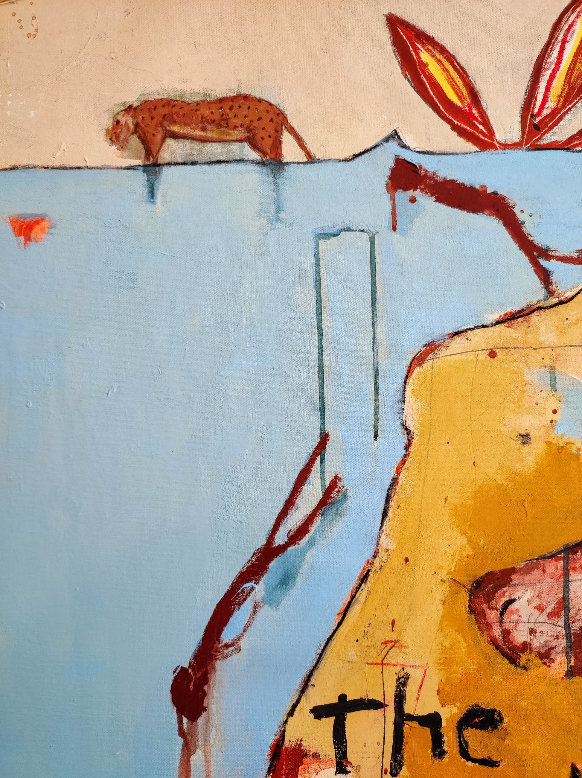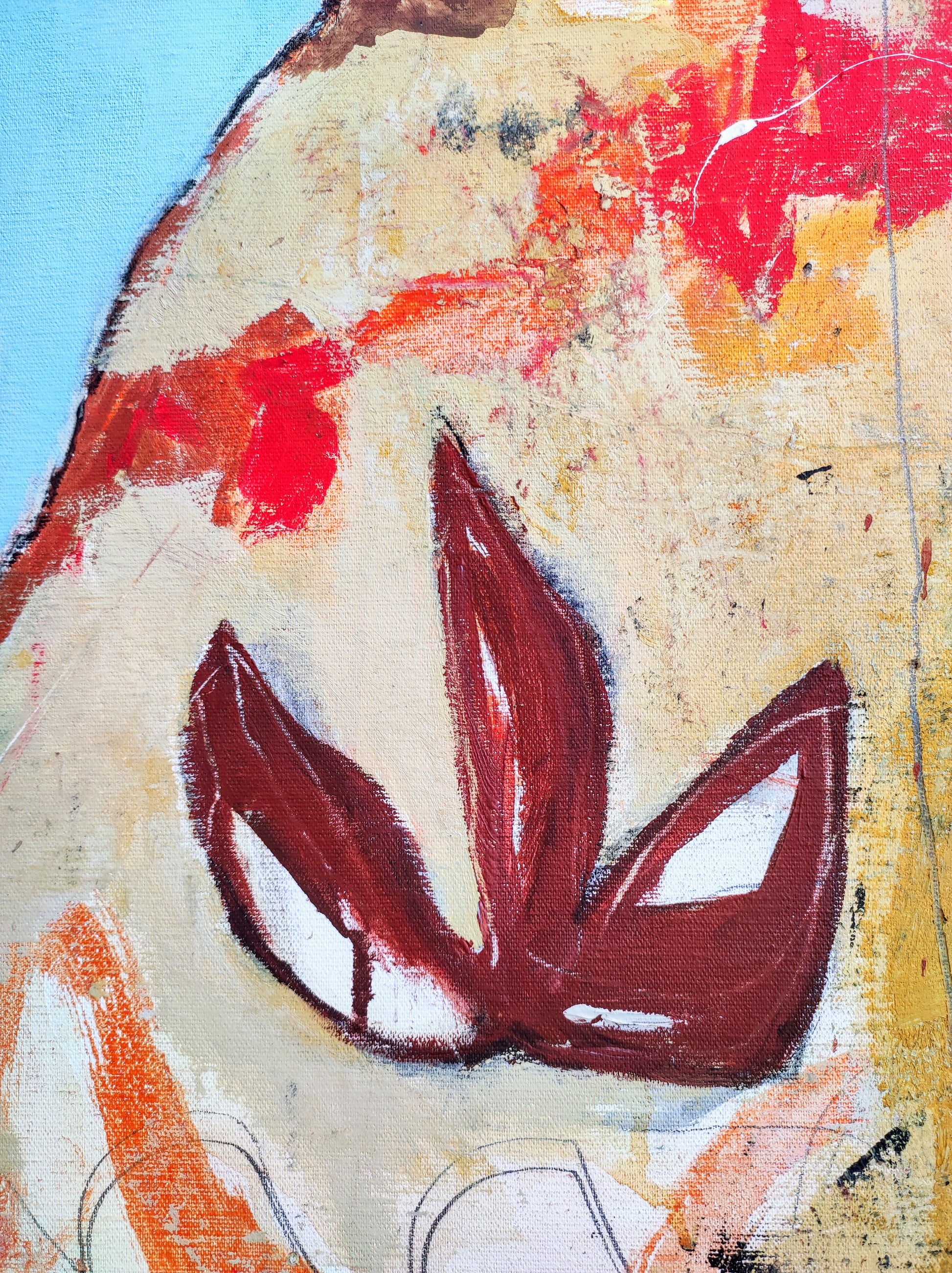 Técnica: acrílico, pigmentos, gesso, ceras, lápiz y pintura en spray.