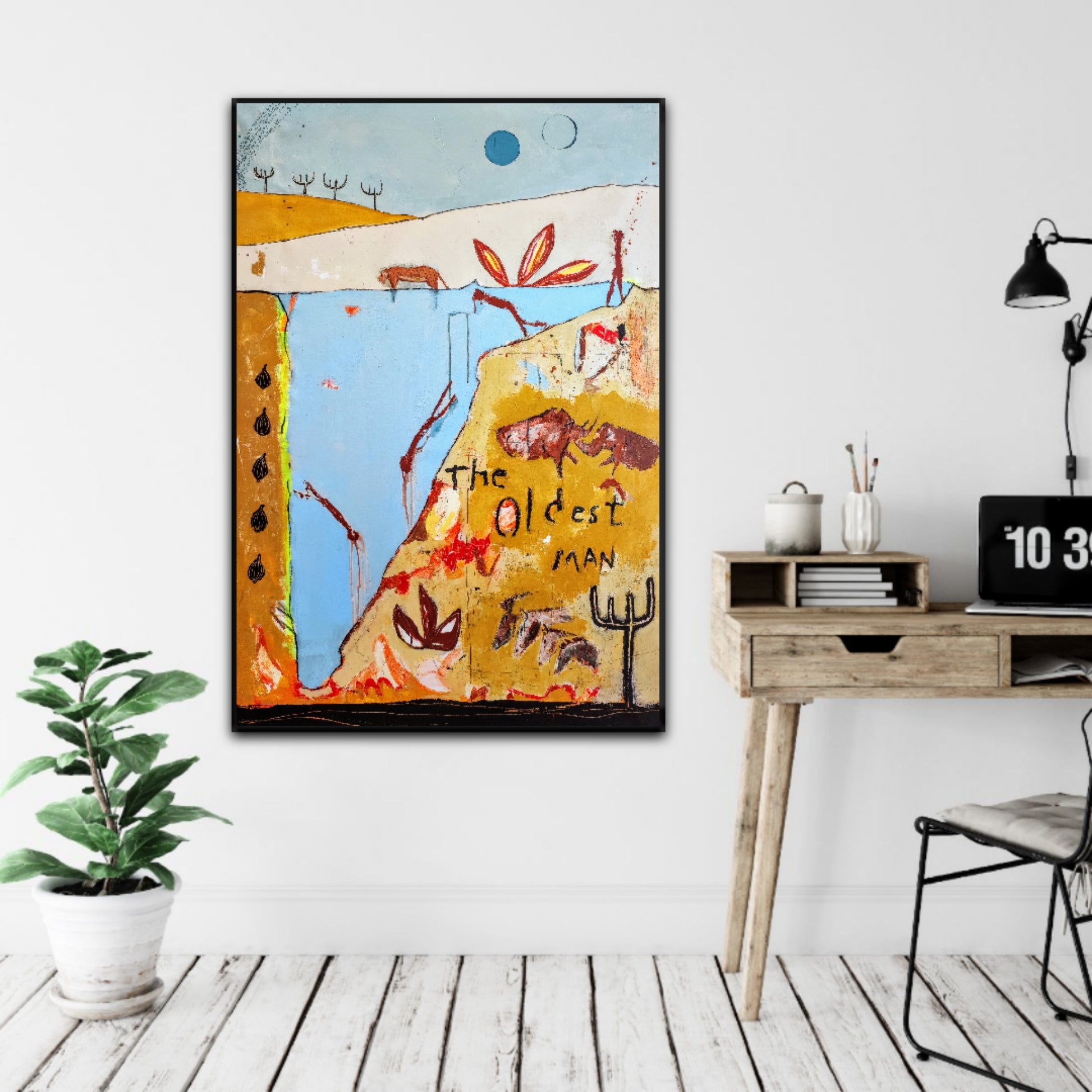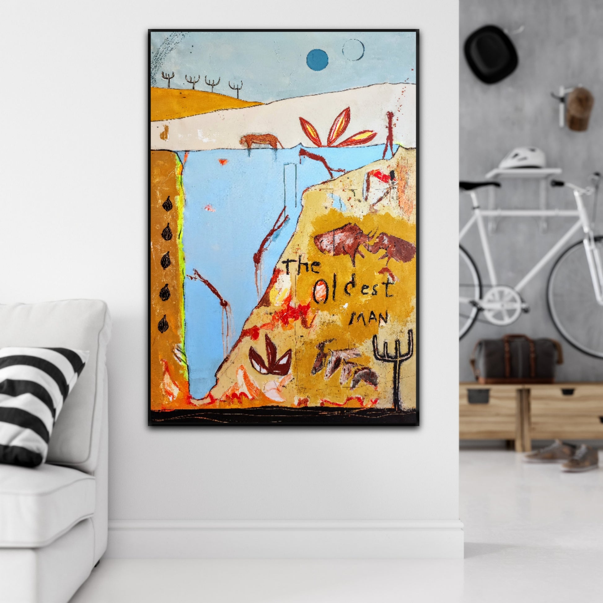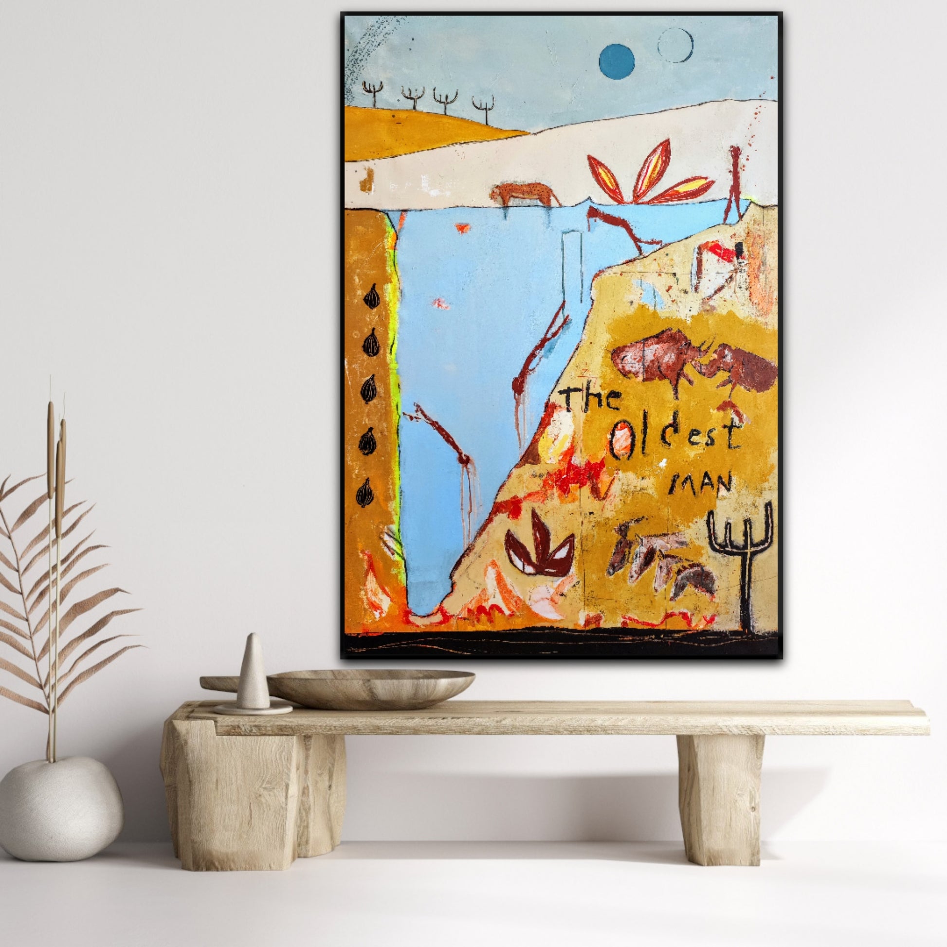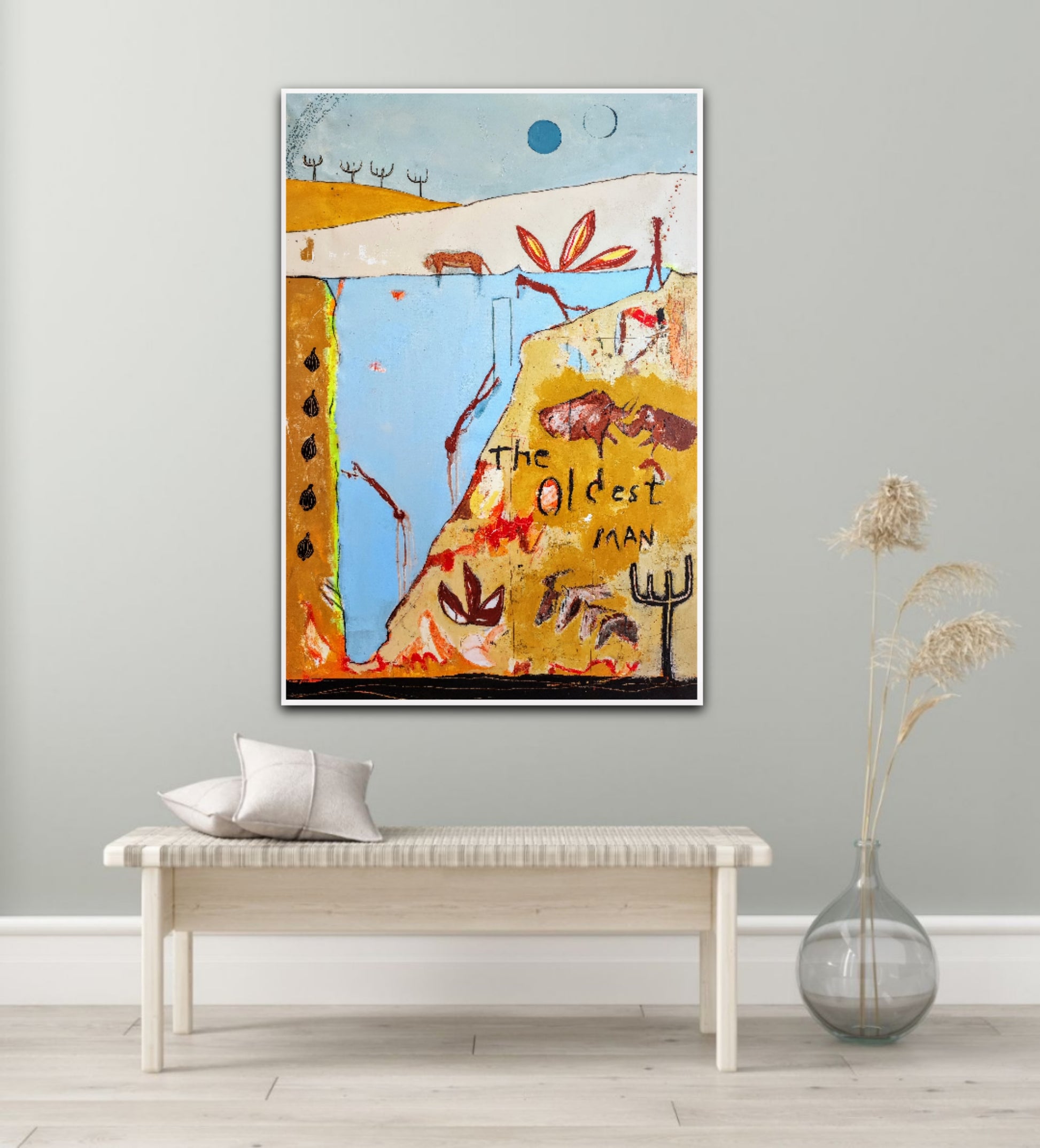Técnica: acrílico, pigmentos, gesso, ceras, lápiz y pintura en spray.
