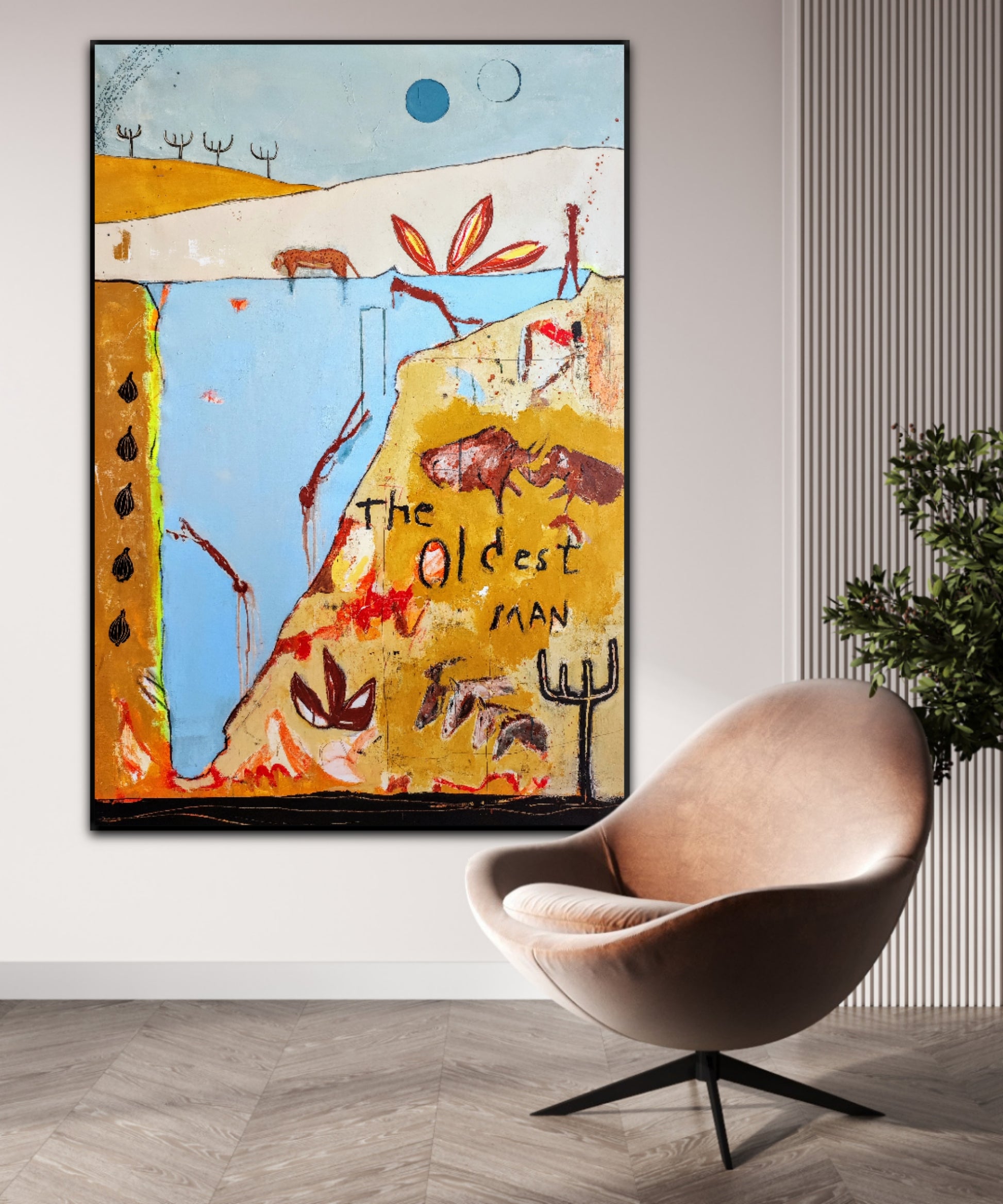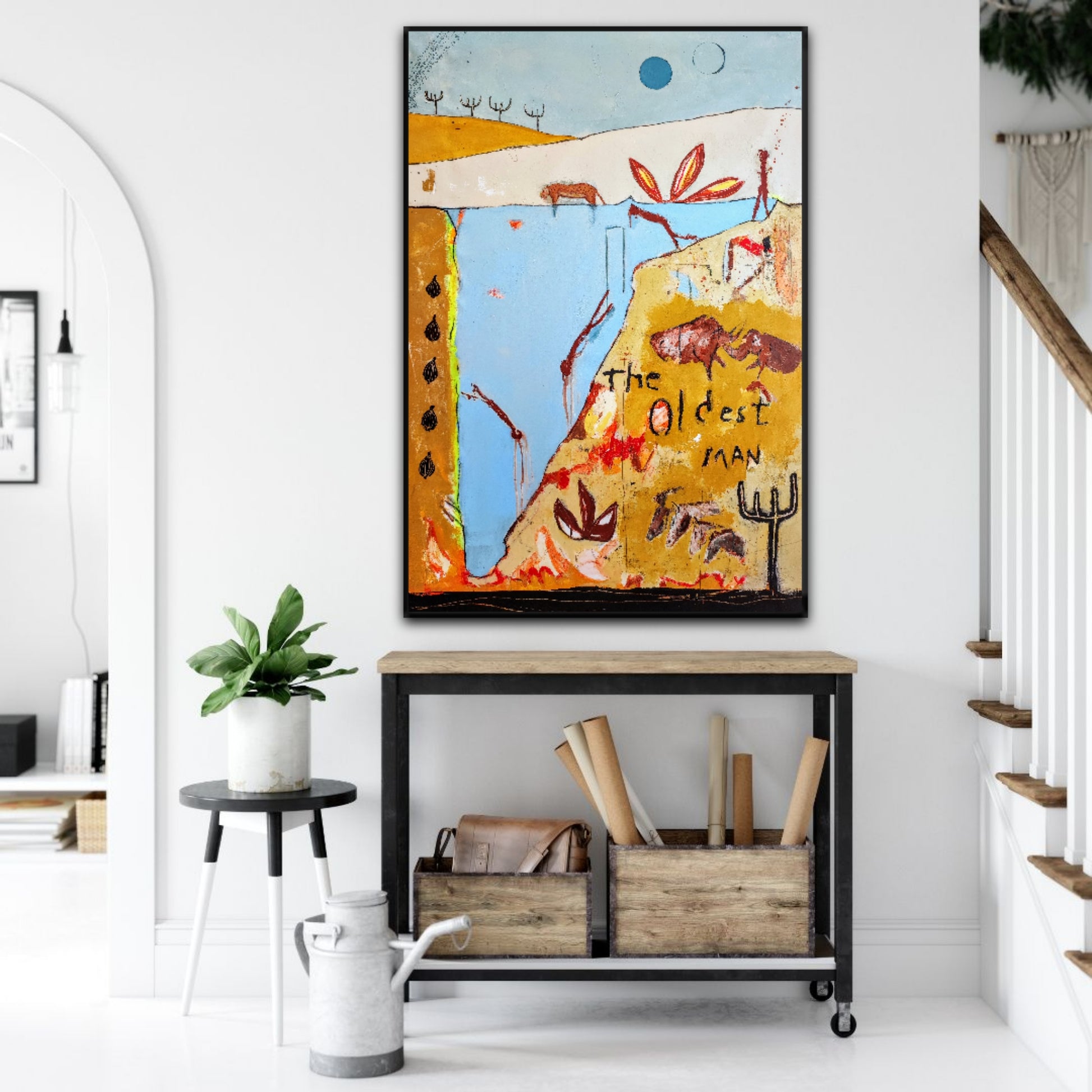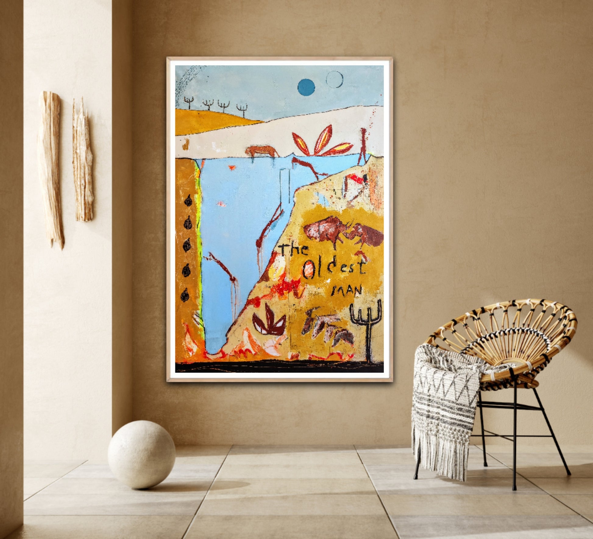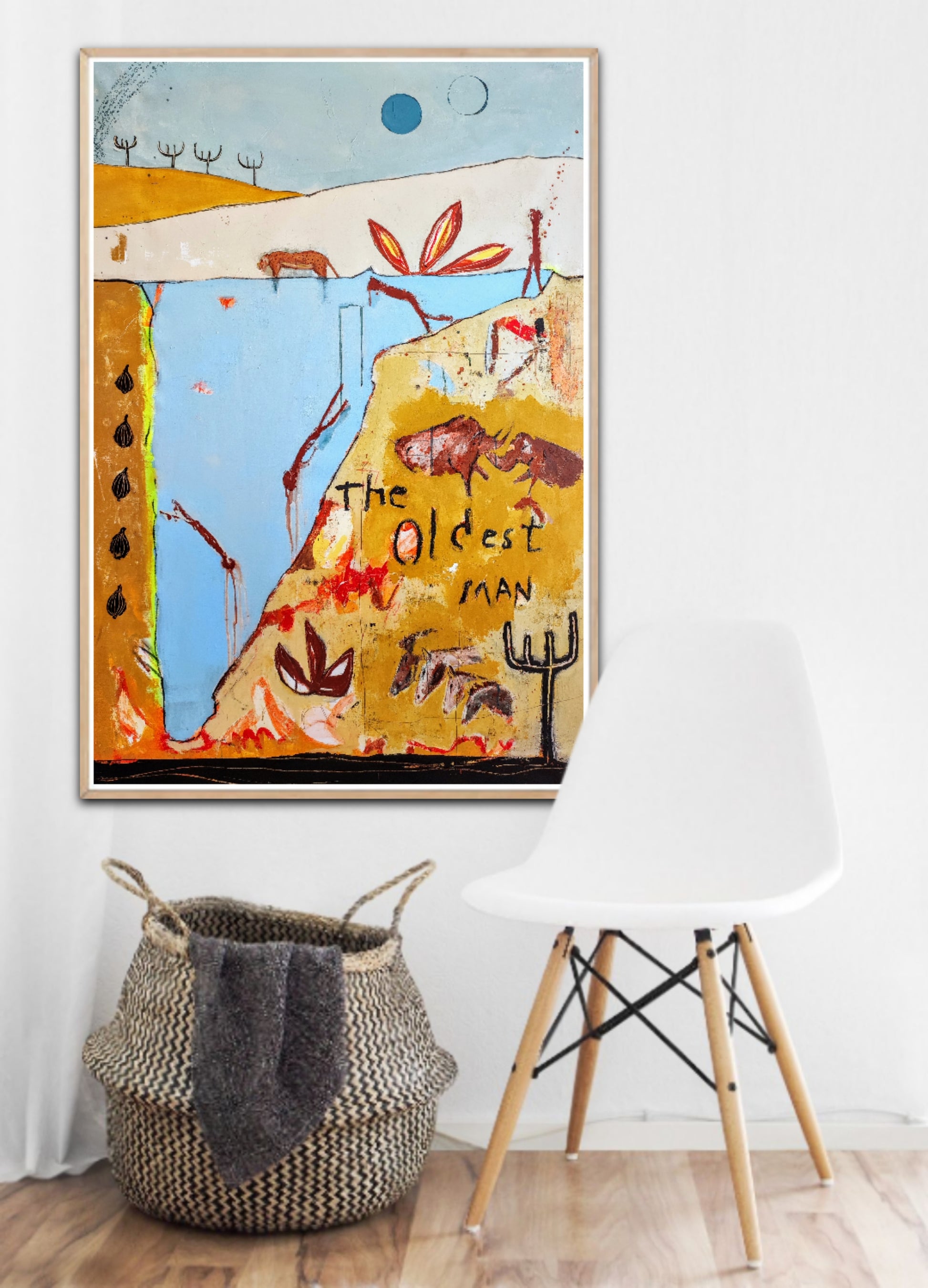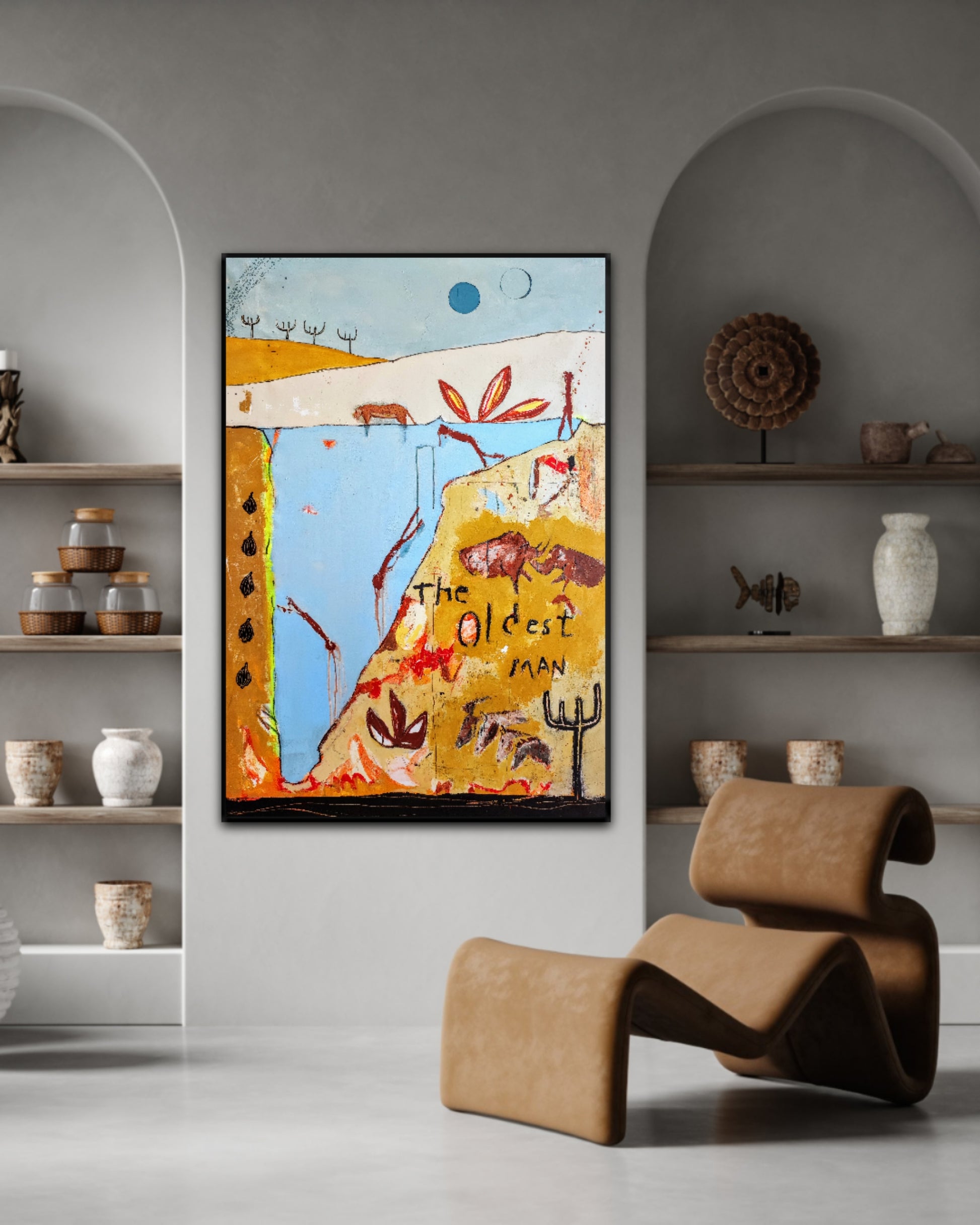 Técnica: acrílico, pigmentos, gesso, ceras, lápiz y pintura en spray.