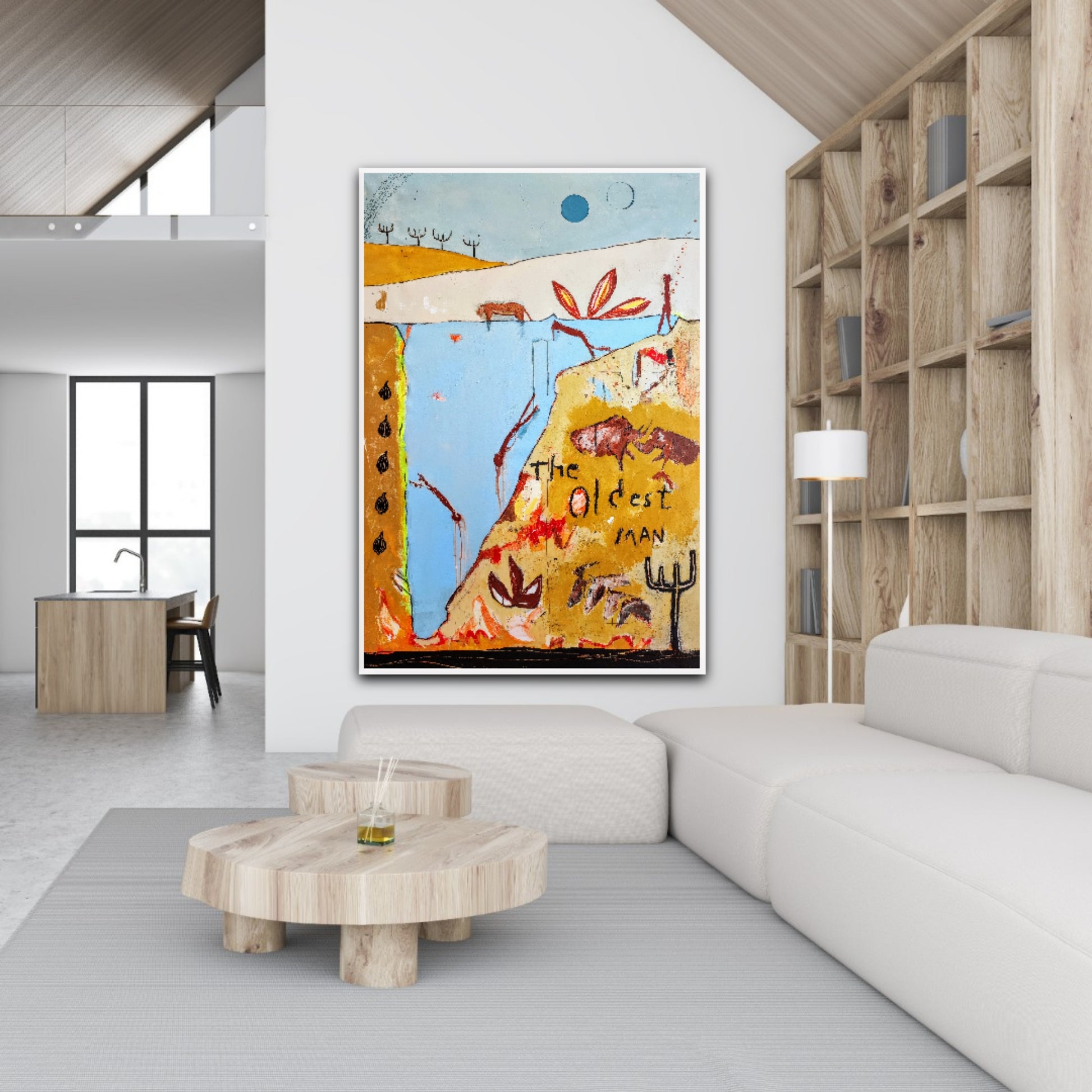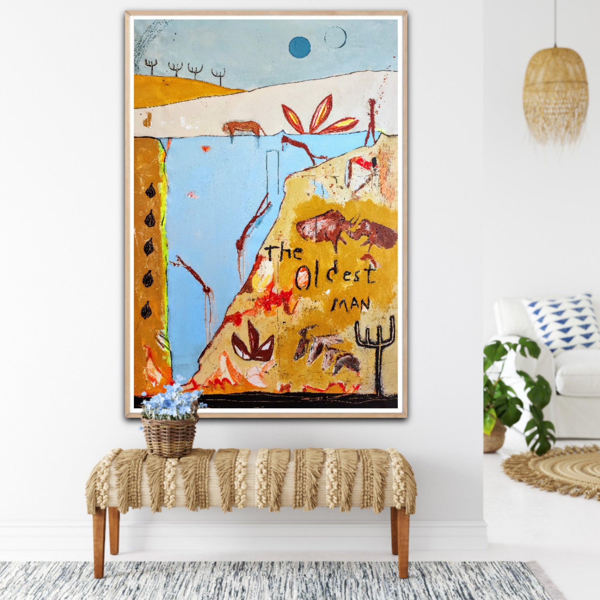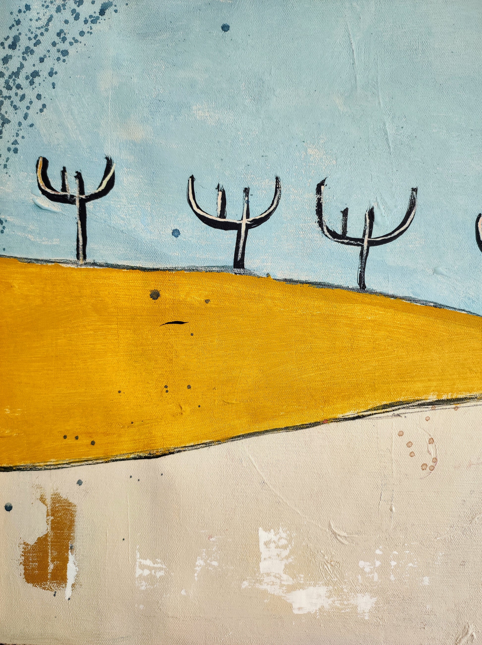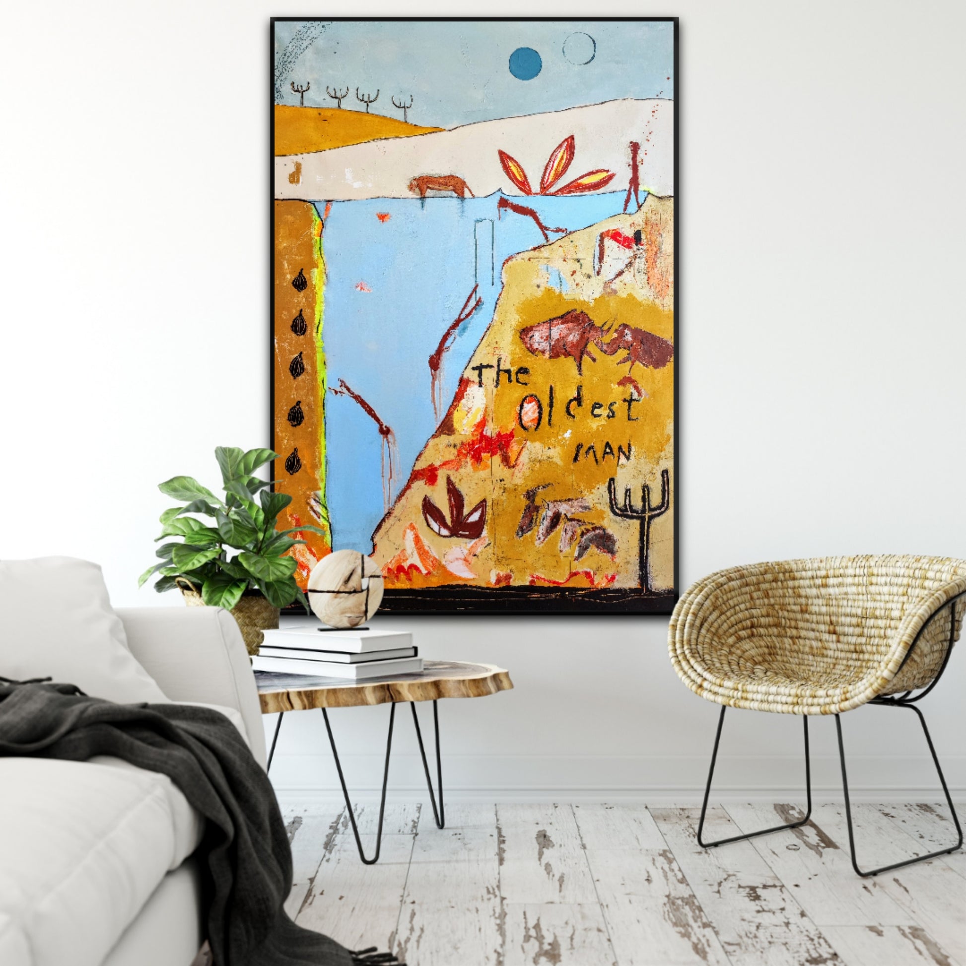 Técnica: acrílico, pigmentos, gesso, ceras, lápiz y pintura en spray.
