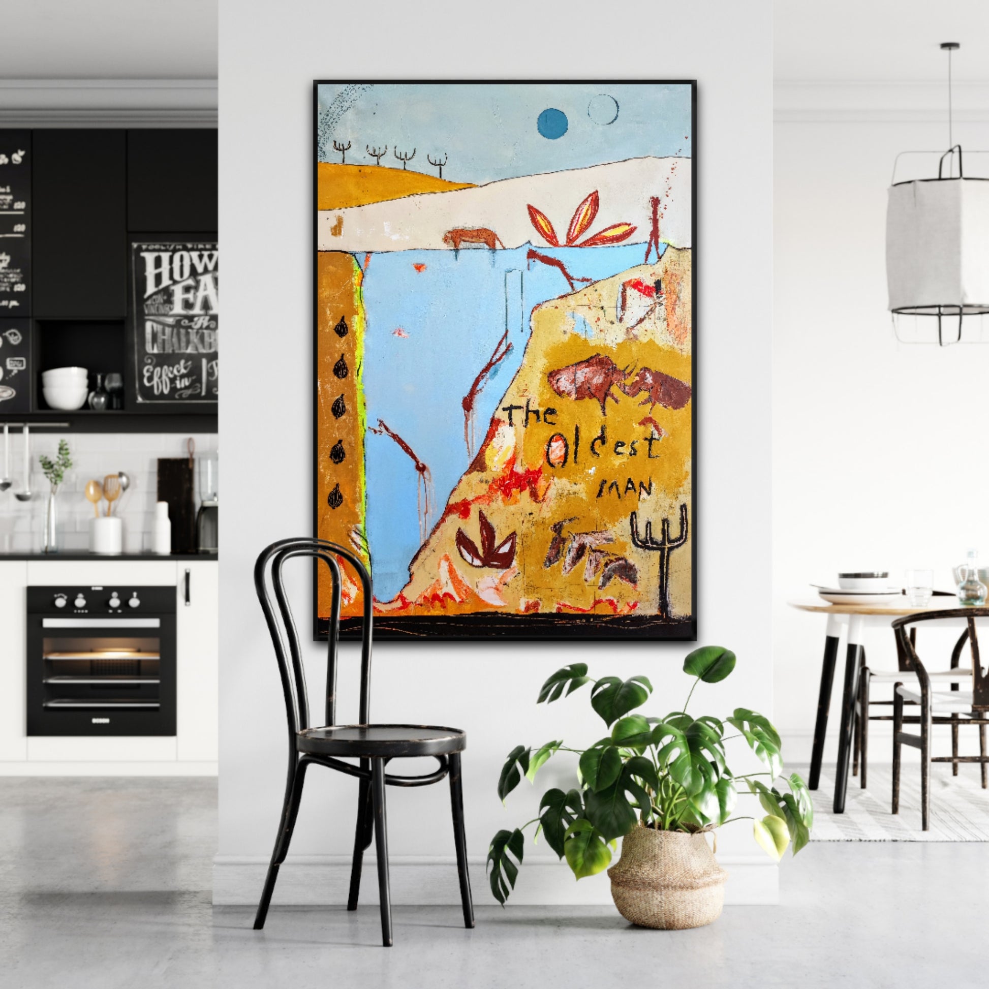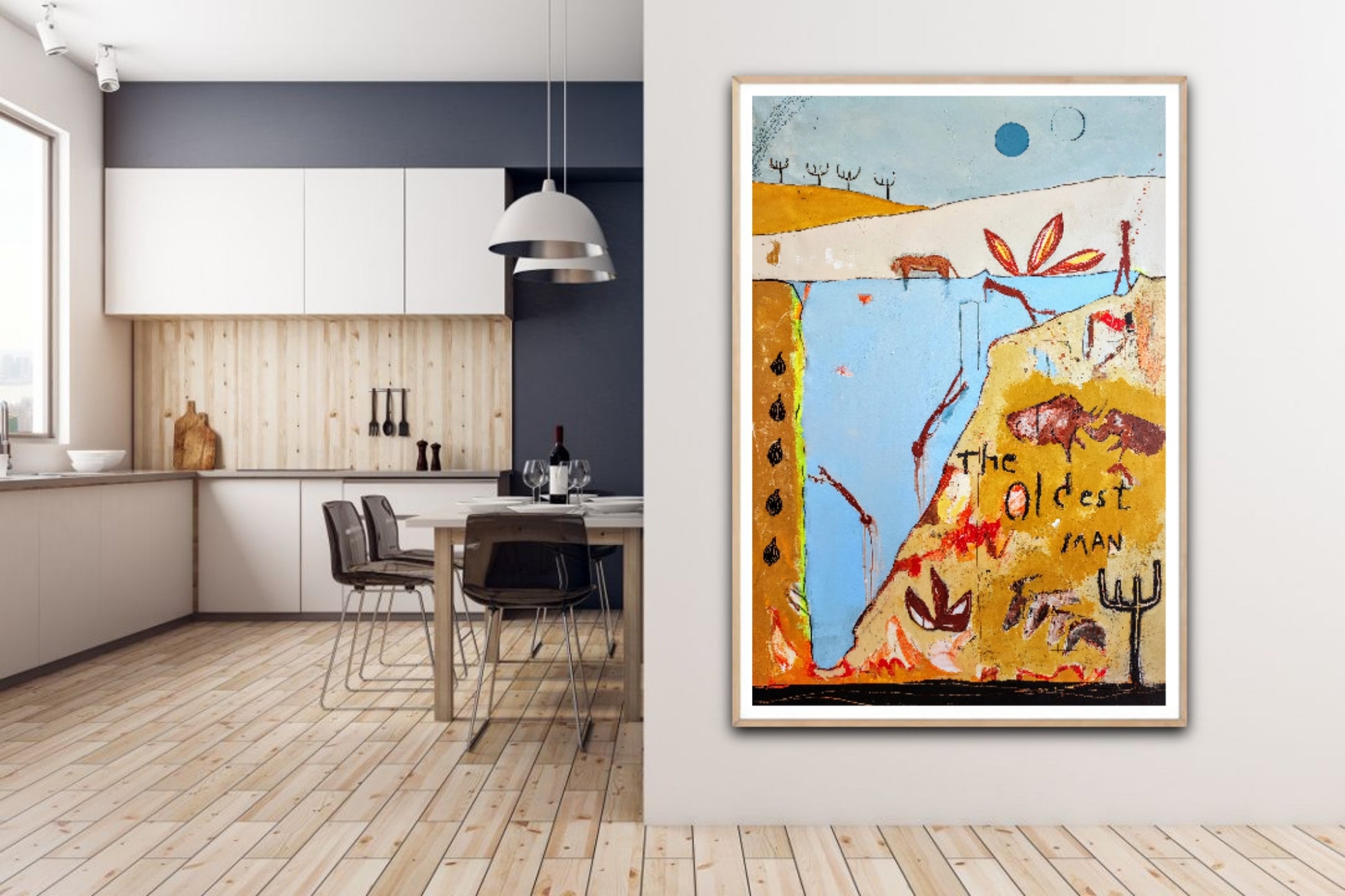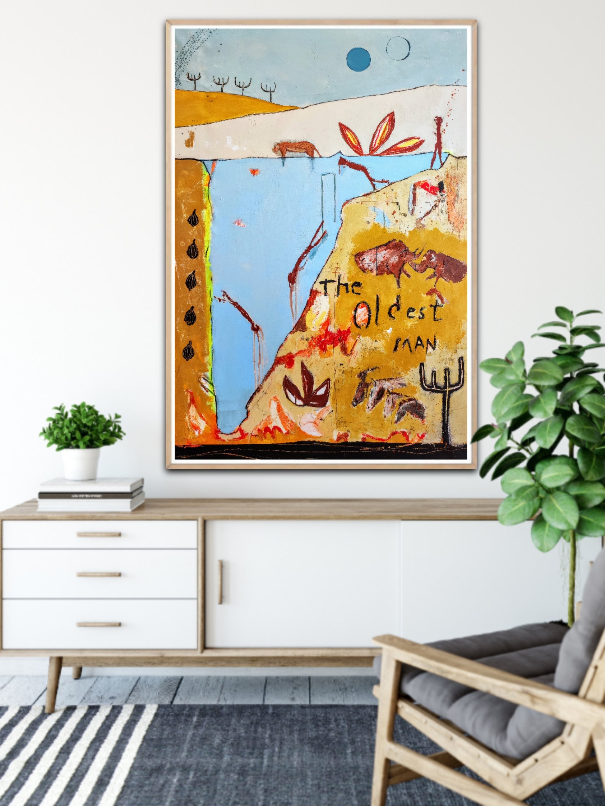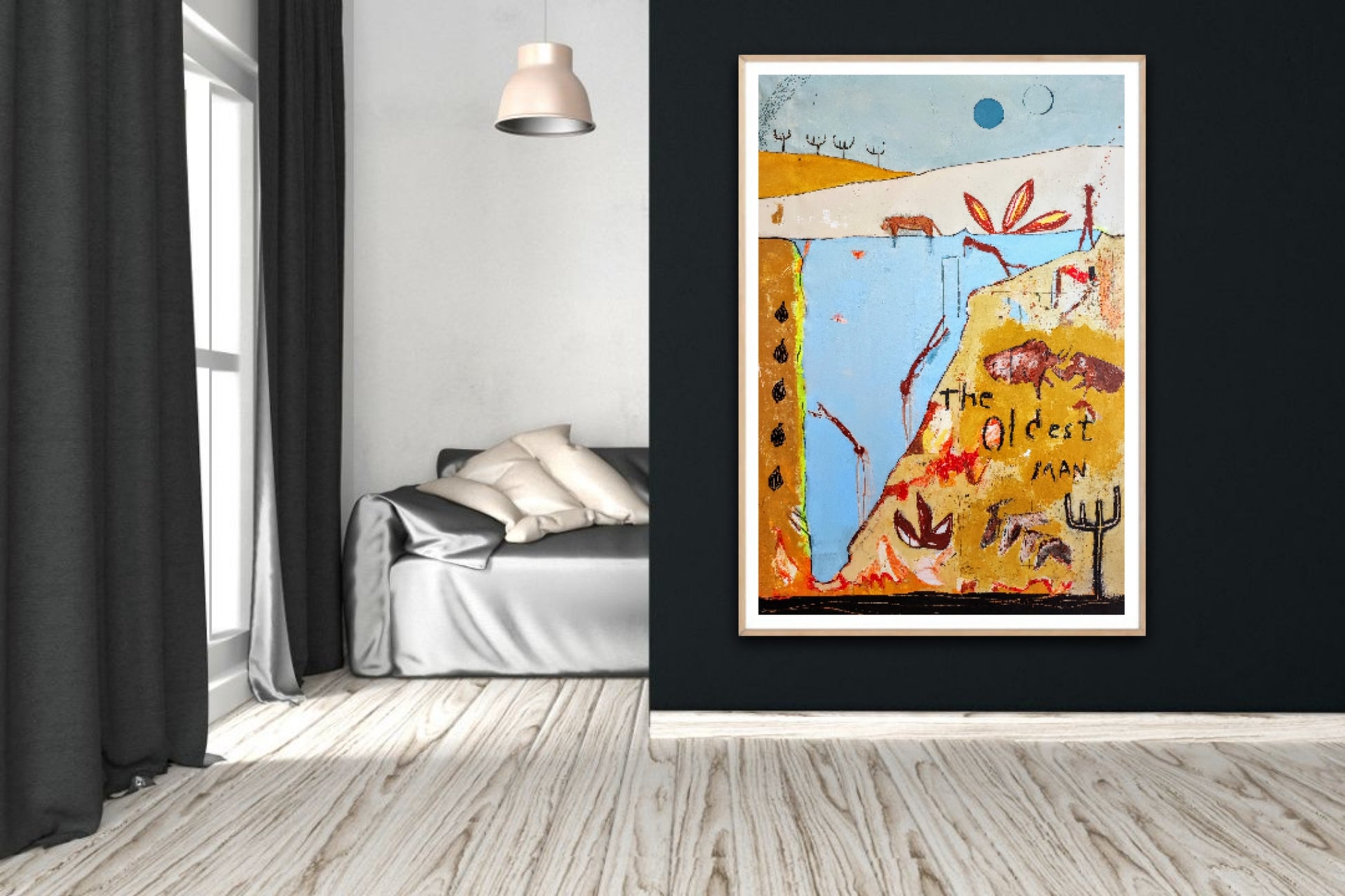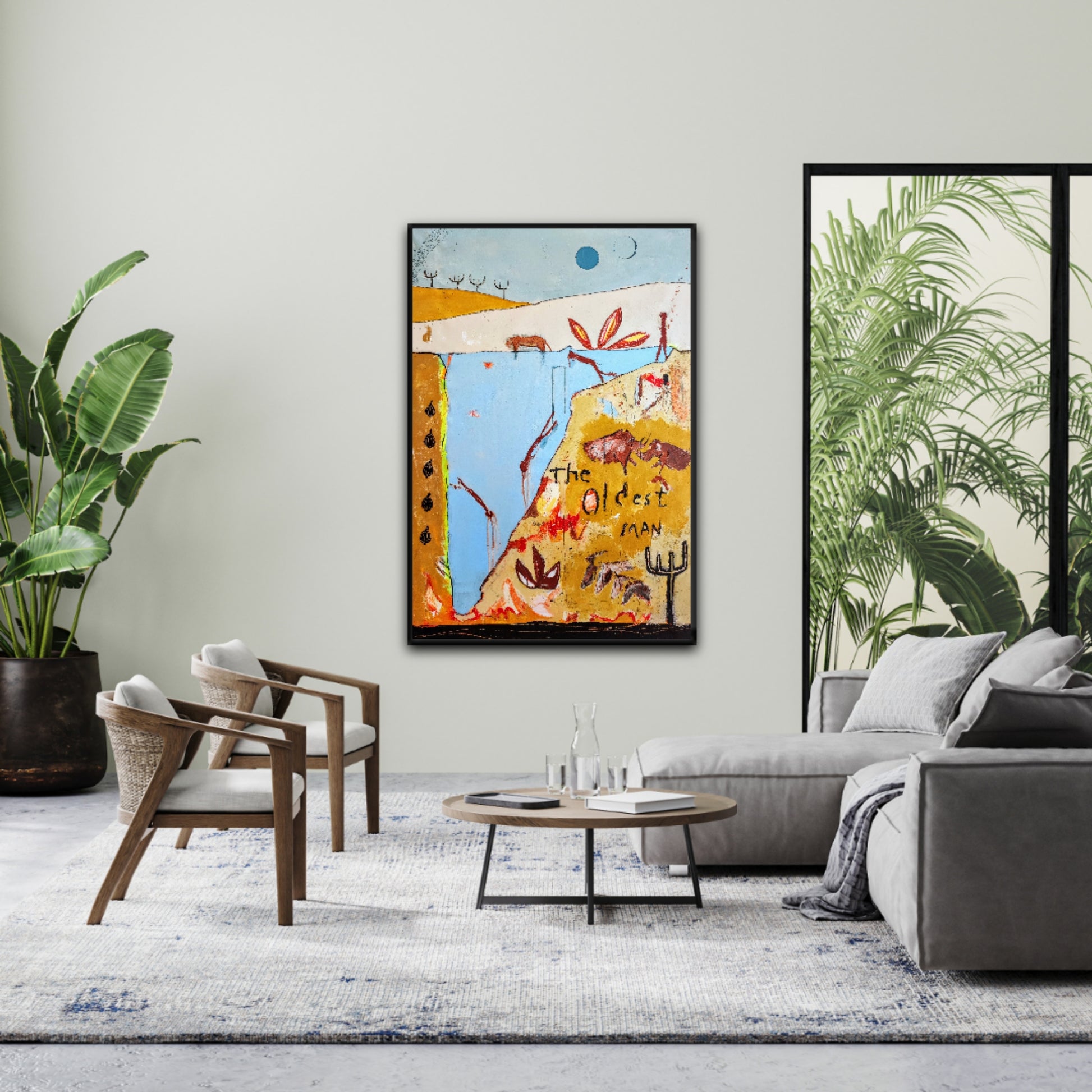 Técnica: acrílico, pigmentos, gesso, ceras, lápiz y pintura en spray.