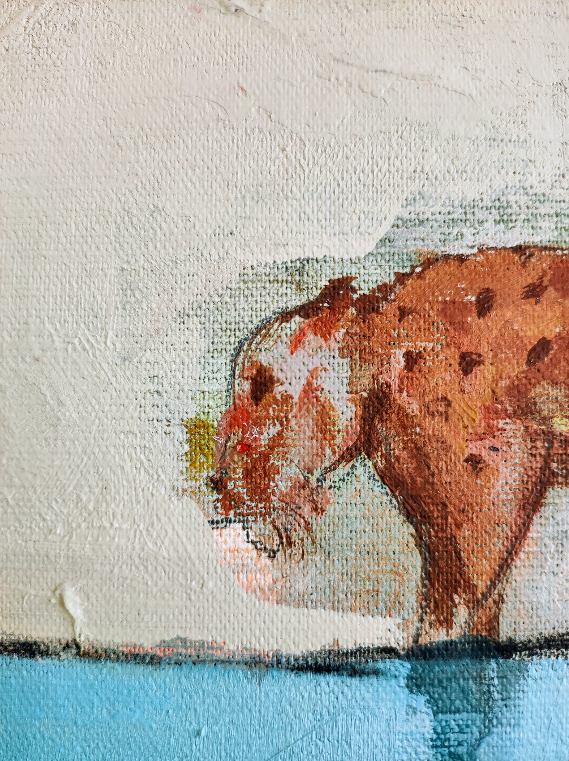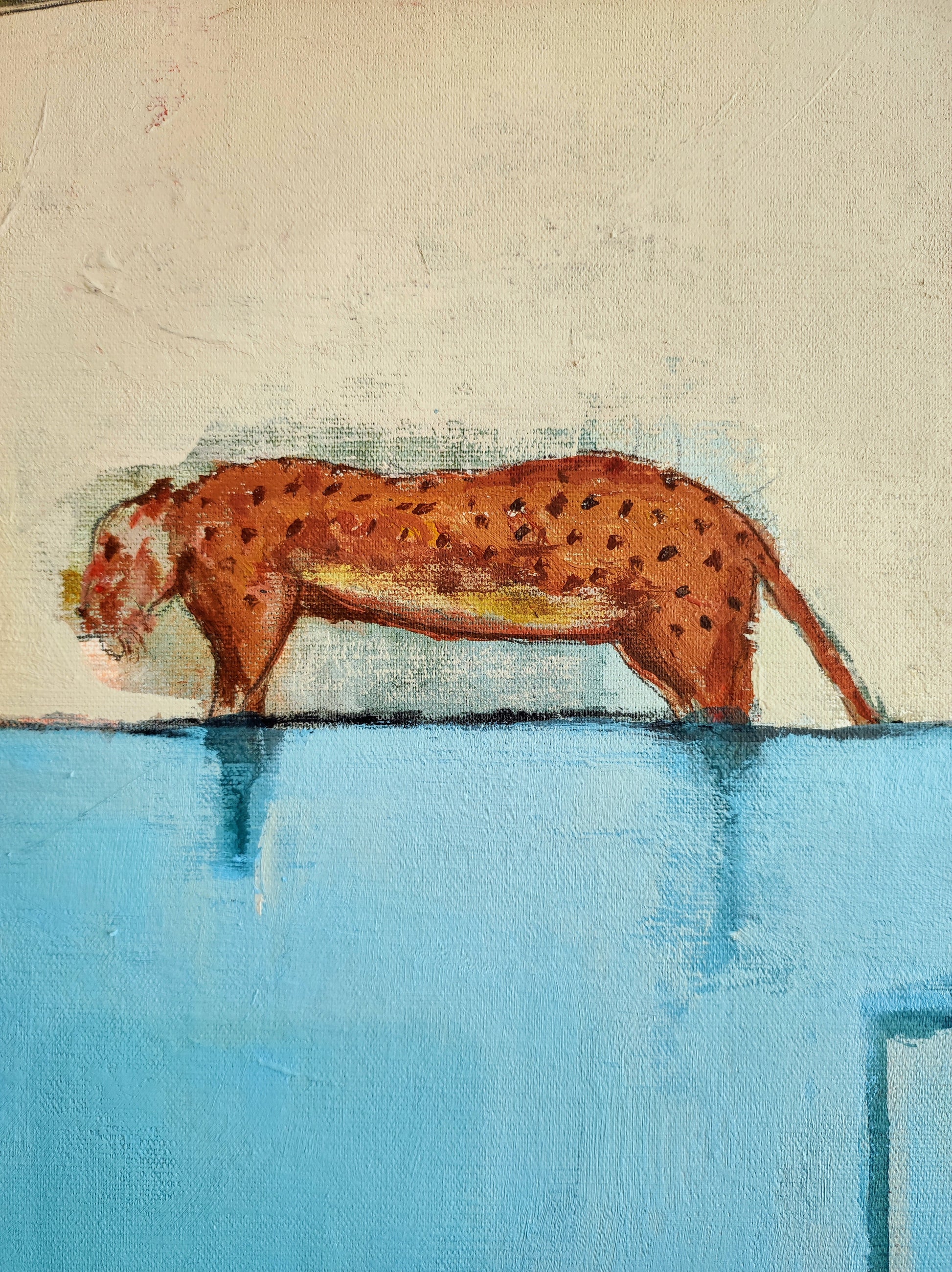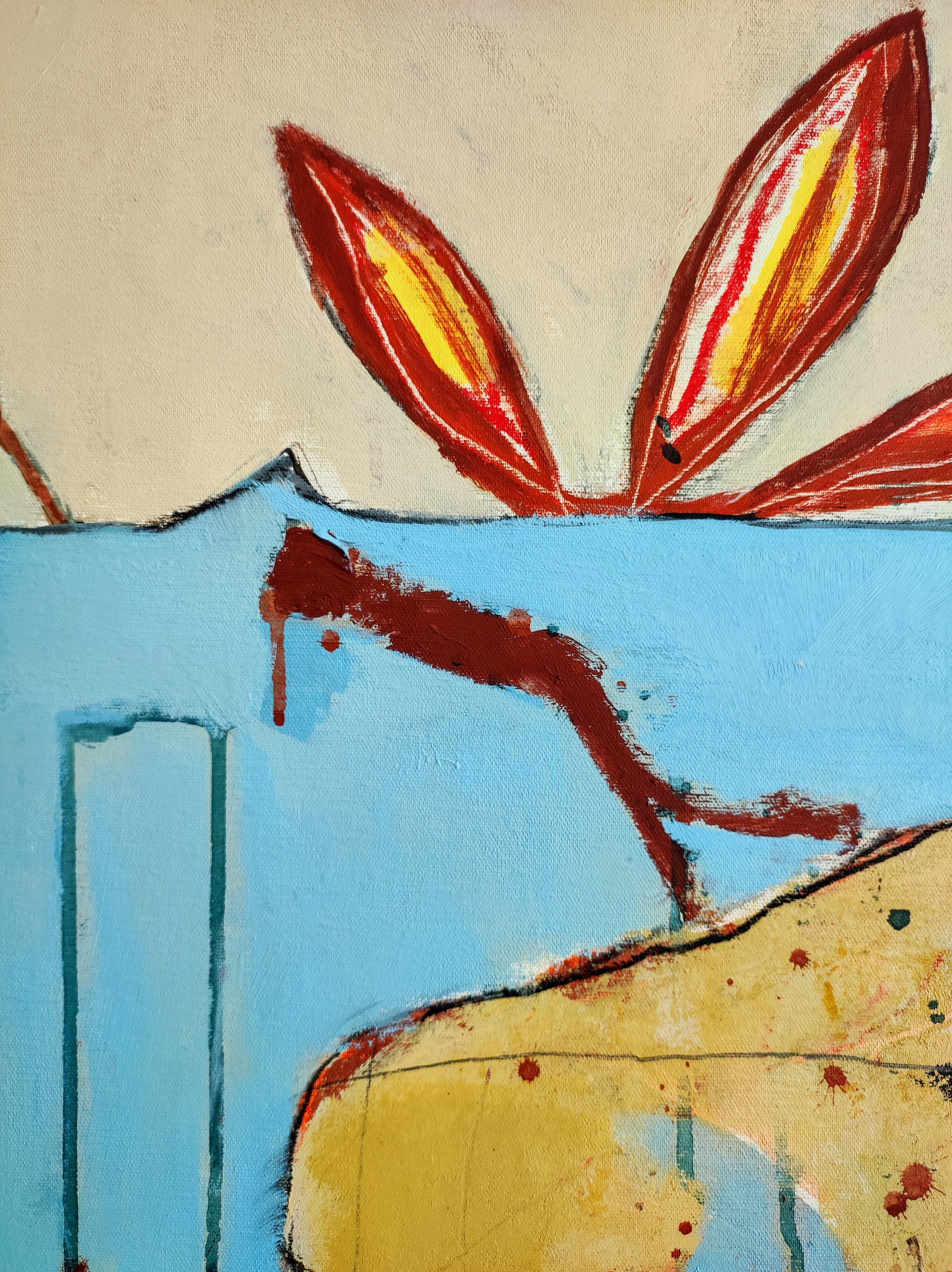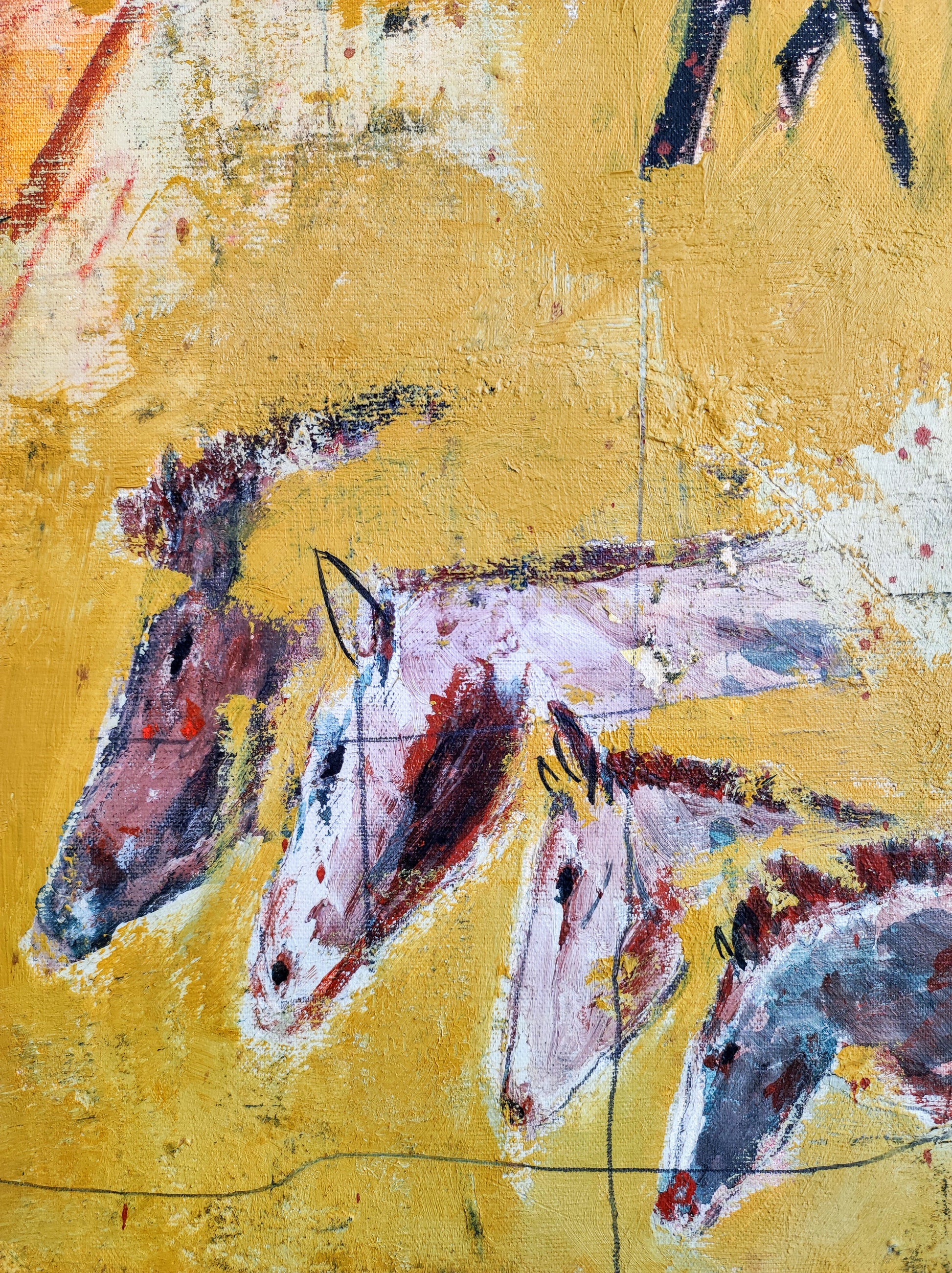 Pintura gestual, intuitiva, que deja que las cosas pasen y se apoya sobre lo que aparece. Aprovechando el accidente y aceptando las consecuencias.